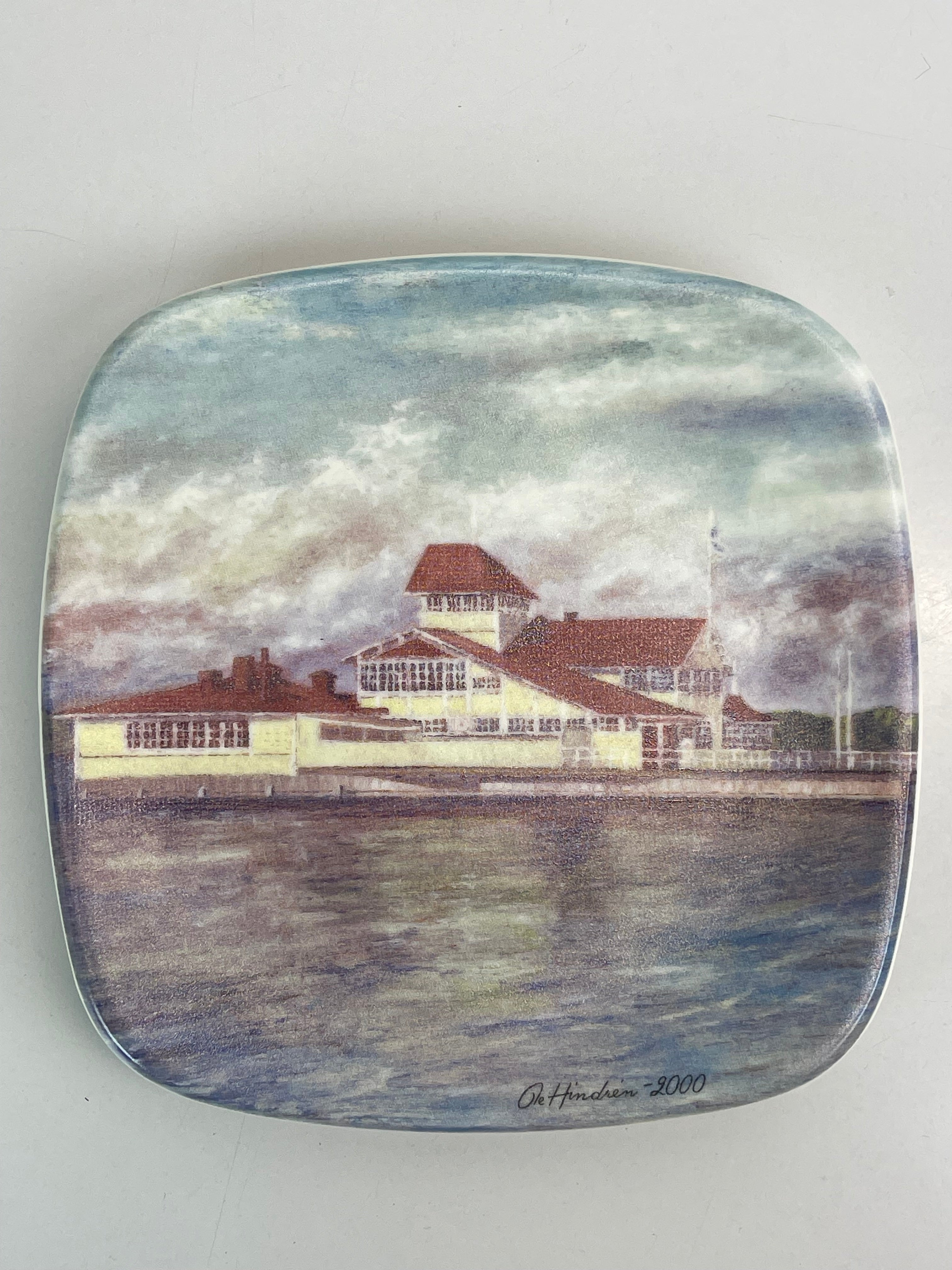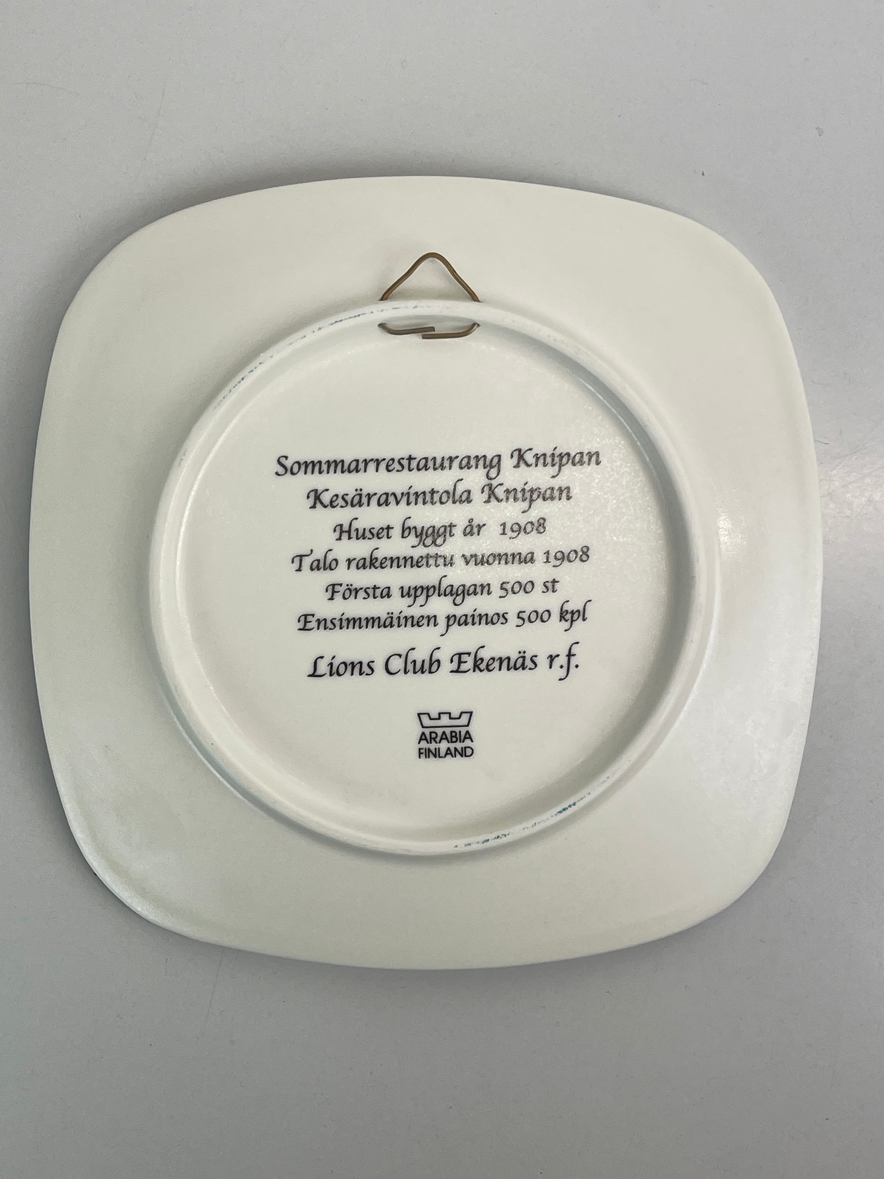 Samlartallrik utgiven av Lions Ekenäs, tillverkad av Arabia. Bilden målad av den lokala konstnären Ole Hindrén.