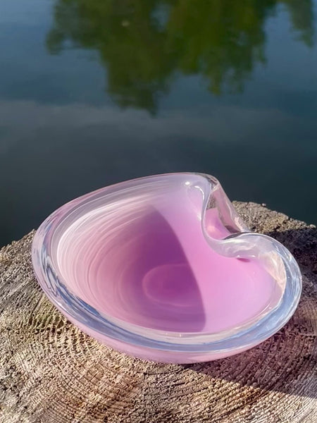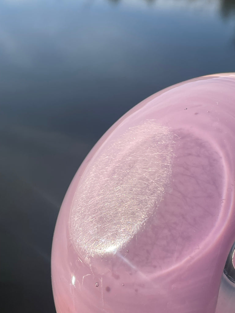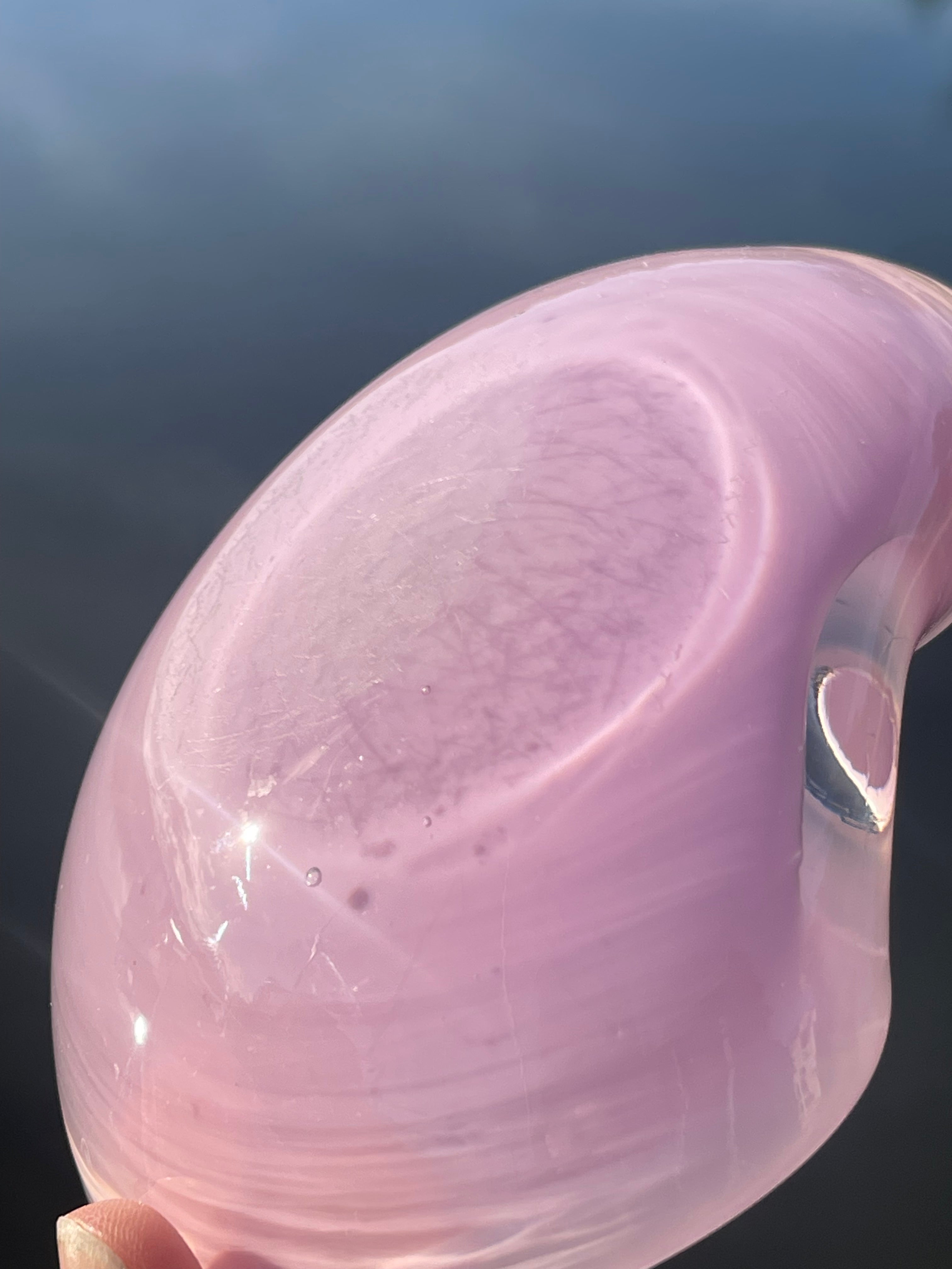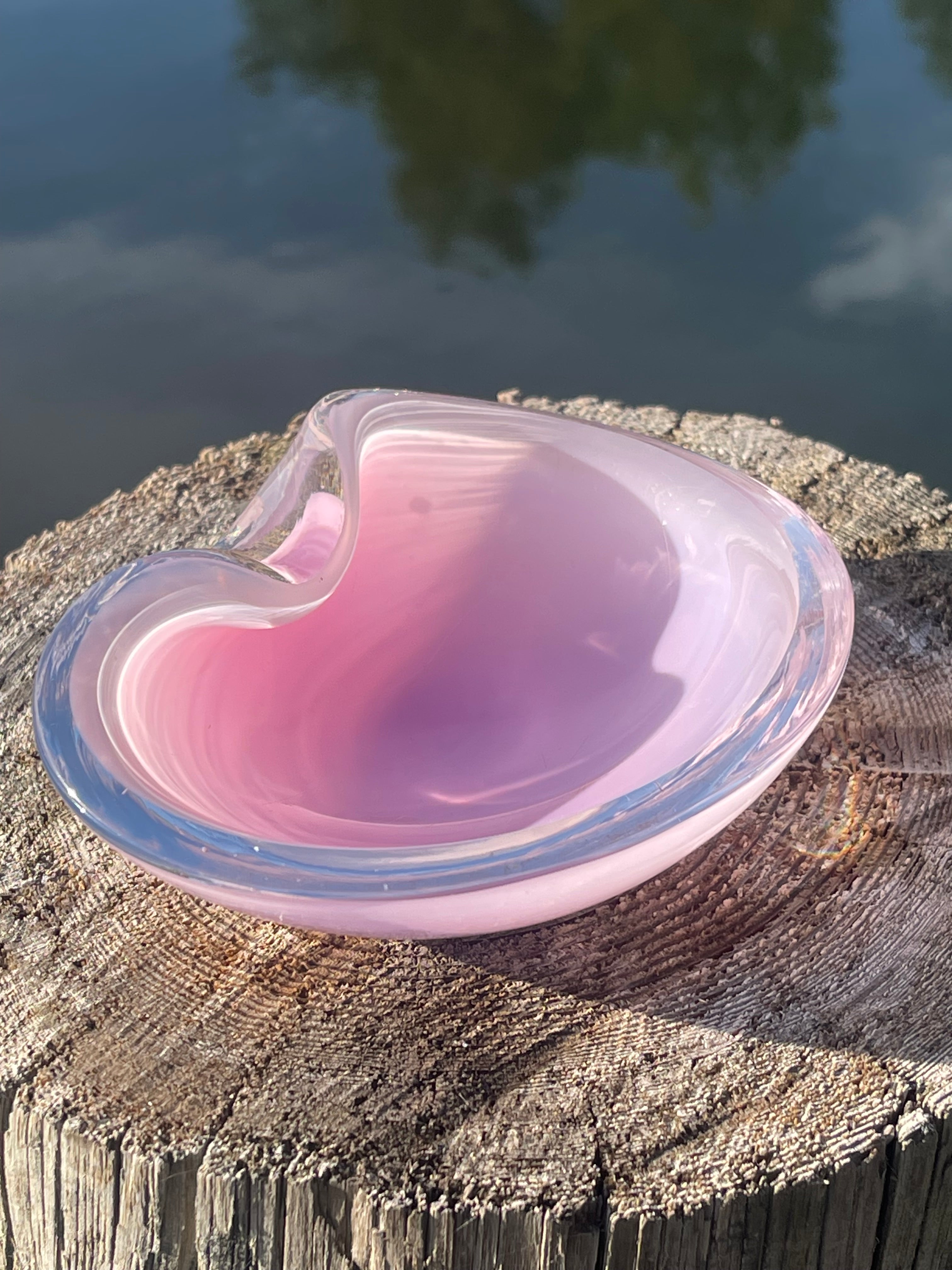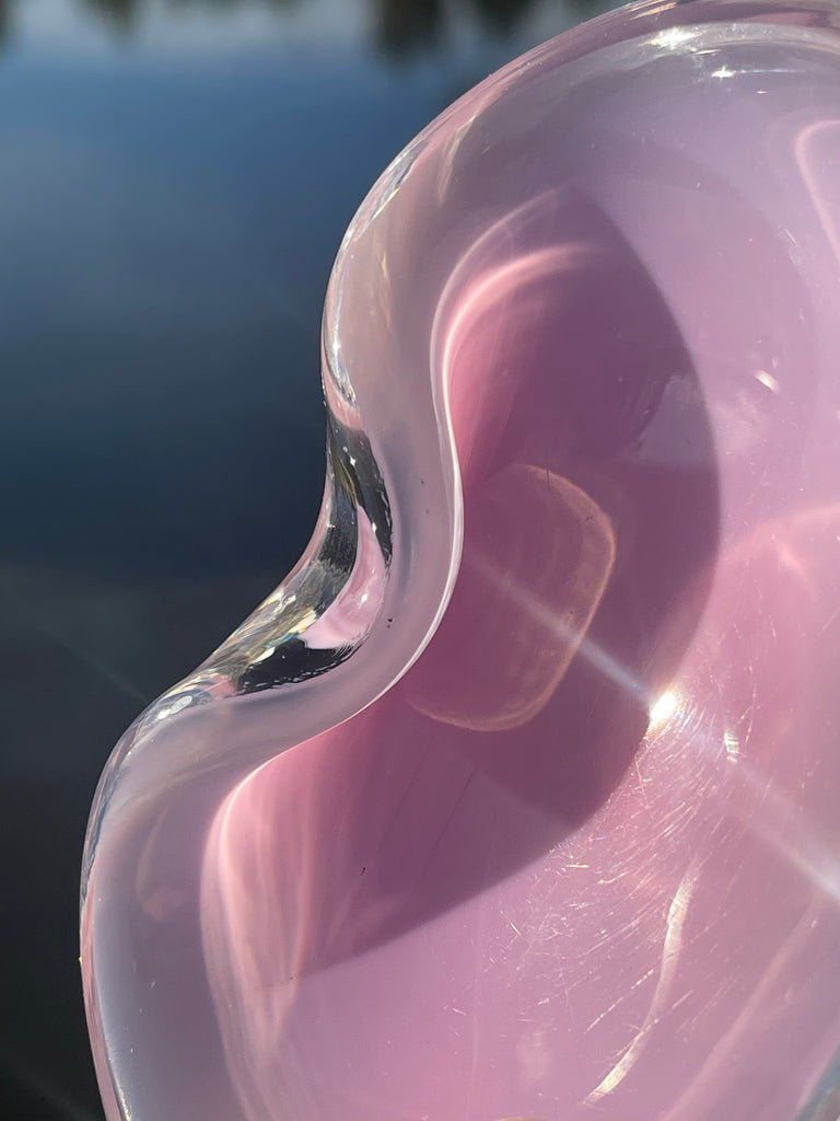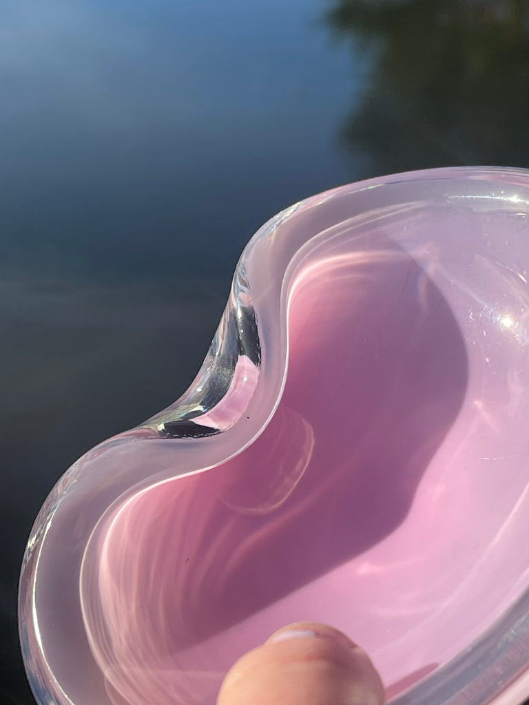 i allmänt gott skick, hel och fin men små repor förekommer både undertill och i själva skålen. 6 st. små luftbubblor finns i glasmassan undertill.