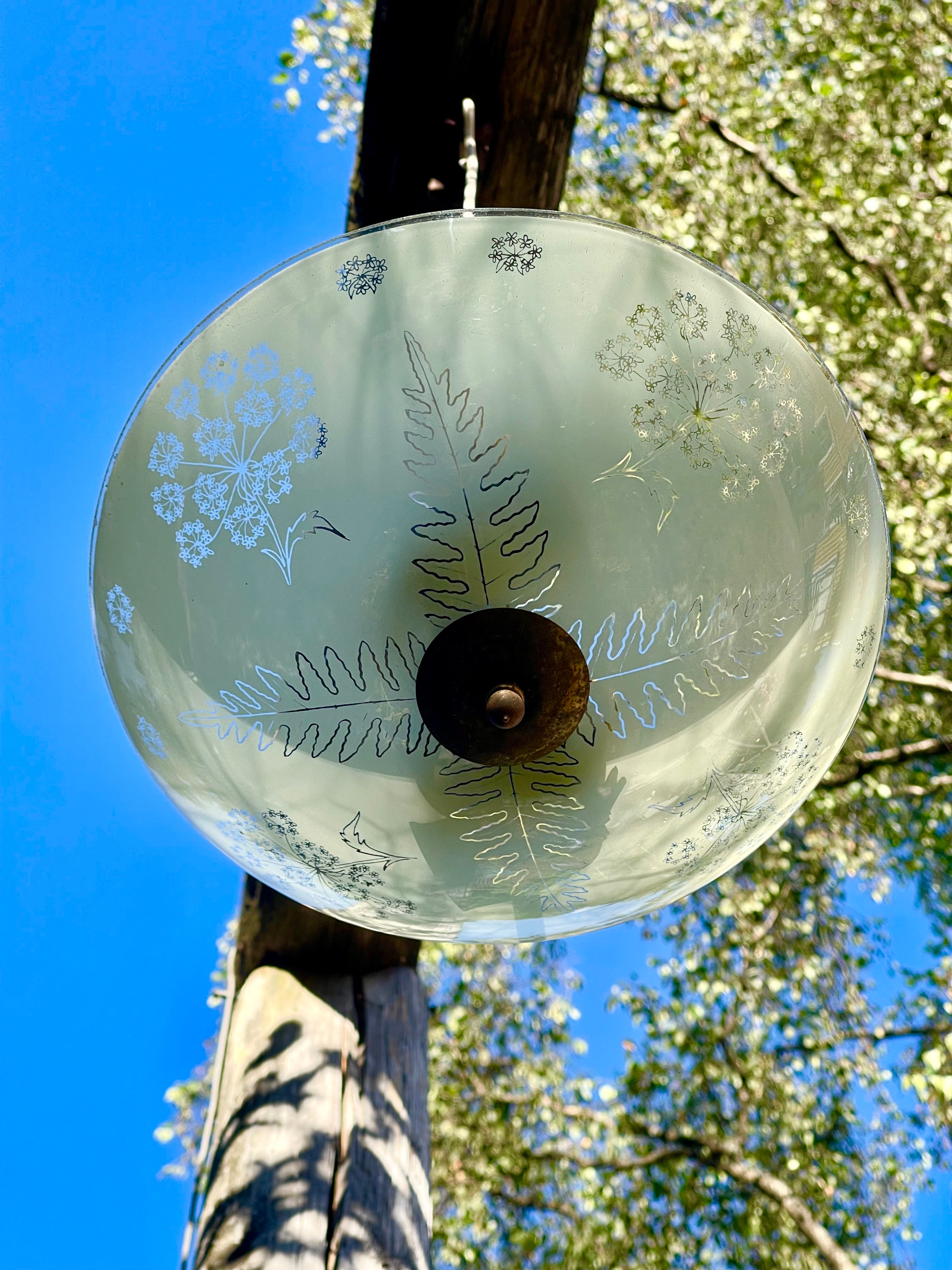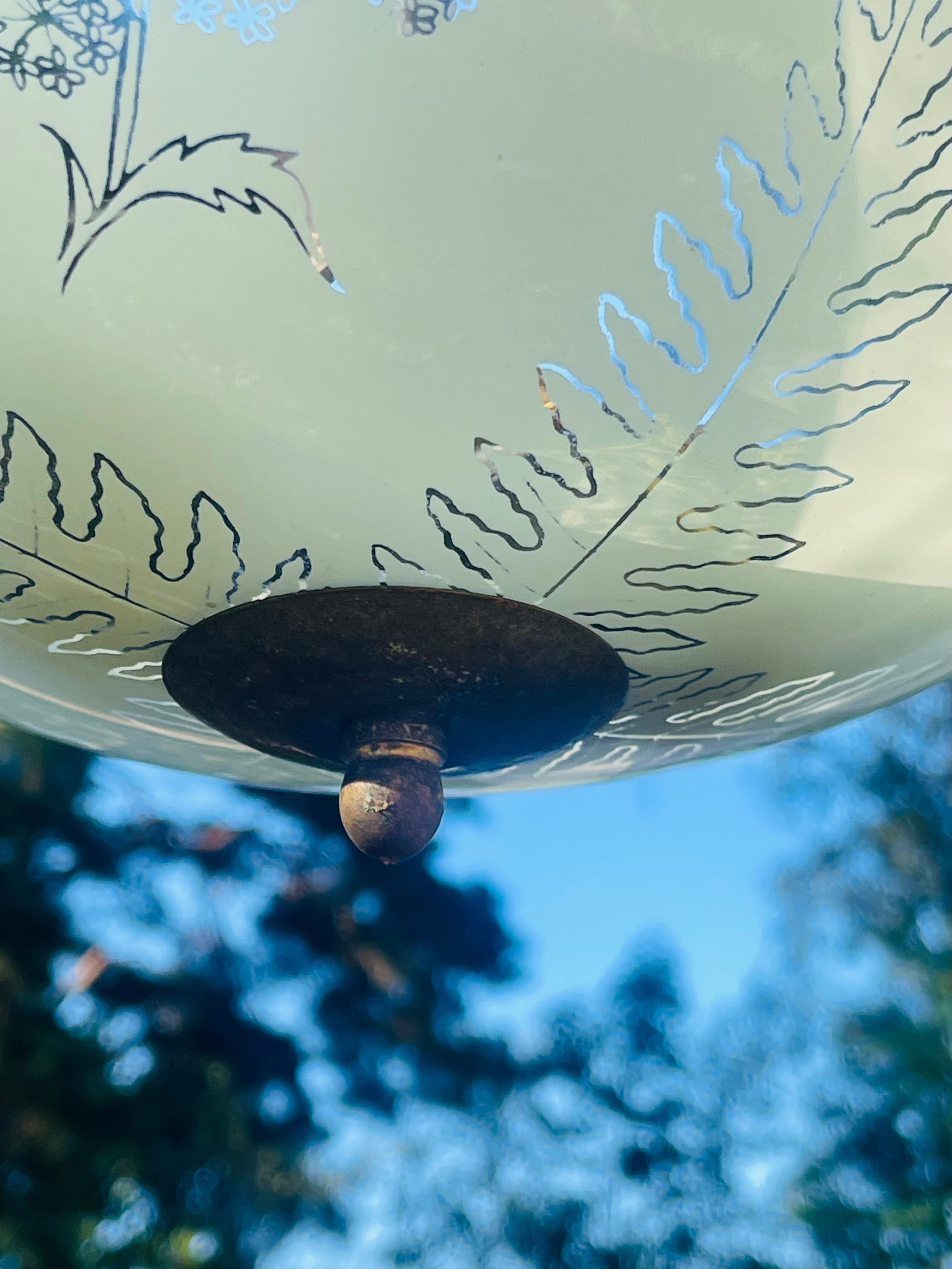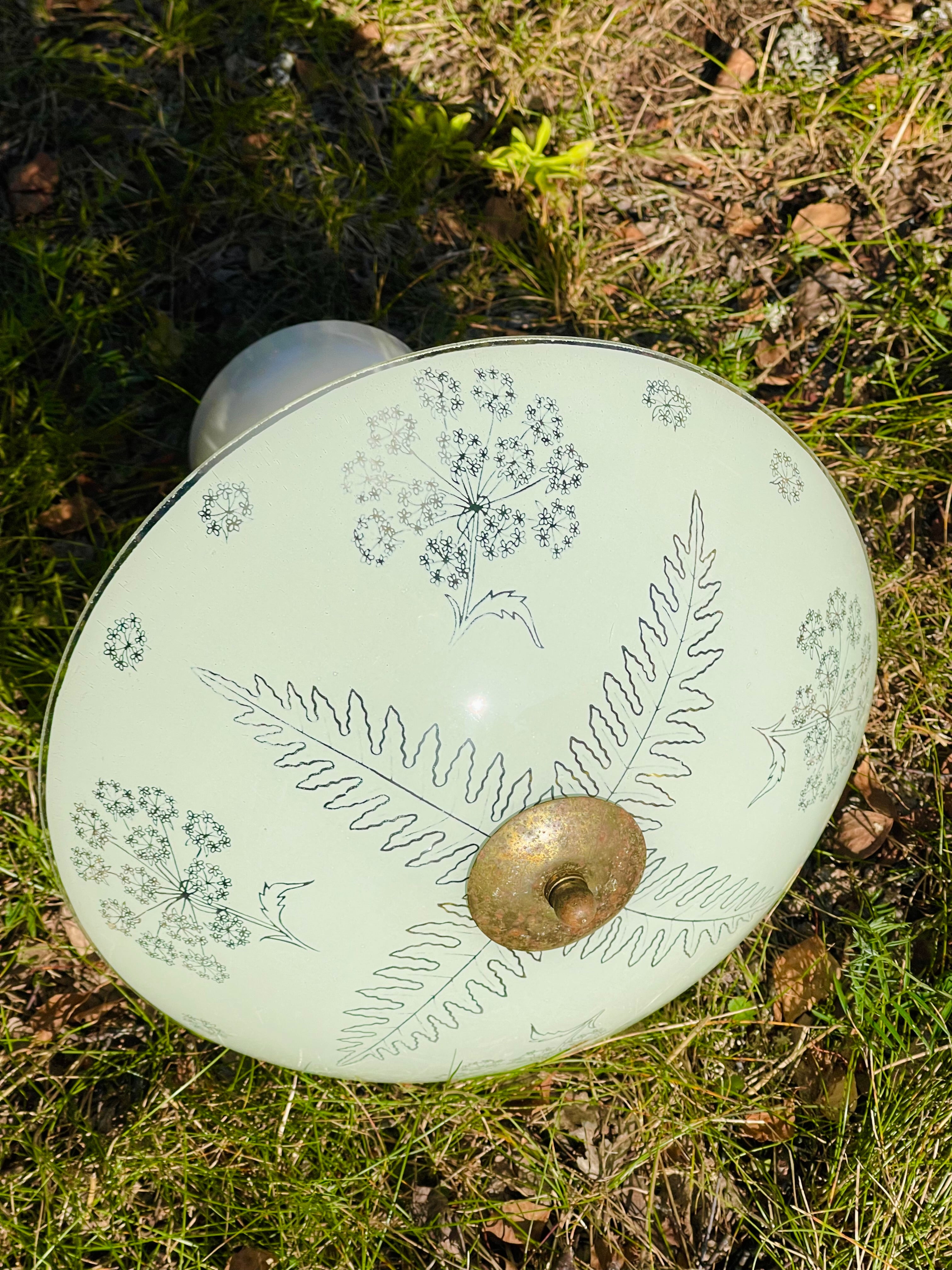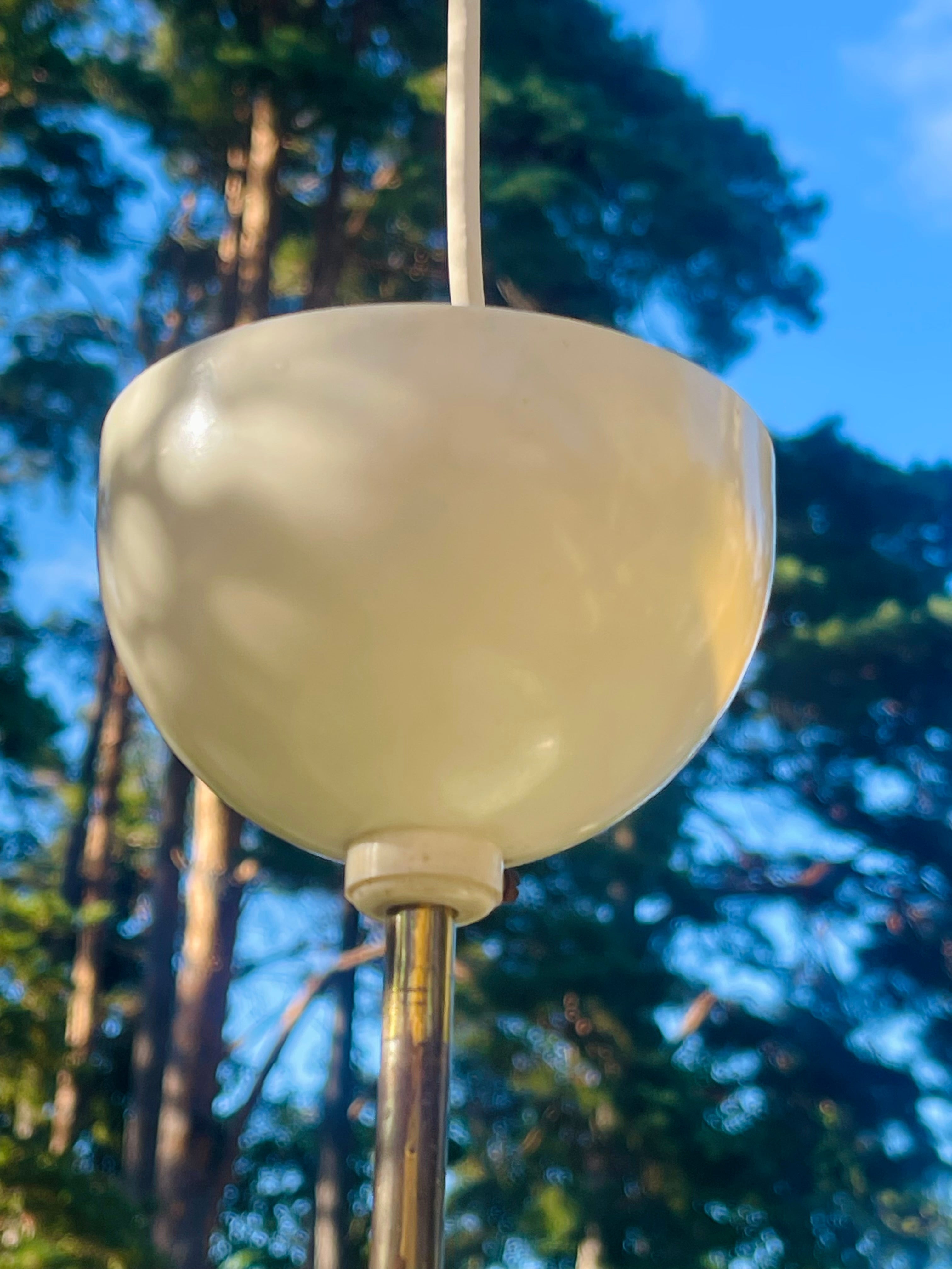 Vacker och skir taklampa tillverkad av finska Lasipaino Oy, ca. 1940-tal.