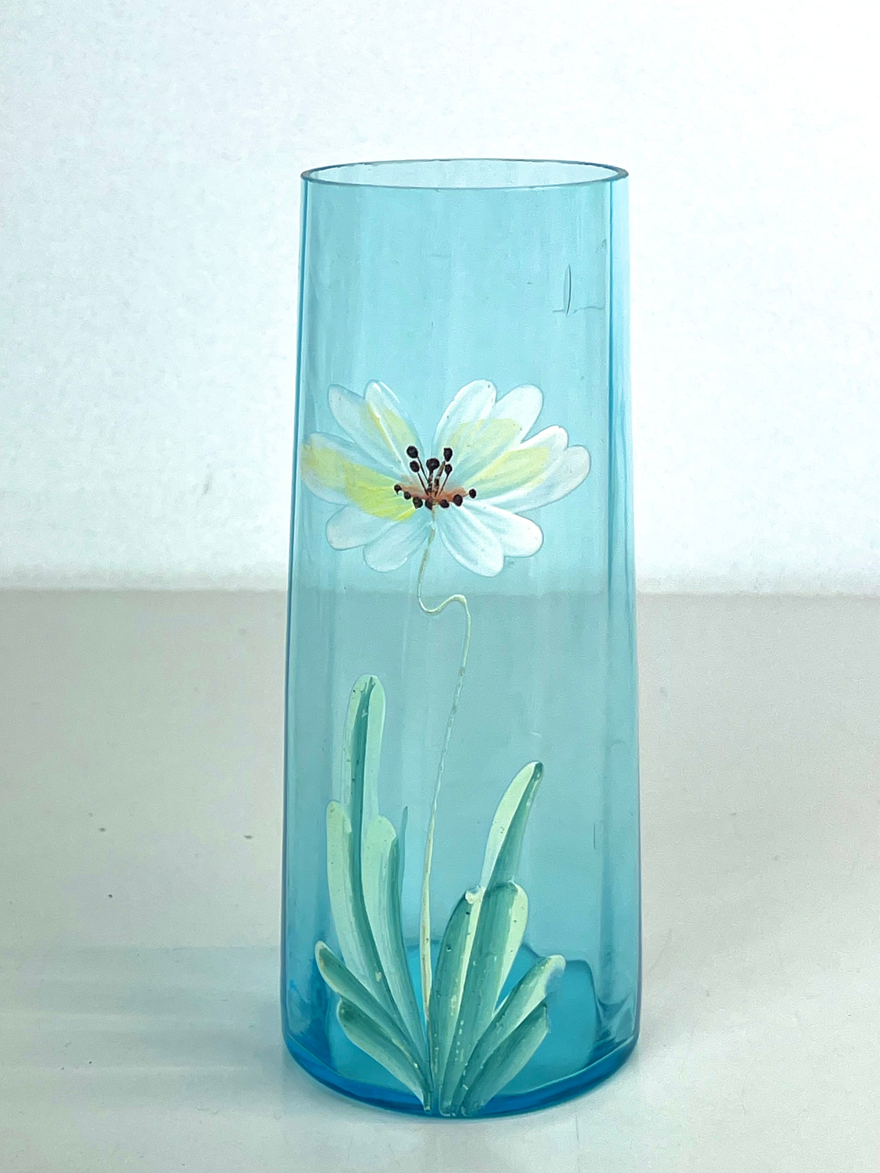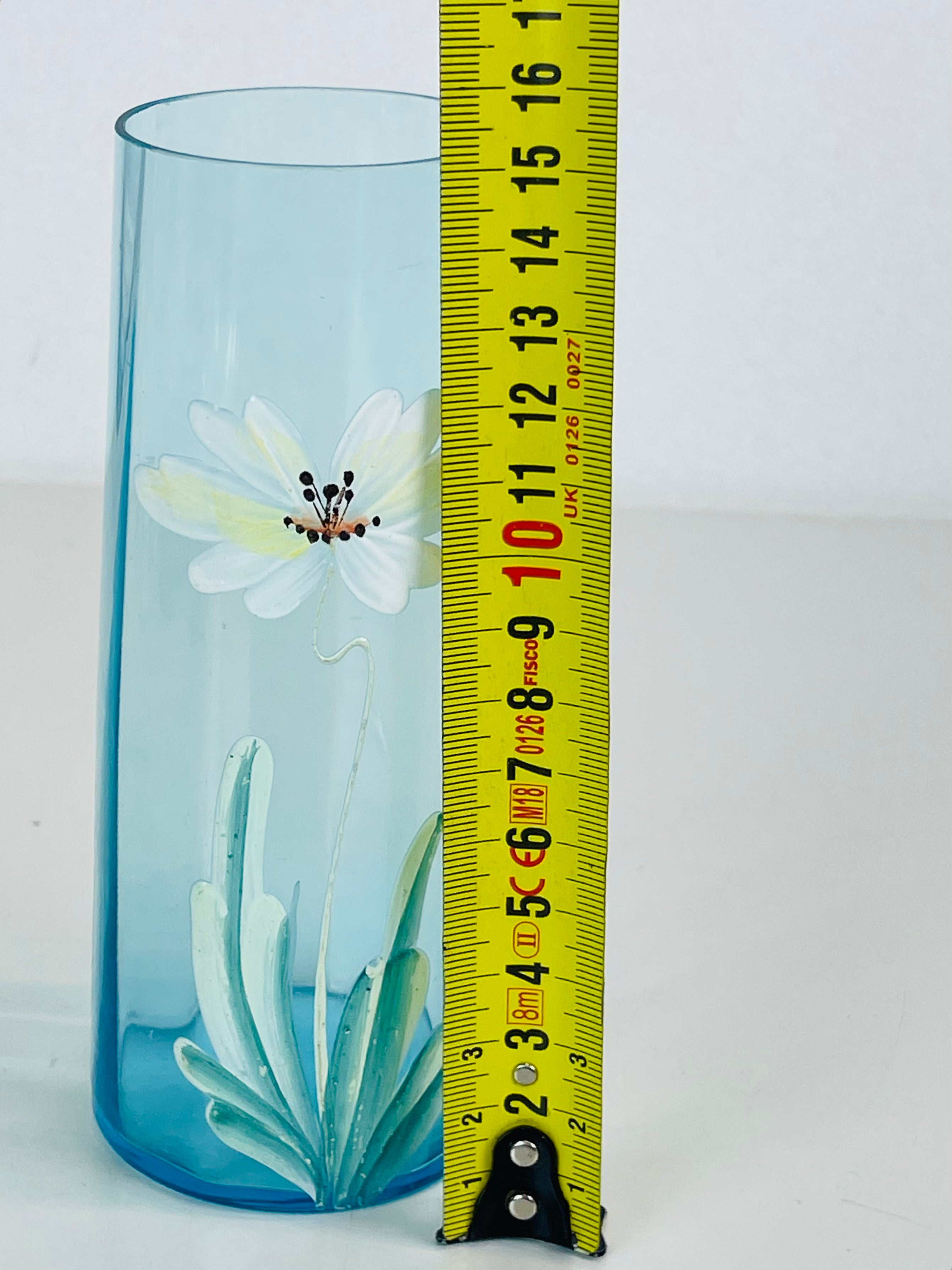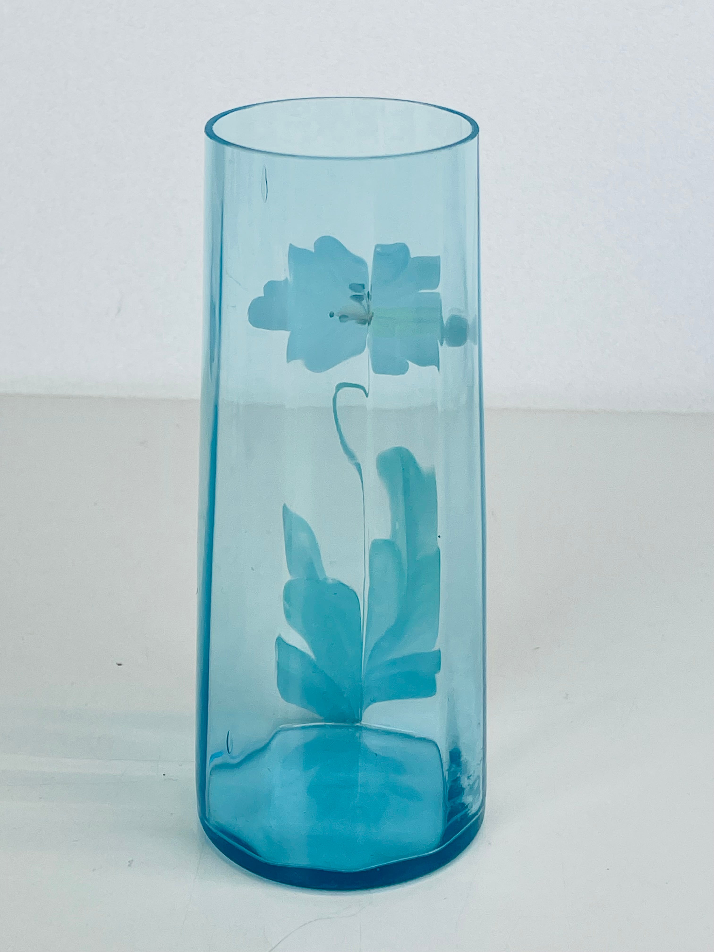 Vacker, ljusblå glasvas från tidigt 1900-tal. Troligtvis tillverkad av lettiska Jakoba Bela glasfabrik. Vasen är i jättefint skick, se bilder för bättre uppfattning om skick och storlek.