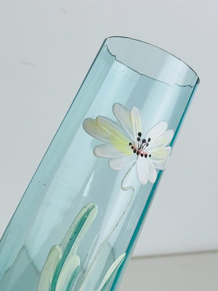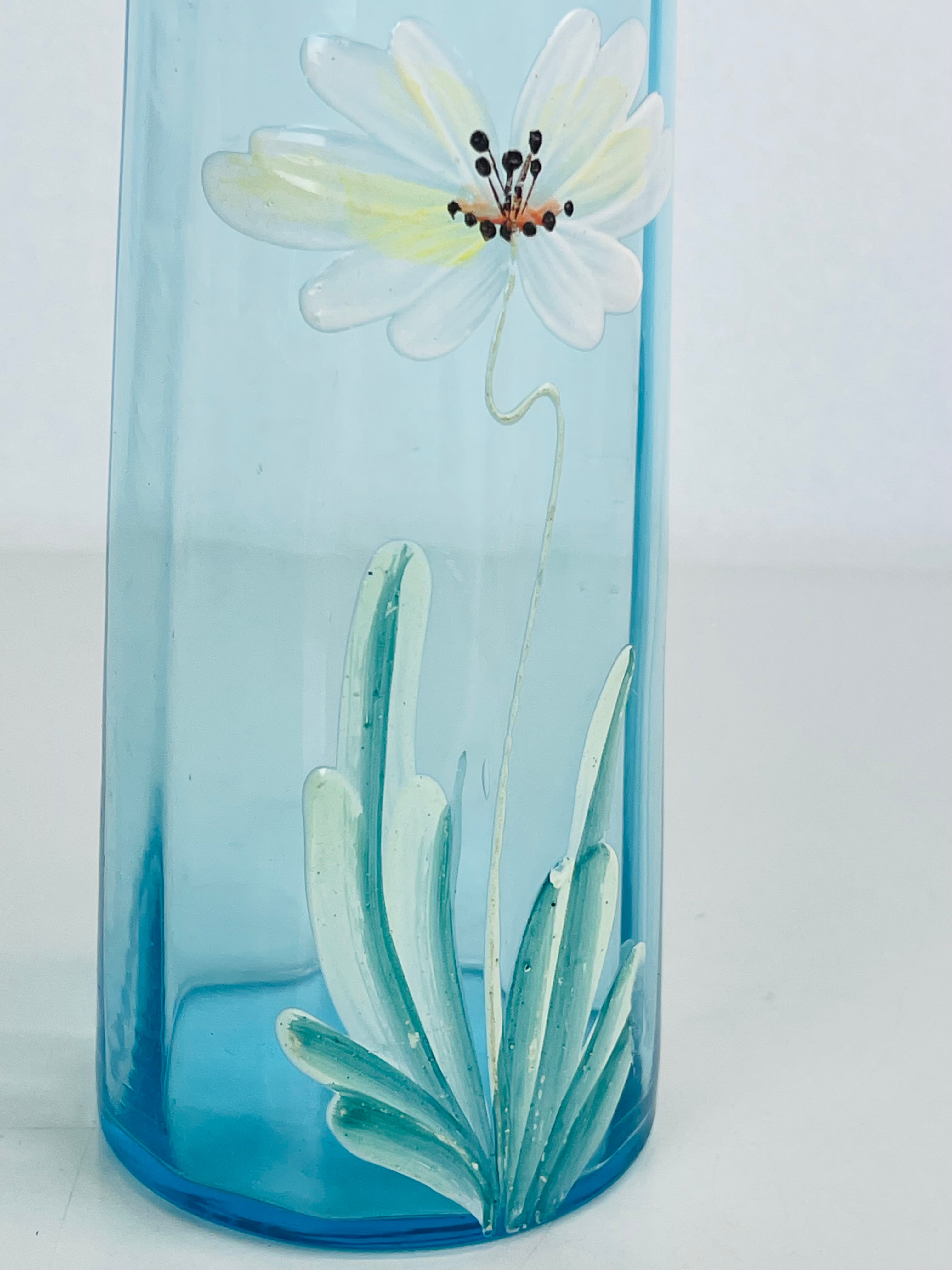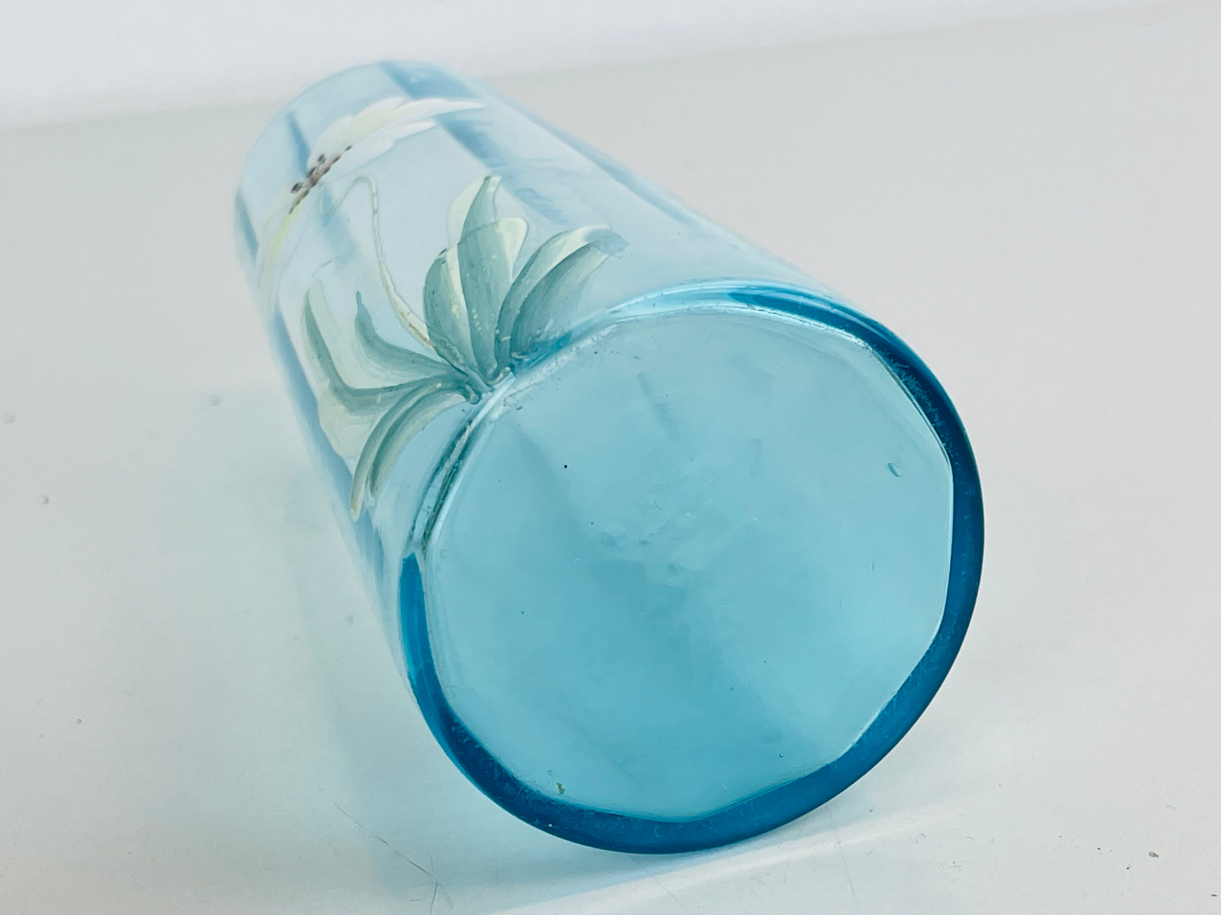Vacker, ljusblå glasvas från tidigt 1900-tal. Troligtvis tillverkad av lettiska Jakoba Bela glasfabrik. Vasen är i jättefint skick, se bilder för bättre uppfattning om skick och storlek.