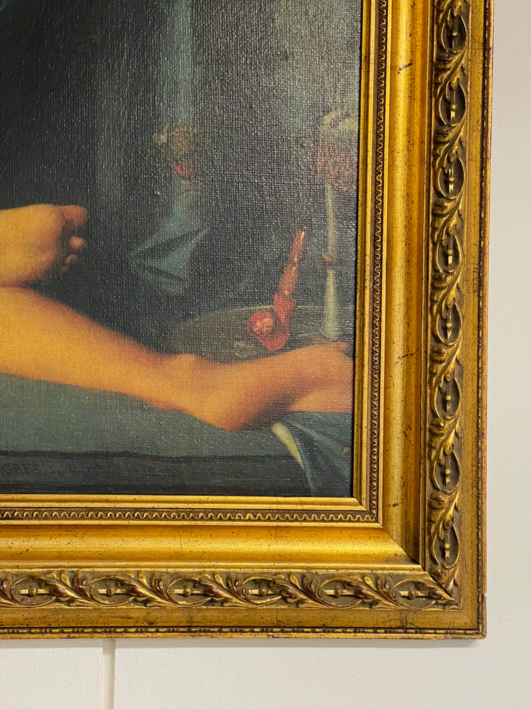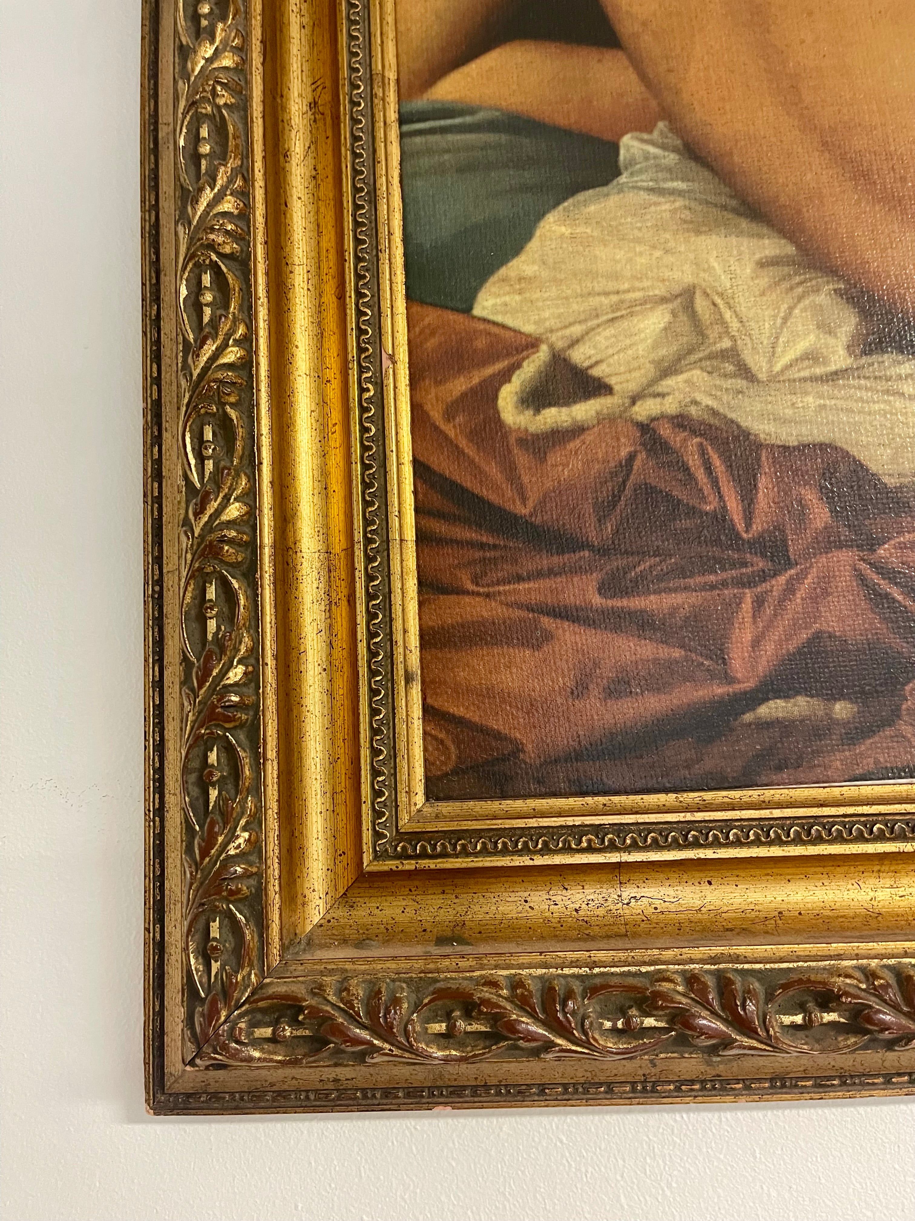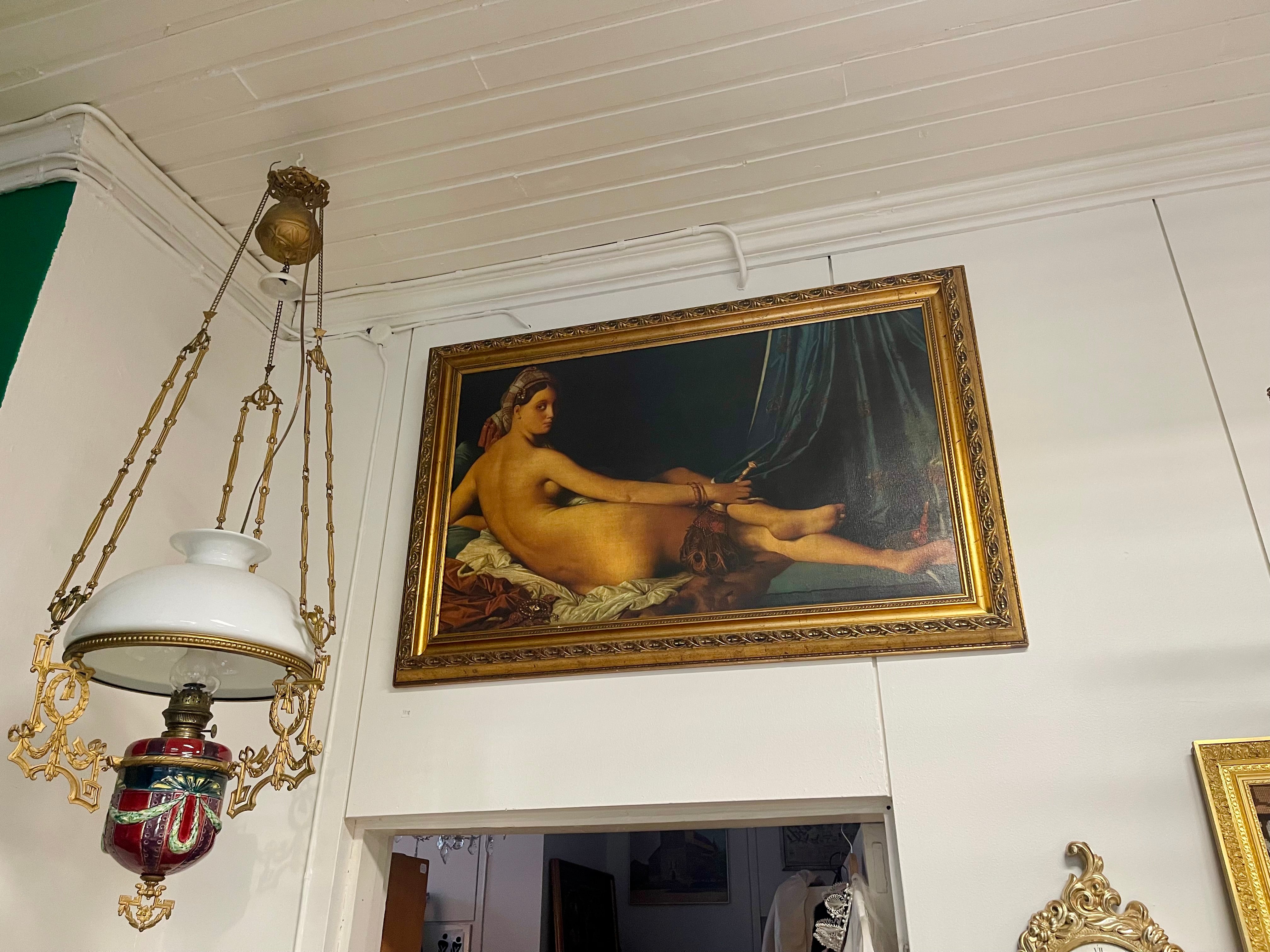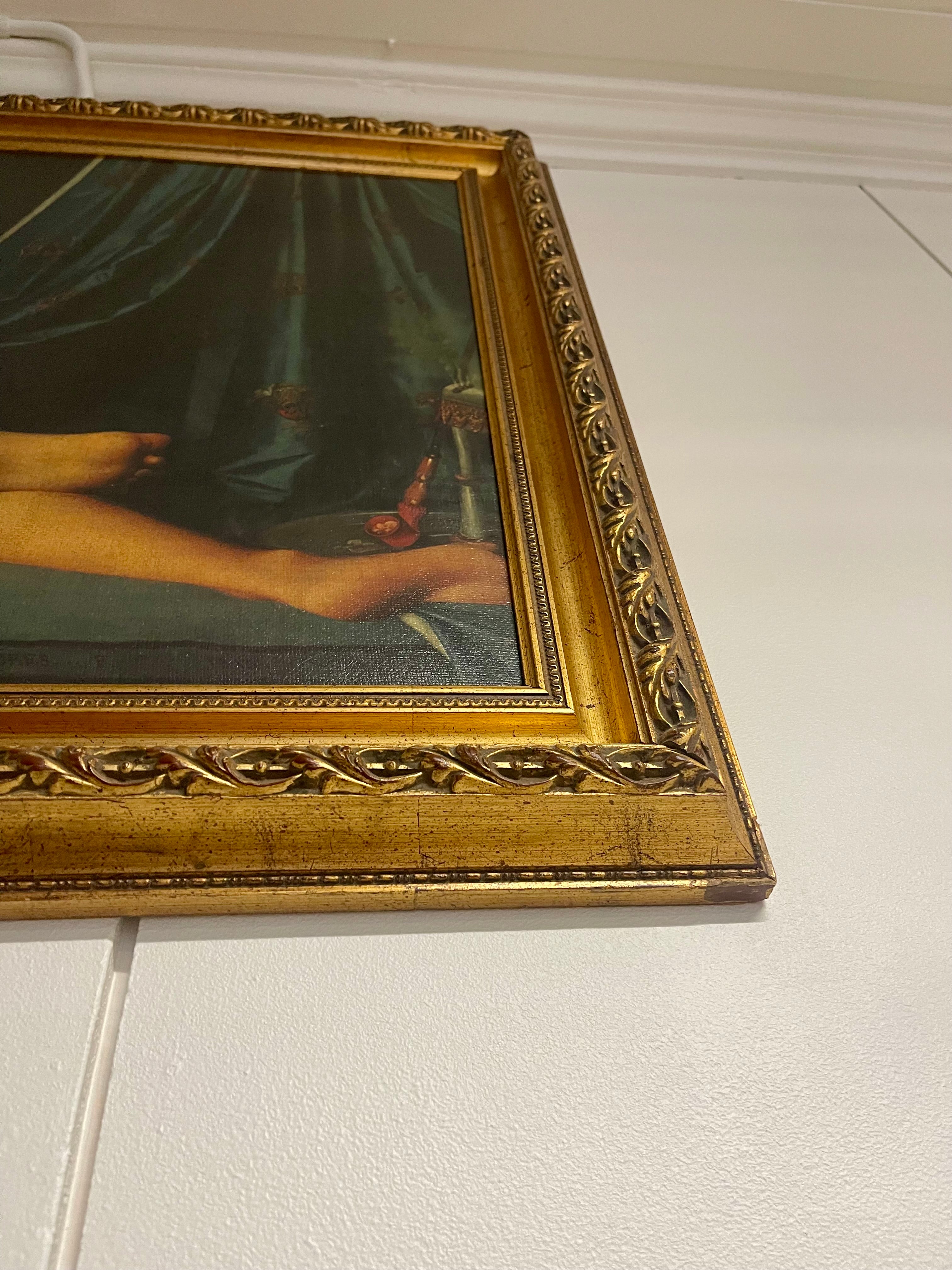 Stor tavla med reproduktion av La Grande Odalisque, ursprungligen målad av Jean Auguste Dominique Ingres.
