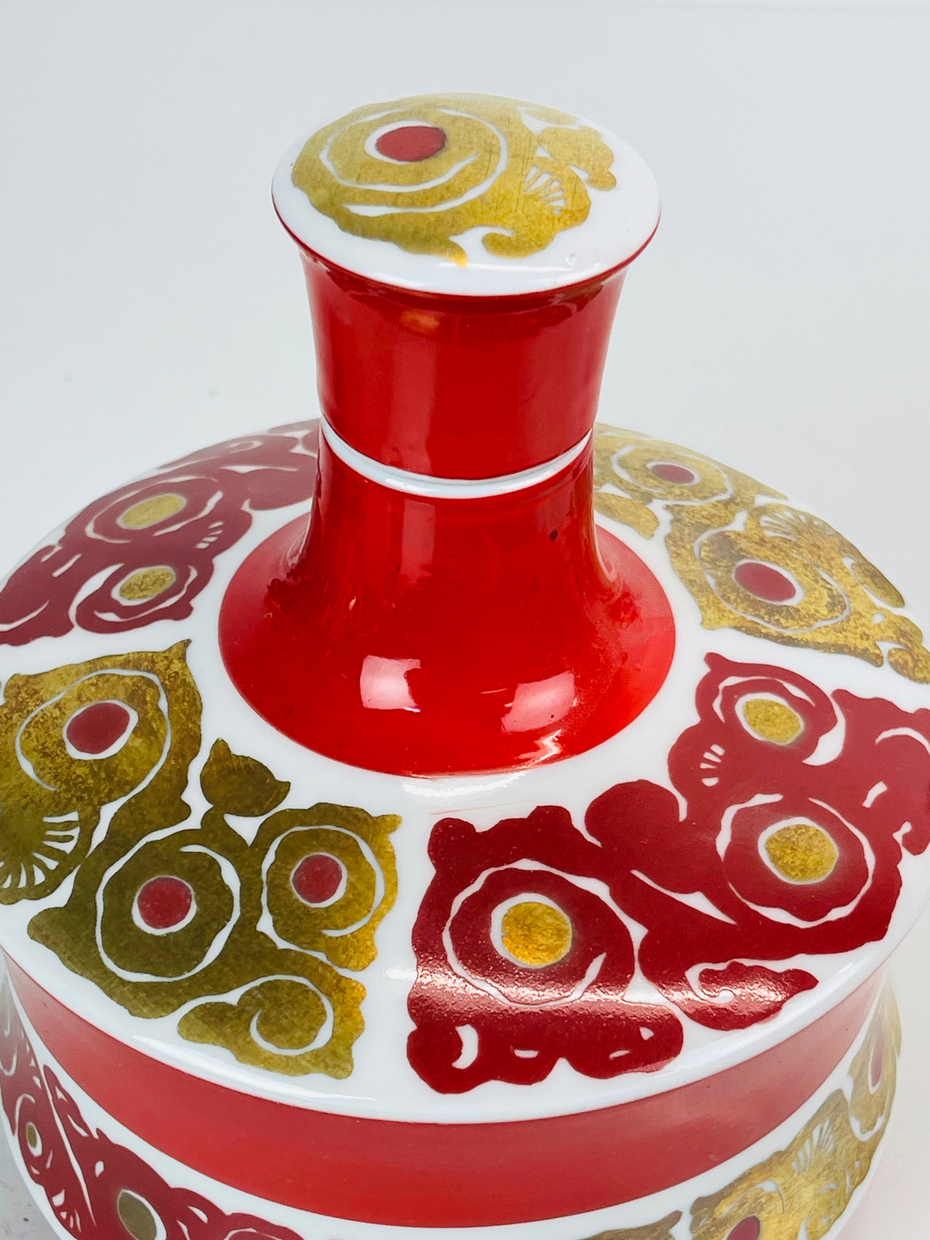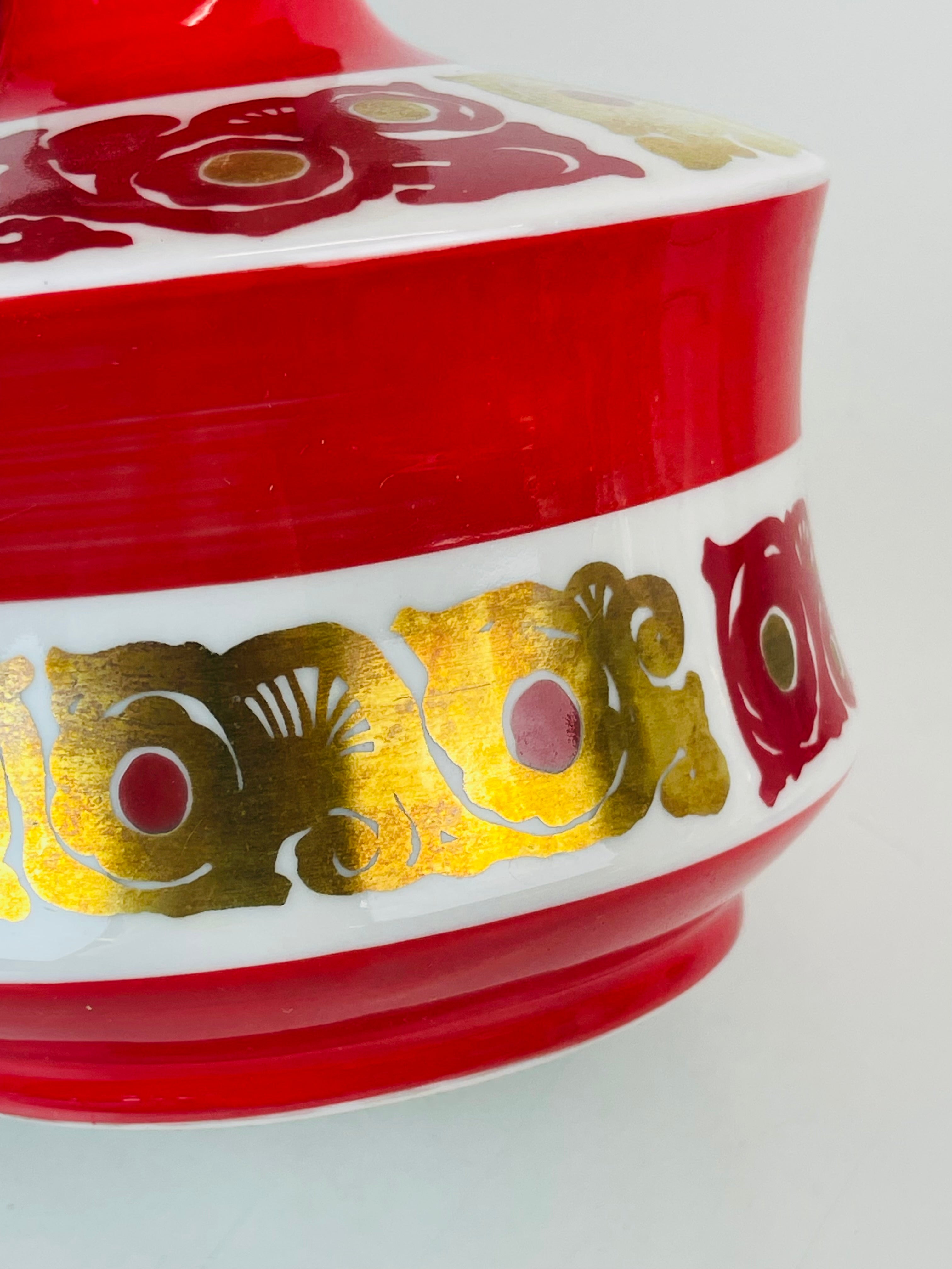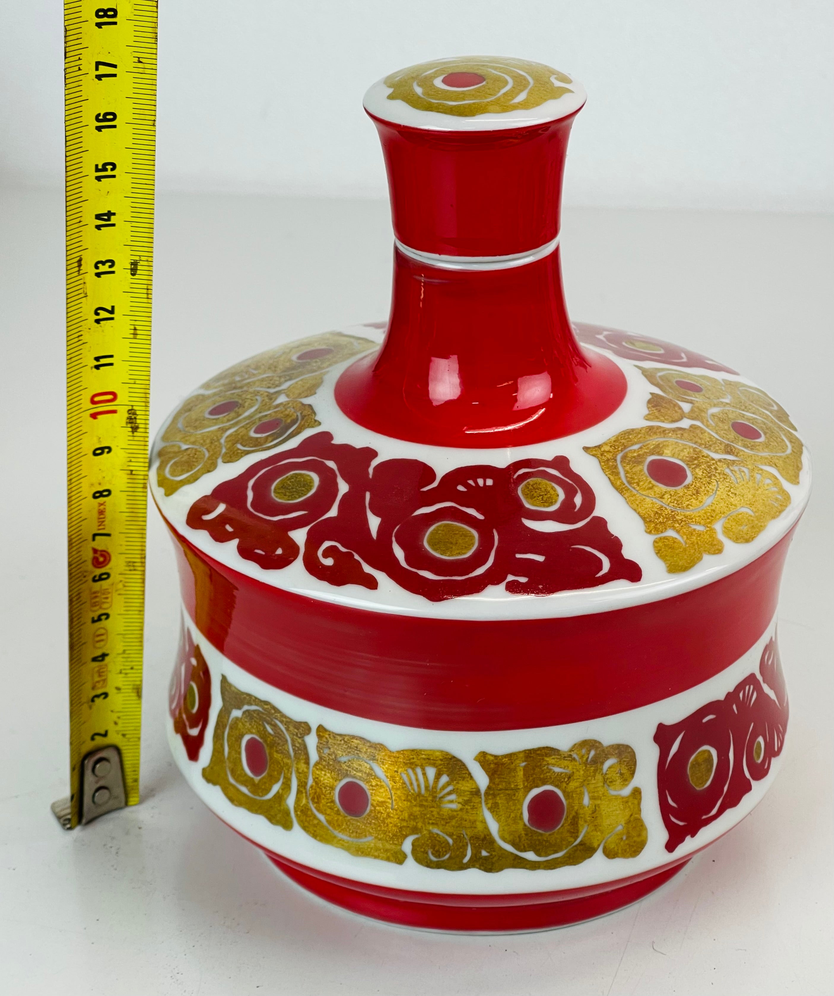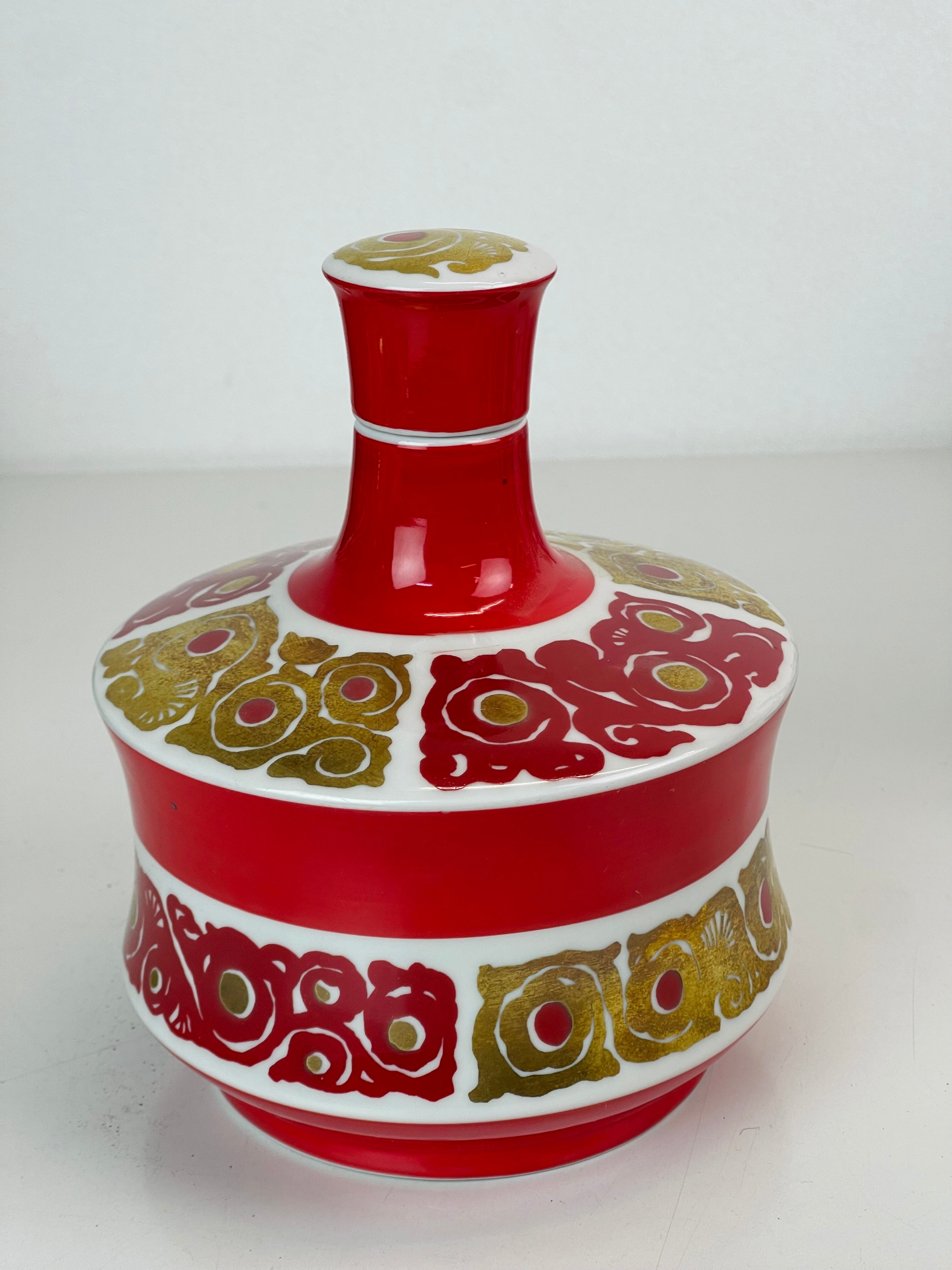 En vacker, handmålad karaff i gott skick, ca. 18 cm hög. Några orenheter i/under målfärgen. Se bilder!