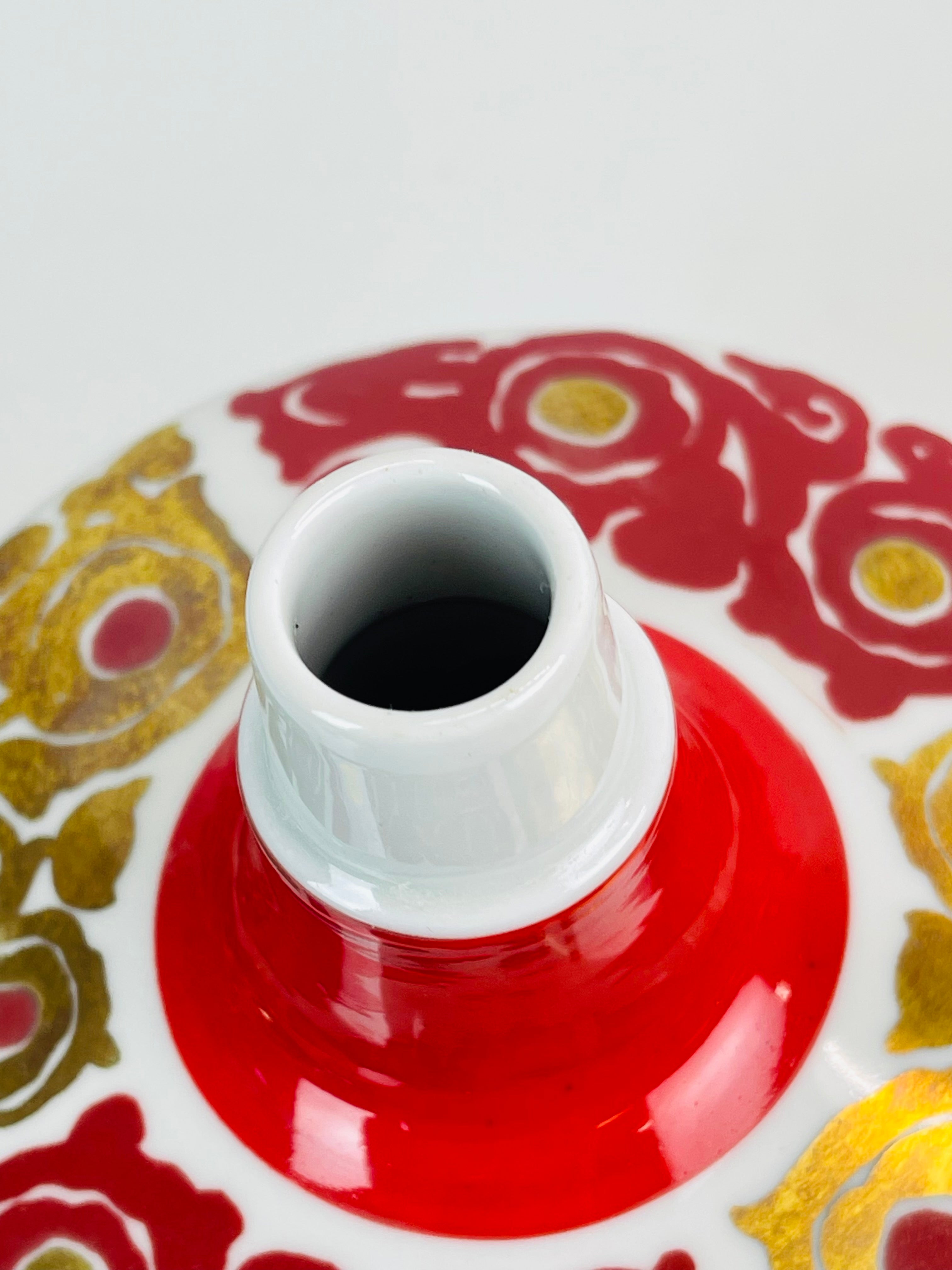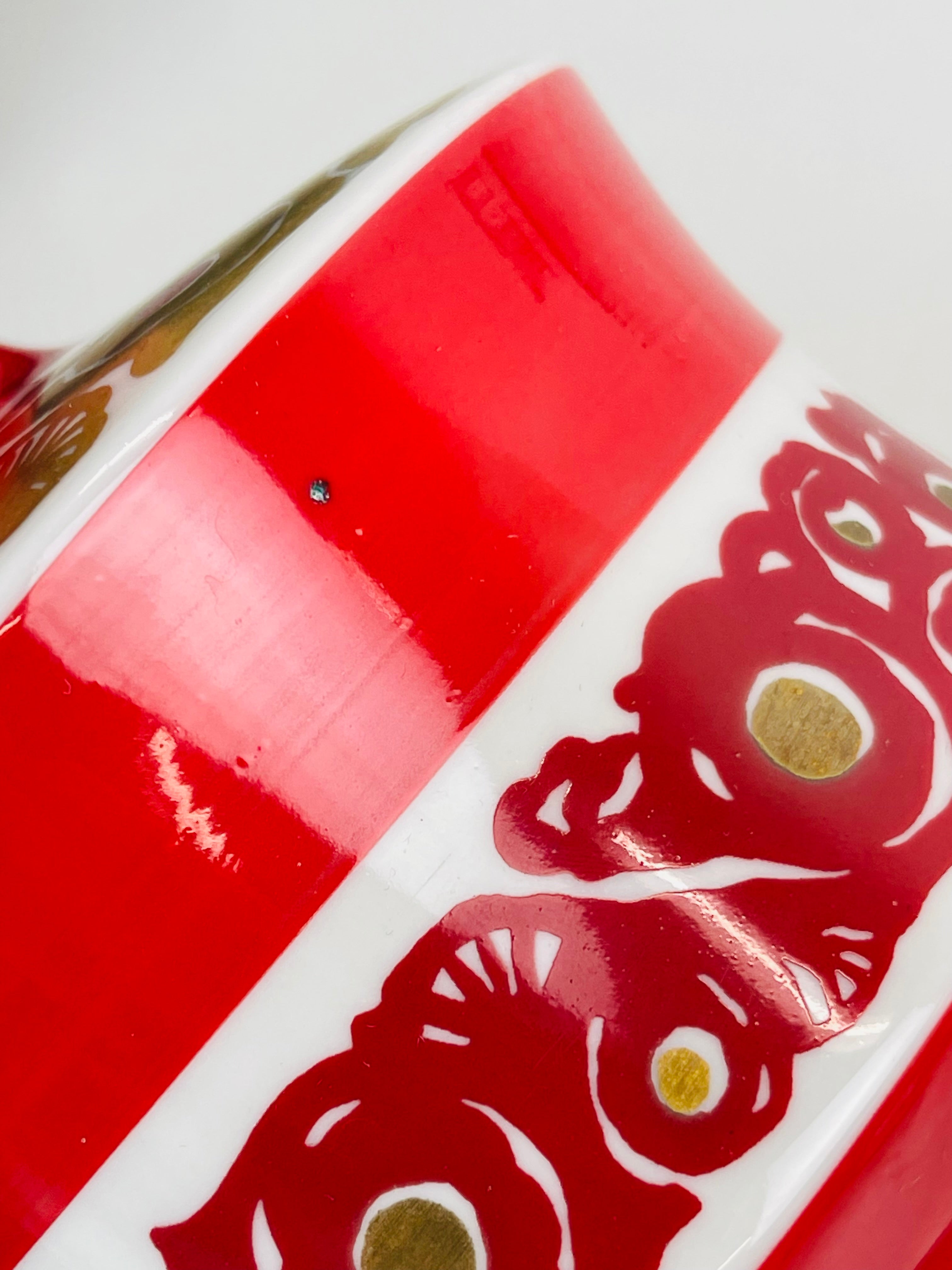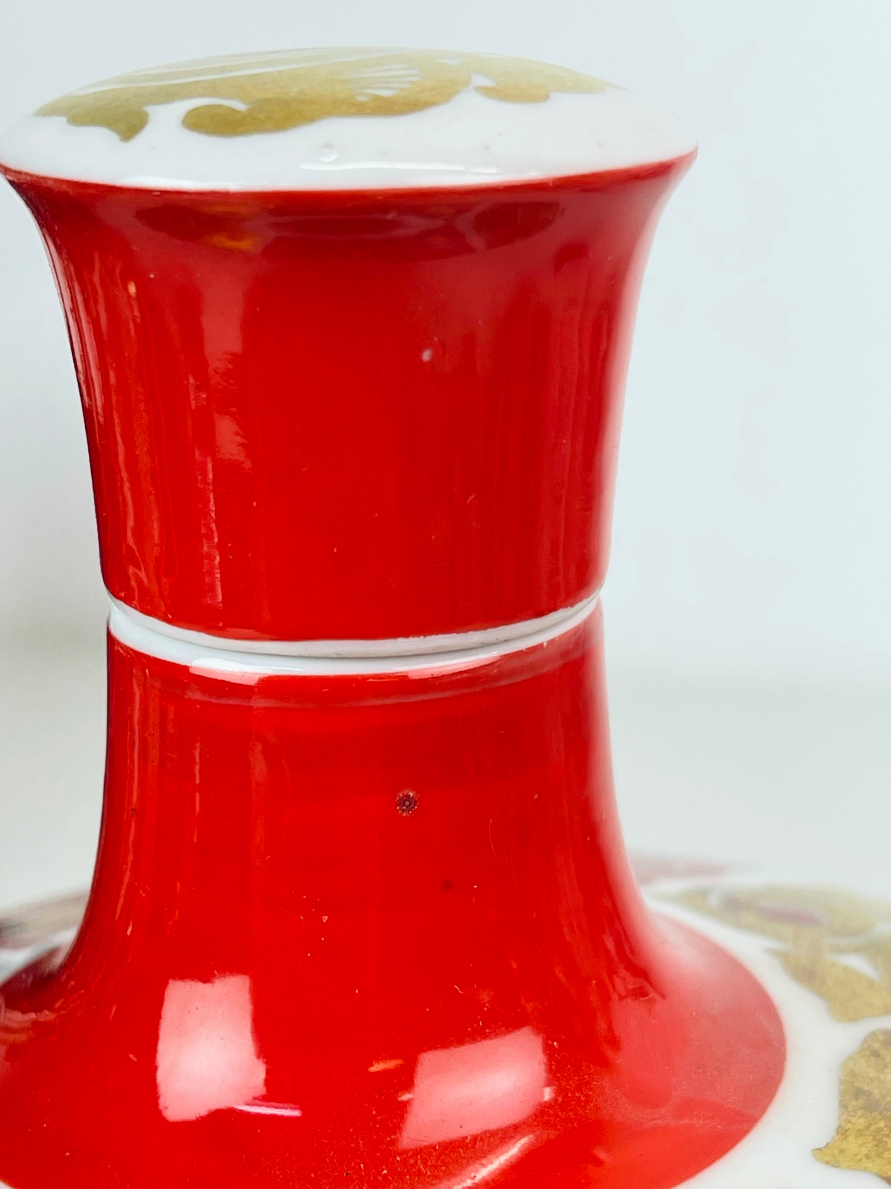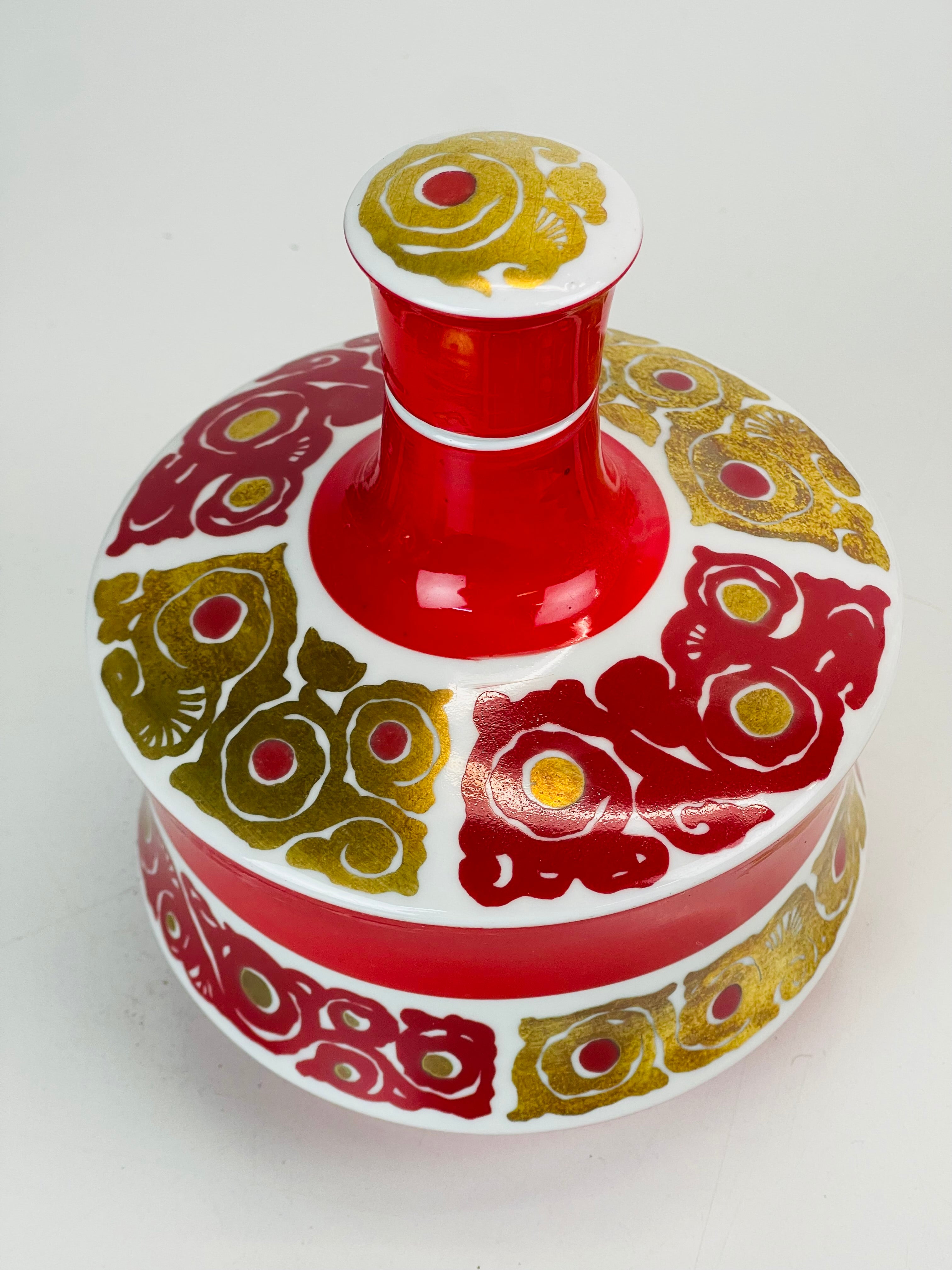 En vacker, handmålad karaff i gott skick, ca. 18 cm hög. Några orenheter i/under målfärgen. Se bilder!