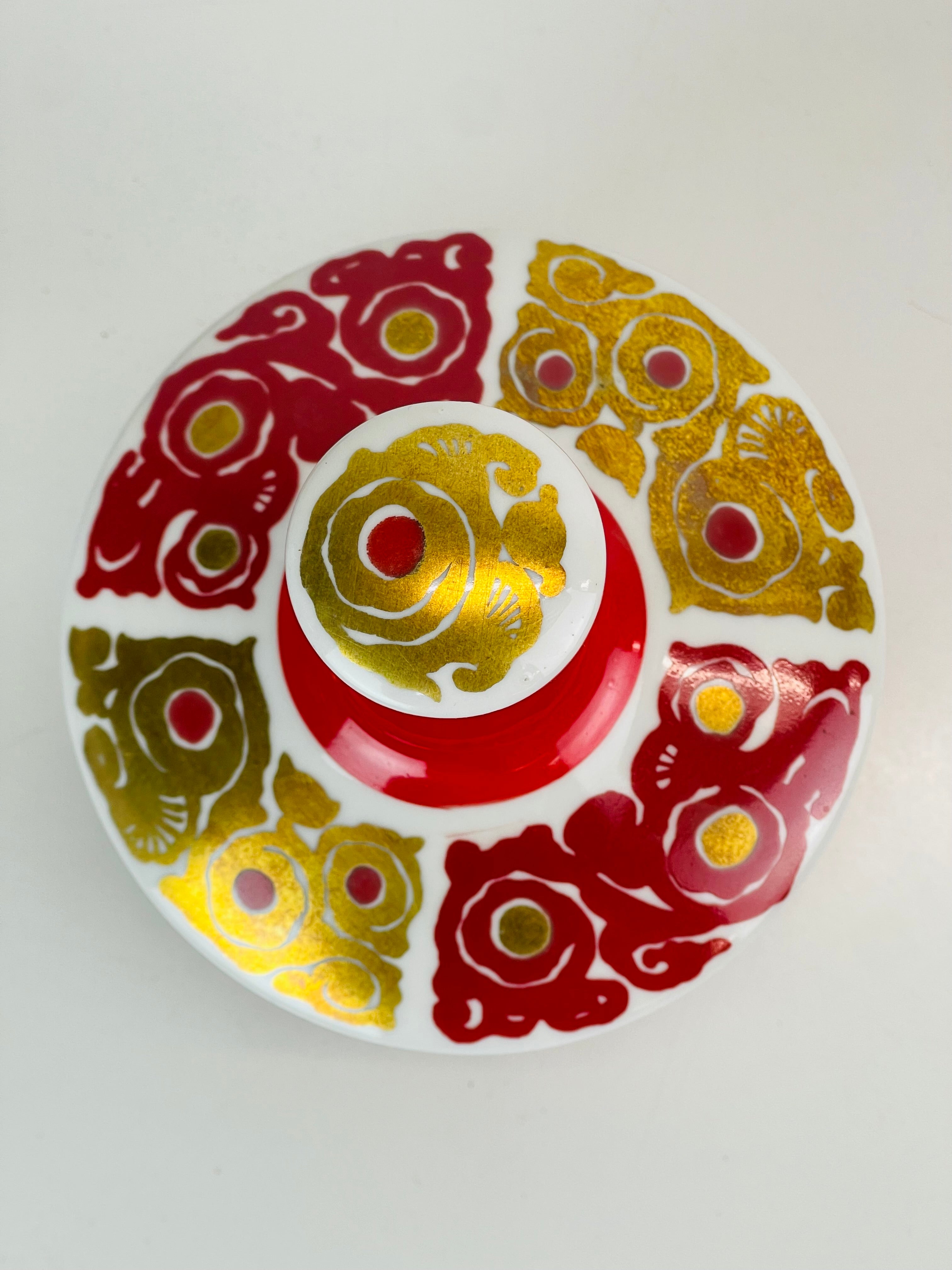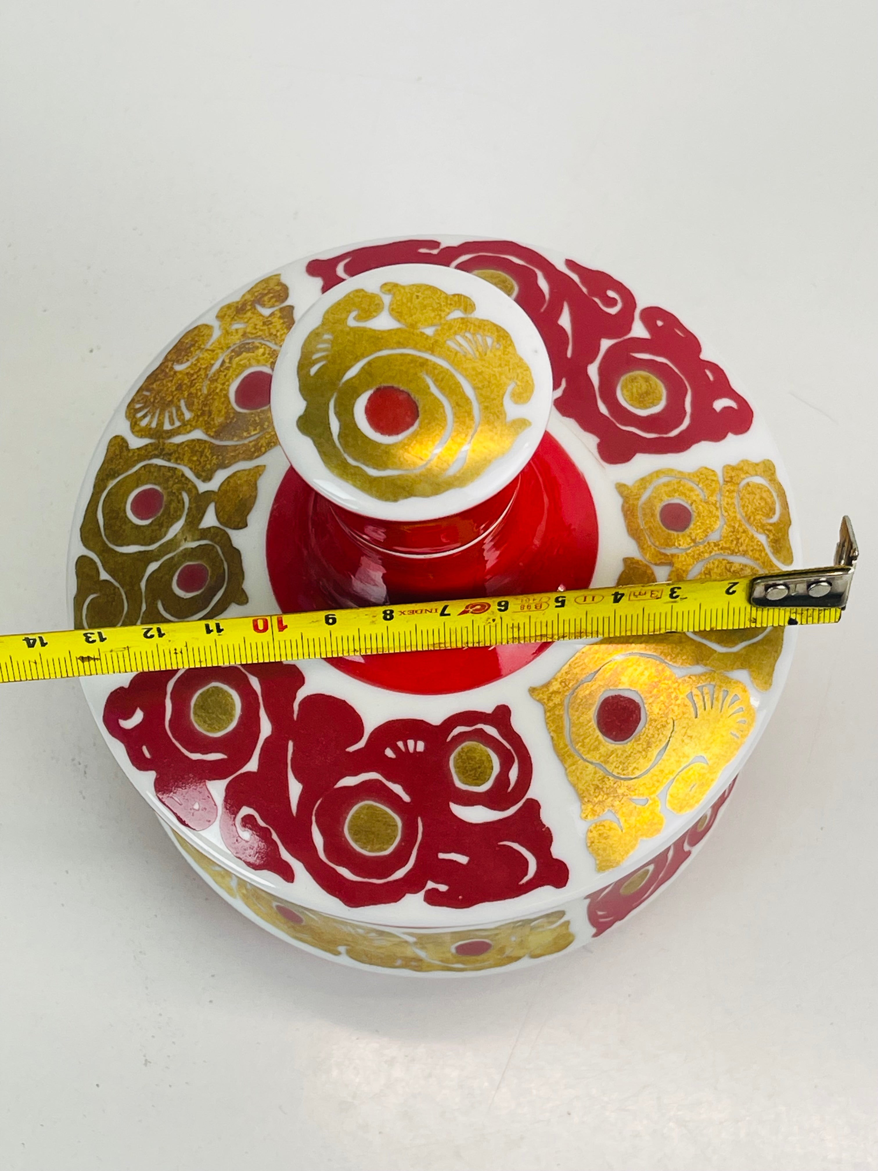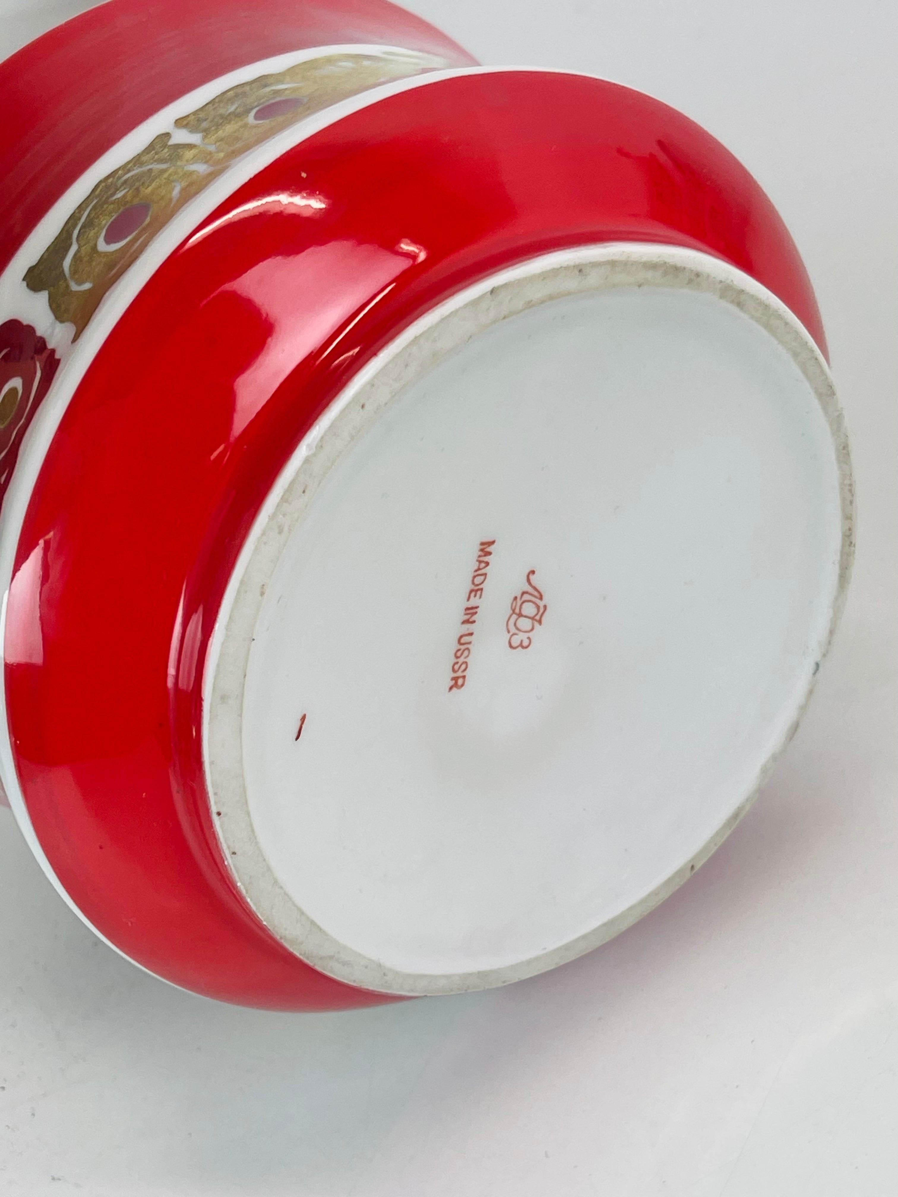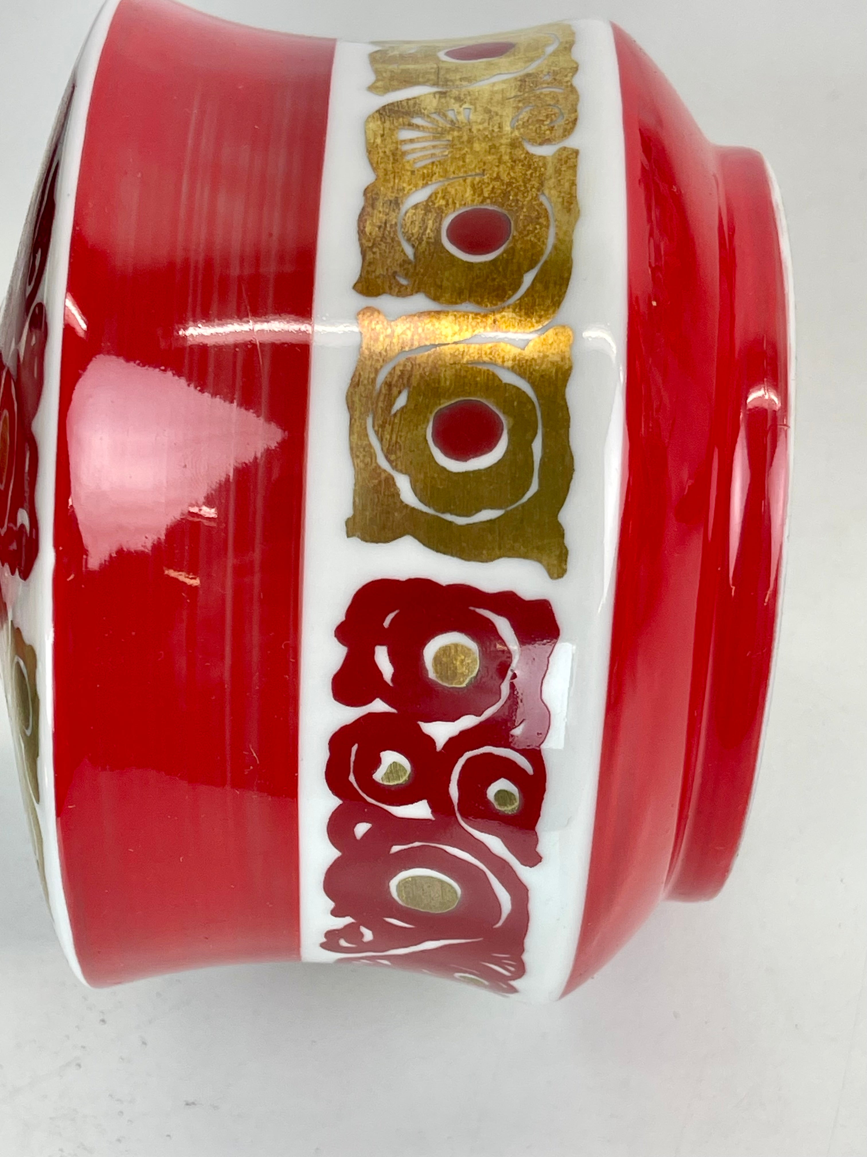 En vacker, handmålad karaff i gott skick, ca. 18 cm hög. Några orenheter i/under målfärgen. Se bilder!