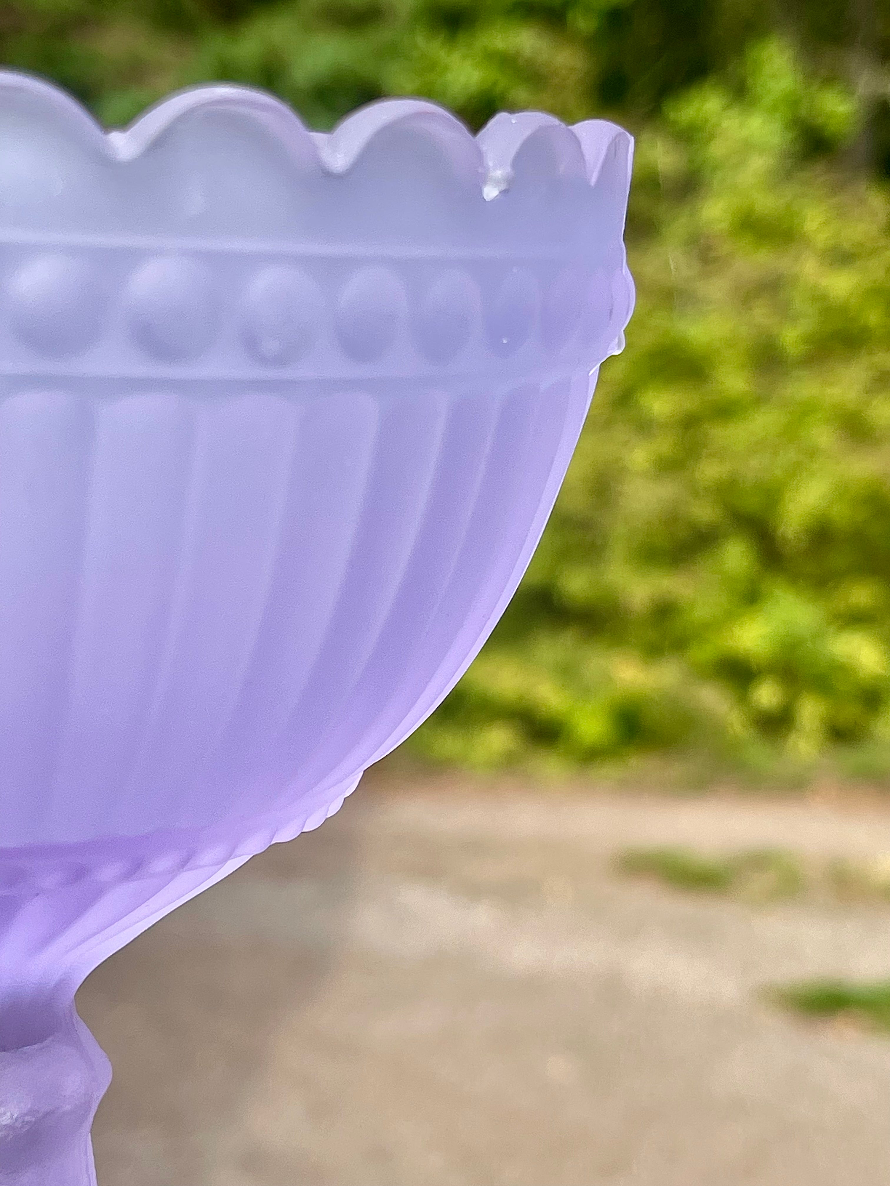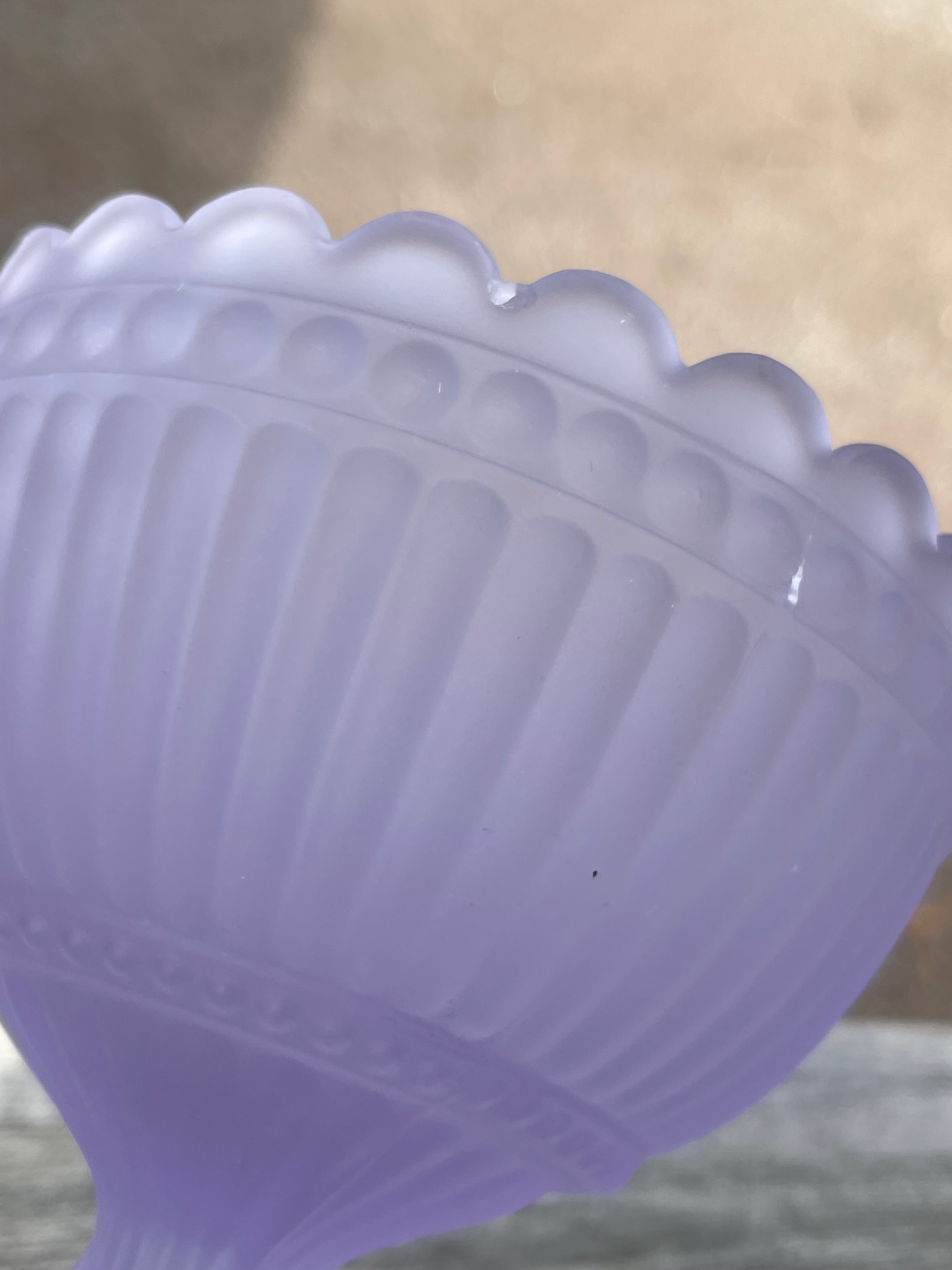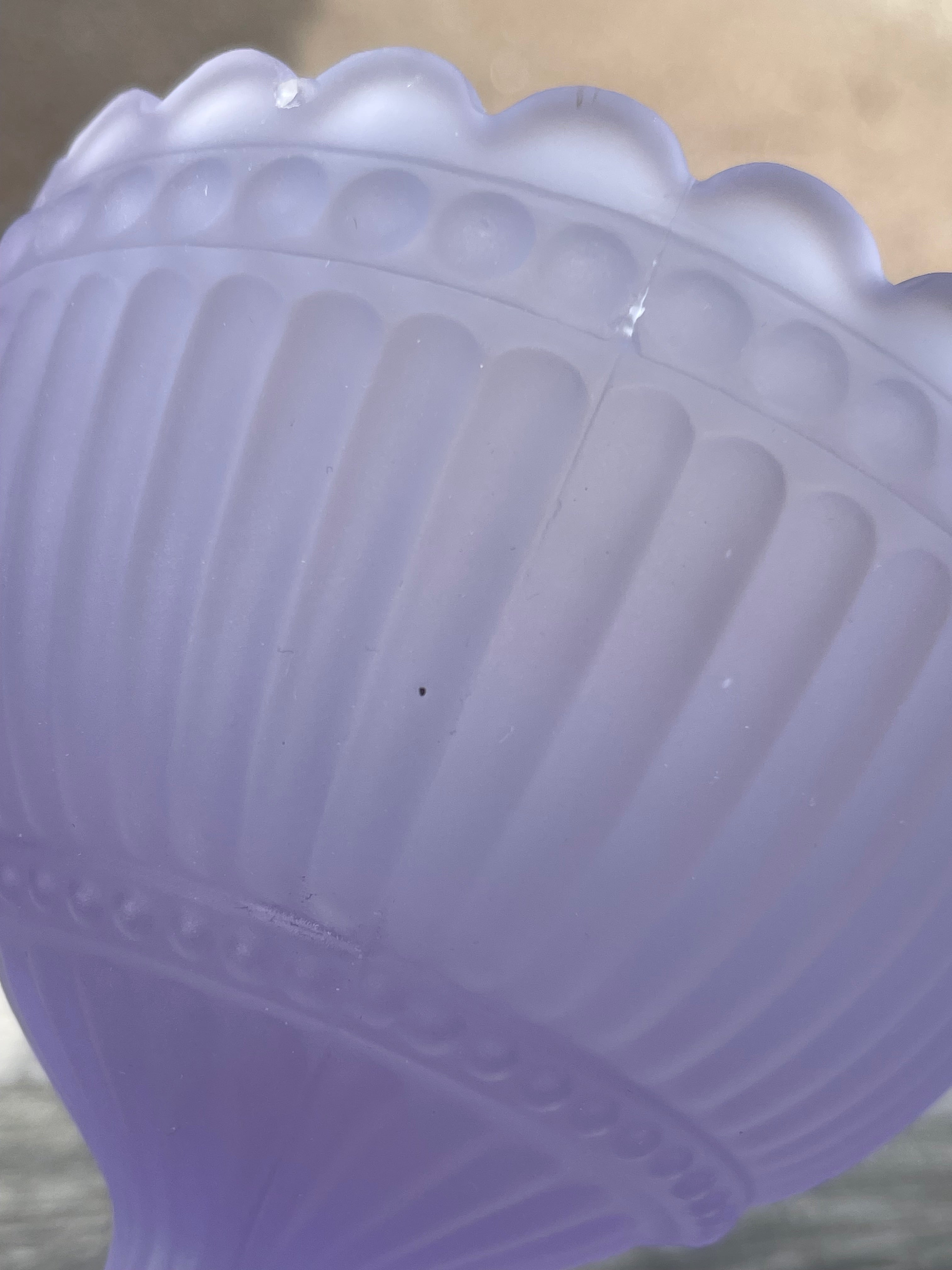 Färgen är typ matt ametist, den är lila i dagsljus och blå, ibland till och med vit i skenet från lysrör. Färgen är svår att fånga på bild exakt, den ändrar mycket beroende på vinkel och ljus.