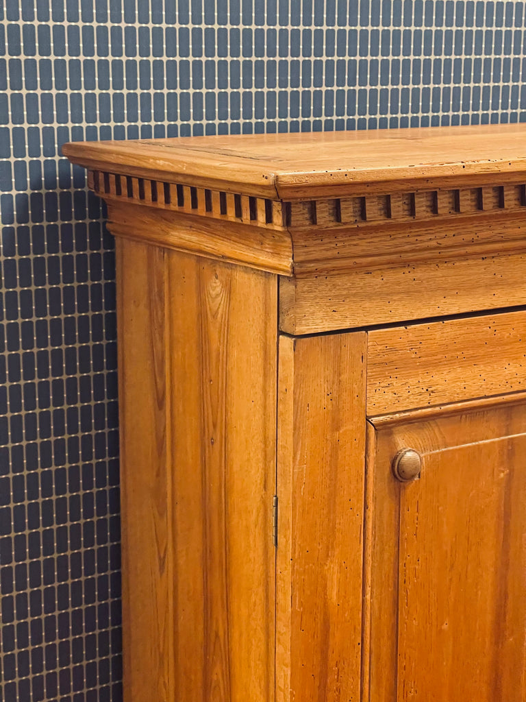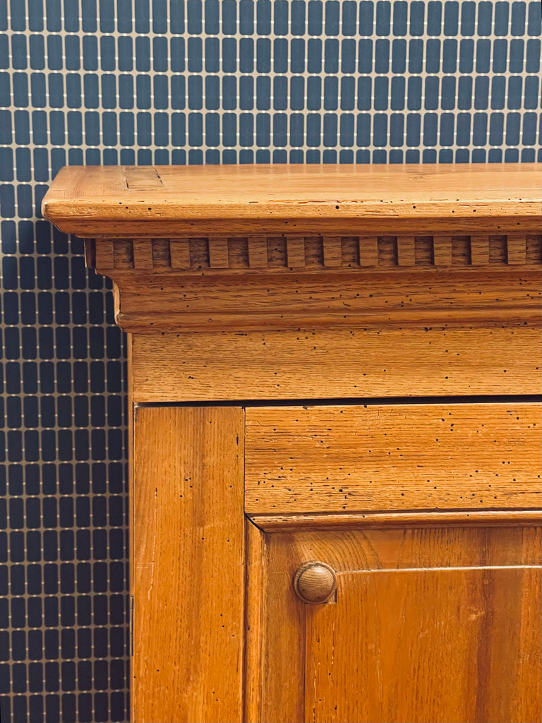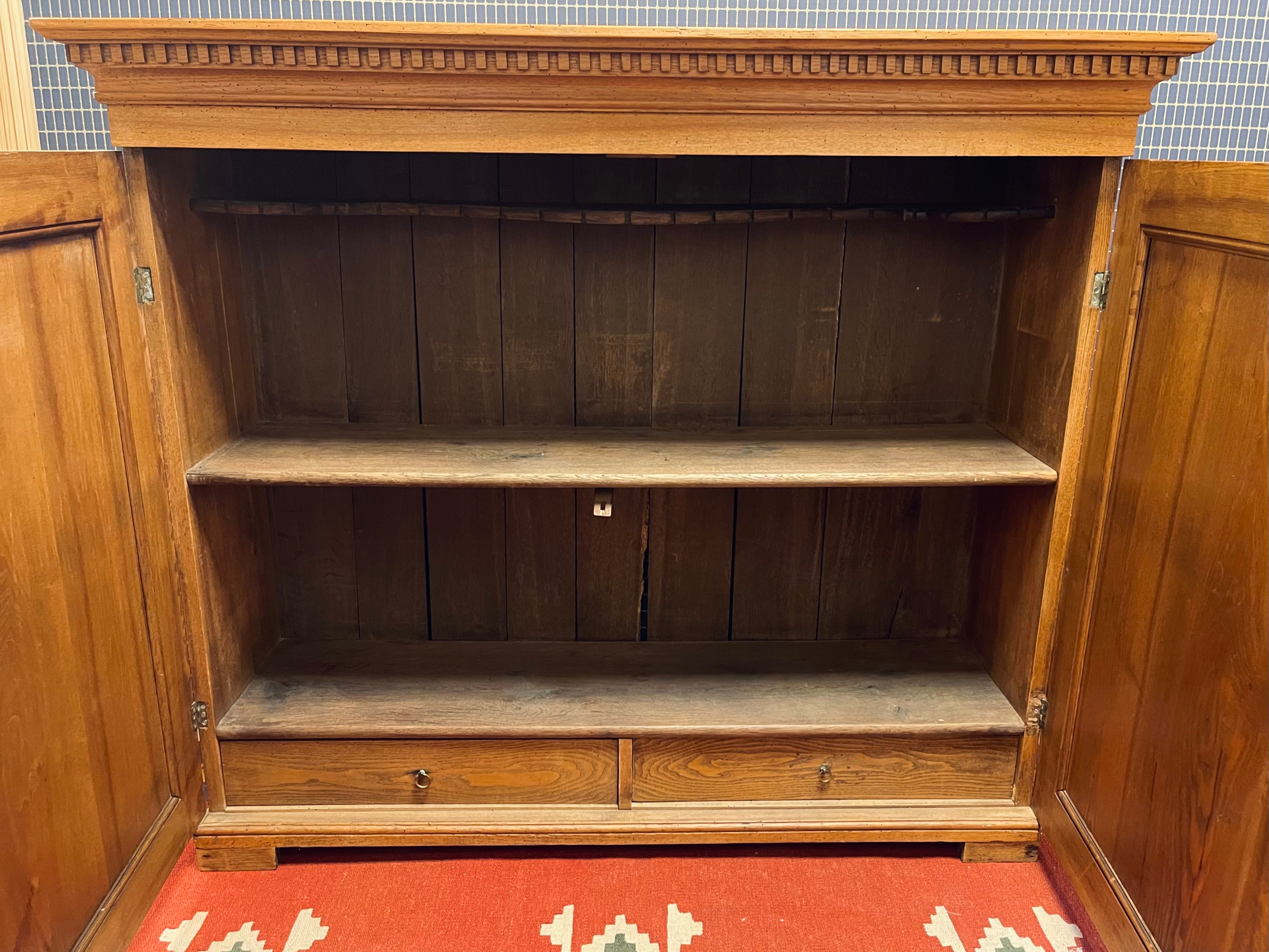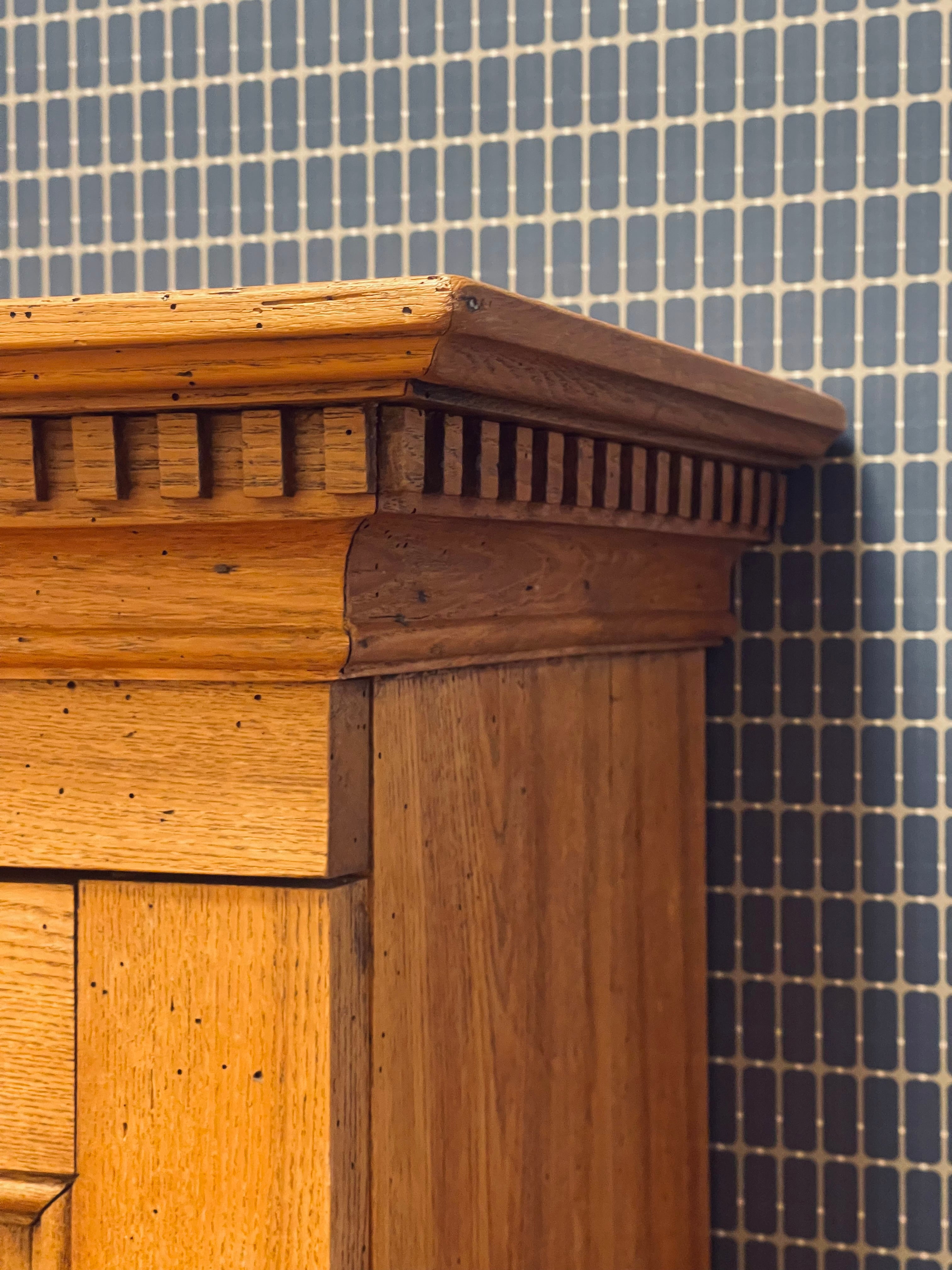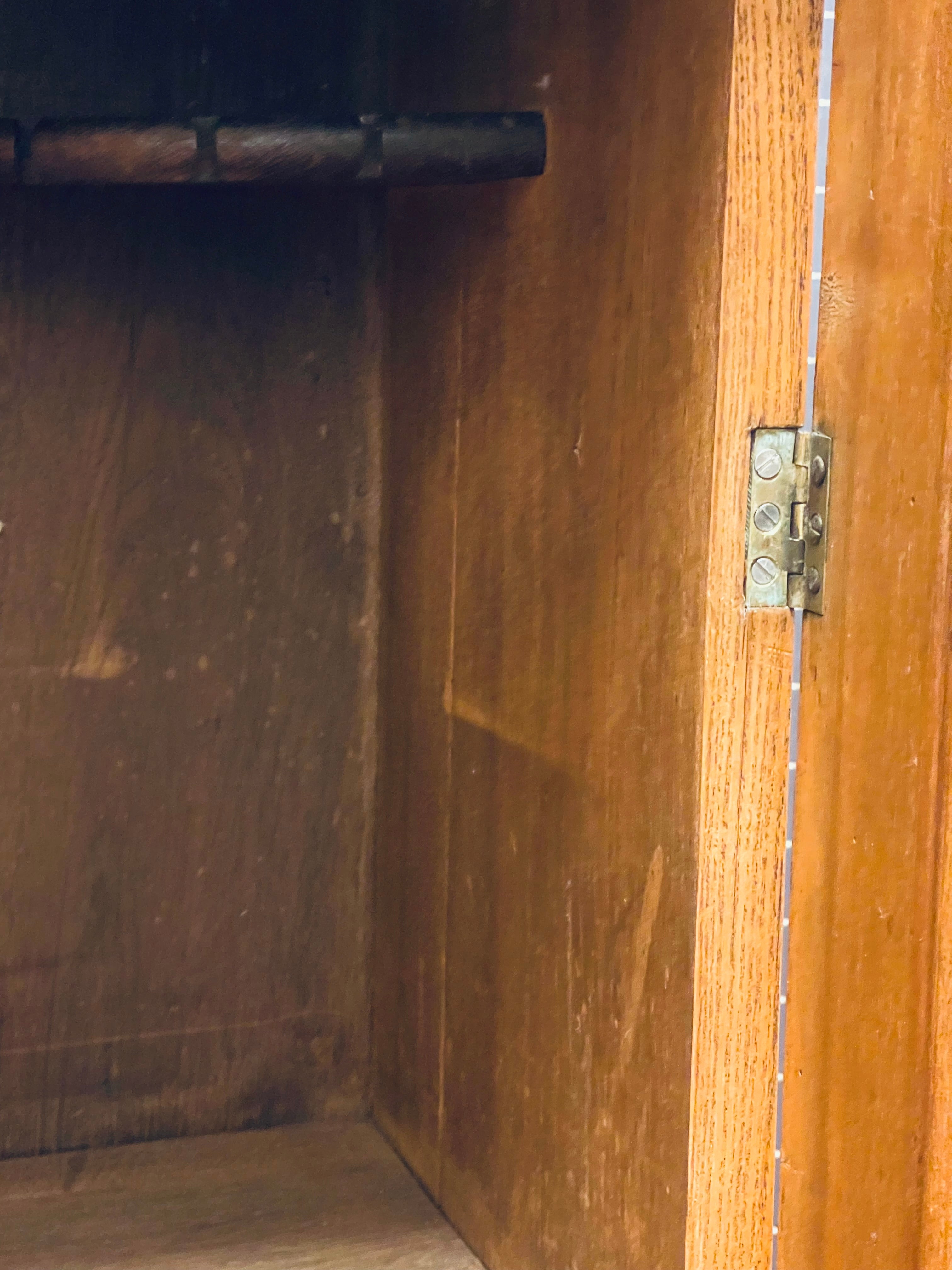 Vackert, gediget, gammalt skåp i ek. Engelsk stil, troligtvis 1800-talets första hälft. I gott skick, lite maskstunget men ingenting som stör, de är behandlade och träet är friskt och i gott skick.