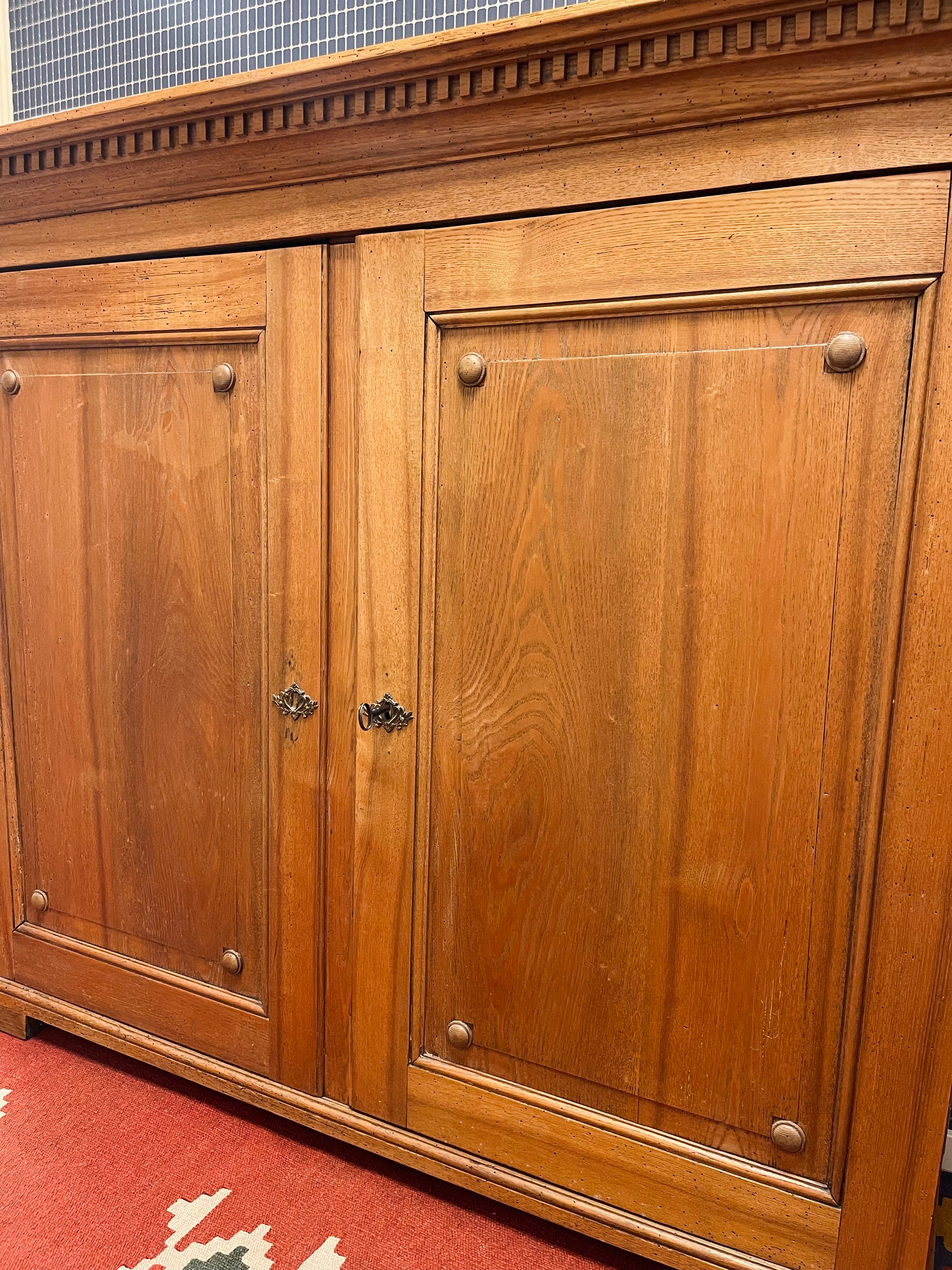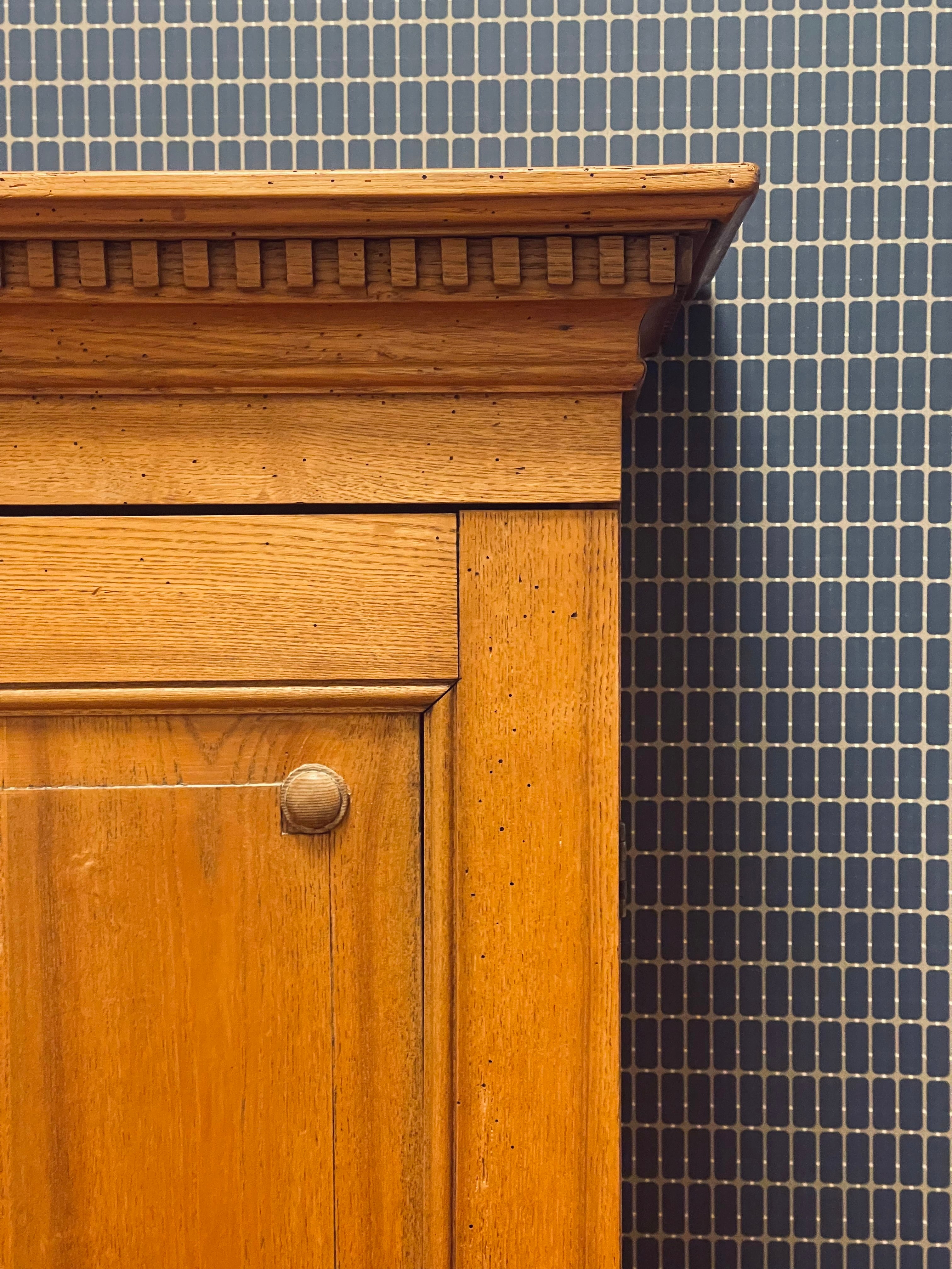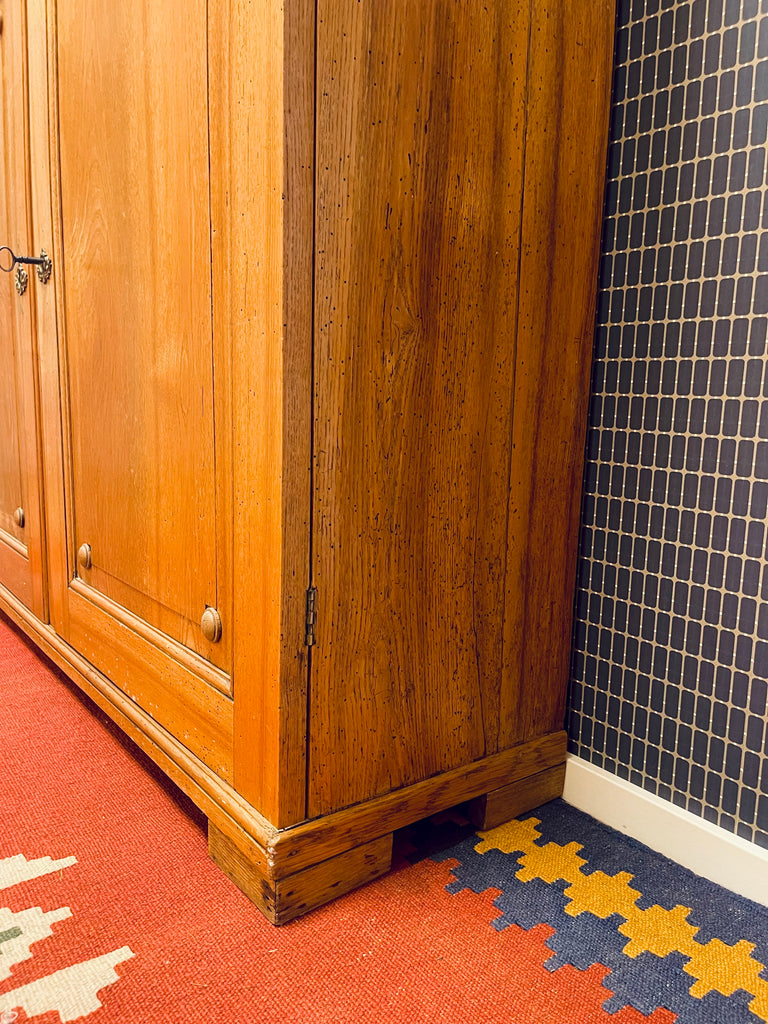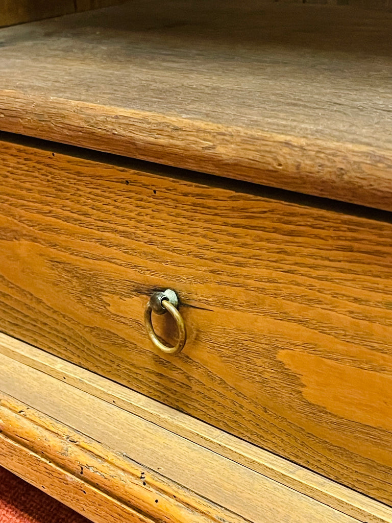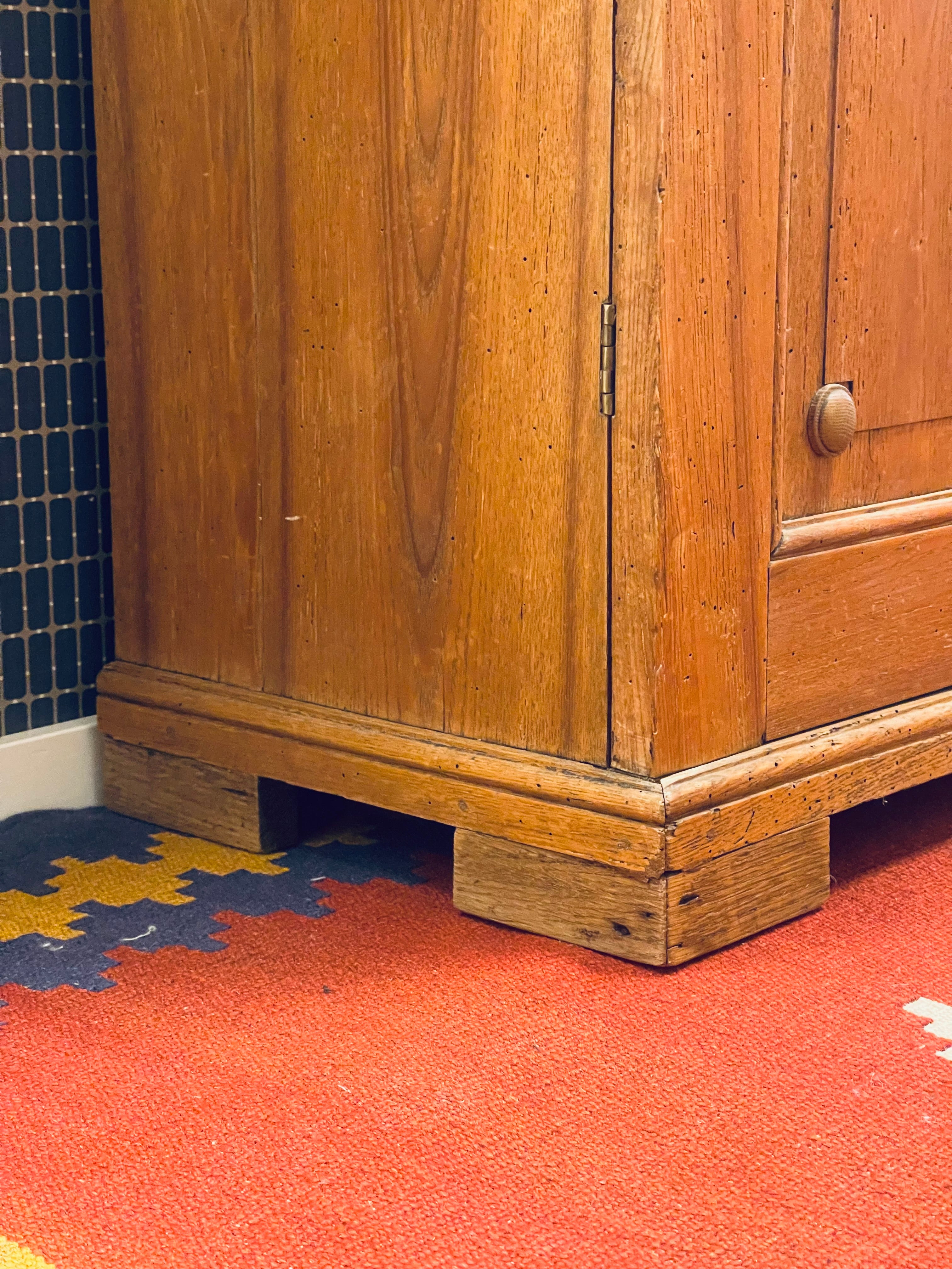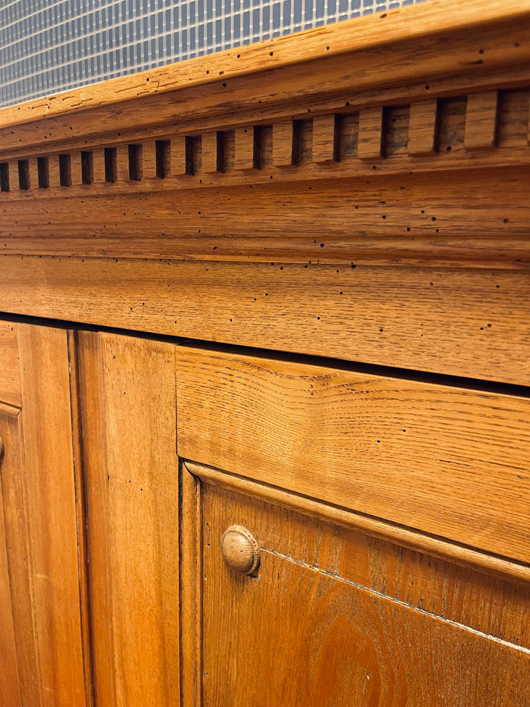 Vackert, gediget, gammalt skåp i ek. Engelsk stil, troligtvis 1800-talets första hälft. I gott skick, lite maskstunget men ingenting som stör, de är behandlade och träet är friskt och i gott skick.