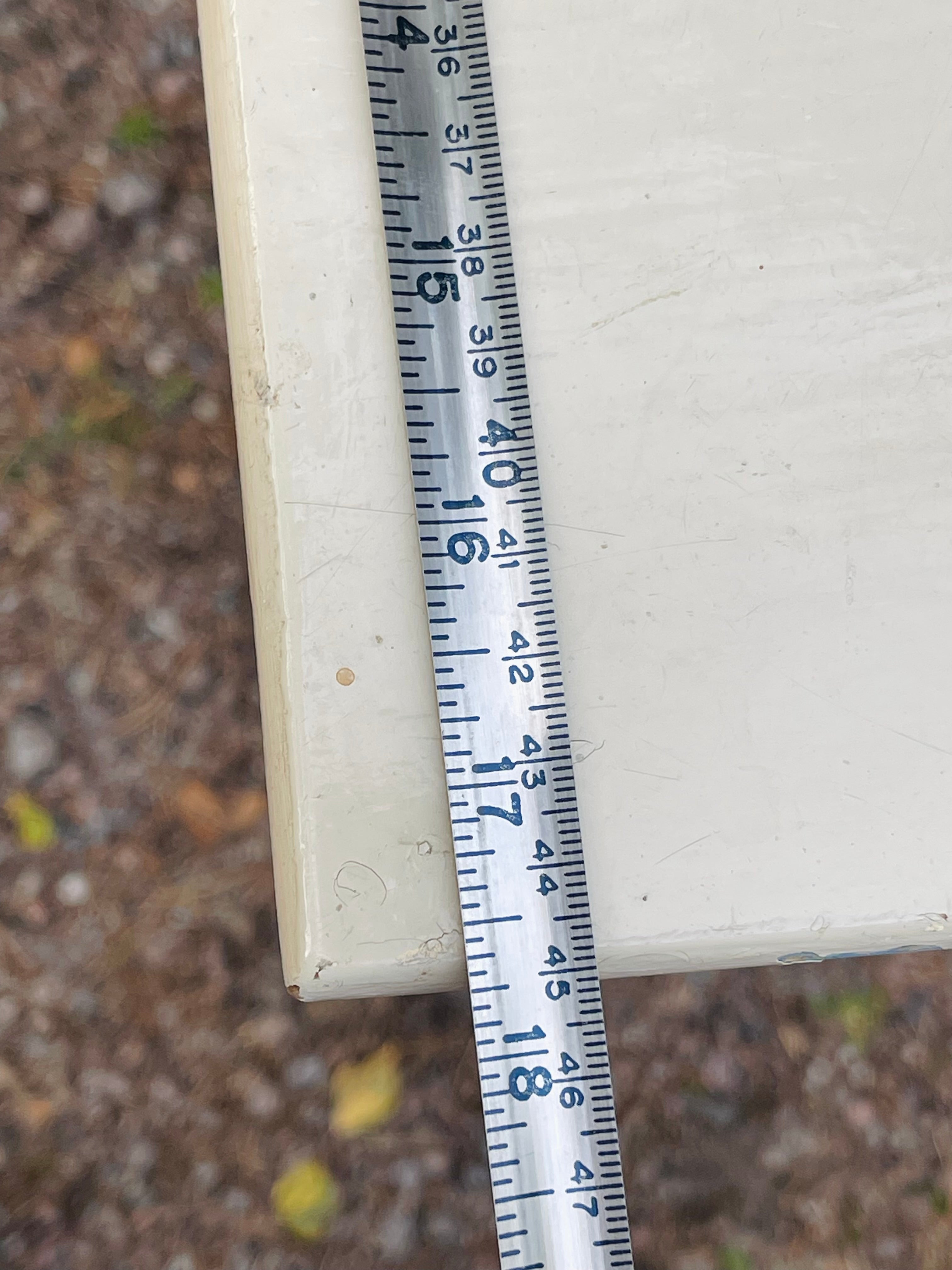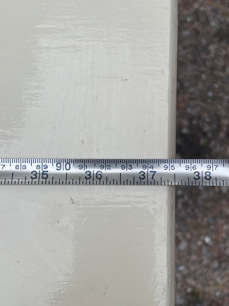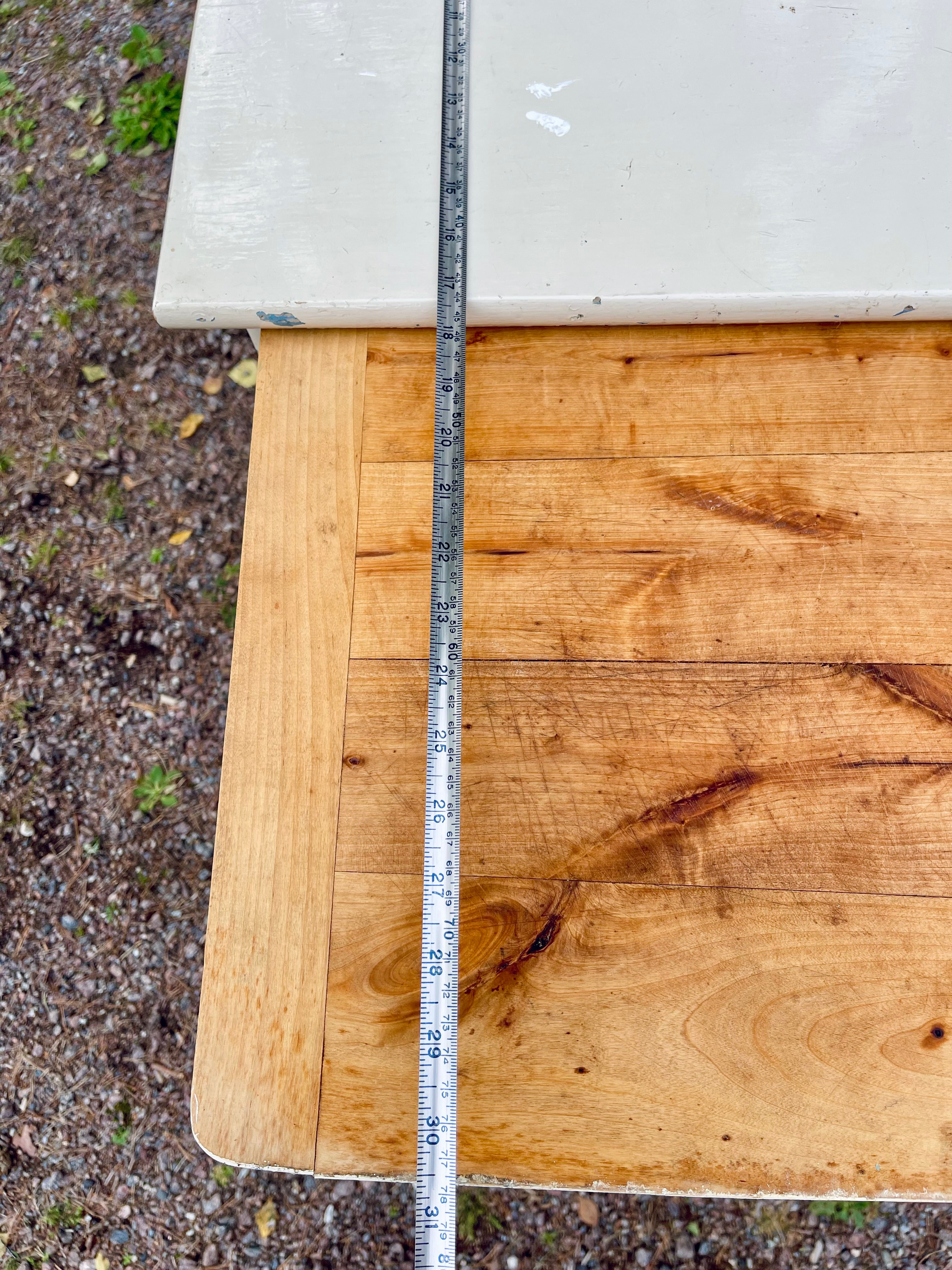 Den har en hel del färgskav och skulle säkert komma mera till sin rätt om den fick ny målfärg, men den är stadig och hel redan så som den är så kan man leva med färgskaven så är den färdig att använda som sådan.