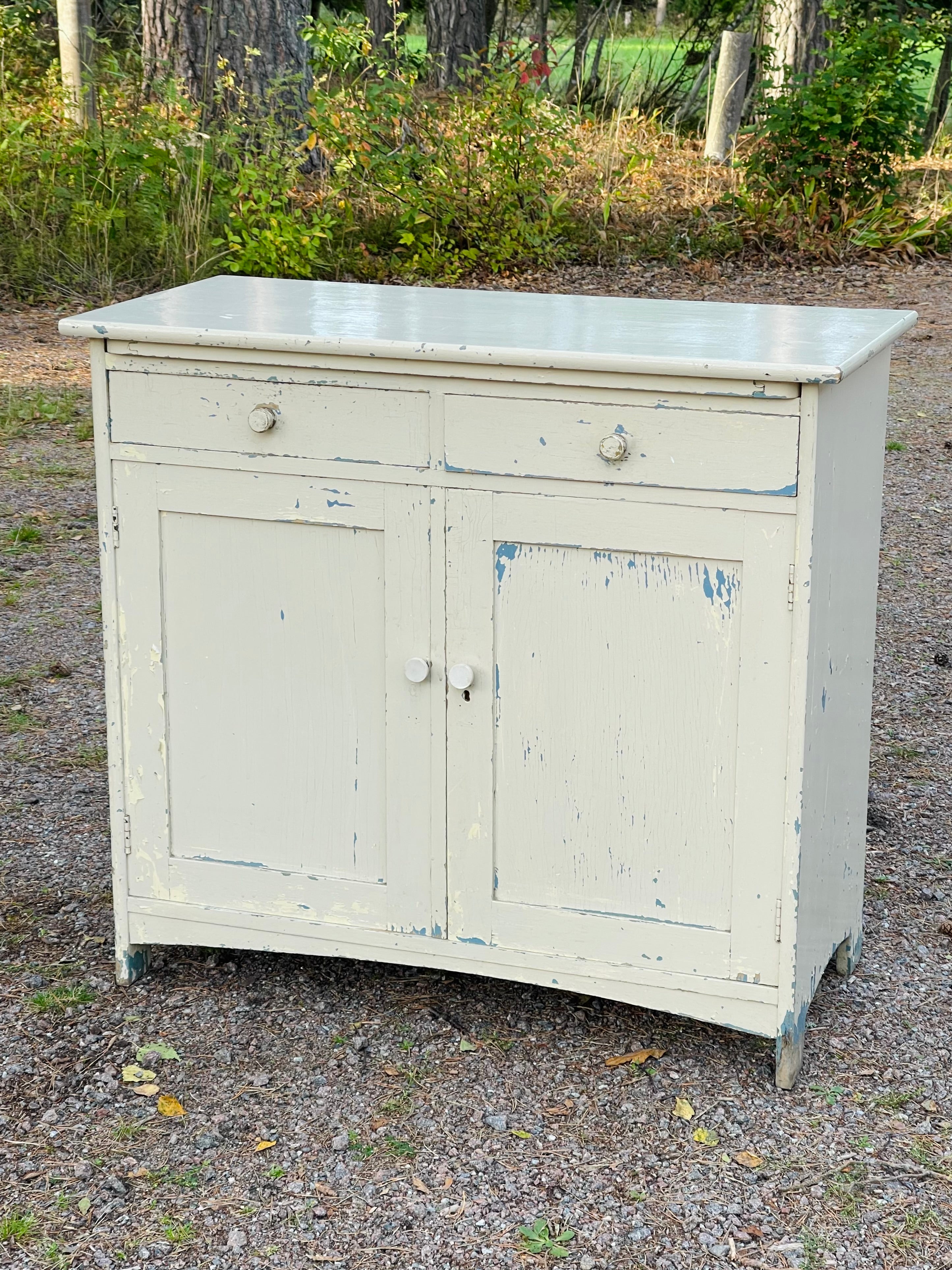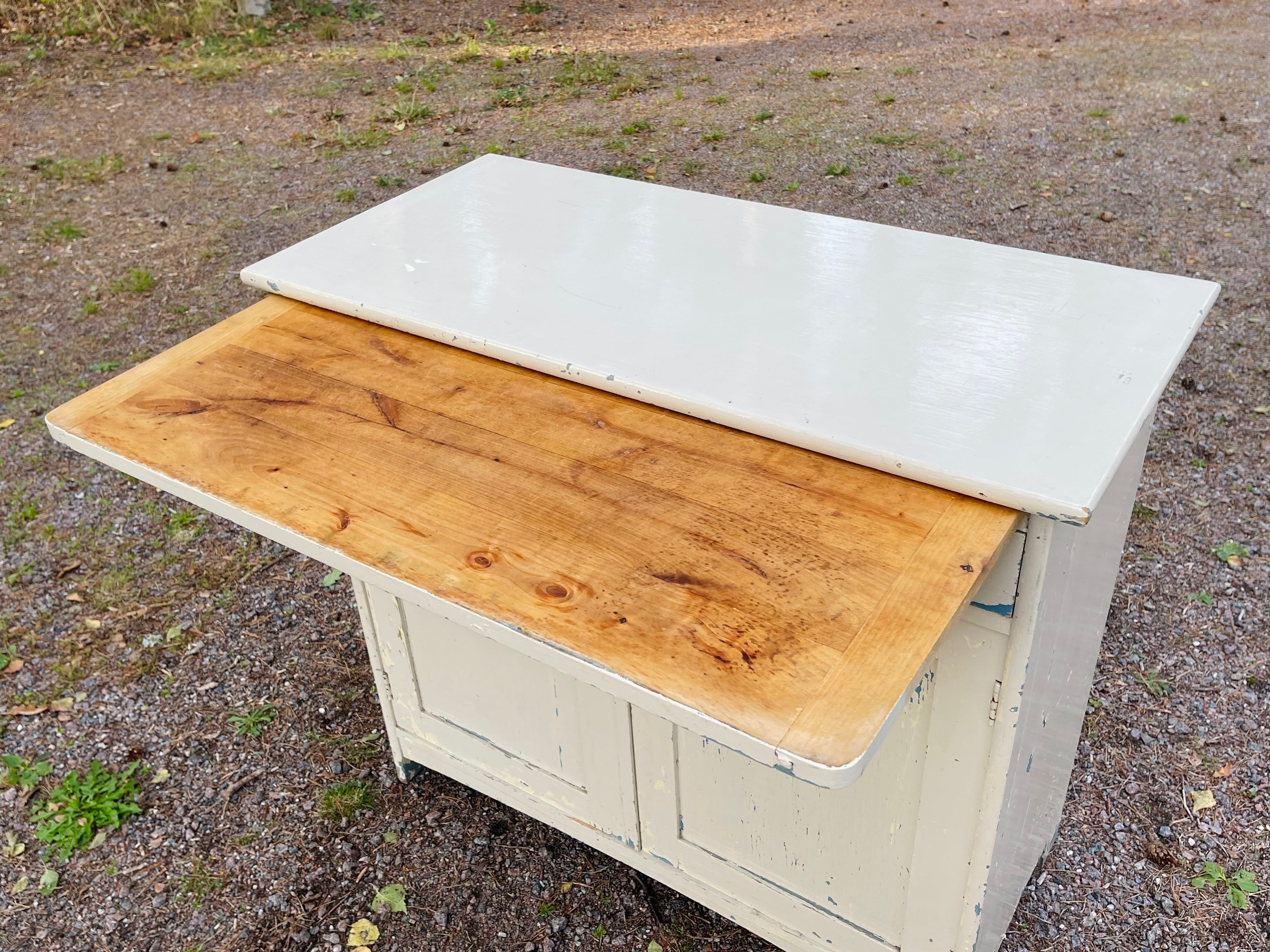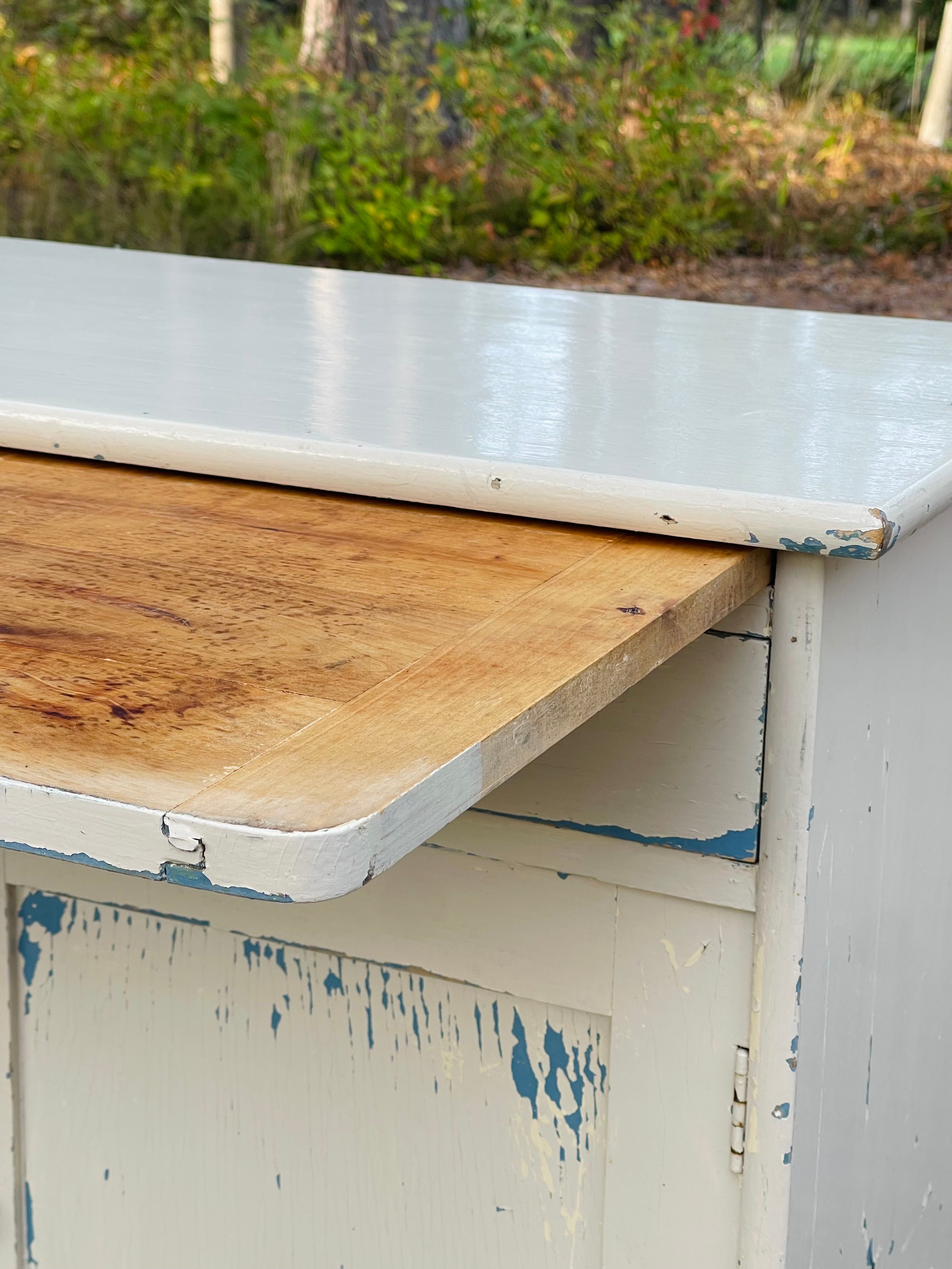 Gammalt skåp/byrå avsedd för kök då det finns en härlig, utdragbar skiva till.