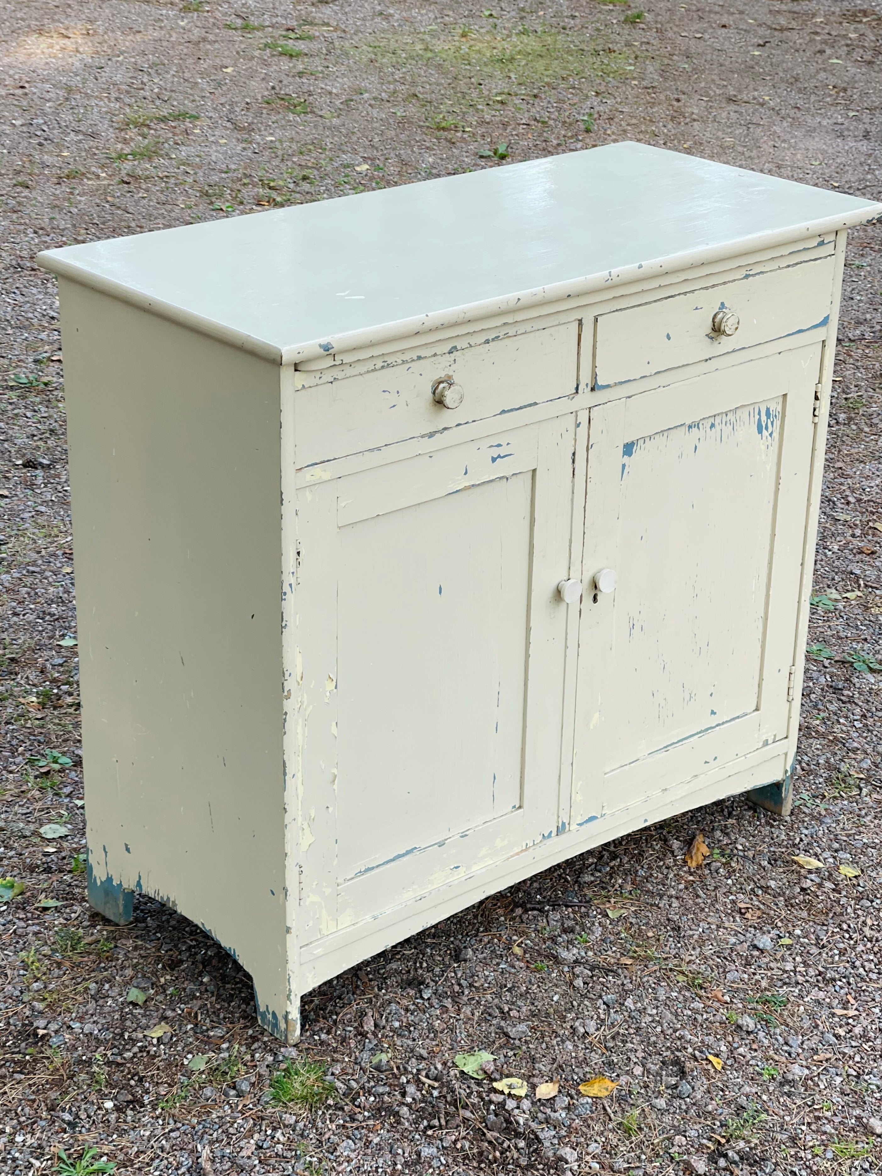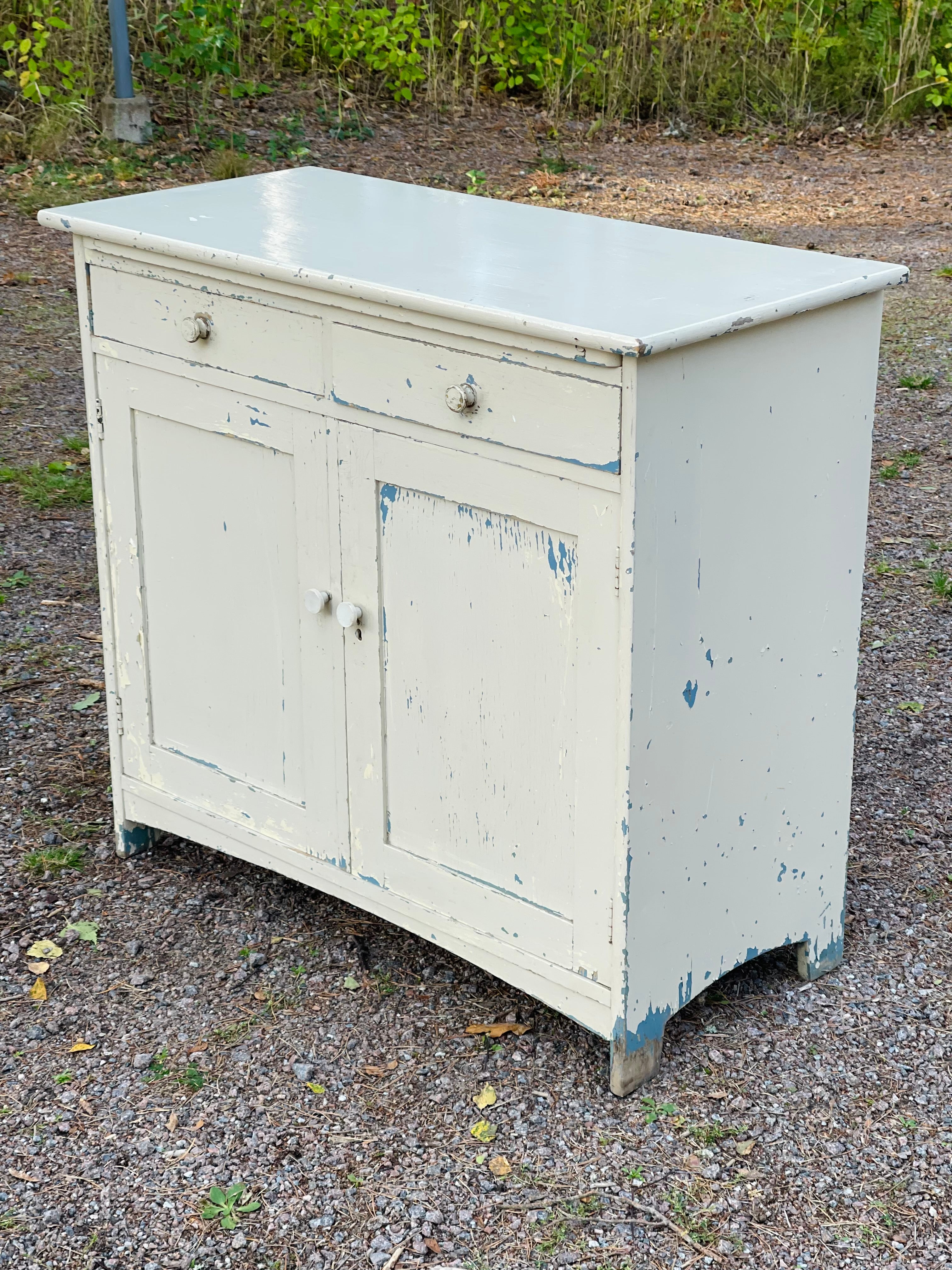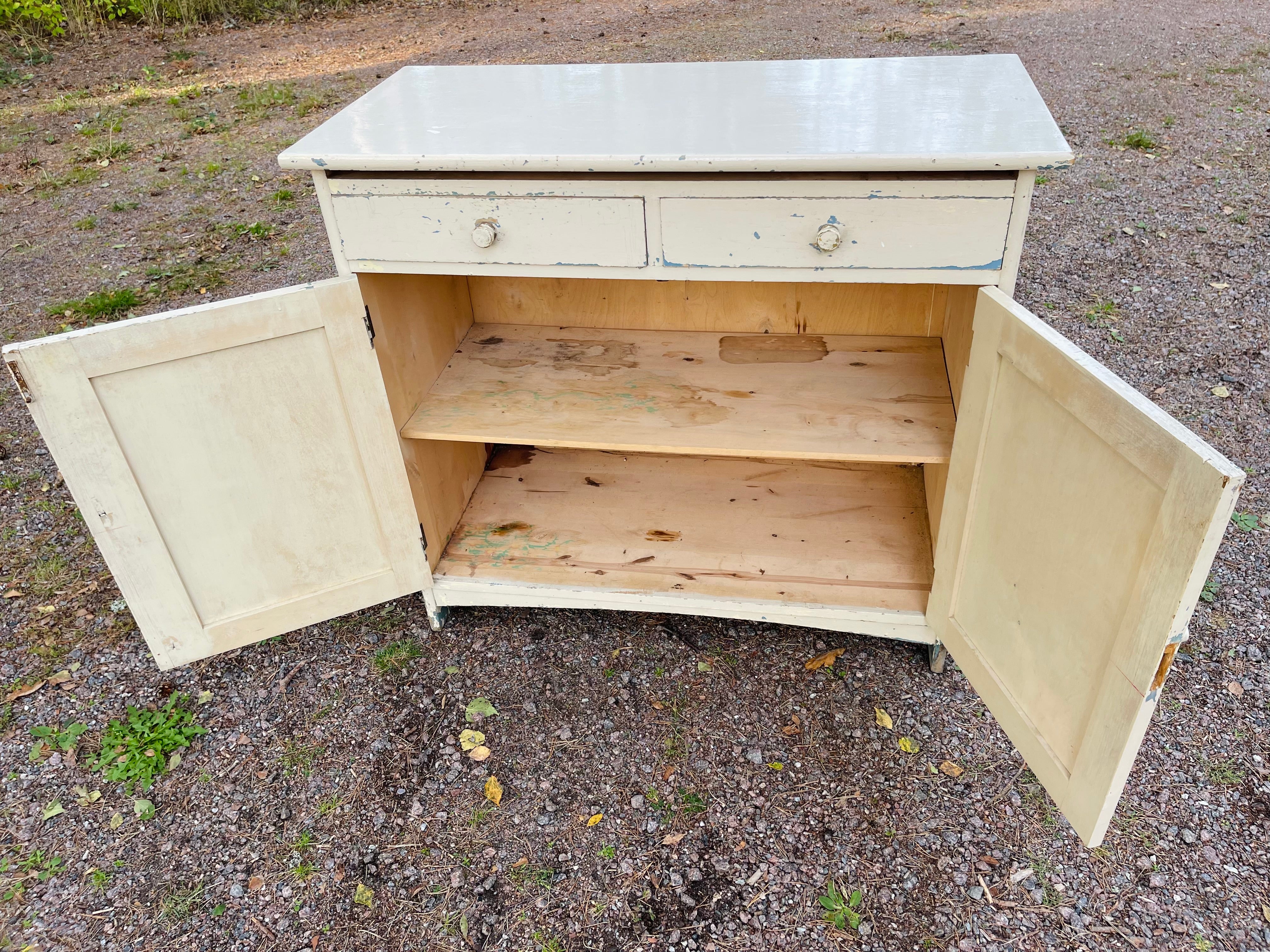 Gammalt skåp/byrå avsedd för kök då det finns en härlig, utdragbar skiva till.