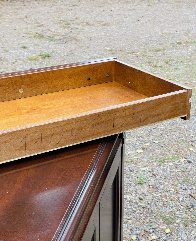 Jättevacker gammal byrå, på baksidan kan man läsa att den är tillverkad av Grange och tillverkad enligt traditionell skåpsnickerikonst från Saint-Symphorien-sur-Coise, Frankrike.
