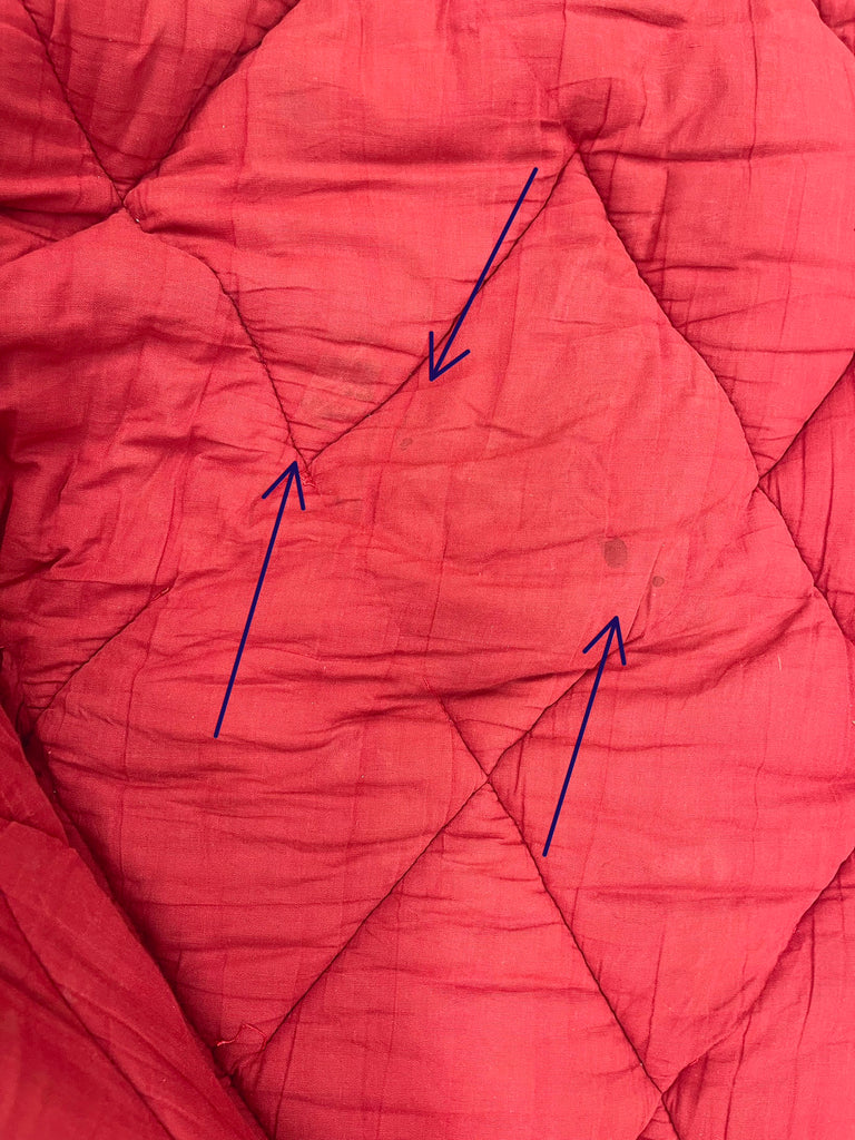 OBS! Täcket är använt, bär spår av användning och är således inte i perfekt skick! Alla täcken vi säljer är tvättade och fräscha men fläckar och små hål kan förekomma! Vi har försökt dokumentera alla defekter så gott det går på bilderna, så kolla igenom bilderna noggrant före köp!