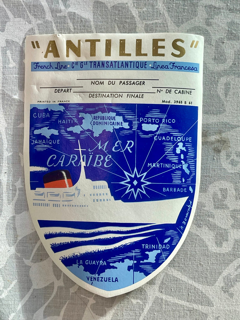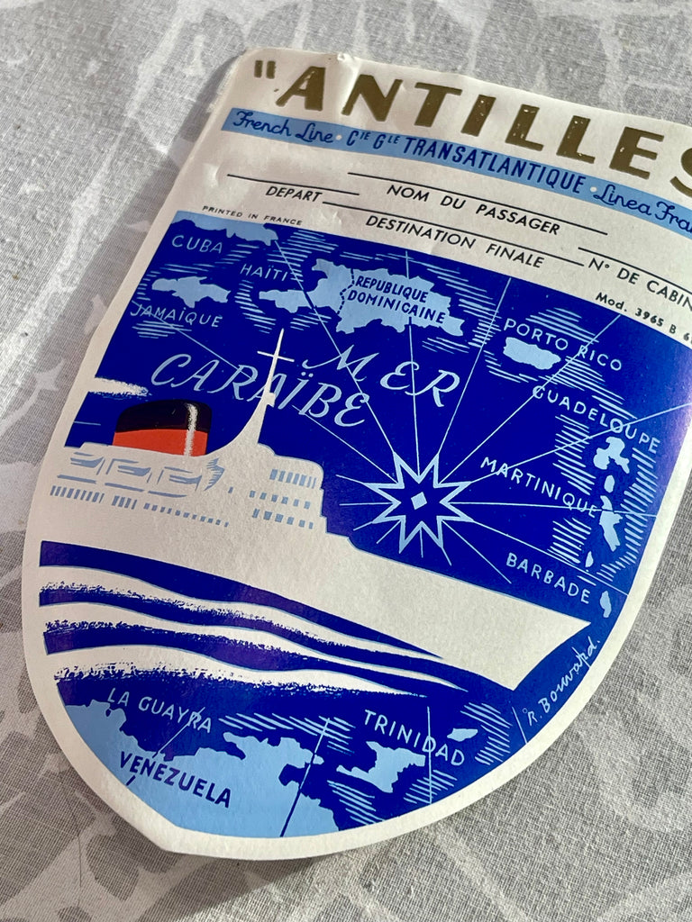 Vintage "Antilles" ocean liner-etikett