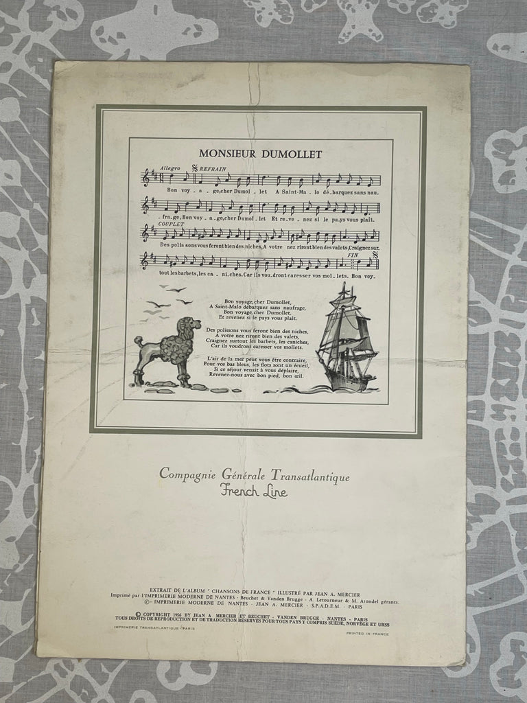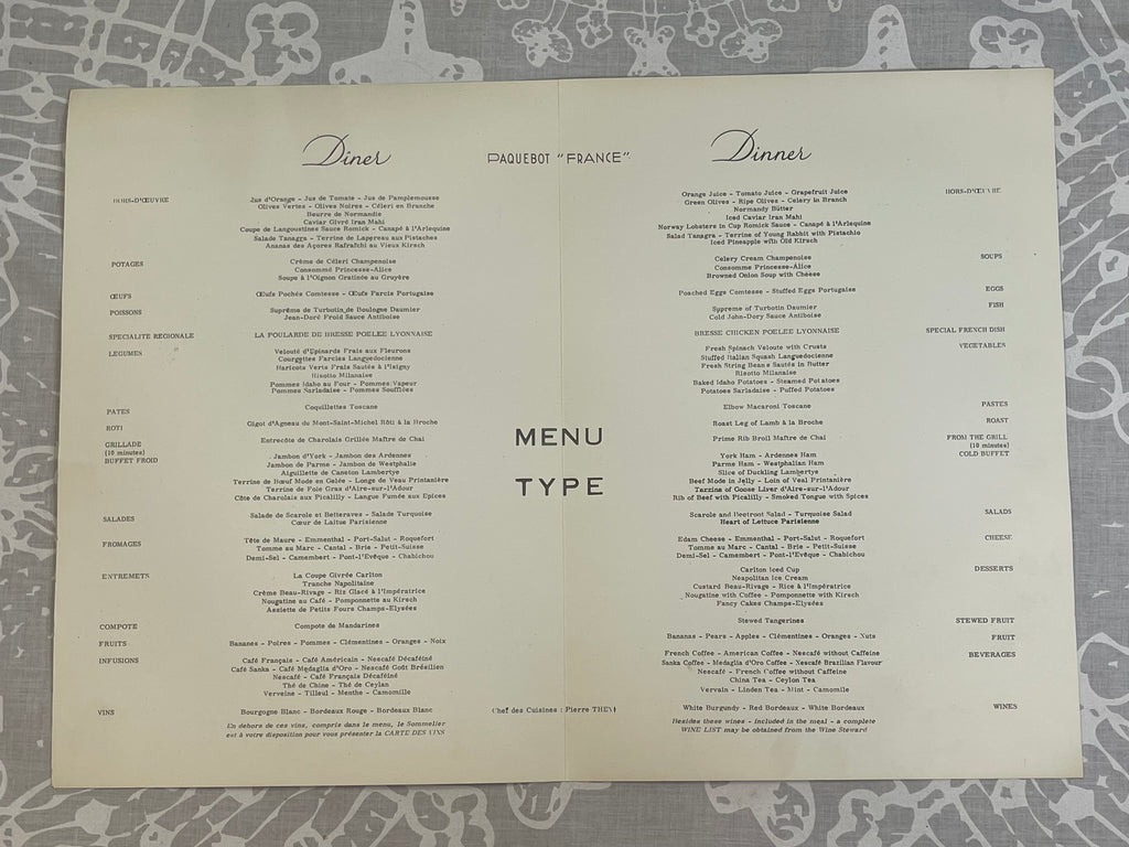 Meny från det franska rederiet Compagnie Générale Transatlantique, French Line, 1962