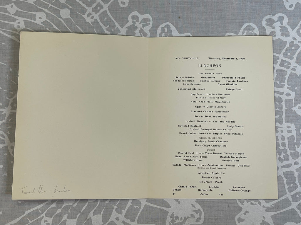 Meny November 19, 1938, Quenn Mary, Cunard White Star Line