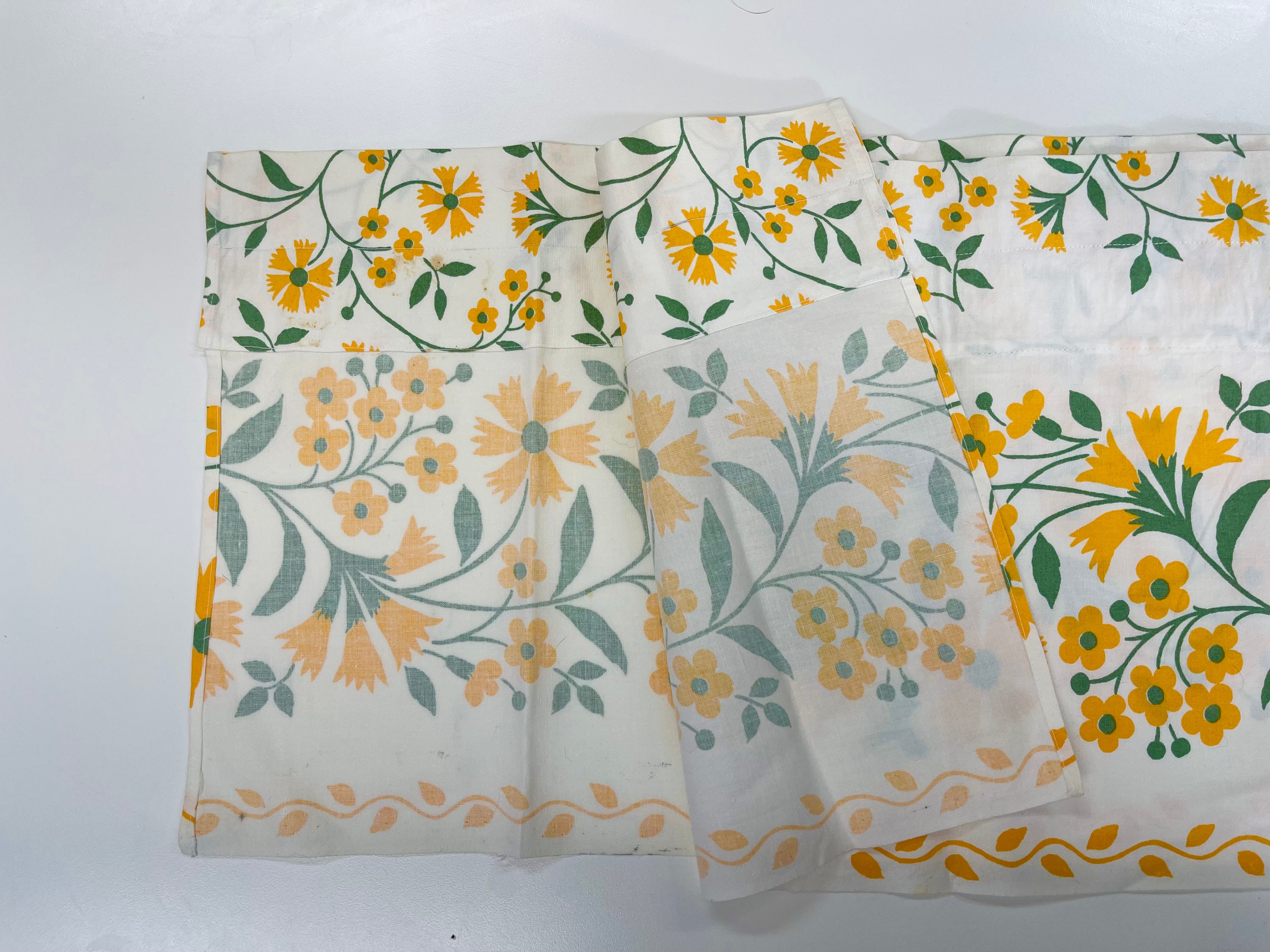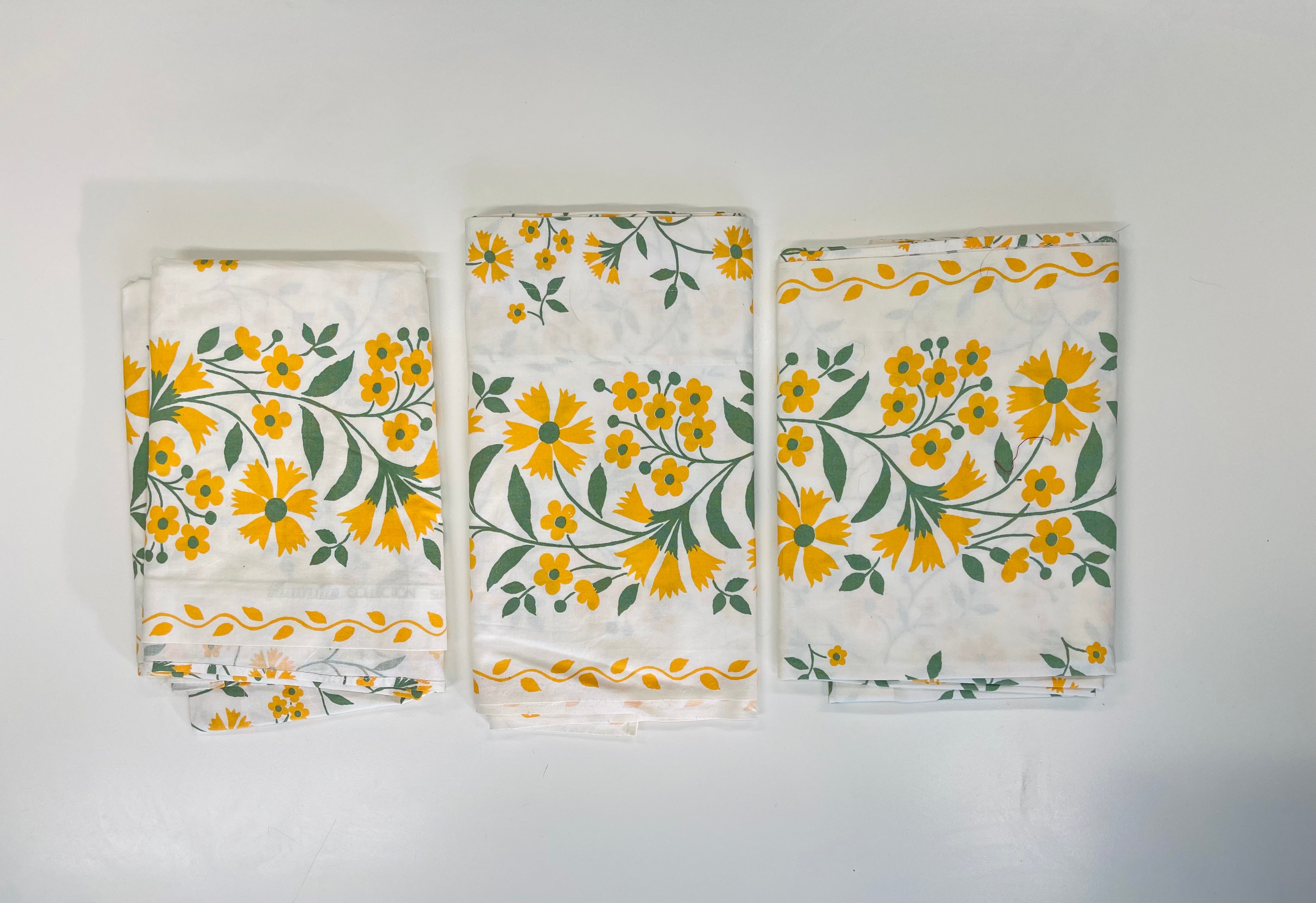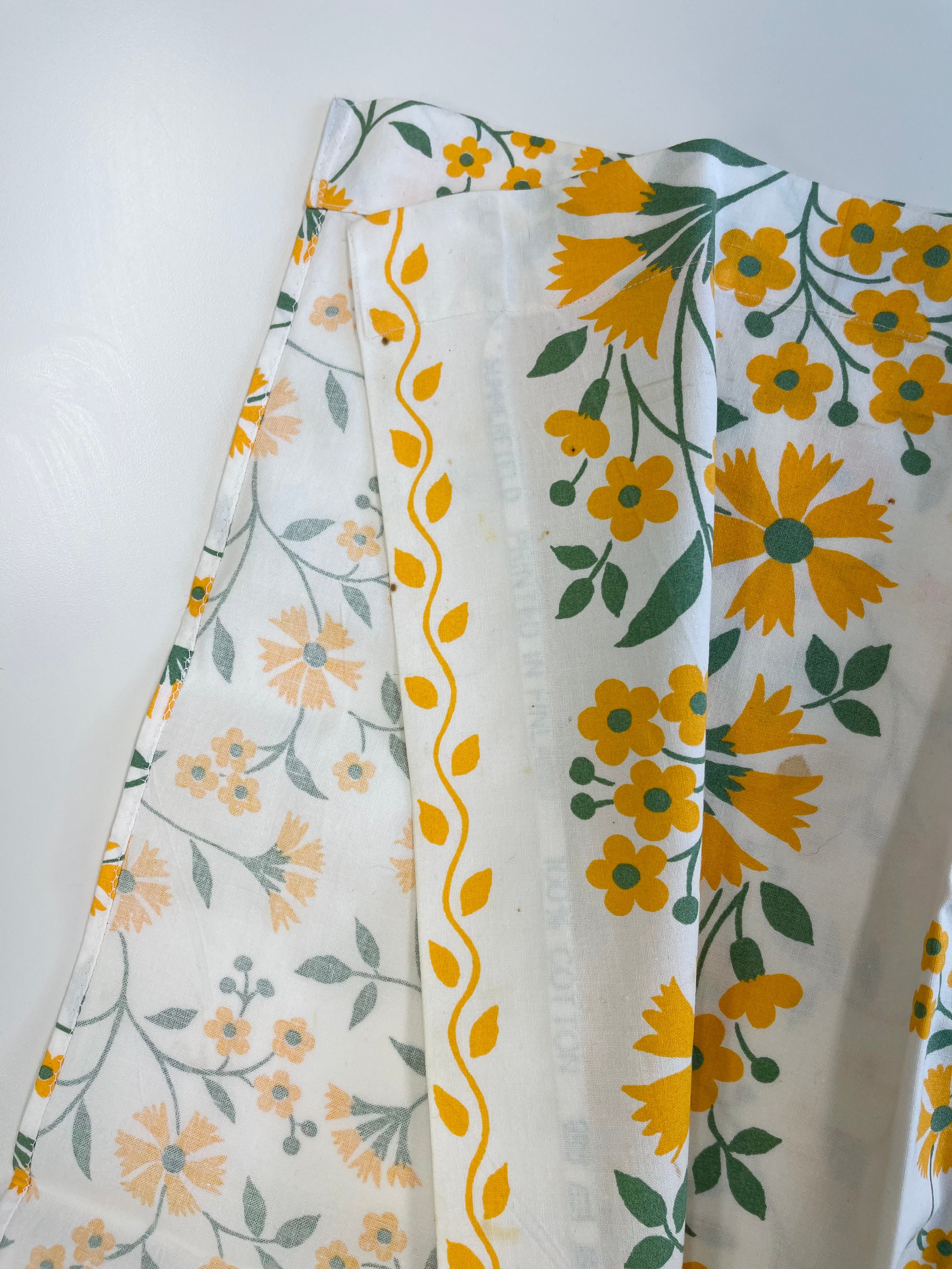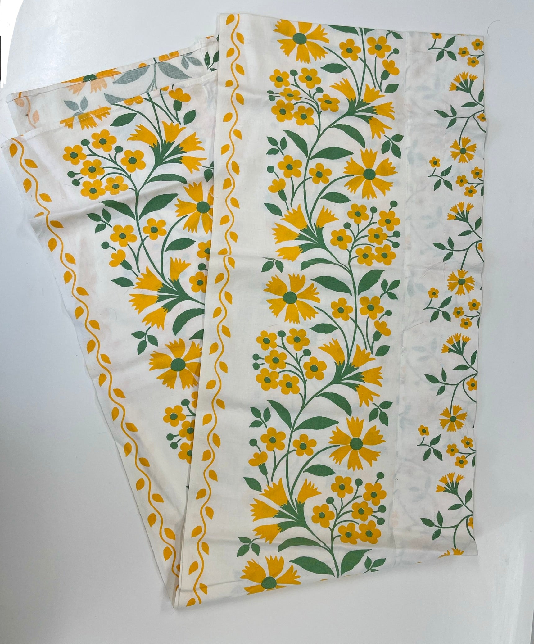 Jättefina vintagegardiner i bomullstyg, troligtvis från 1960-talet. Vitt botten, dekorerat med gul-orange blommor (varm gul färg). 🌼 Två längder och en kappa. Några små fläckar förekommer men överlag i jättefint skick. Hemmagjorda men tyget är tryckt och tillverkat i Finland. 🇫🇮