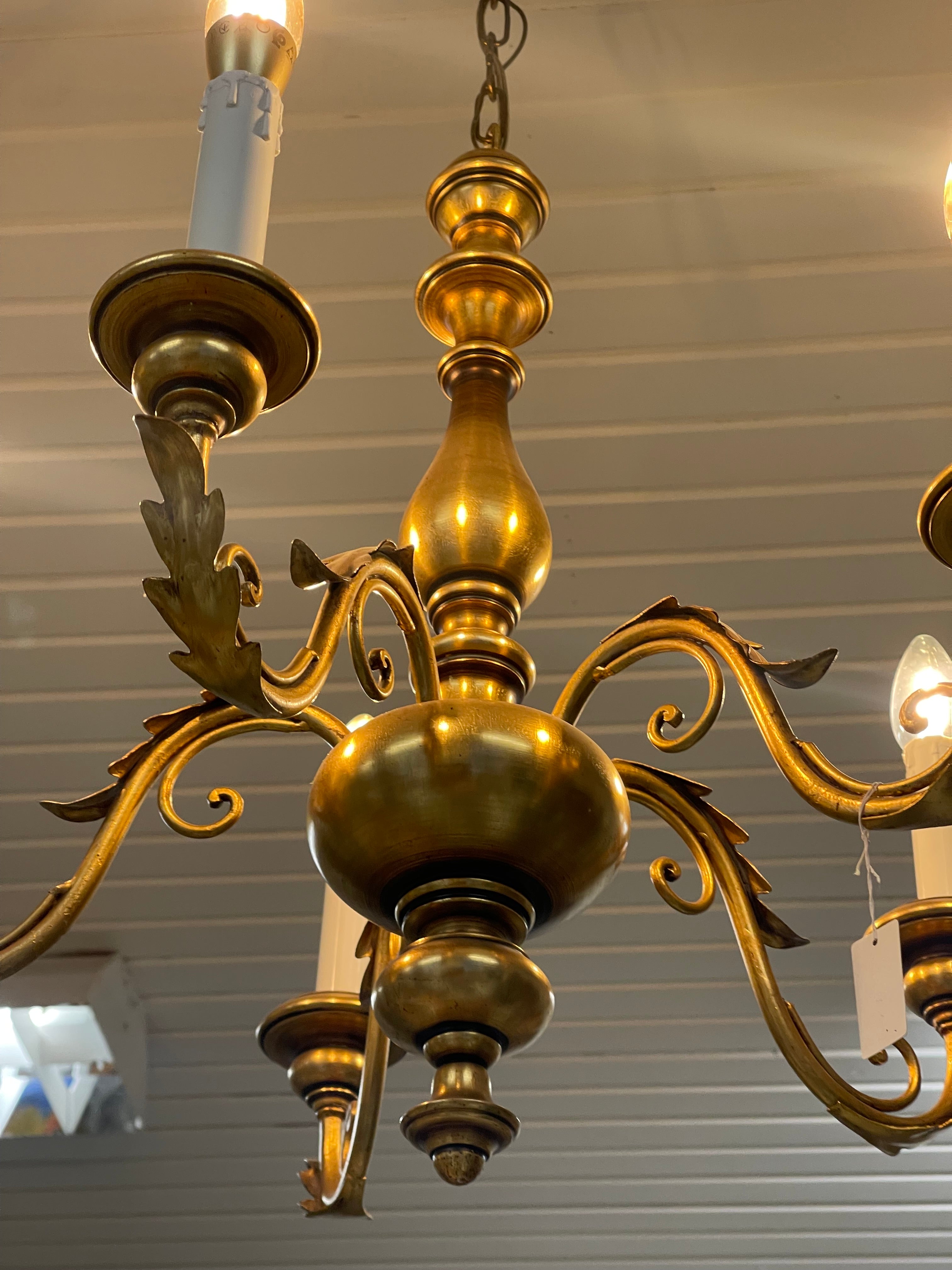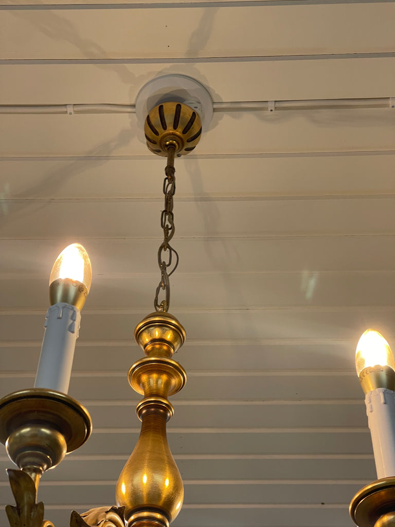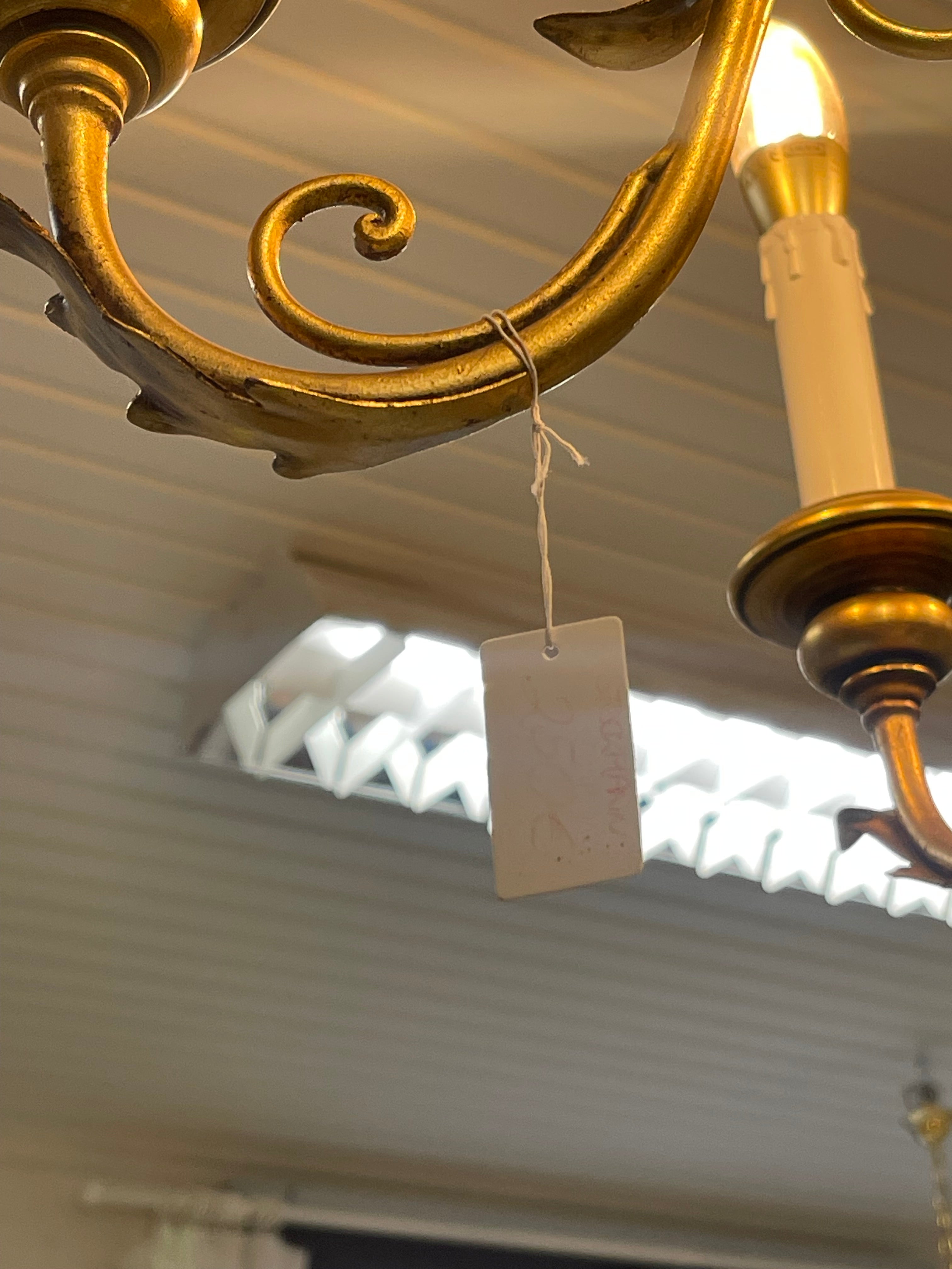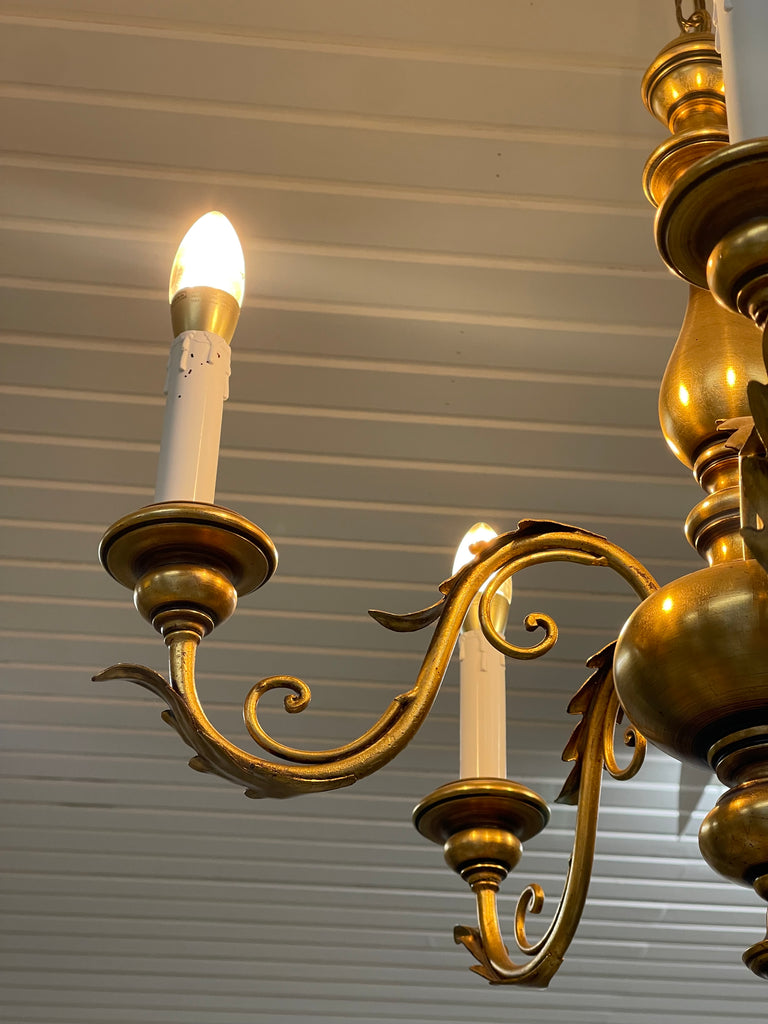 Fungerande lampa, gjord av förgyllt trä och metall.