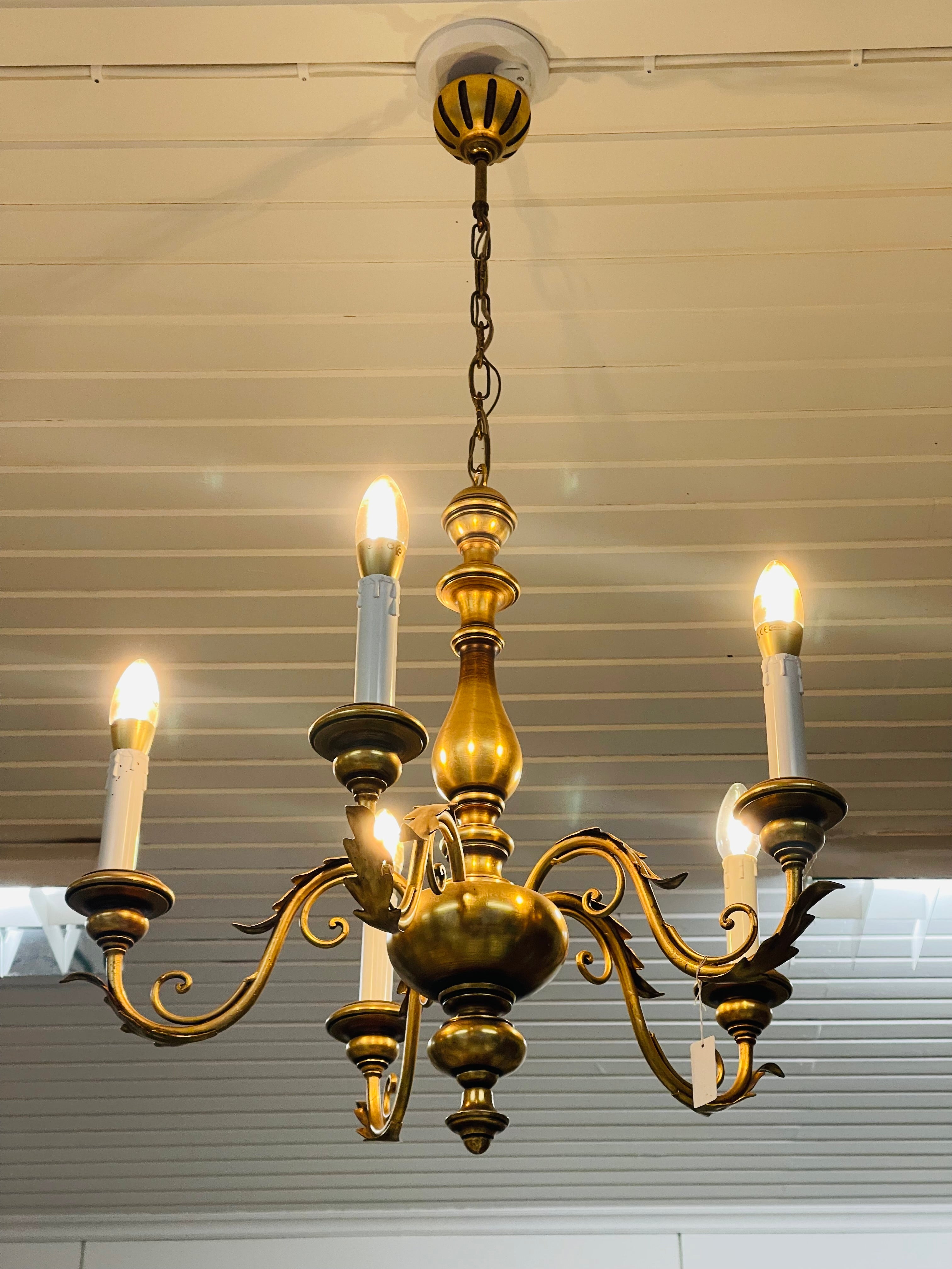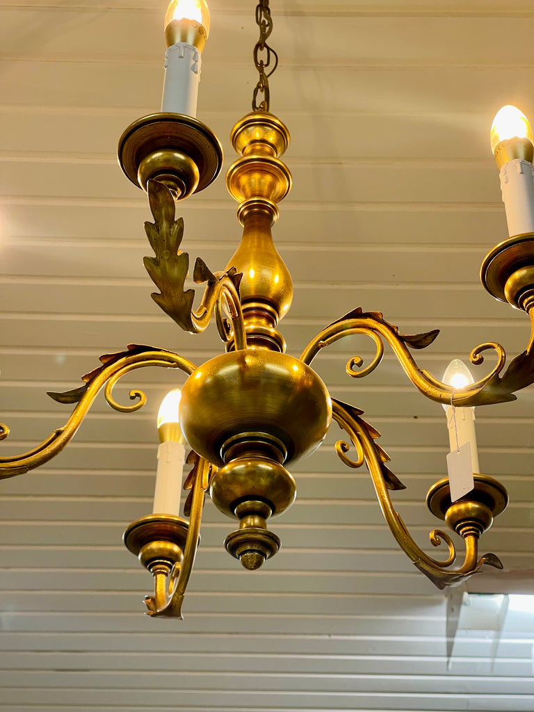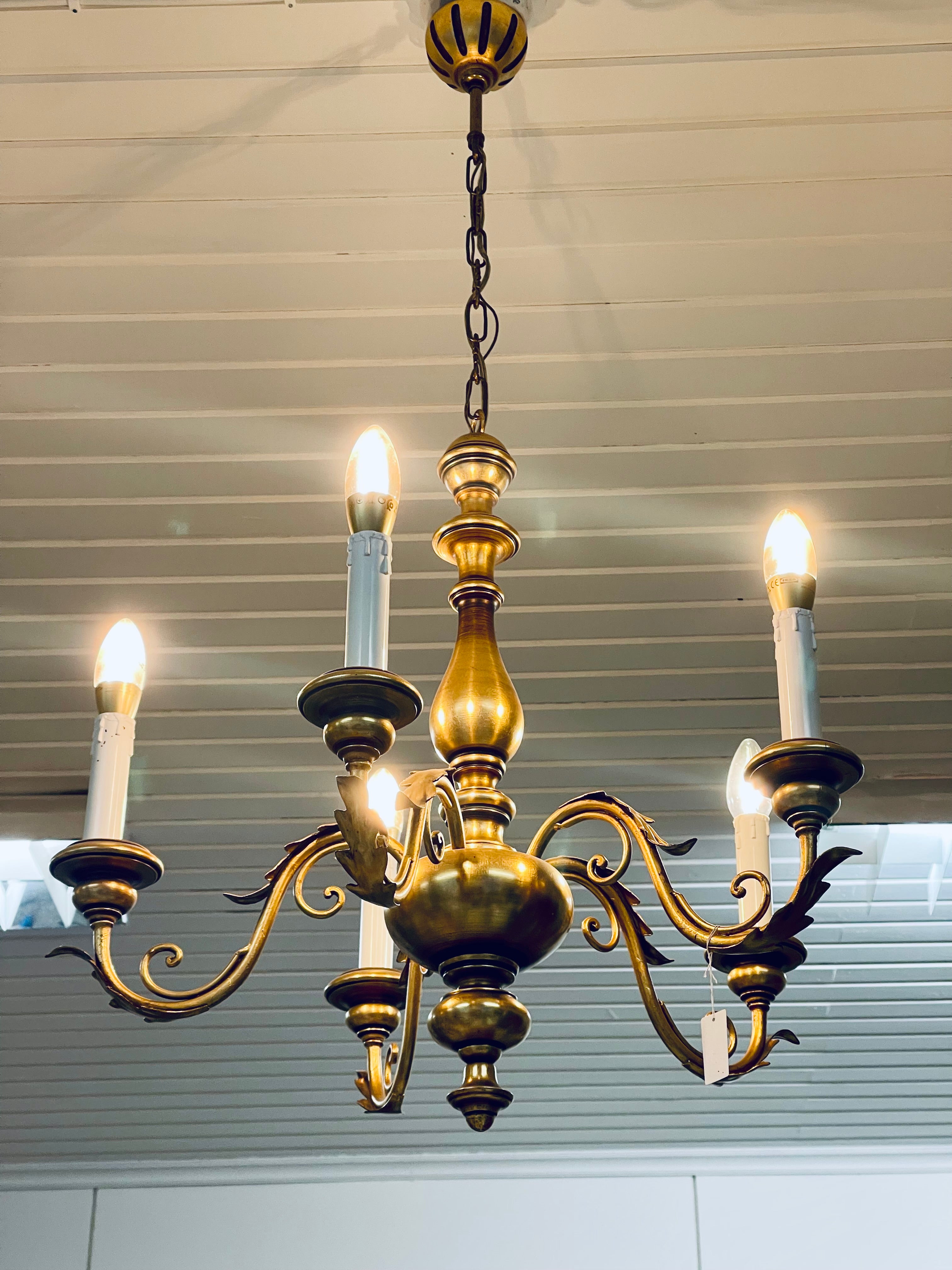 Fungerande lampa, gjord av förgyllt trä och metall.
