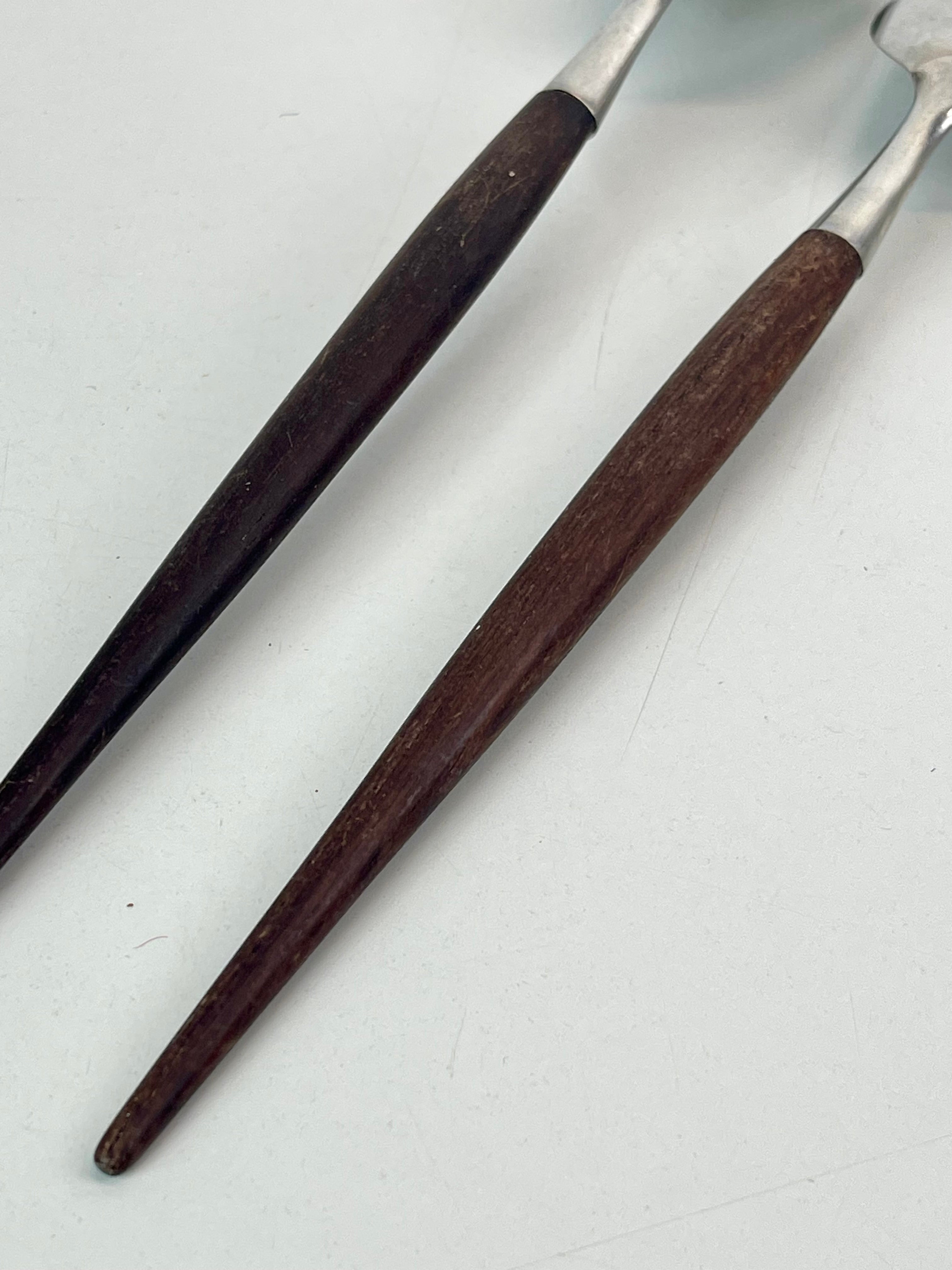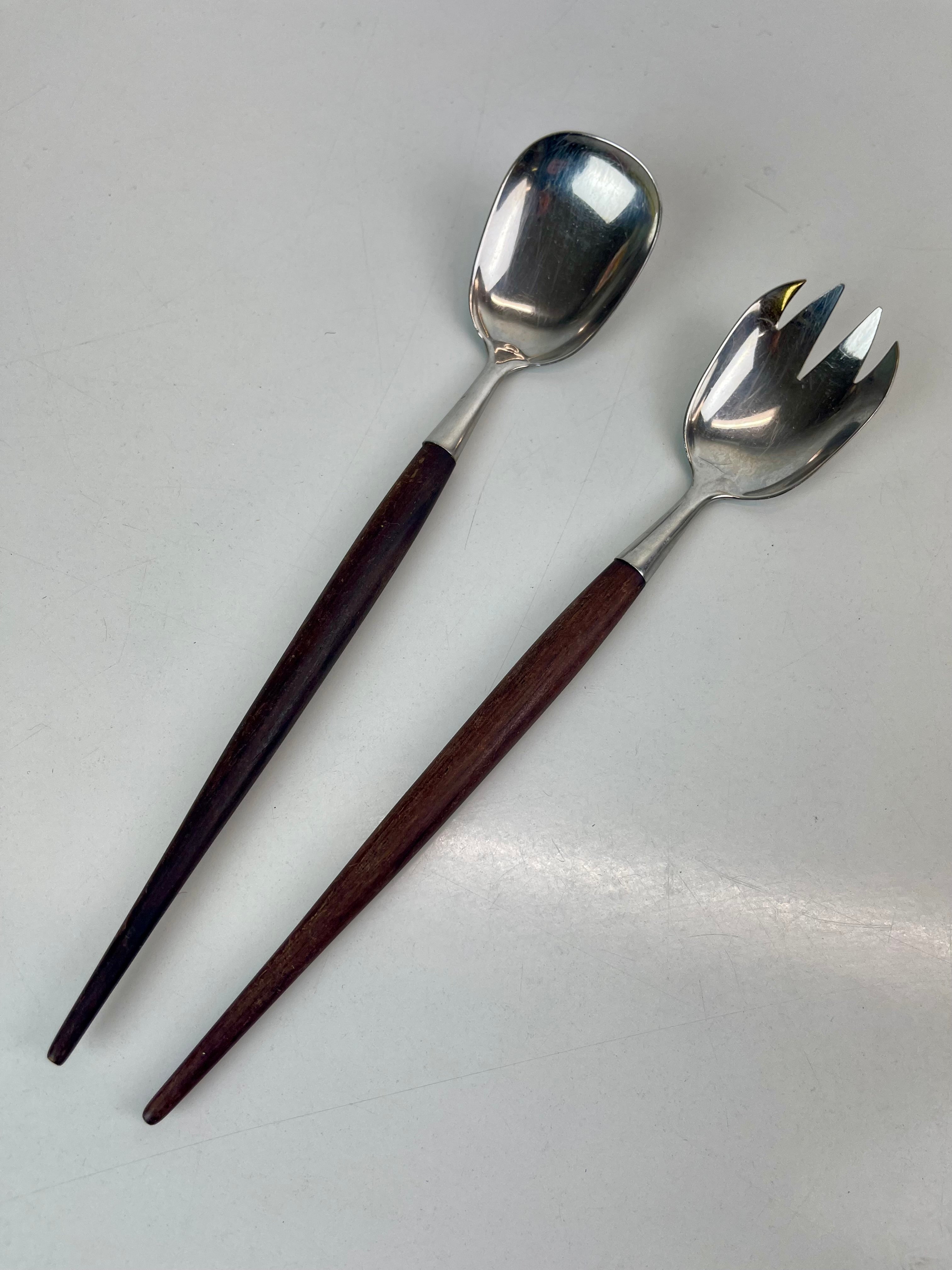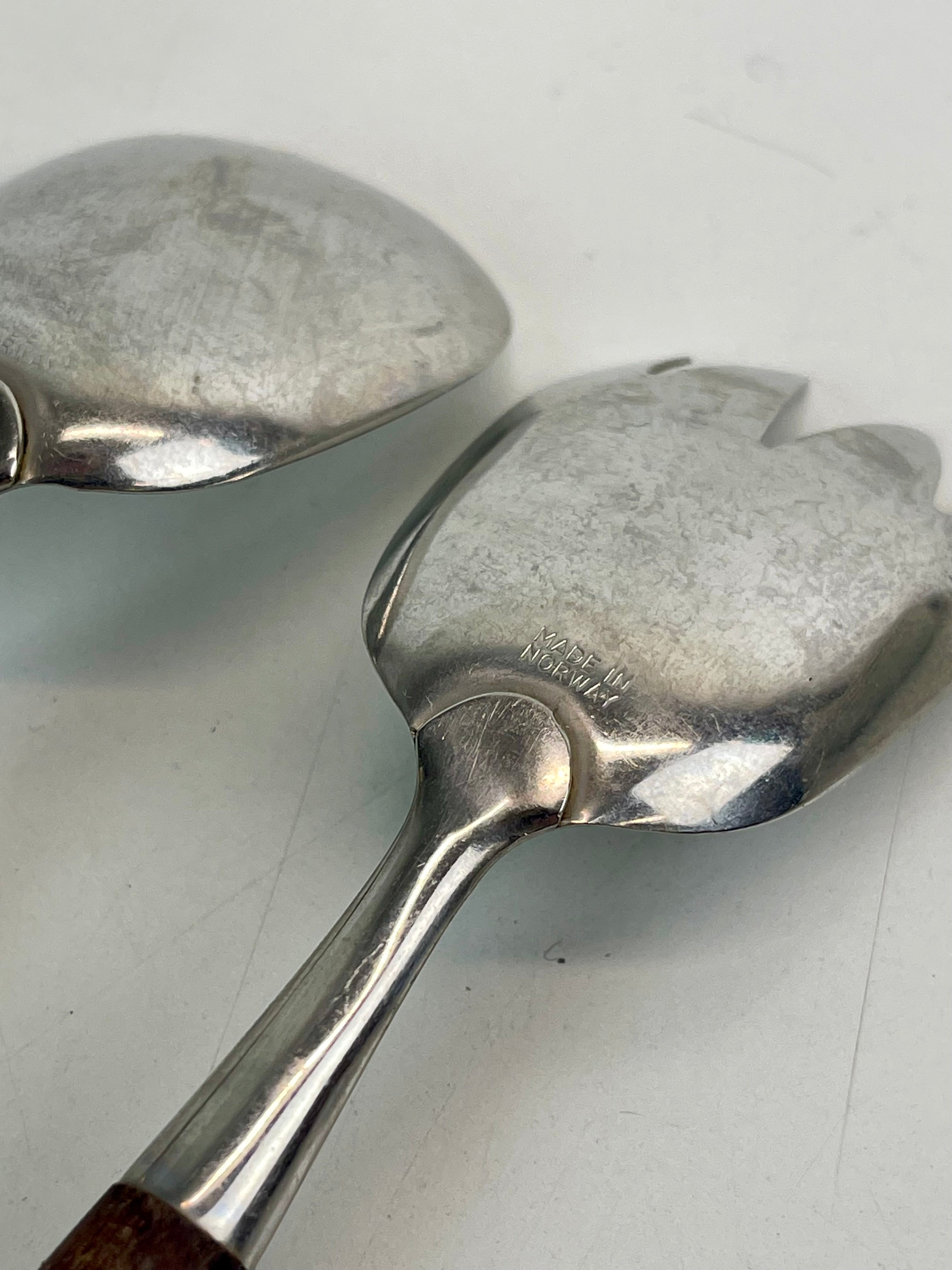 Vintage salladsbestick i fint skick, teak och rostfritt stål. Formgivna av Thor Bjørklund, tillverkade i Norge av Bjørklund & Sønner.