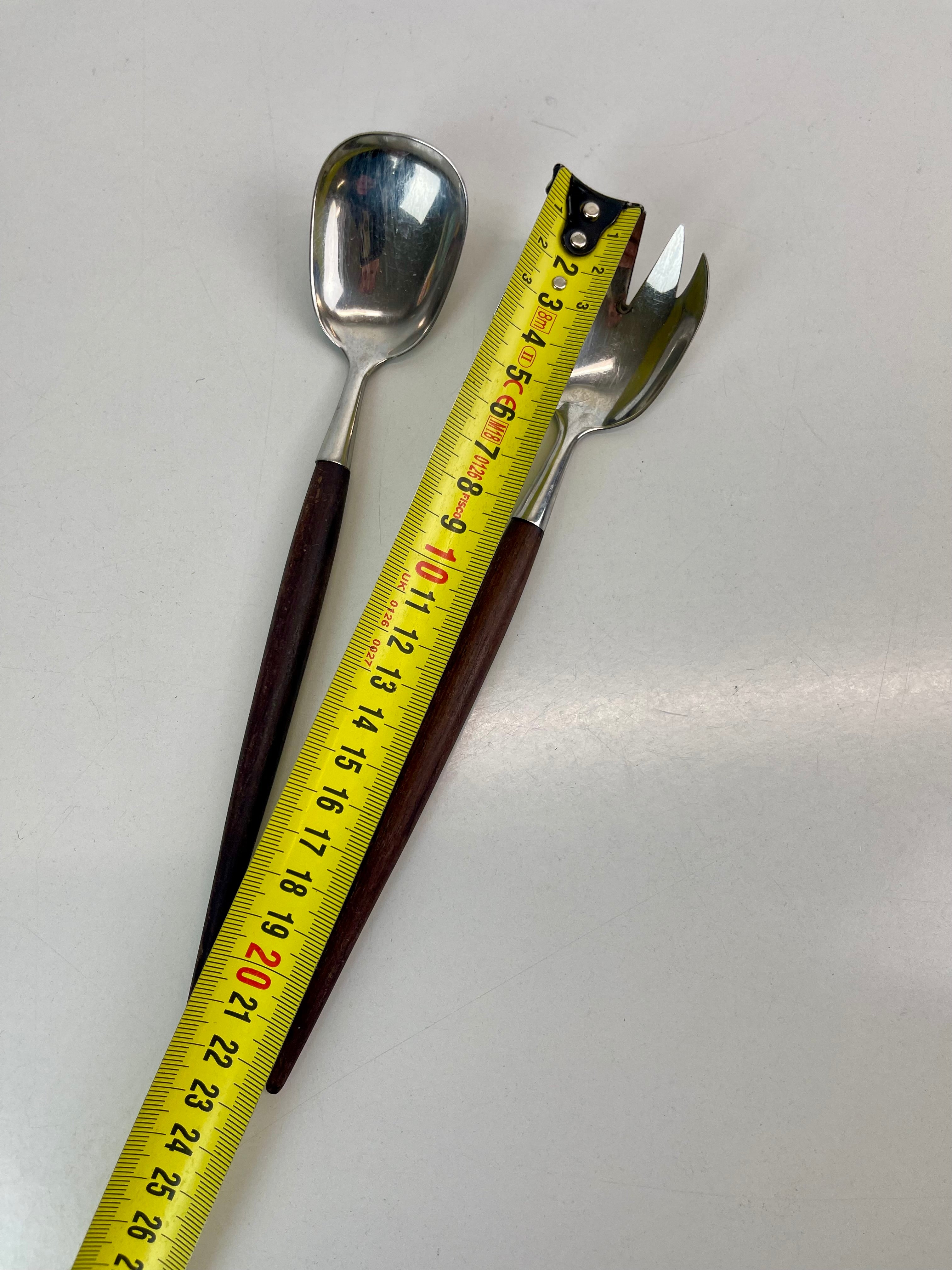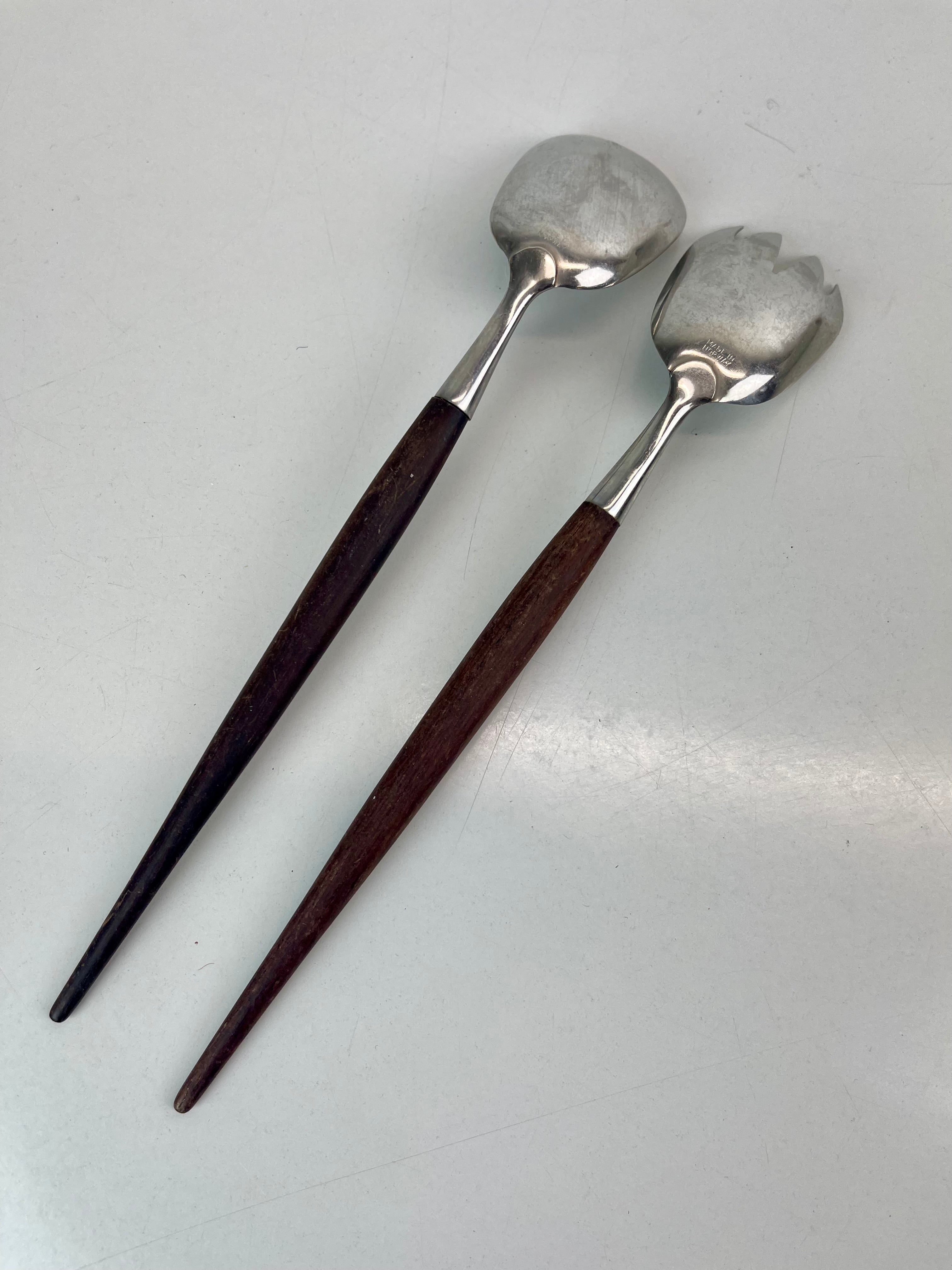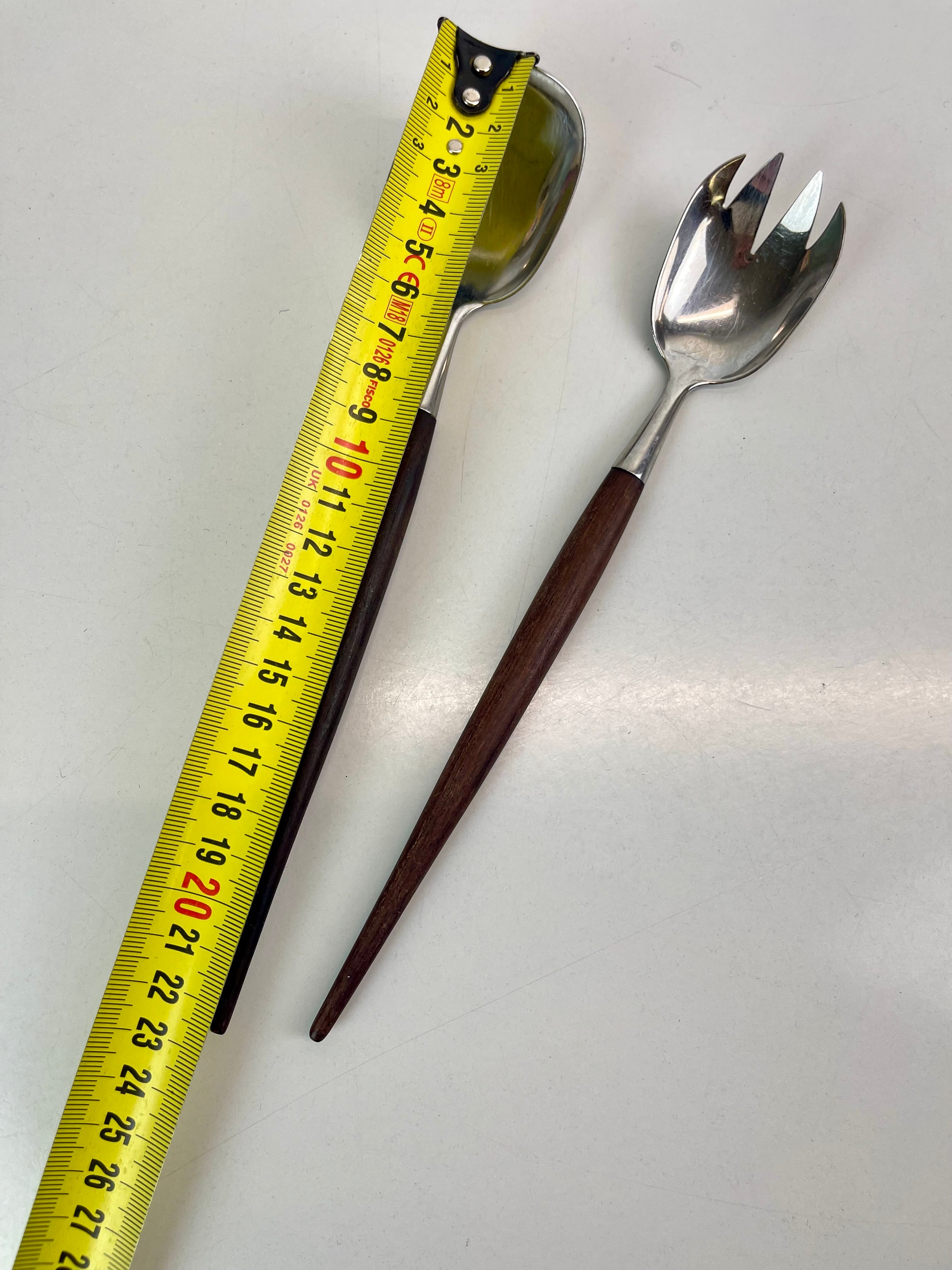 Vintage salladsbestick i fint skick, teak och rostfritt stål. Formgivna av Thor Bjørklund, tillverkade i Norge av Bjørklund & Sønner.