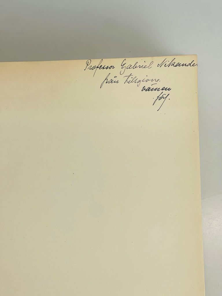 En stor, tung och gammal bok med lite skavanker i hörnen men överlag i gott skick för sinnålder. En hälsning skriven av författaren och några understrykningar hittar man i boken.