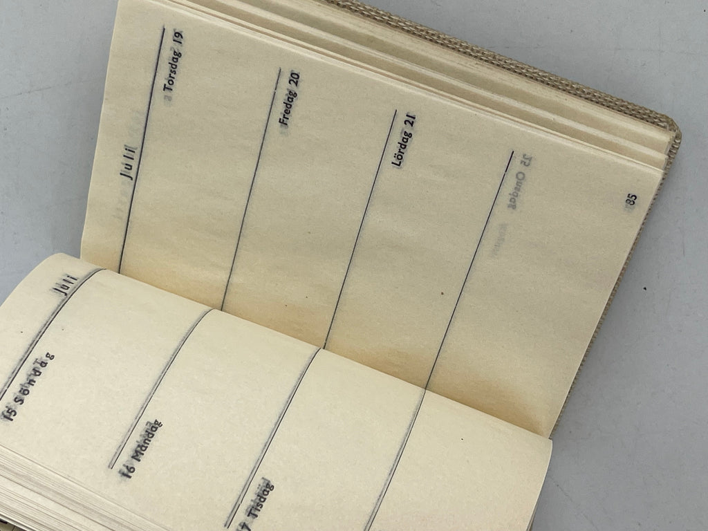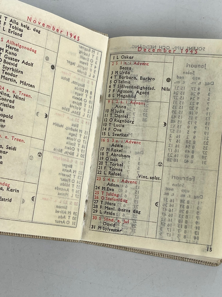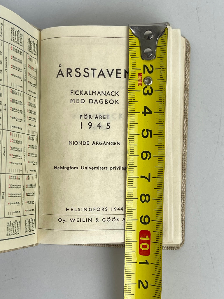 Vuoden henkilökunta, taskukalenteri päiväkirjalla vuodelle 1945 Jälkitilattu