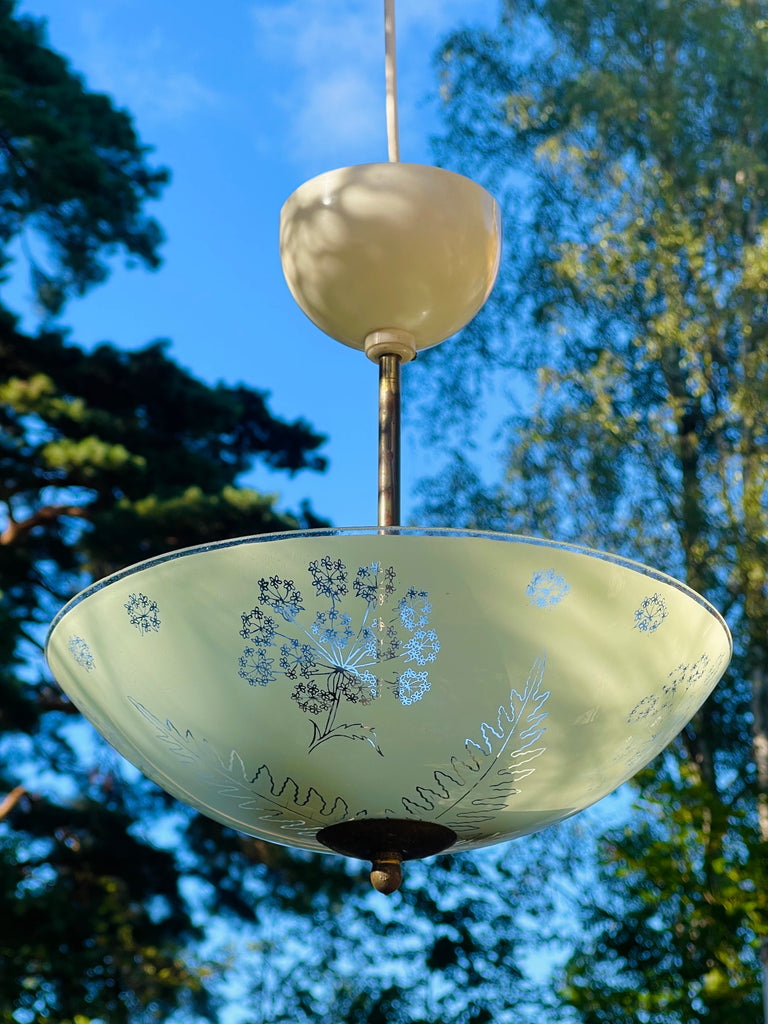 Tarkista kuvat ja video huolellisesti. Kaunis valaisin messinkiä ja puuta kangasvarjostimella. Lampunvarjostimessa on kangasvirheitä, messinki on tällä hetkellä kiillottamaton mutta hyvässä kunnossa ja voi halukkaille kiillottaa uudelleen.