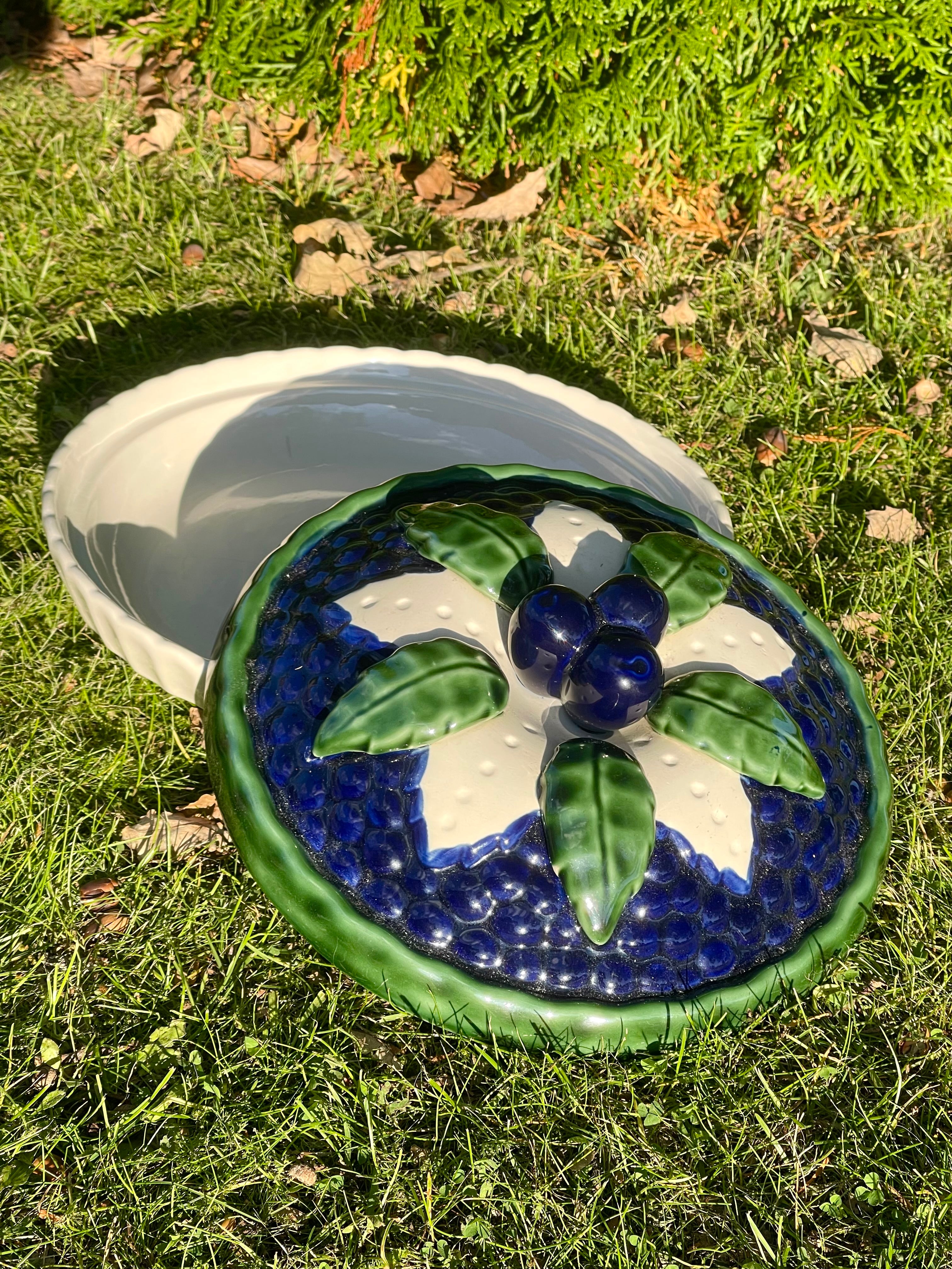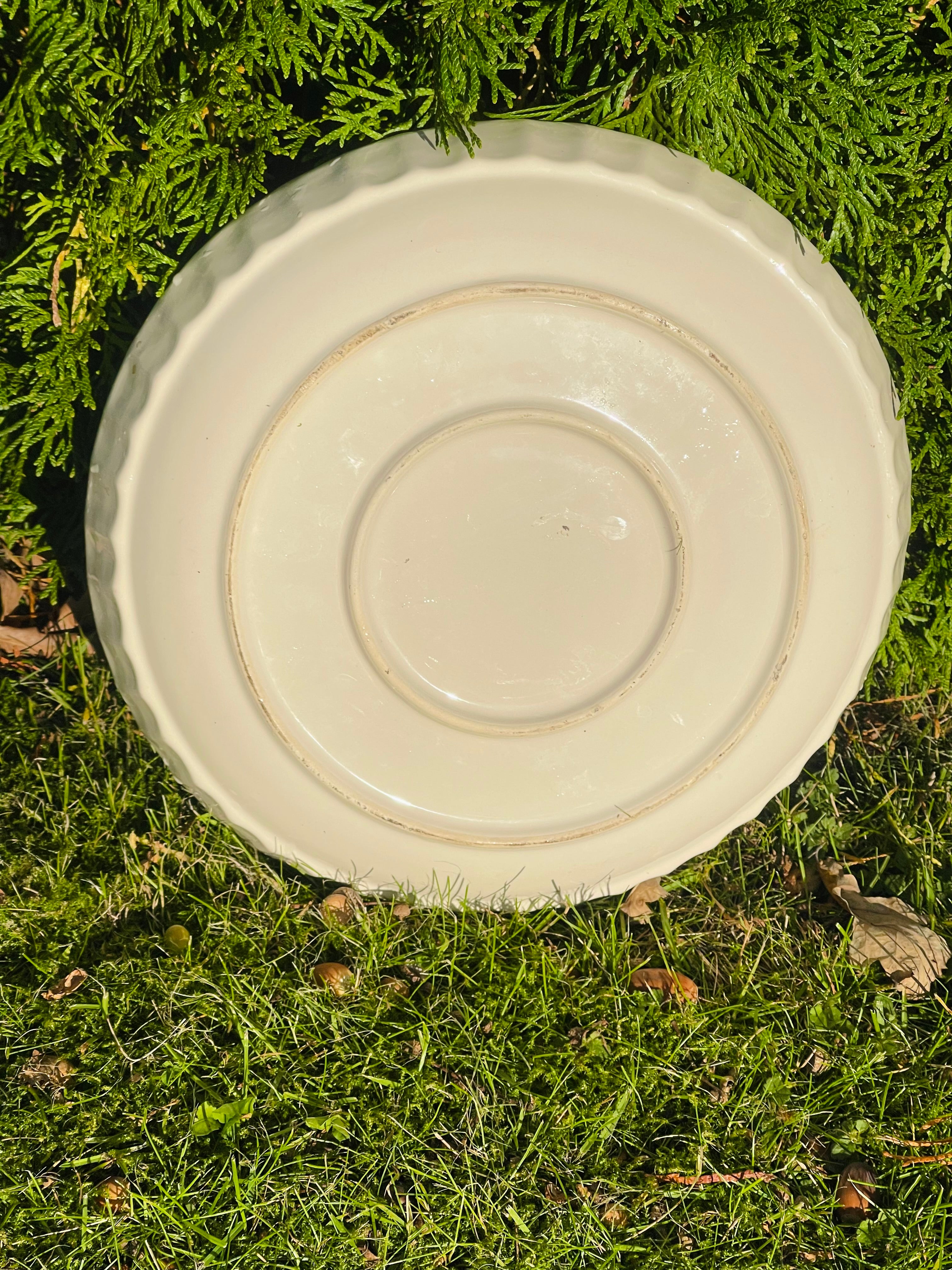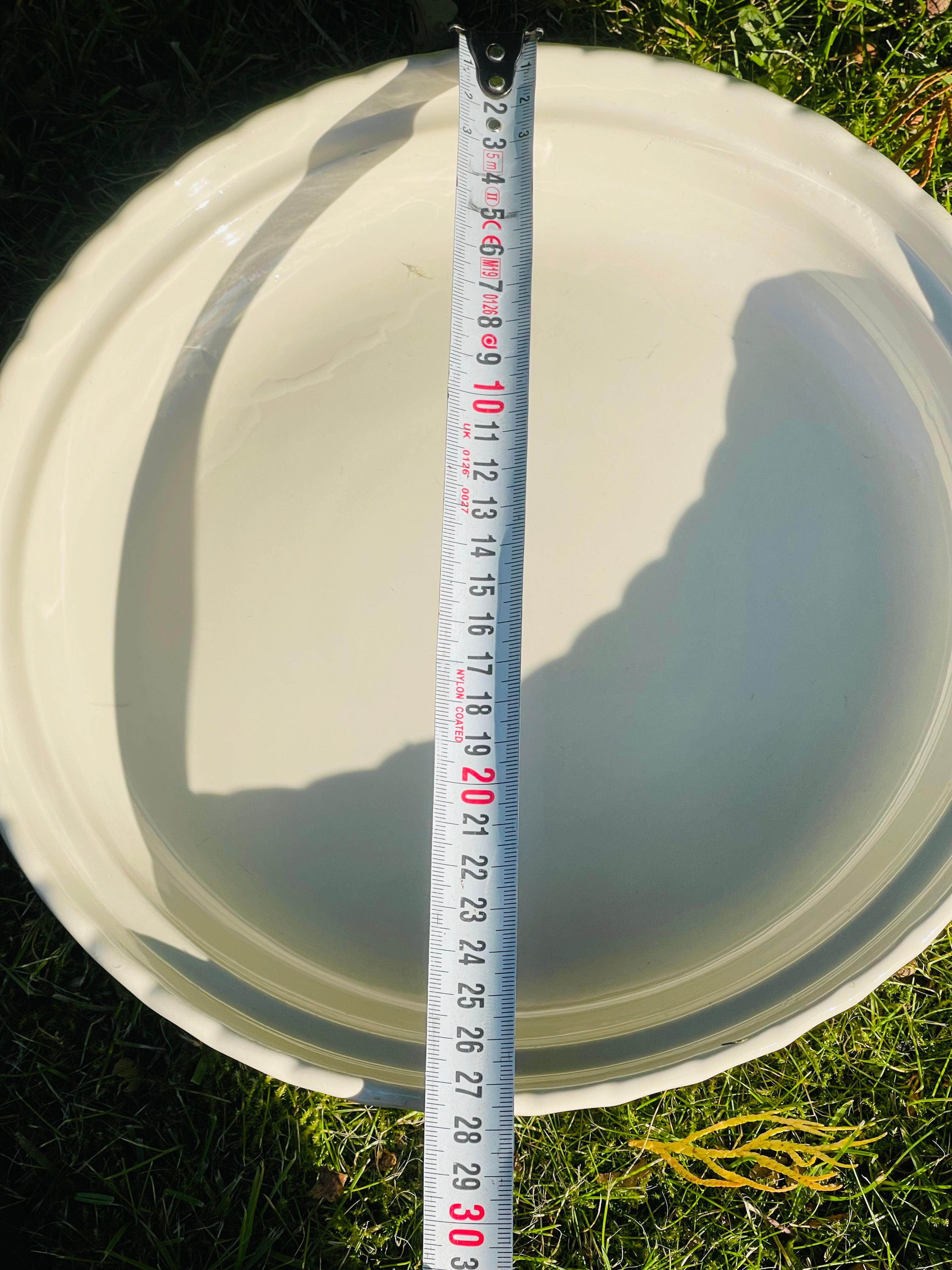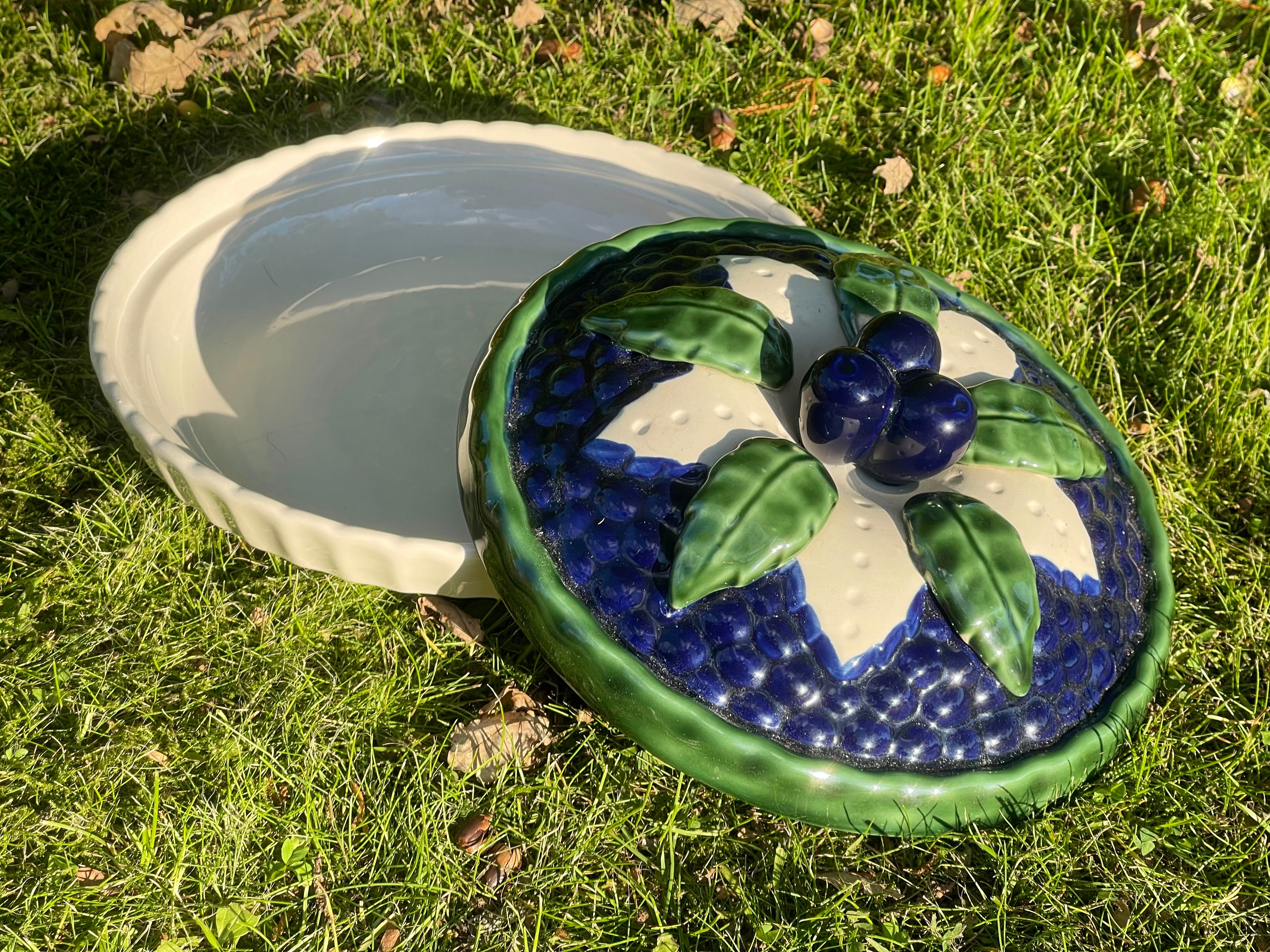 Kaunis piirakkavuoka 1990-luvulta. Pohjassa pieniä mustia aterinjälkiä ja pieni vika, joka saattaa olla valmistusvirhe. Muuten täydellinen ja hyvässä kunnossa.