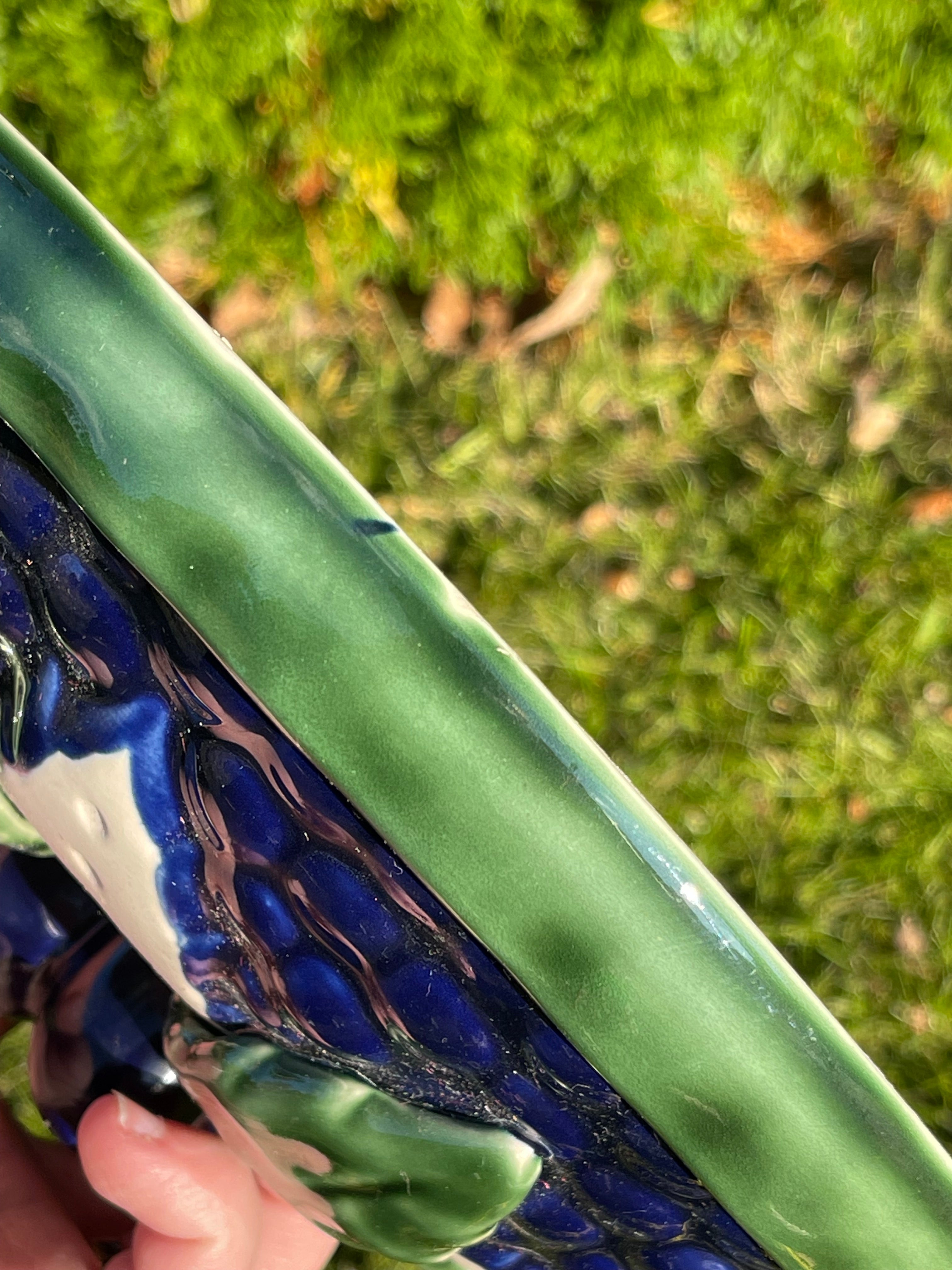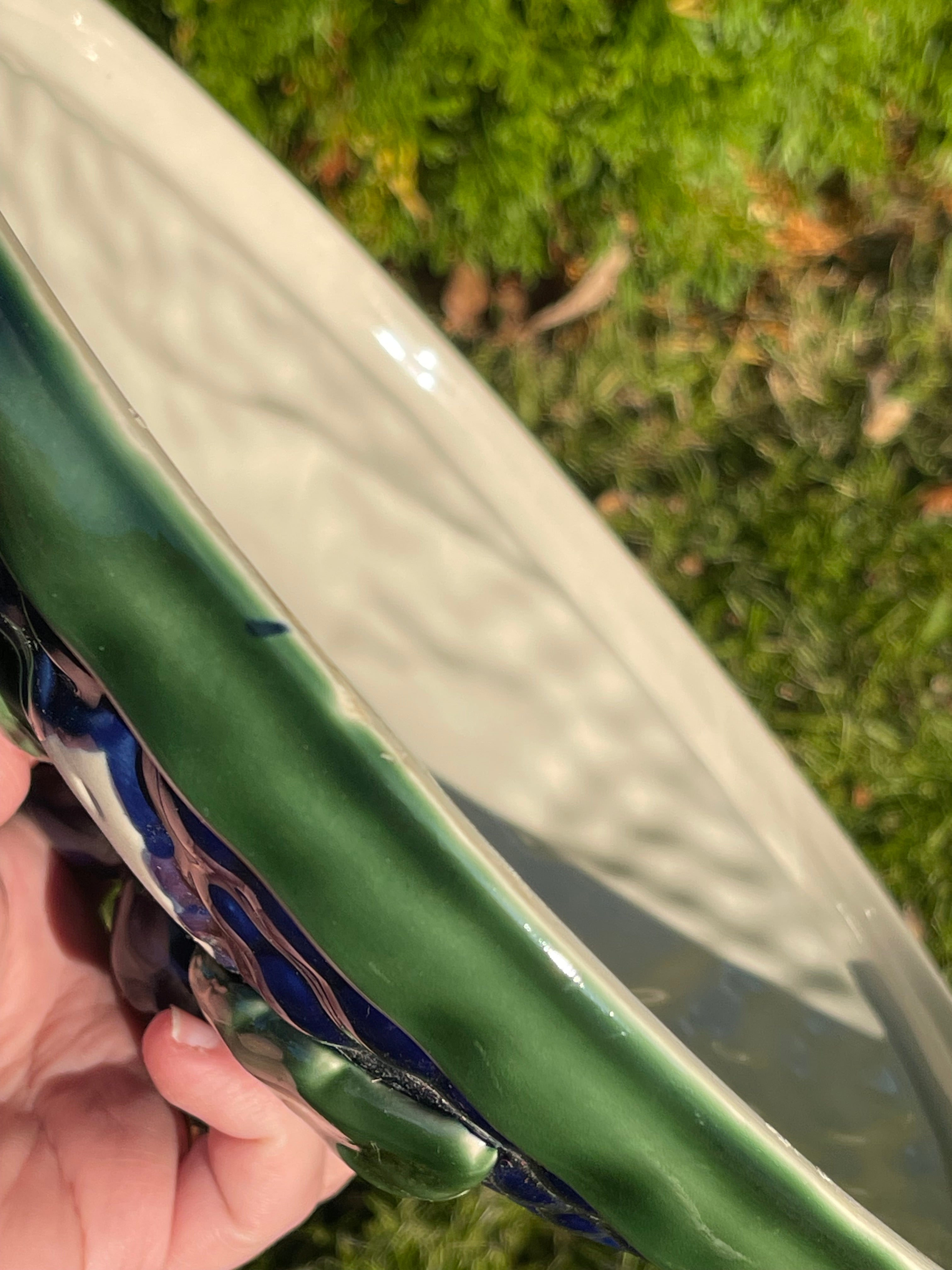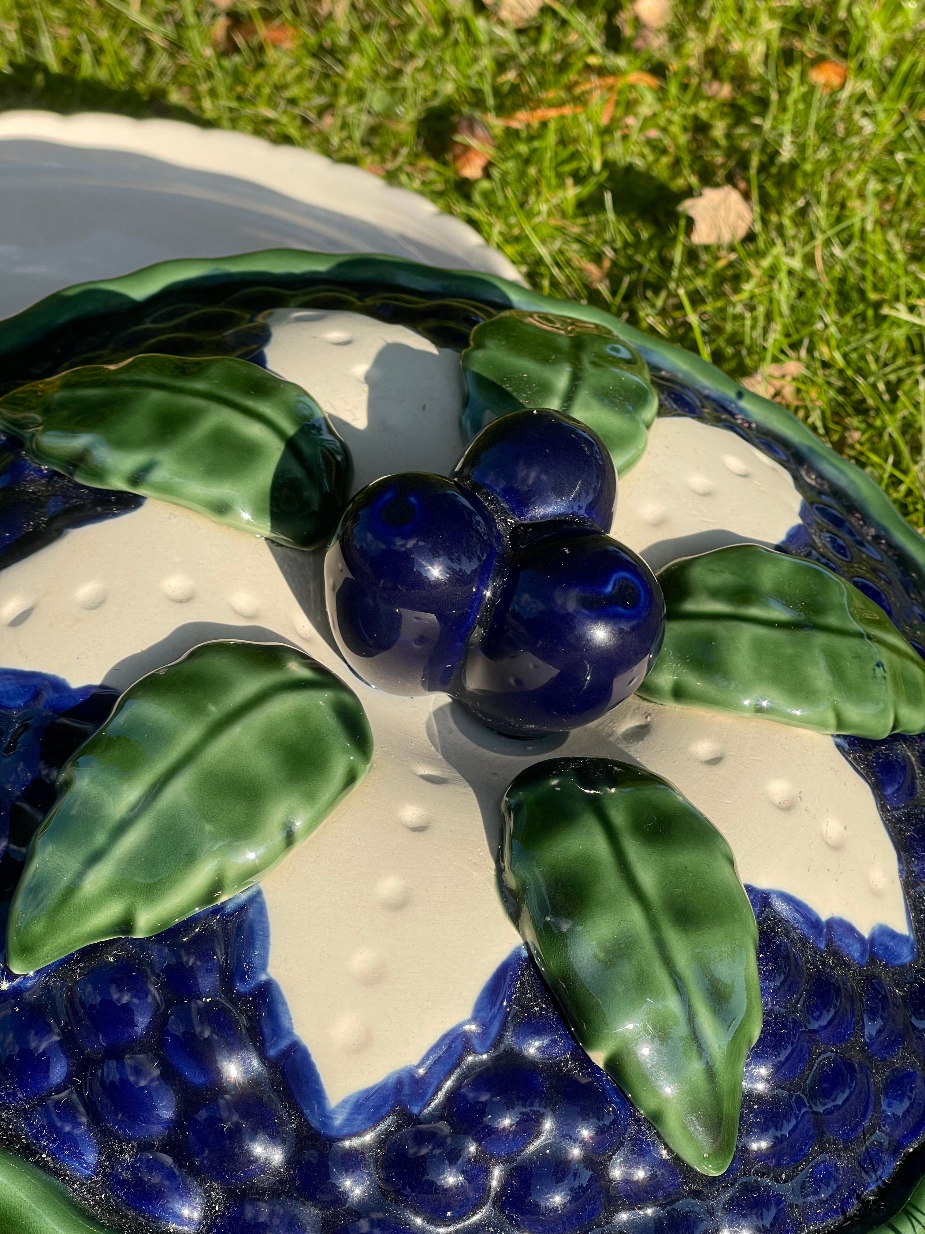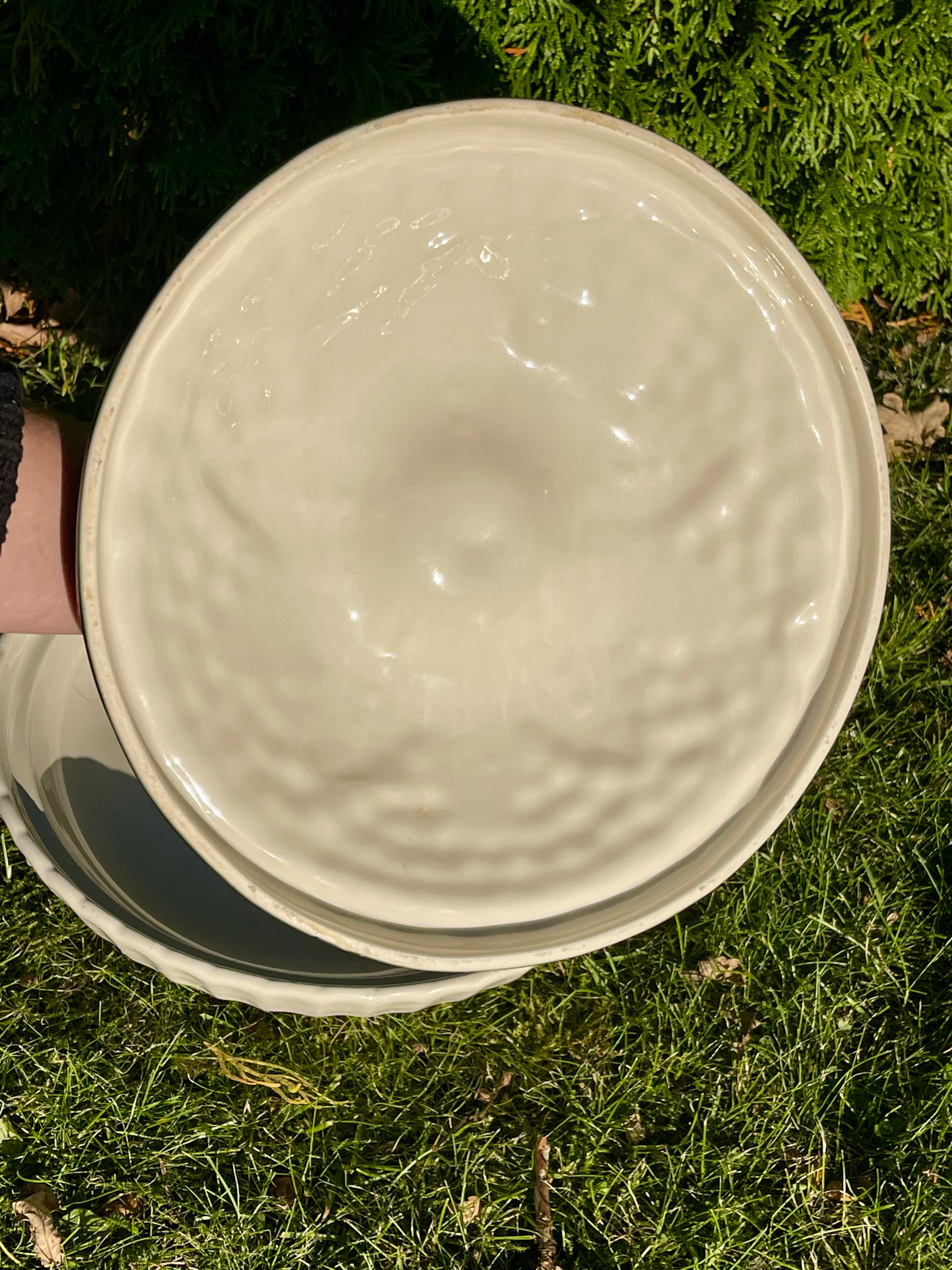Kaunis piirakkavuoka 1990-luvulta. Pohjassa pieniä mustia aterinjälkiä ja pieni vika, joka saattaa olla valmistusvirhe. Muuten täydellinen ja hyvässä kunnossa.