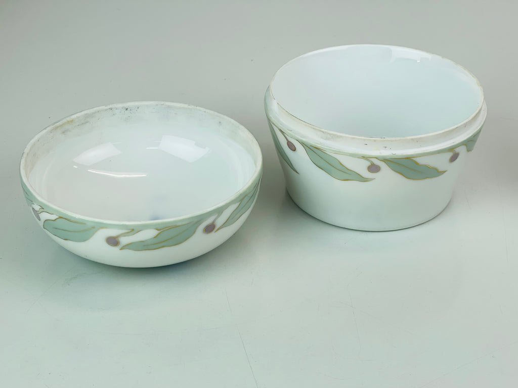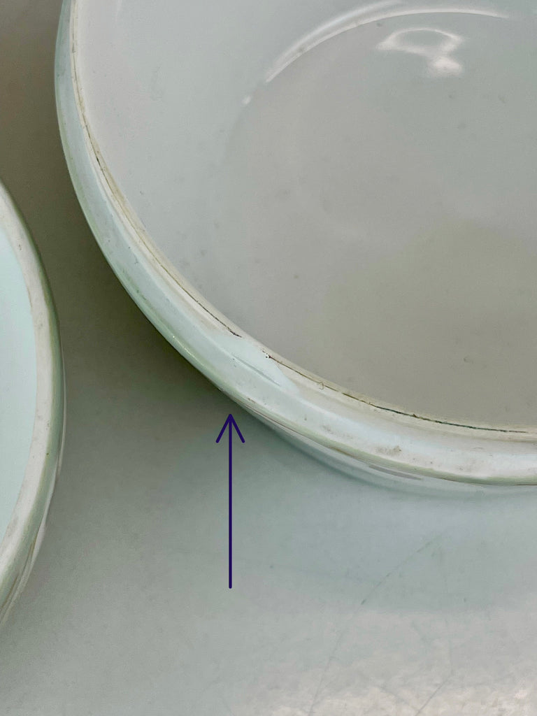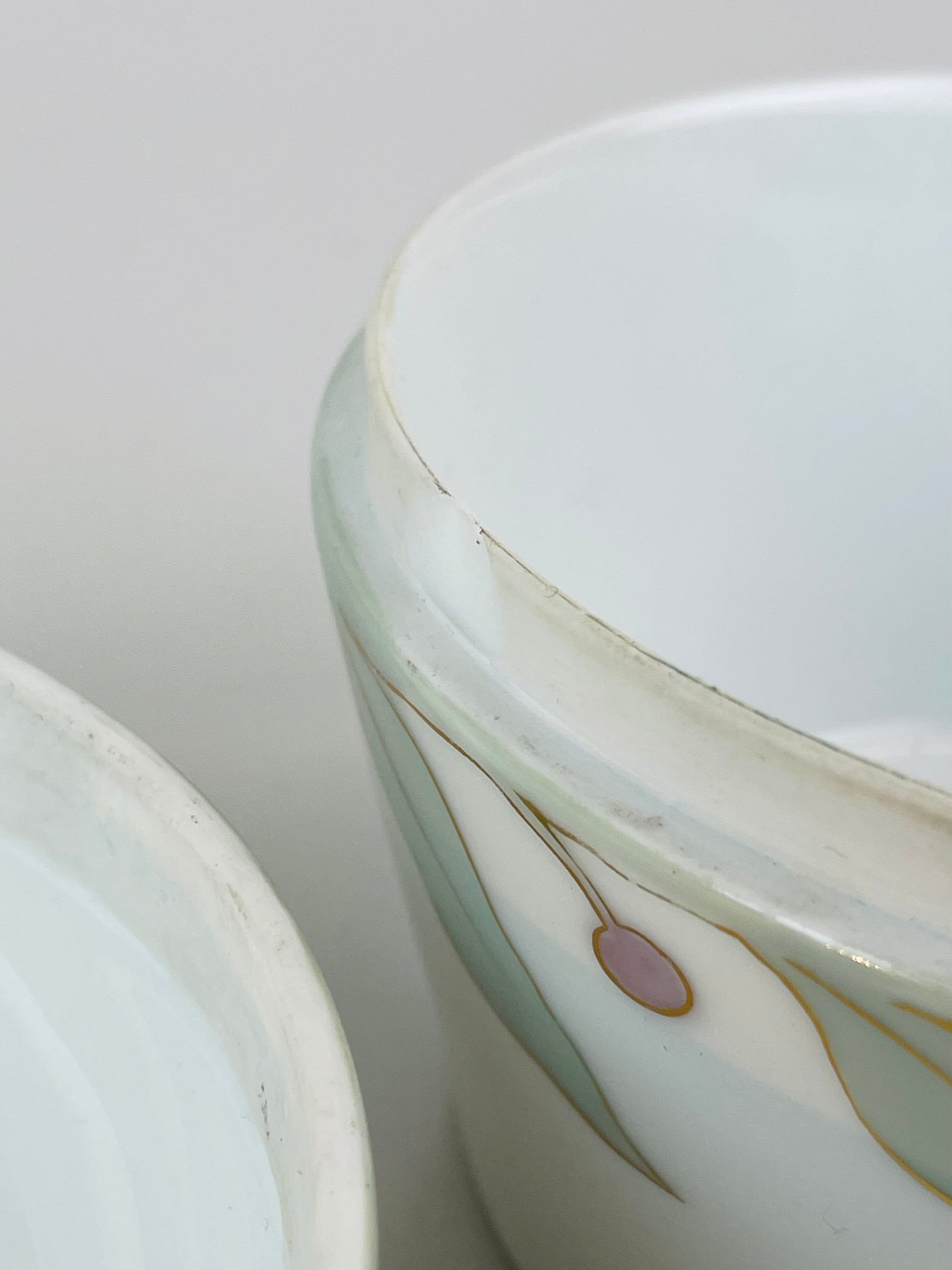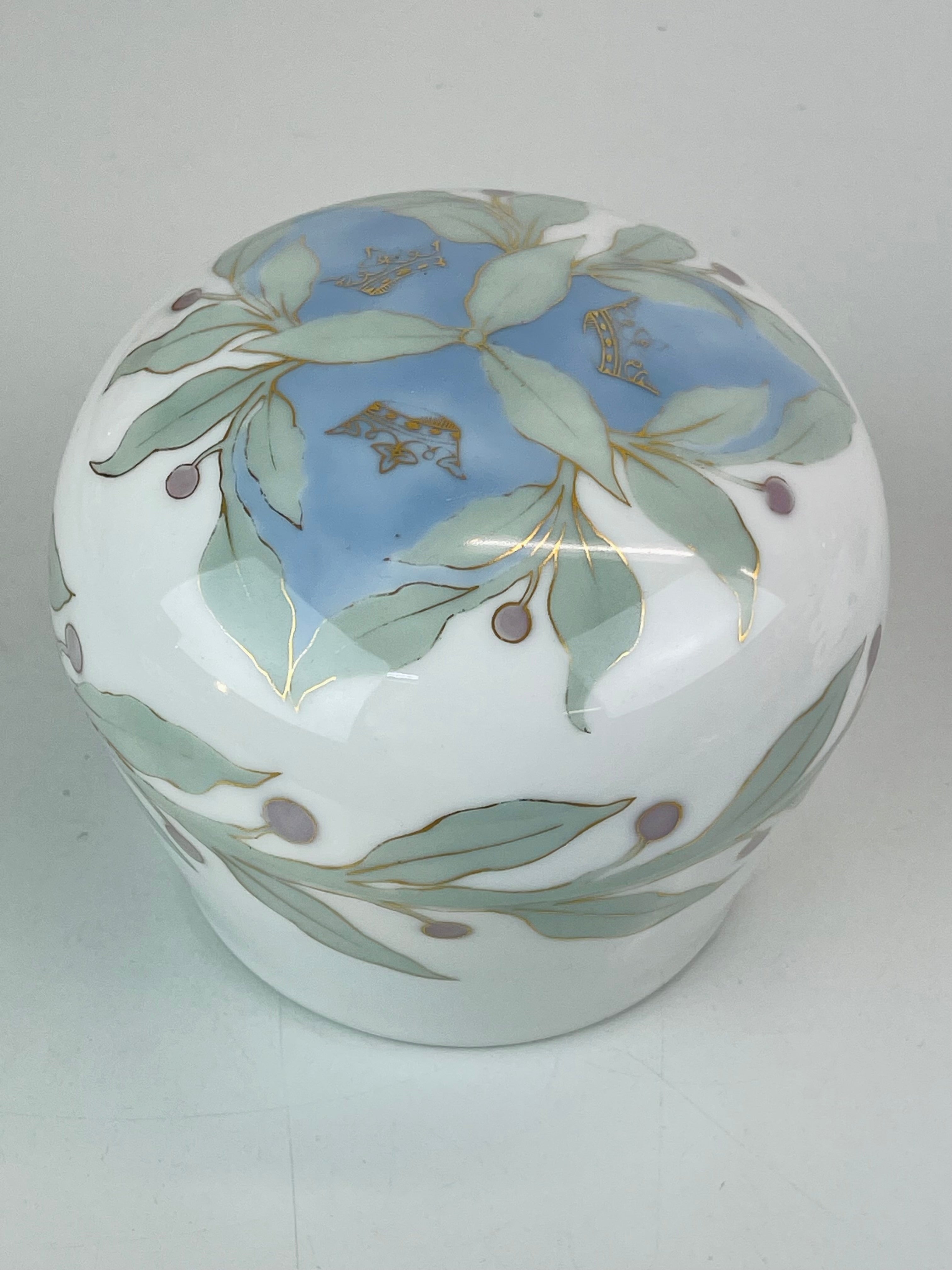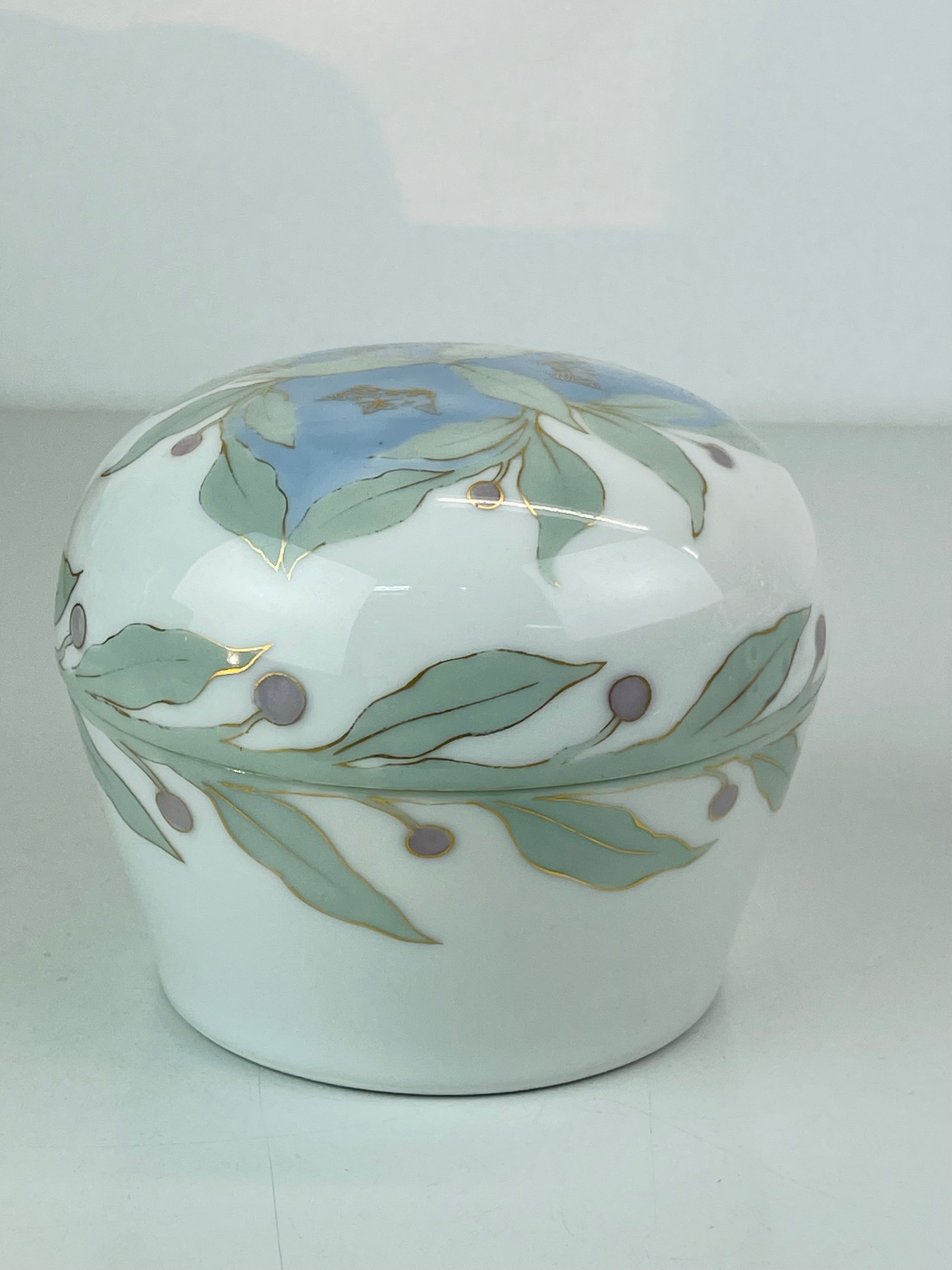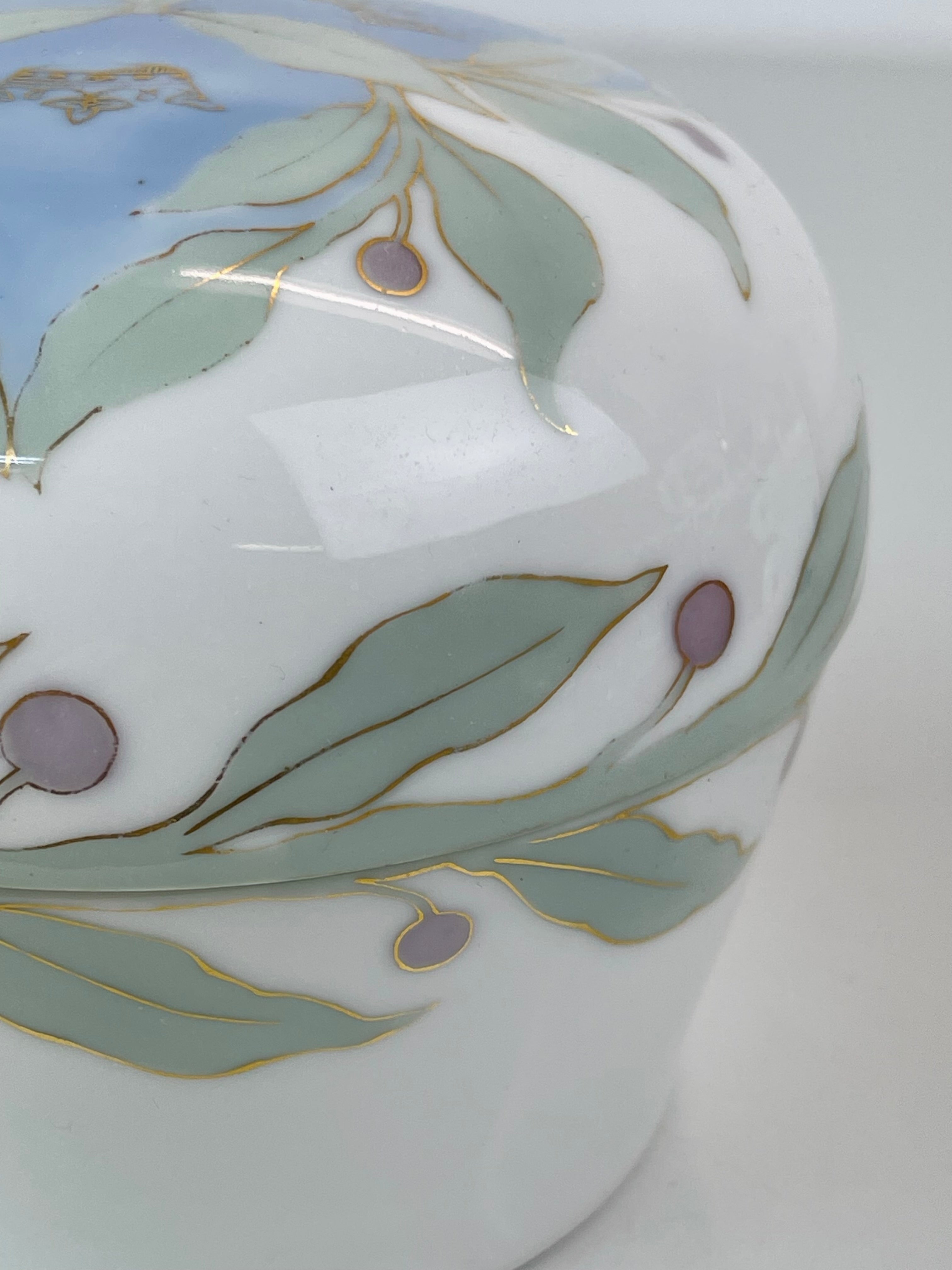 Handmålad lockurna i porslin, signerad med Nils Emil Lundströms signatur. Lockurnan är i gott skick men har tyvärr ett nagg i kanten av den nedre delens övre kant, se bilder.