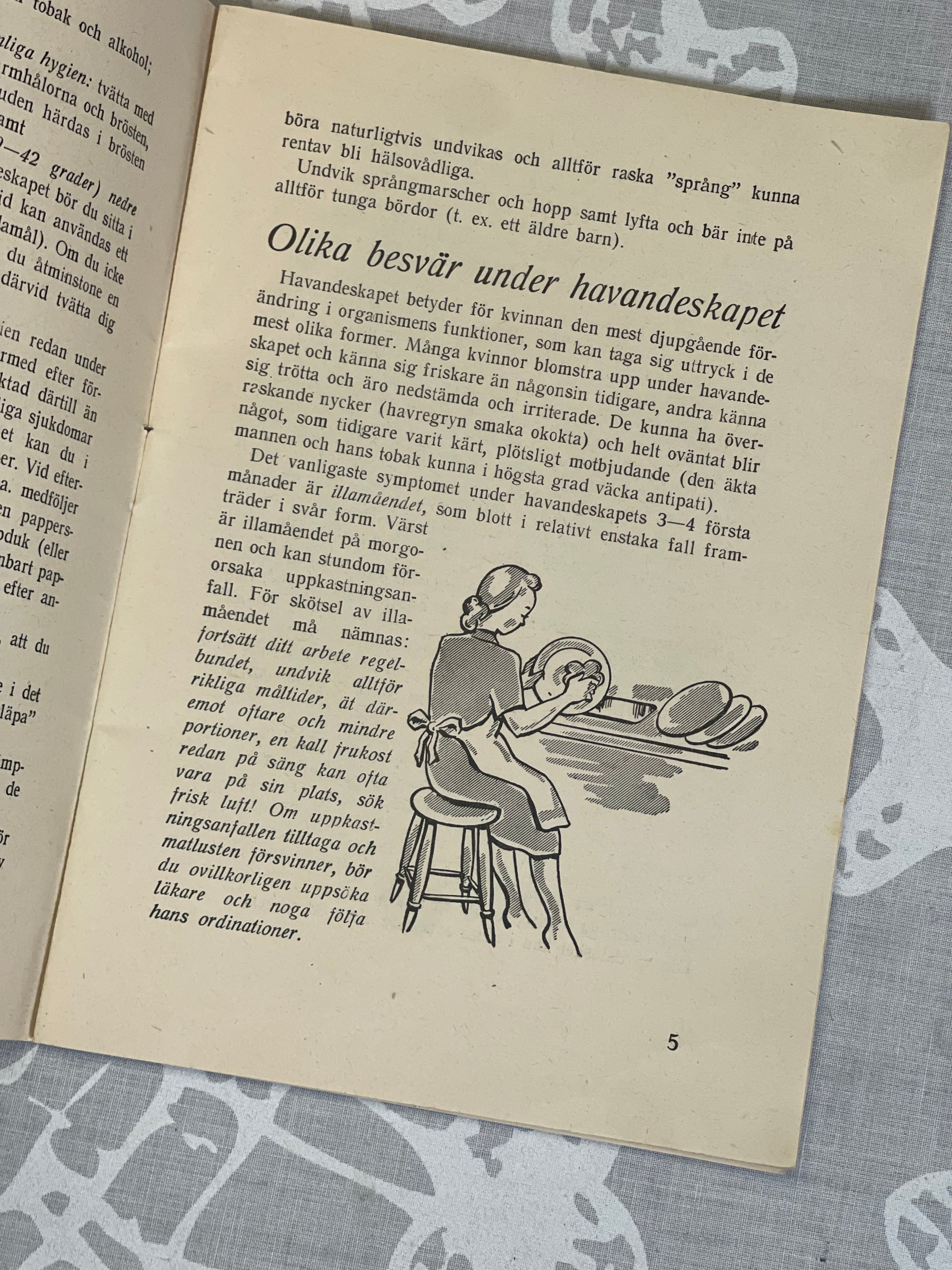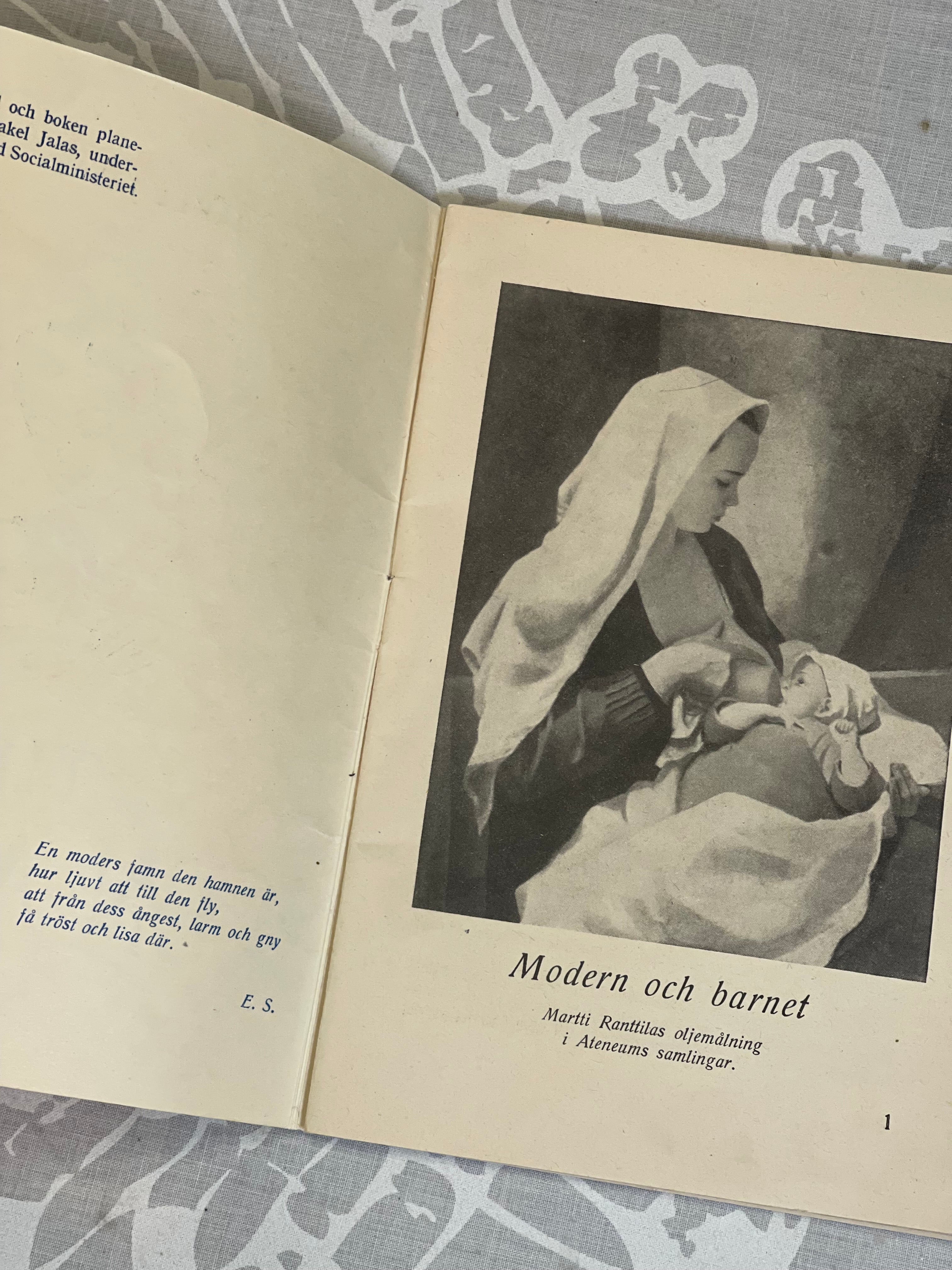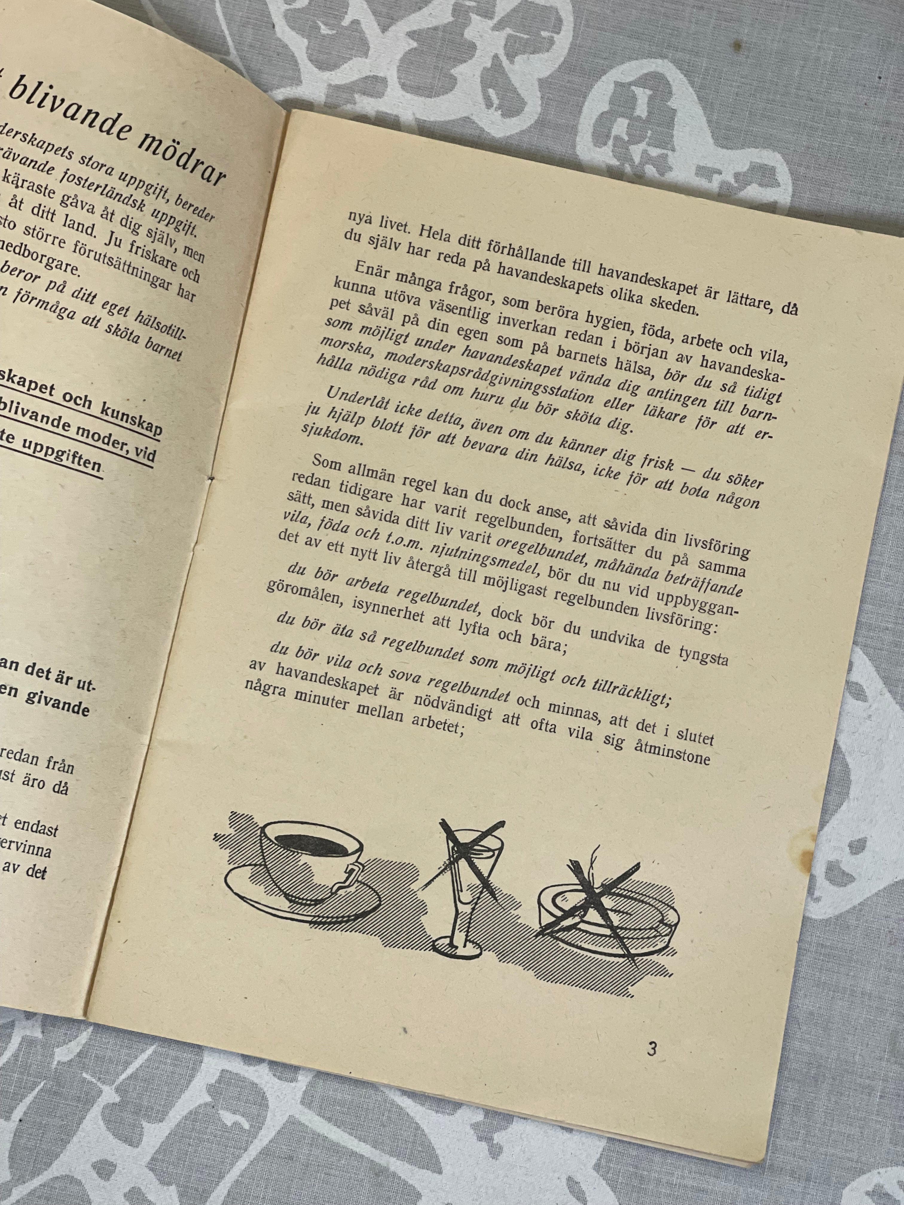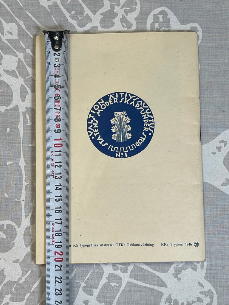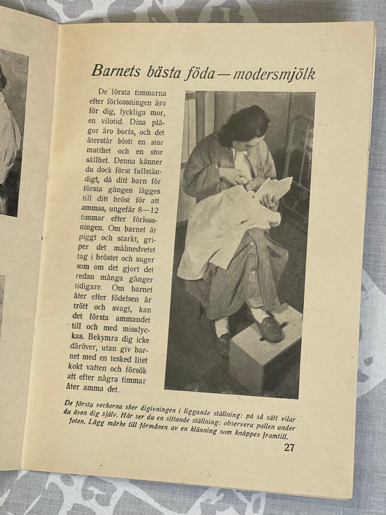 Följde med moderskapsförpackningen i tiderna. Daterad 1946.