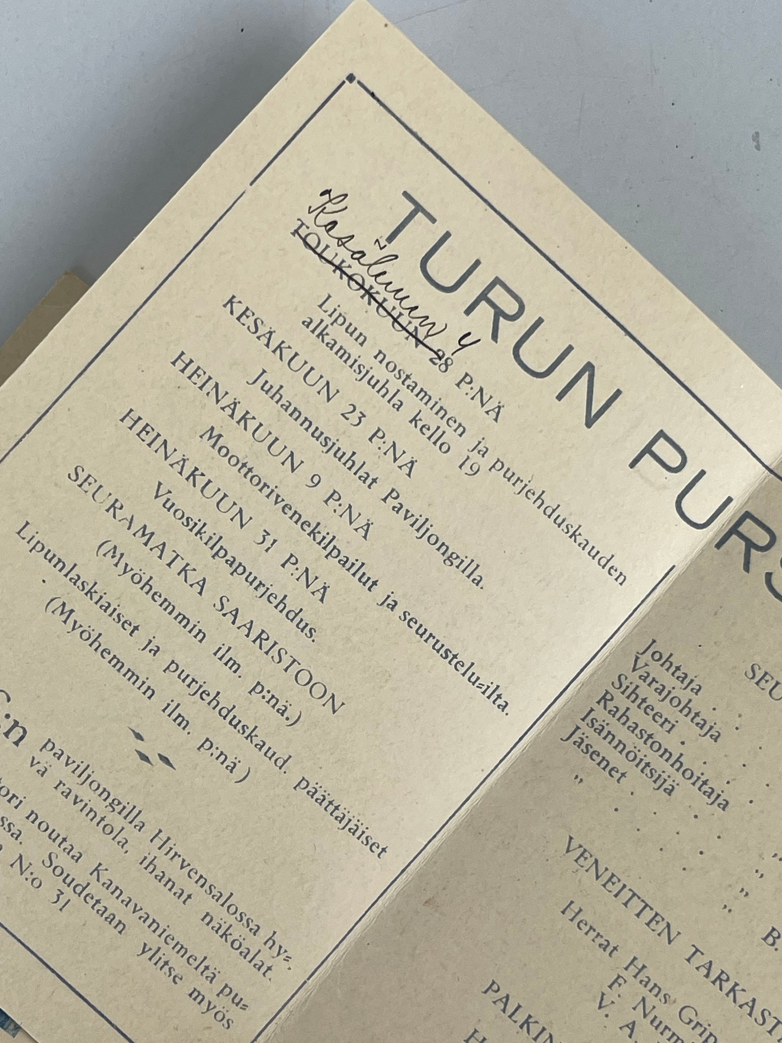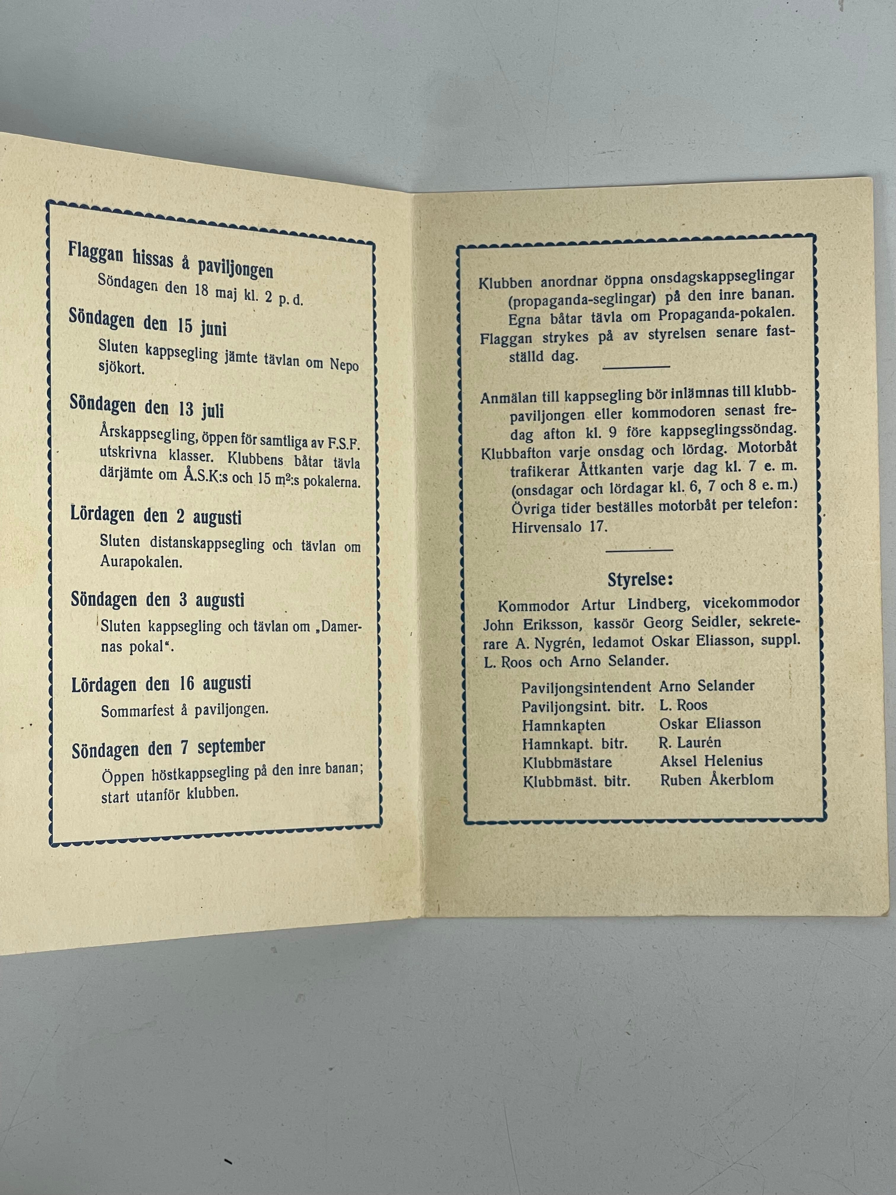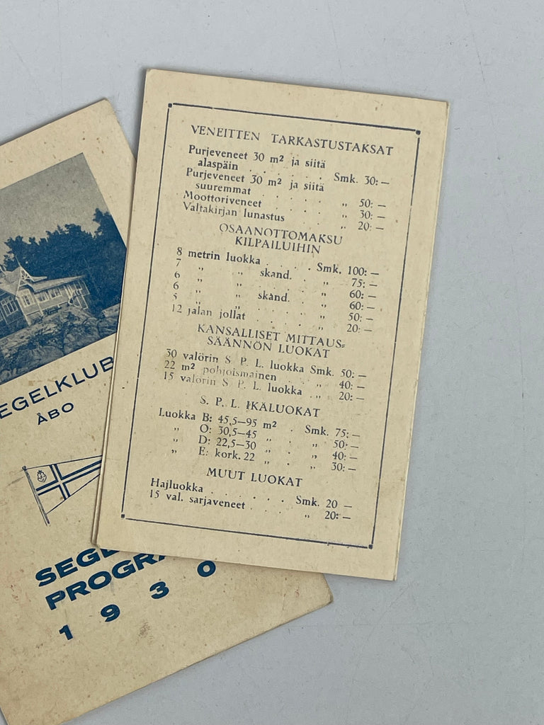 Åbo segelklubb r.f. Seglingsprogram 1930 och Turun Pursiseuran Kesäohjelma 1932 Backorderd