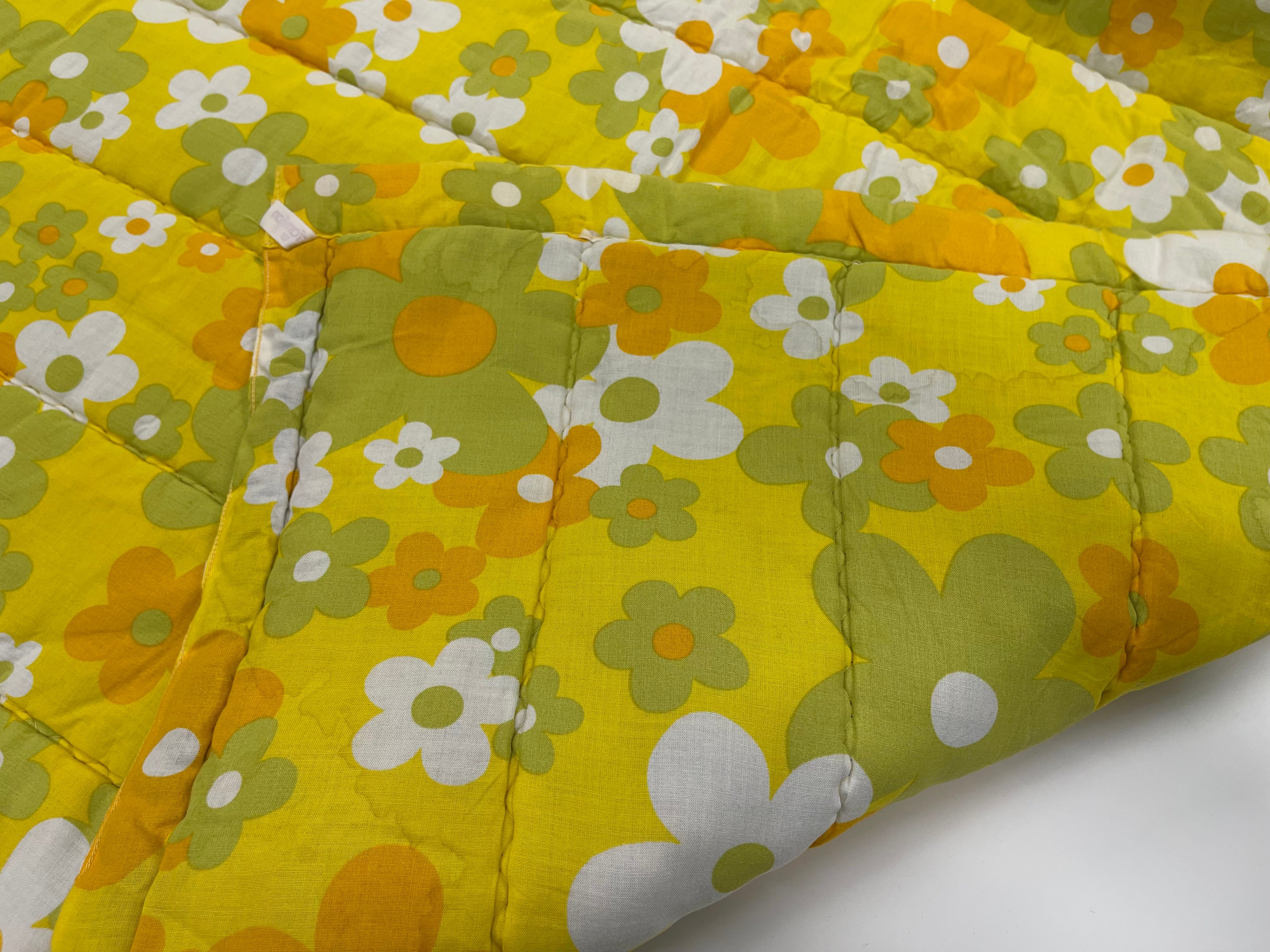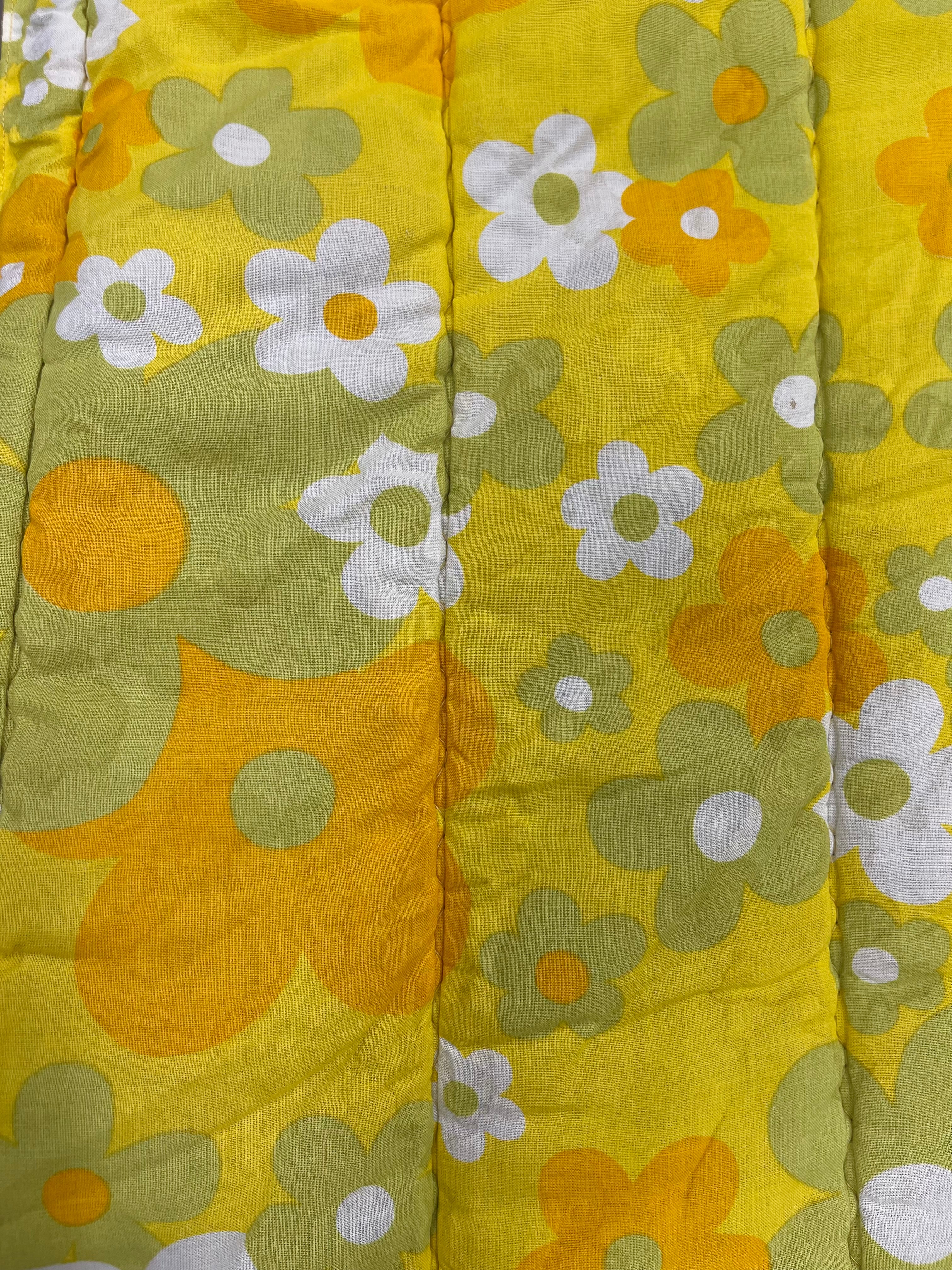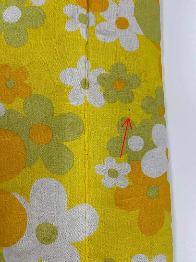 Vintage täcke tillverkat av Familon. Mycket märken av fukt, se bilder. Troligtvis har de uppstått vid någon tvätt utan centrifugering. Ett litet hål har jag kunnat hitta, i övrigt i gott skick. Ingen lukt.