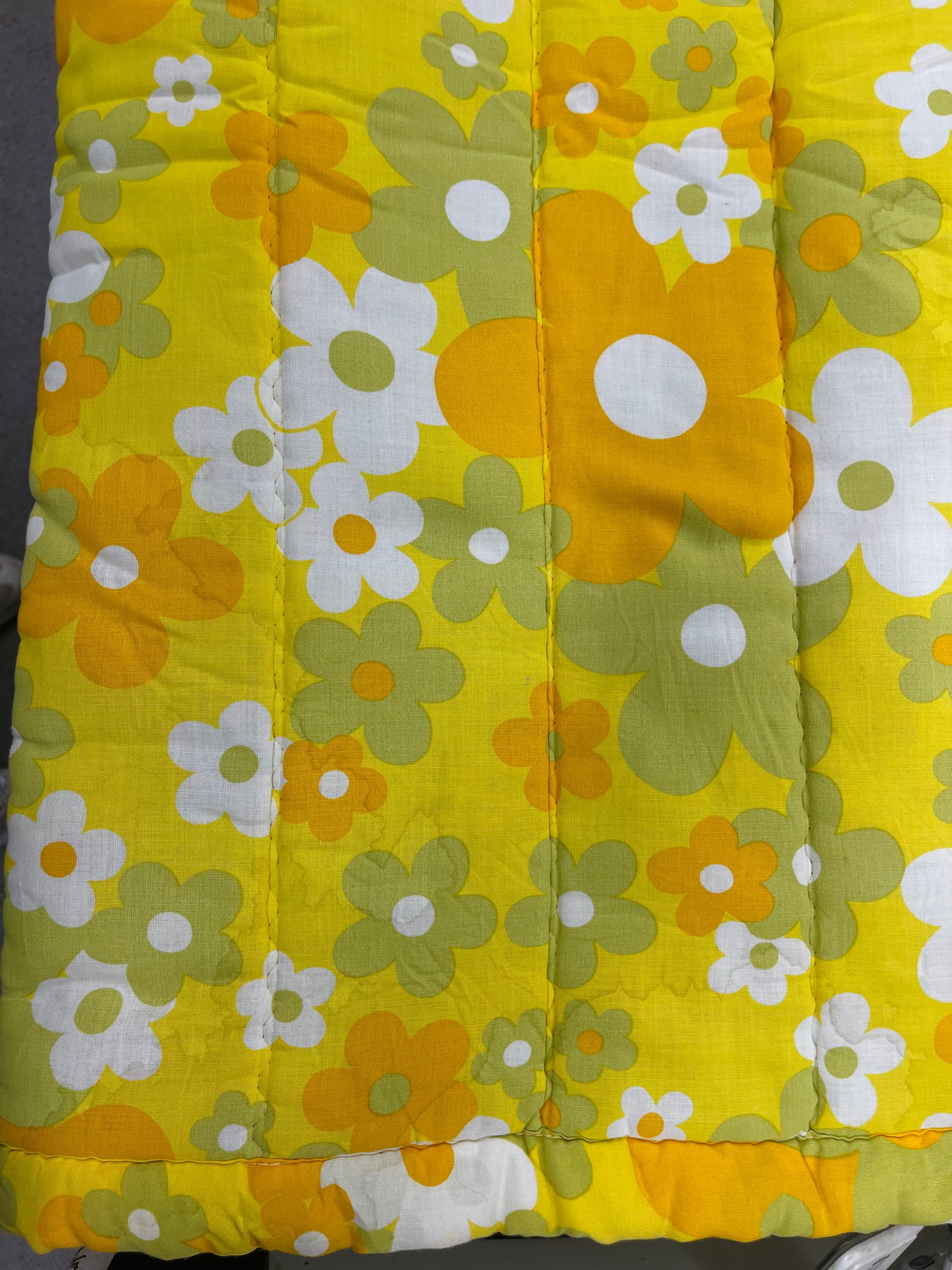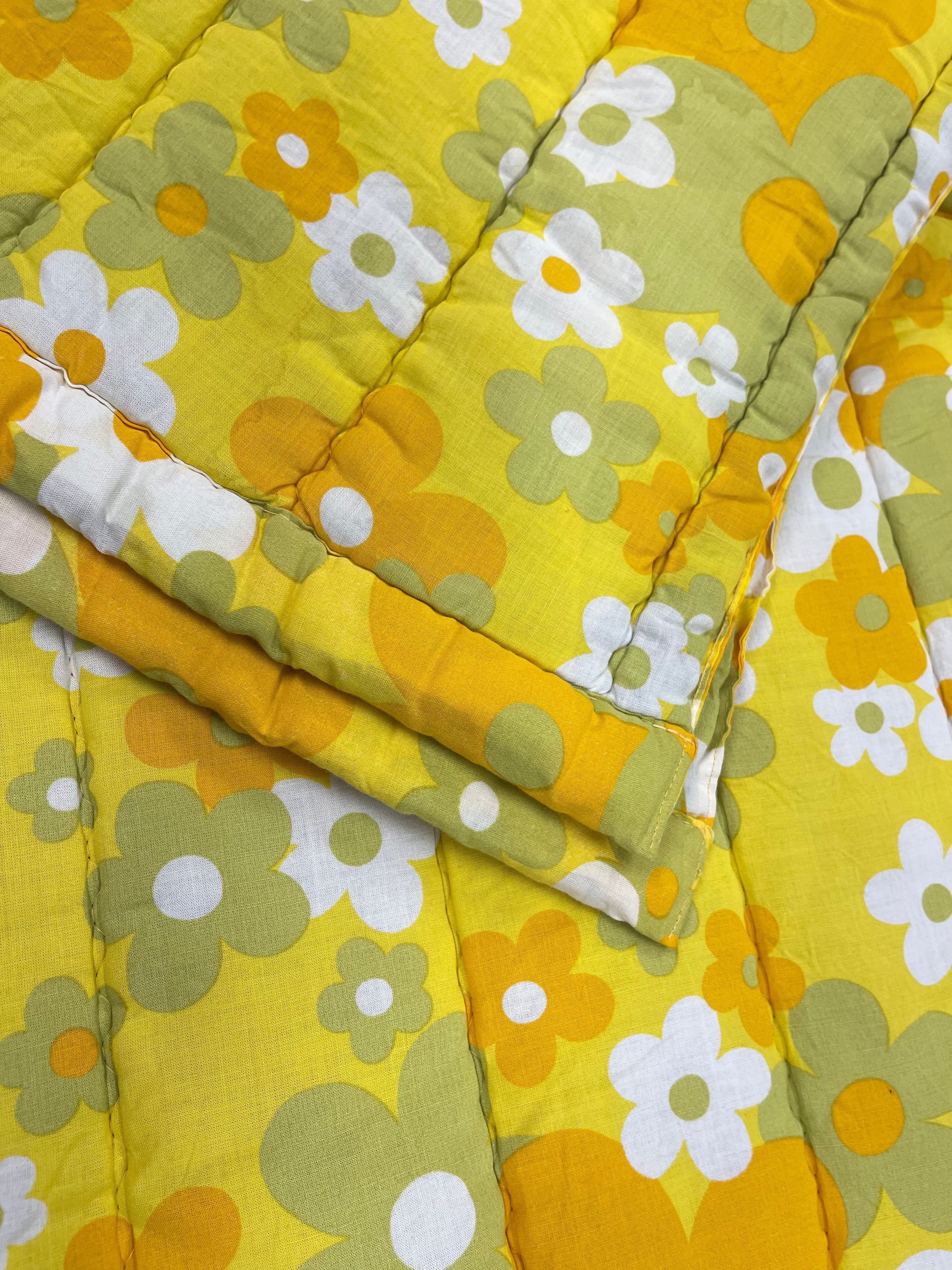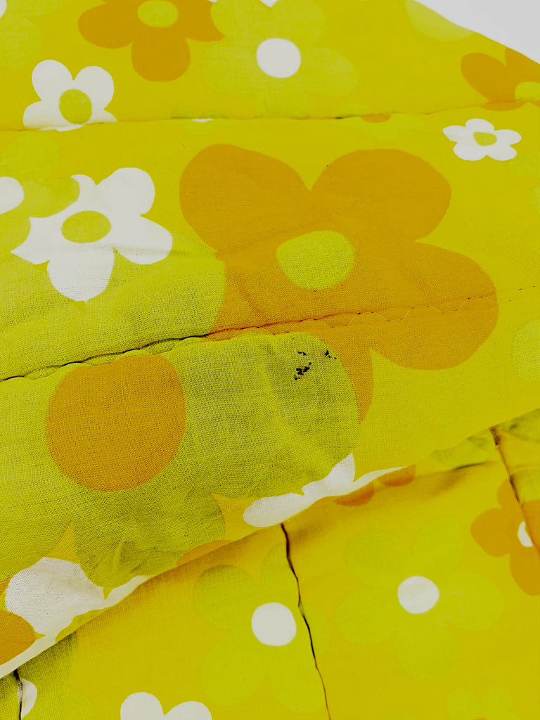 Vintage täcke tillverkat av Familon. Mycket märken av fukt, se bilder. Troligtvis har de uppstått vid någon tvätt utan centrifugering. Ett litet hål har jag kunnat hitta, i övrigt i gott skick. Ingen lukt.