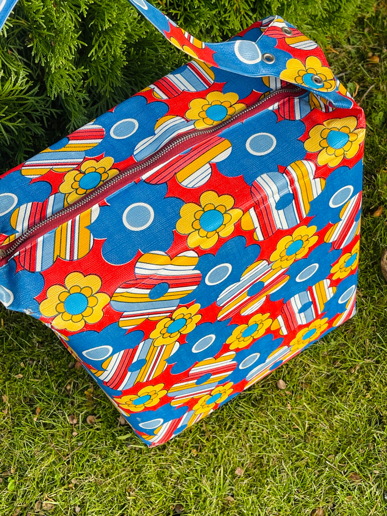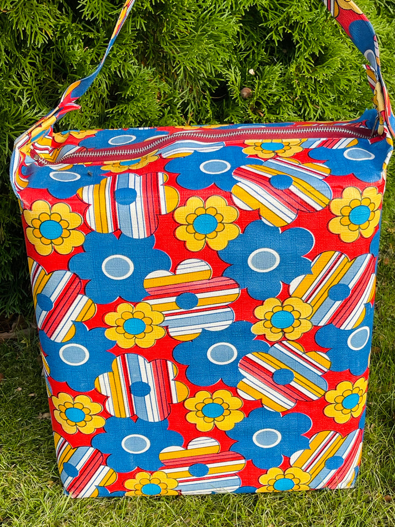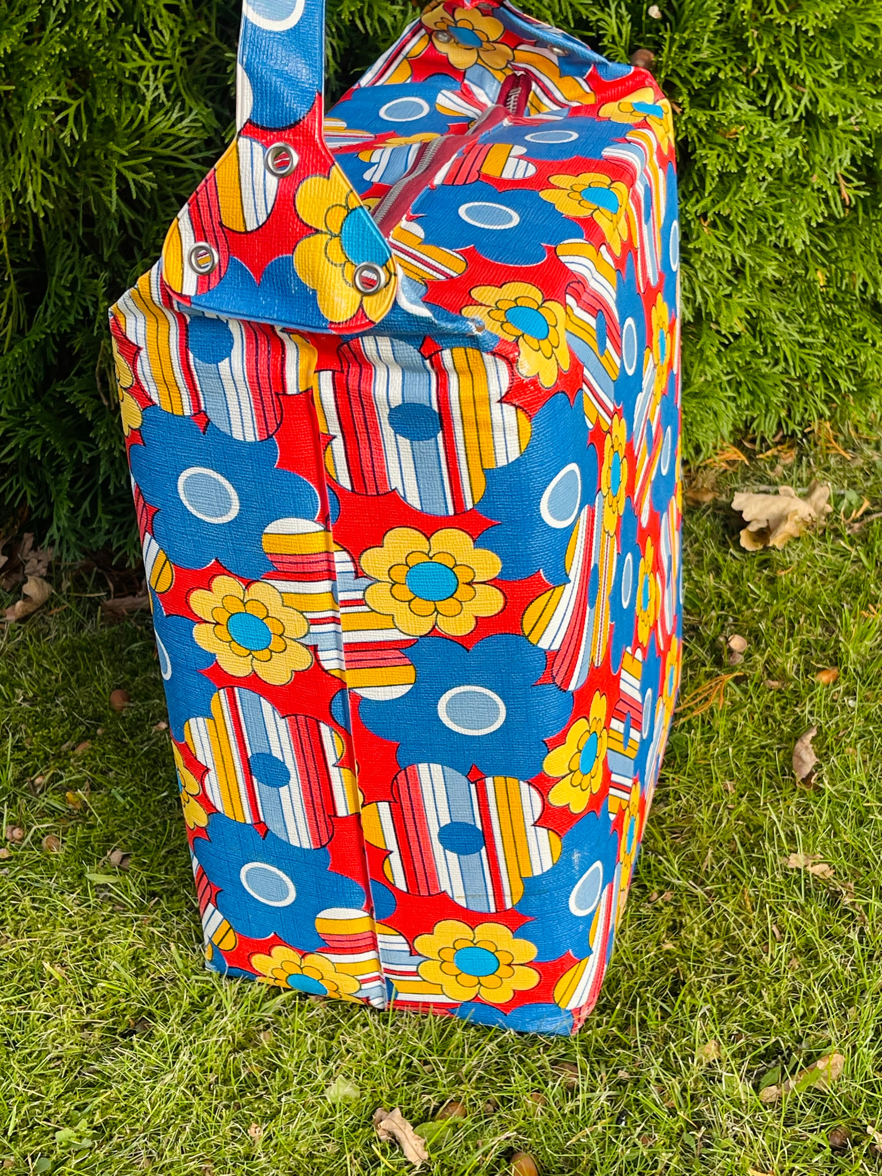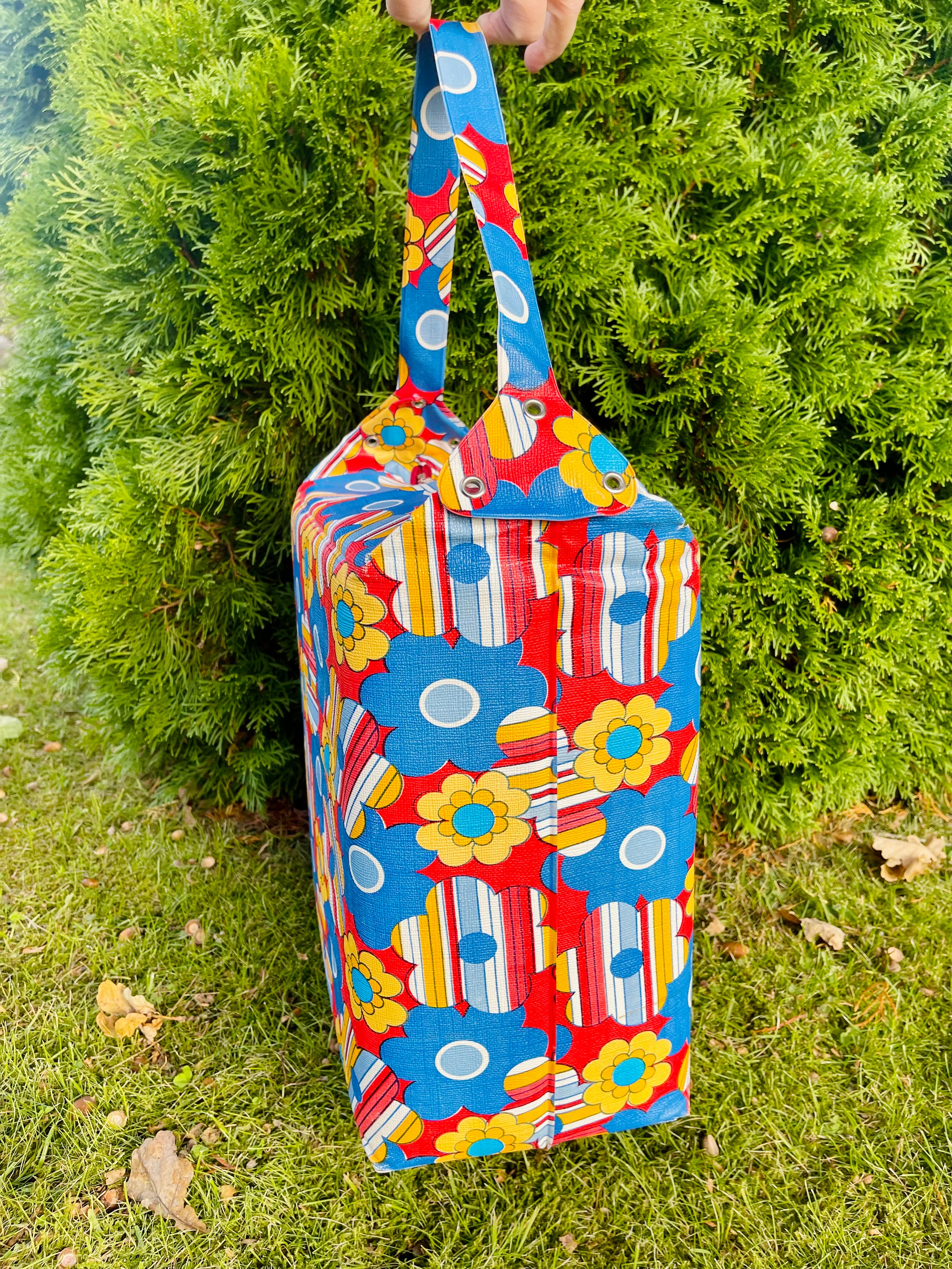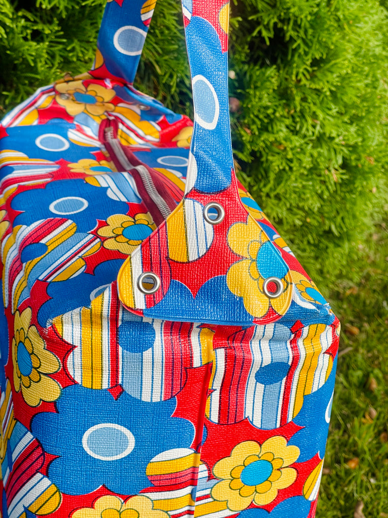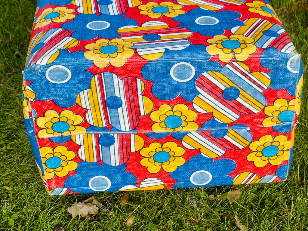 En kylväska man blir glad av, äkta 60-tal (möjligen tidigt 70-tal). Bruksspår, små skador och spår av tidens tand, se bilder, men i allmänt gott skick för sin ålder.