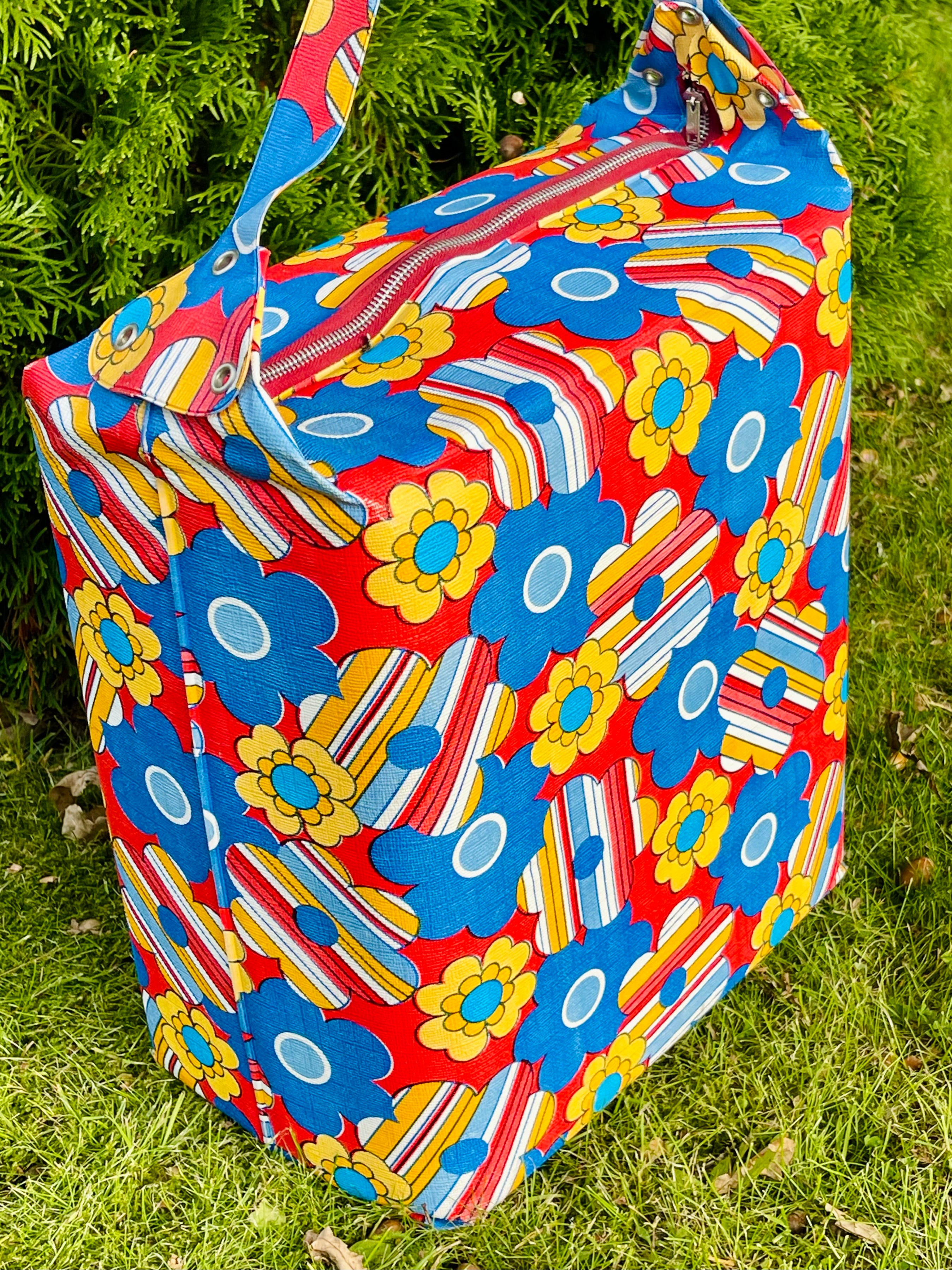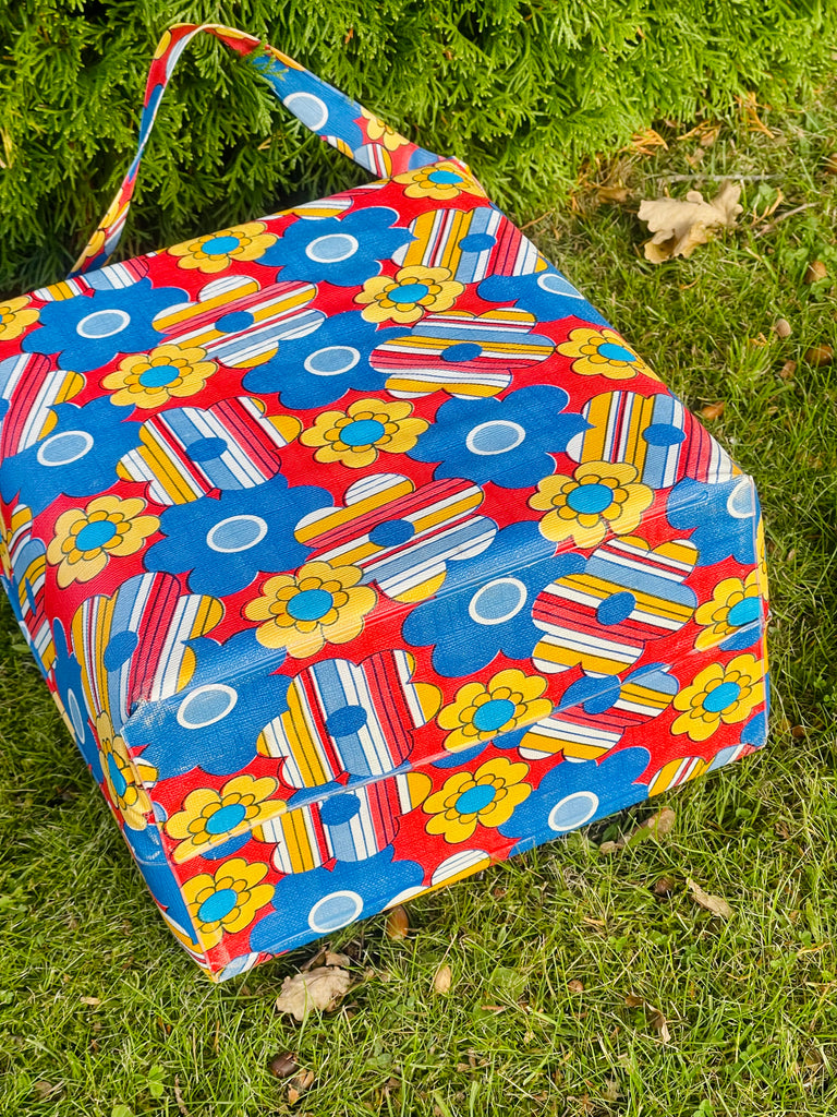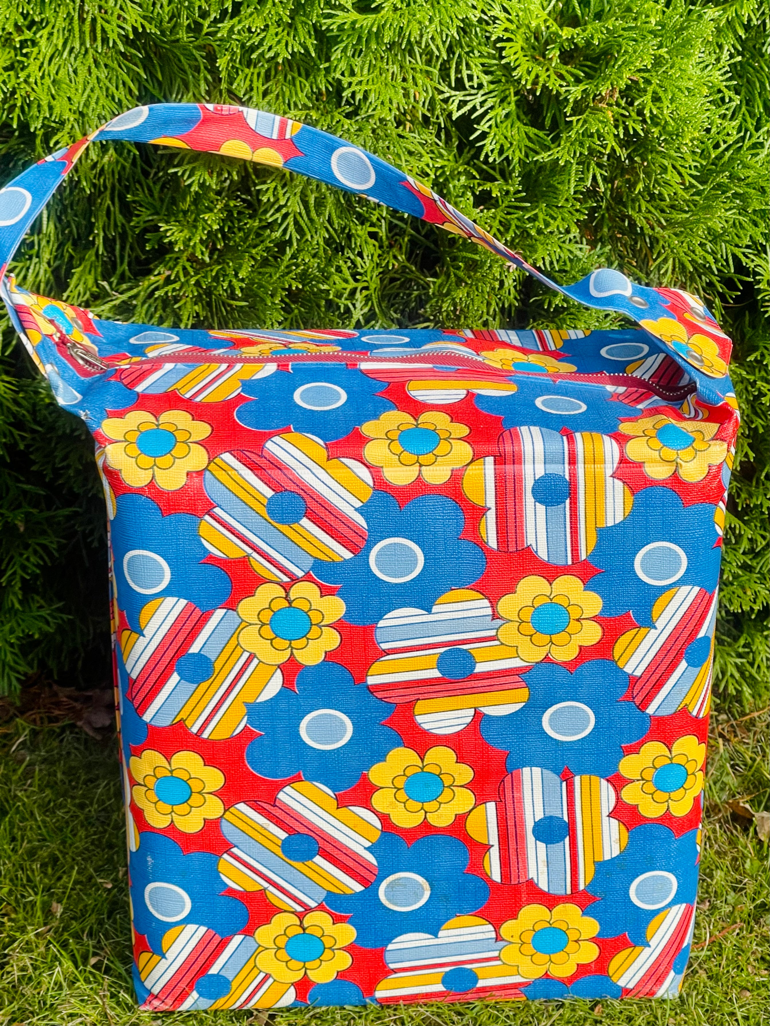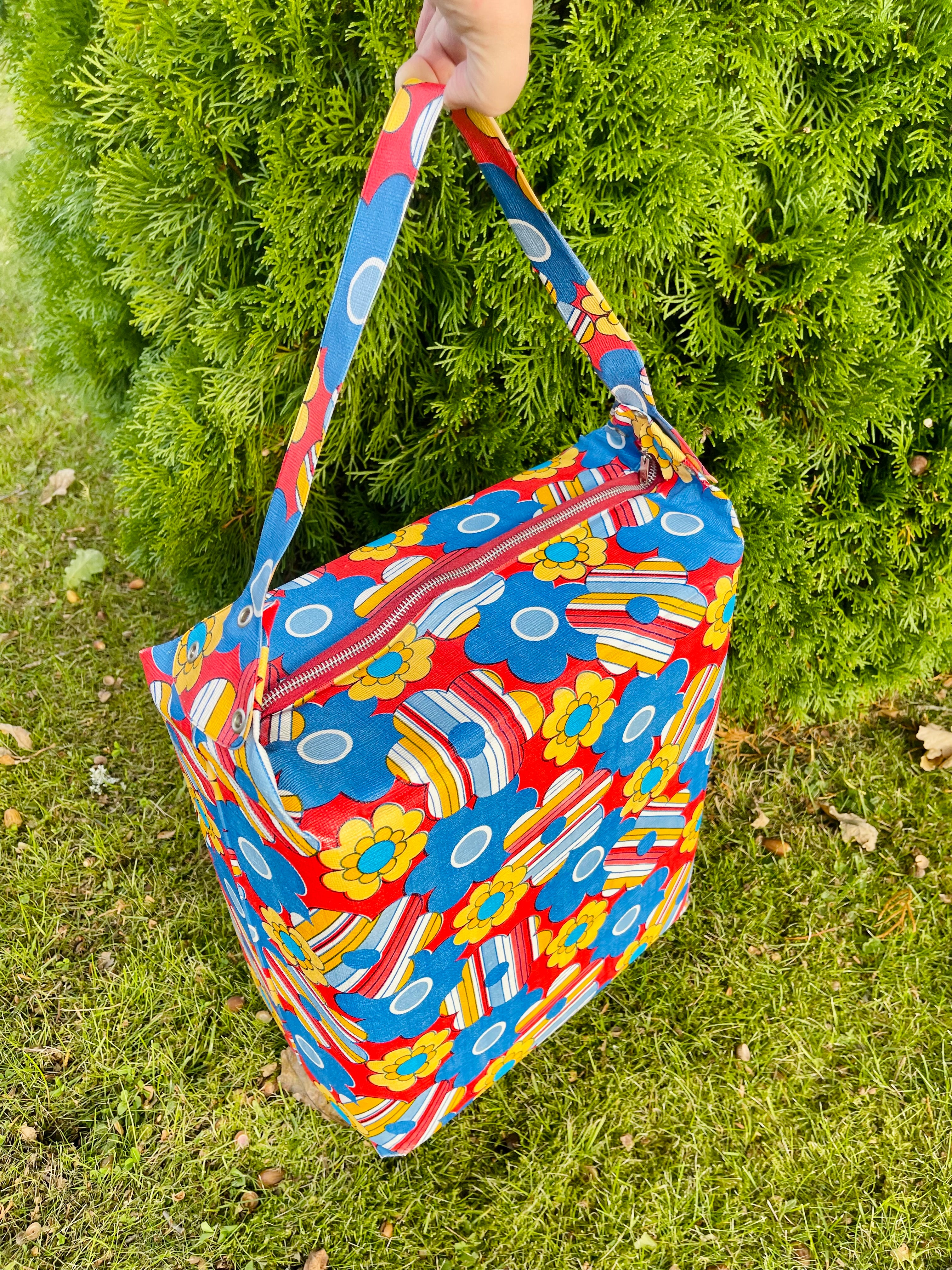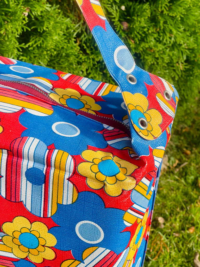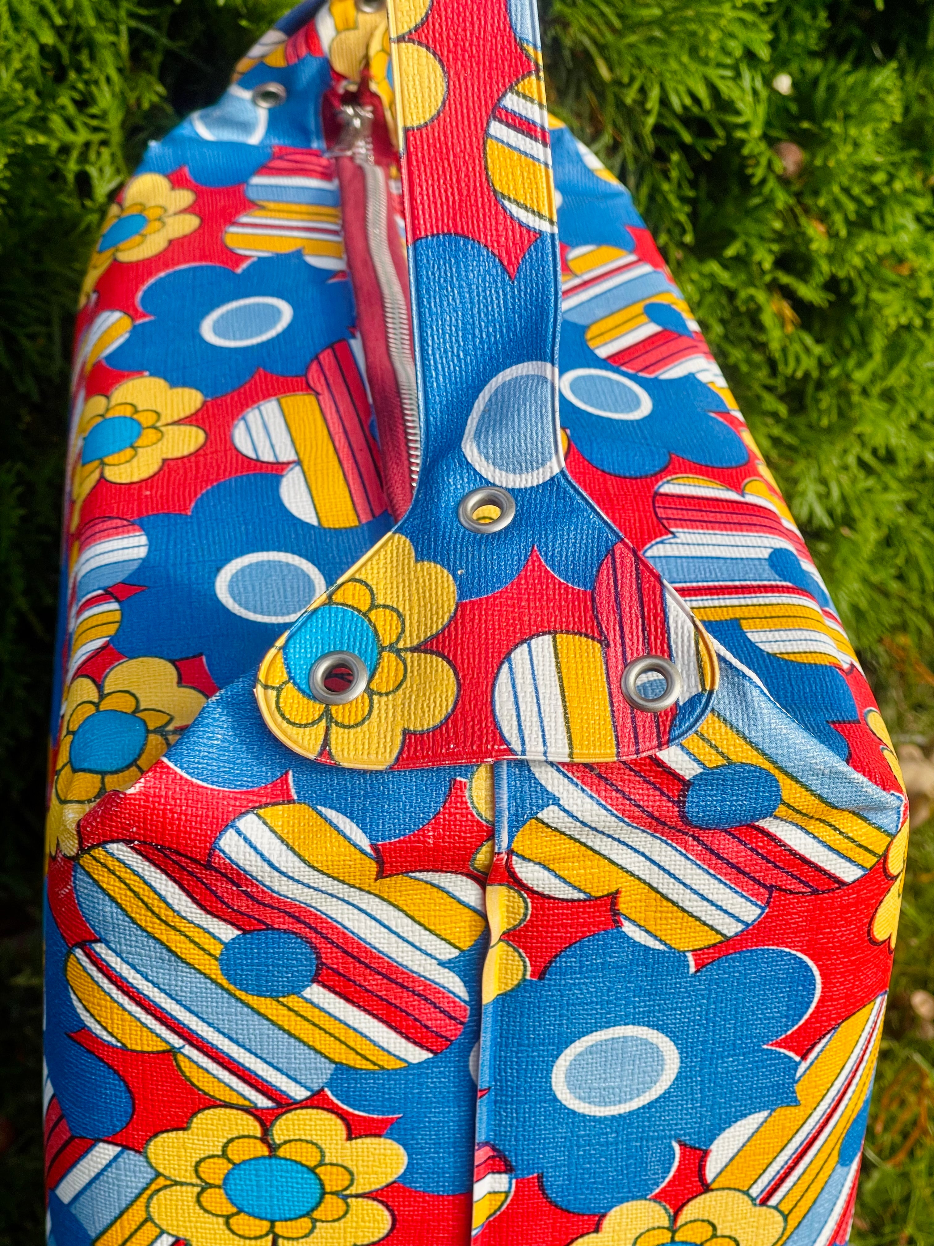 En kylväska man blir glad av, äkta 60-tal (möjligen tidigt 70-tal). Bruksspår, små skador och spår av tidens tand, se bilder, men i allmänt gott skick för sin ålder.