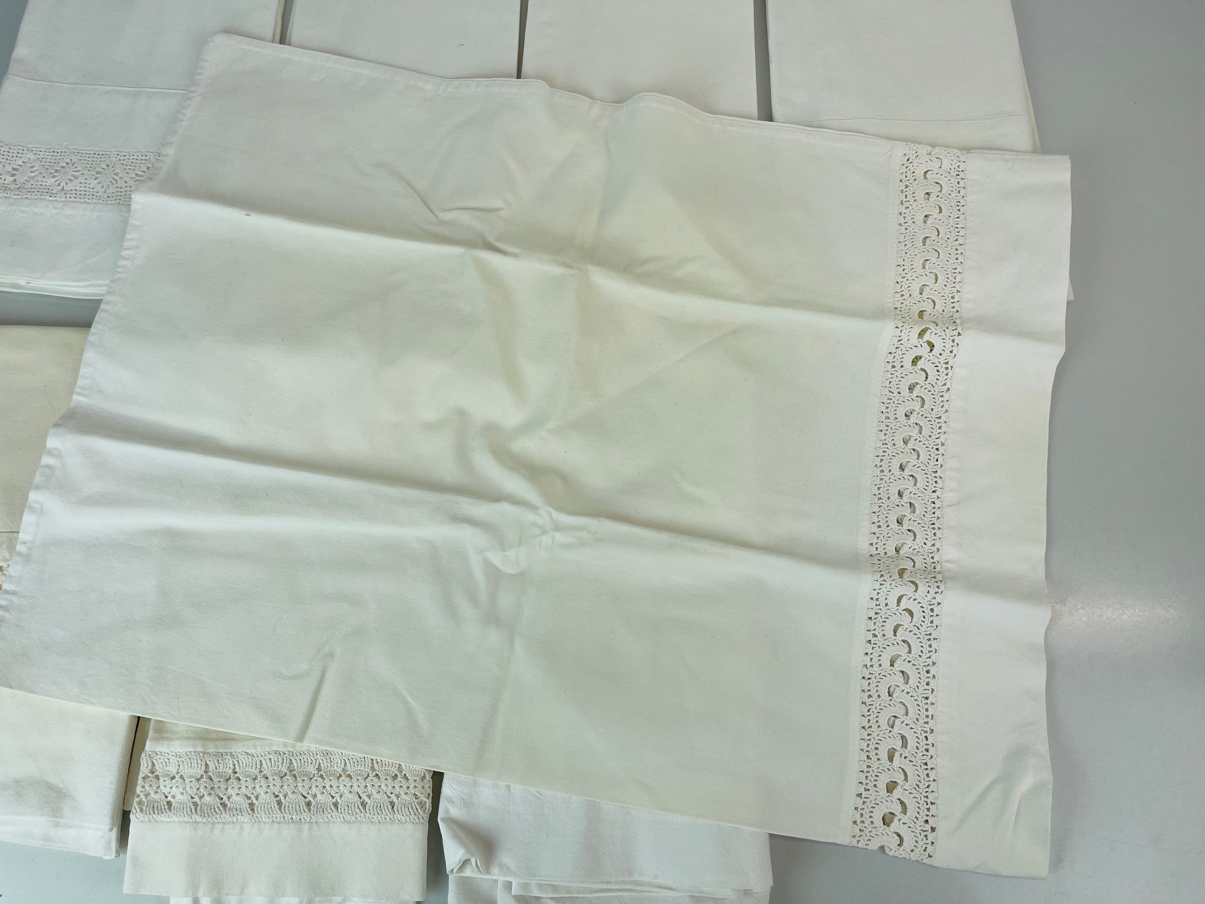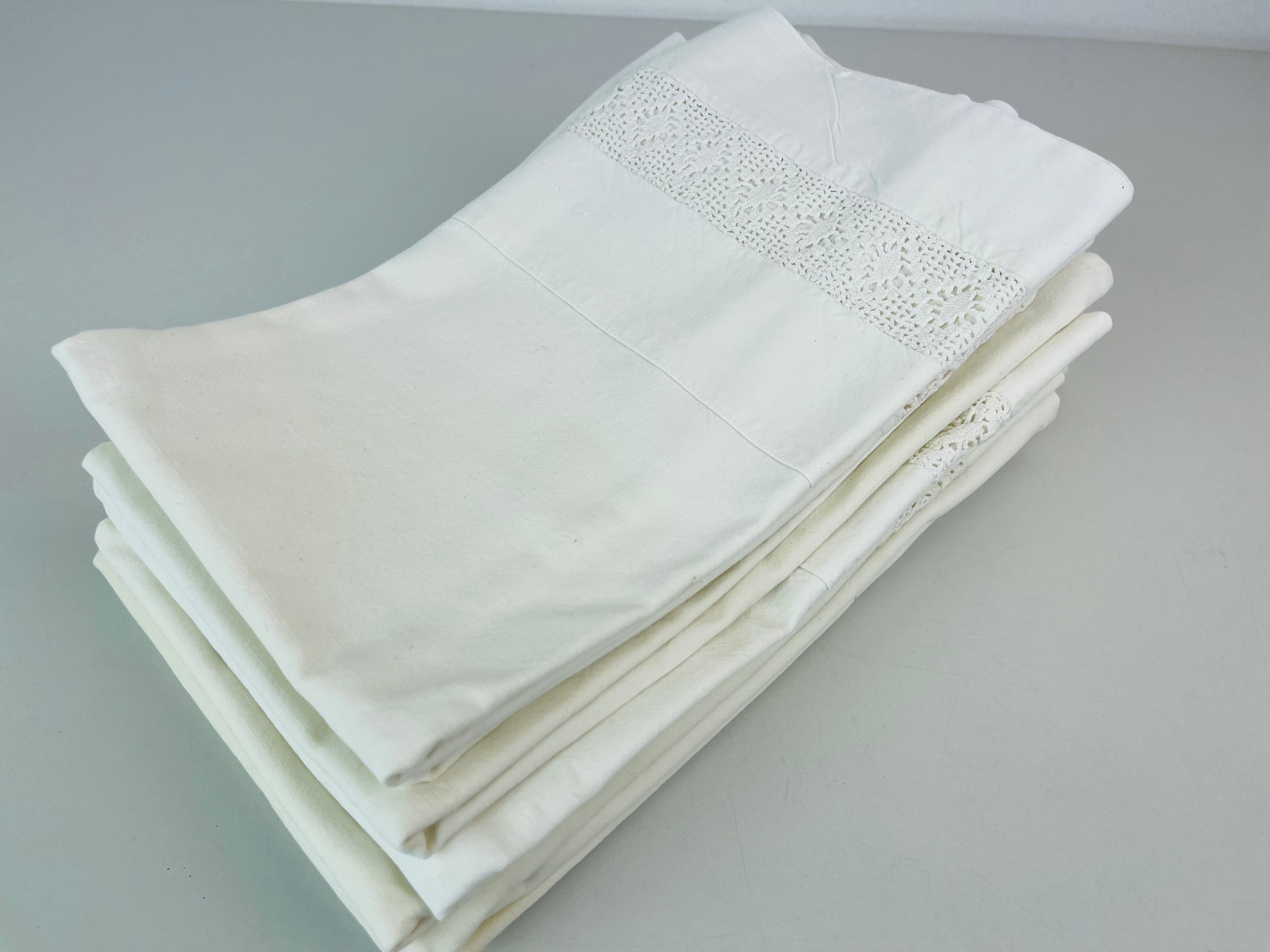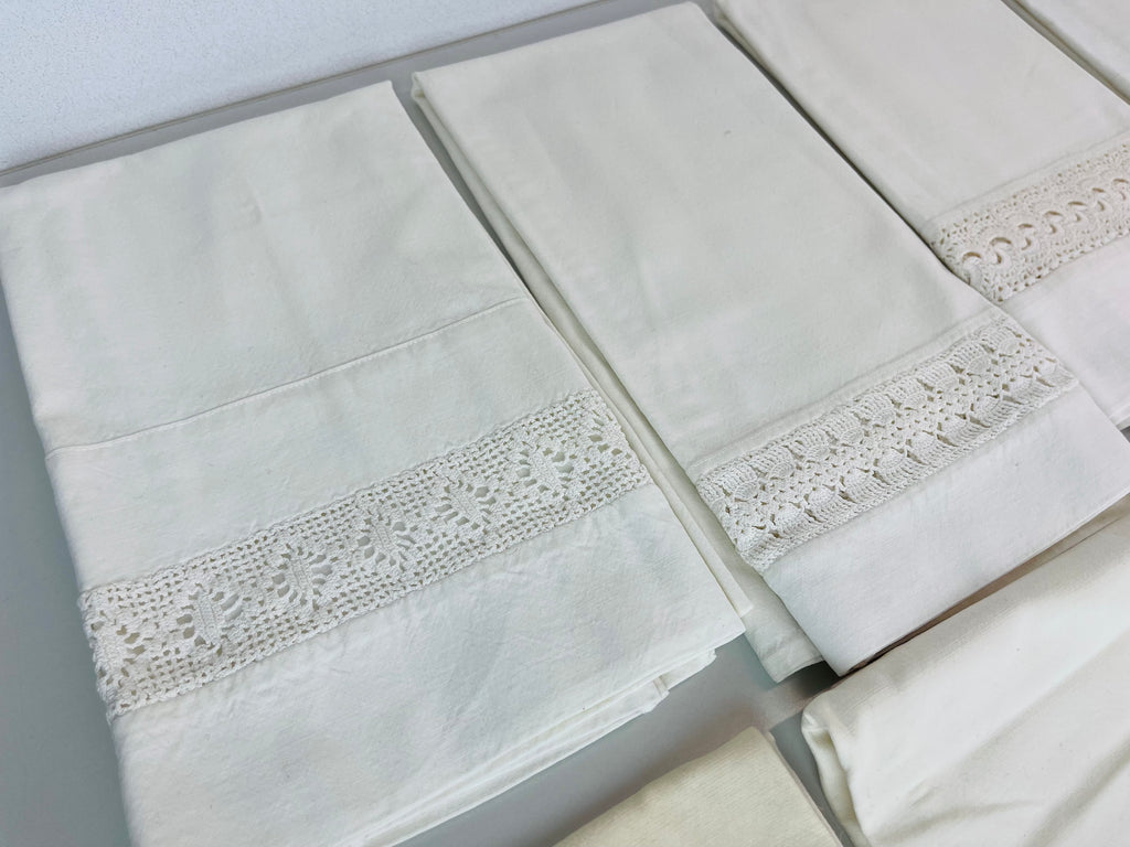 Gamla örngott av linnetyg med spetsdekor Backorderd