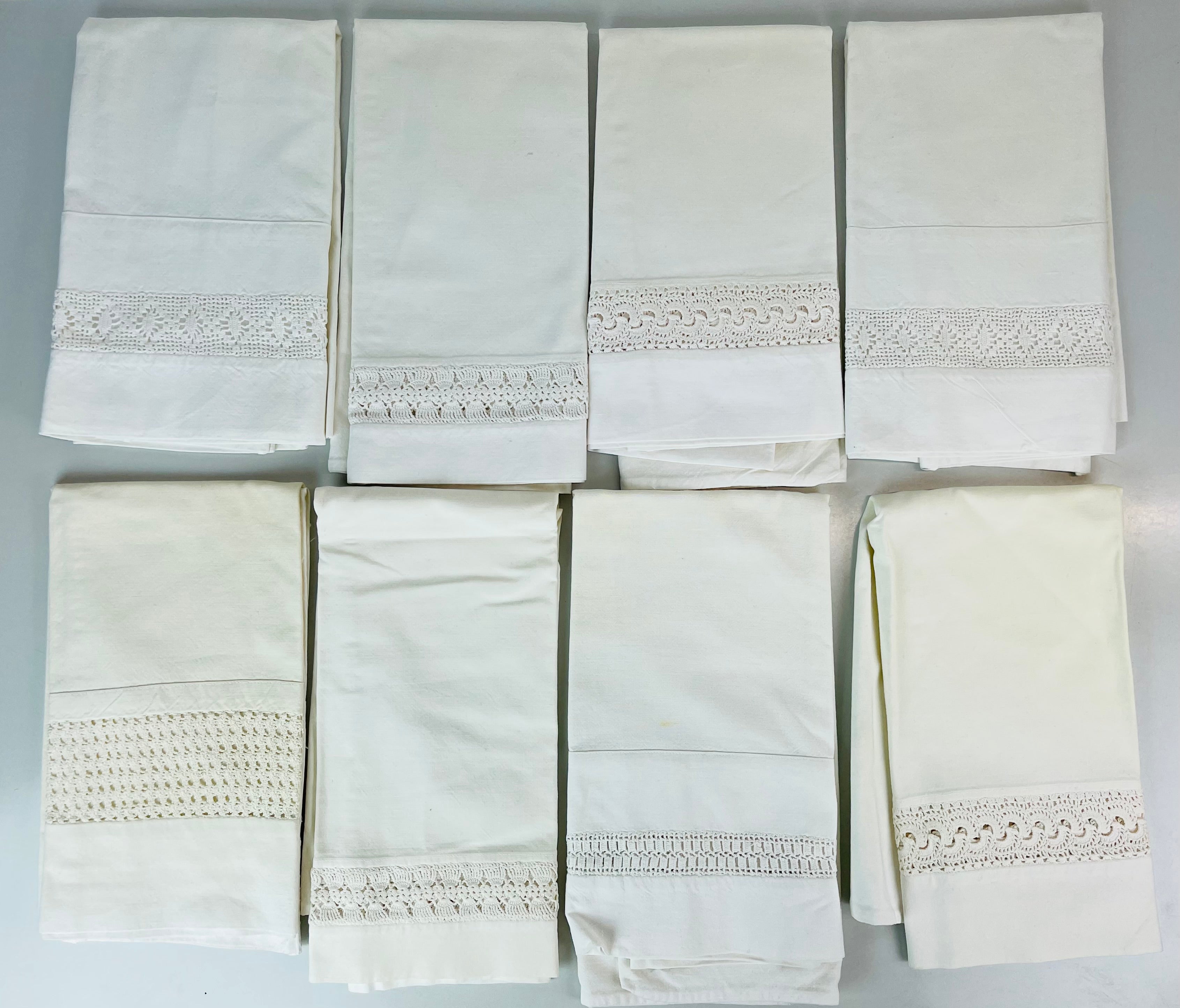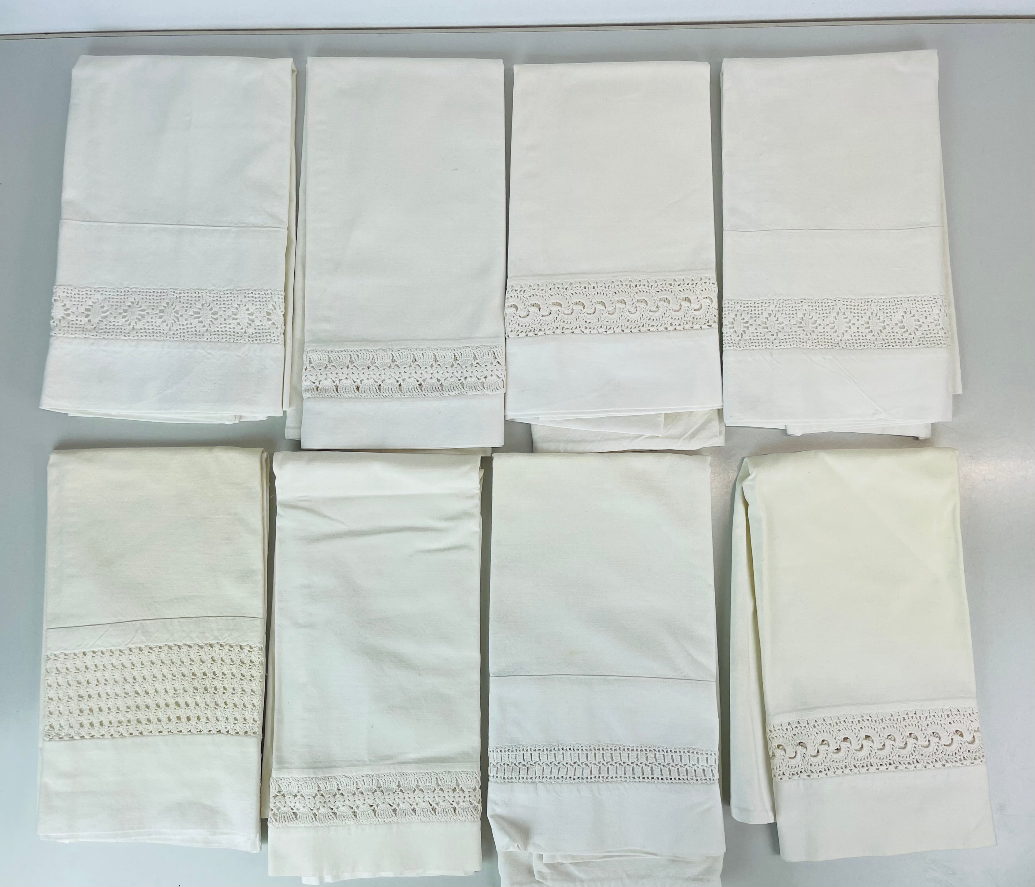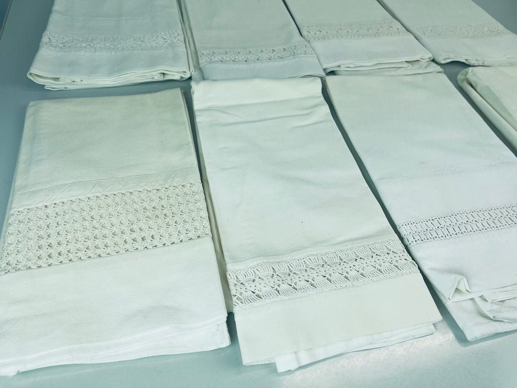 8 stycken gamla dynvar/ örngott, hela men några är lite gulnade, går säkert att bleka med klor.