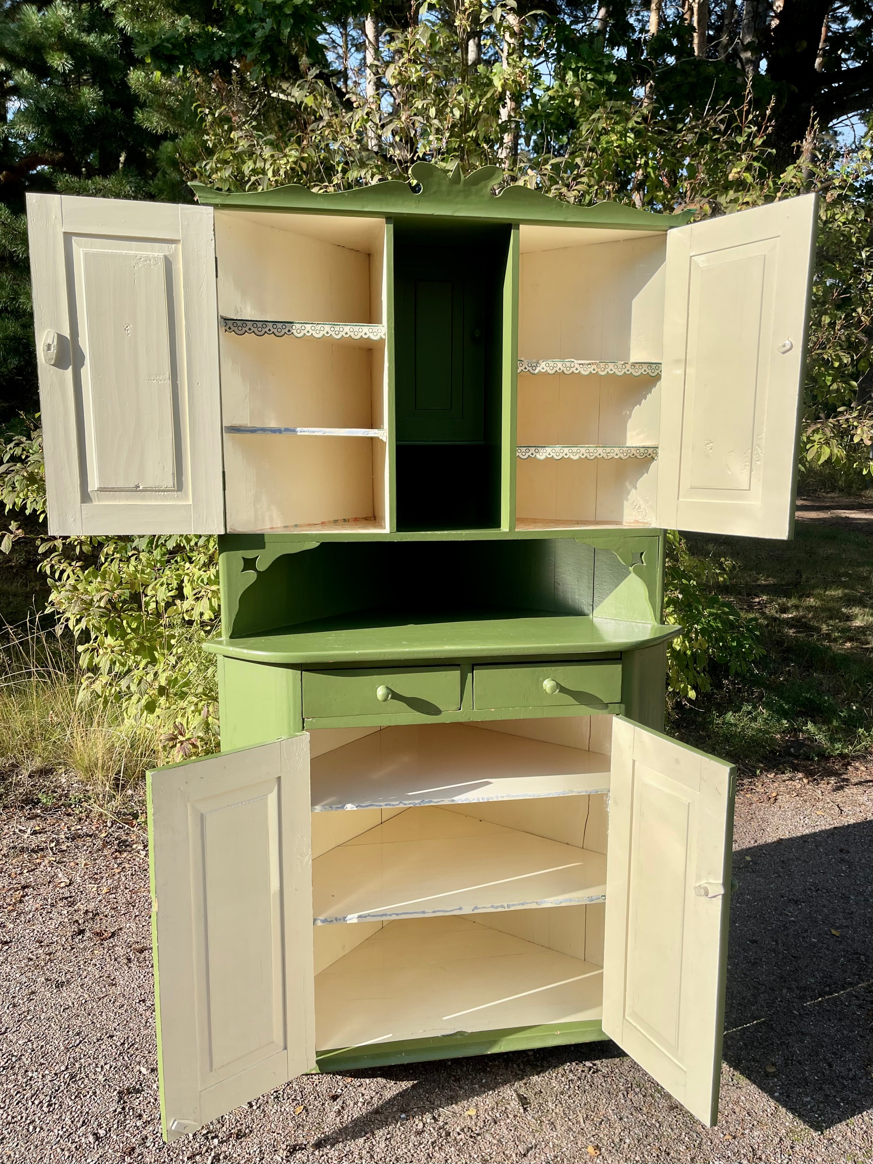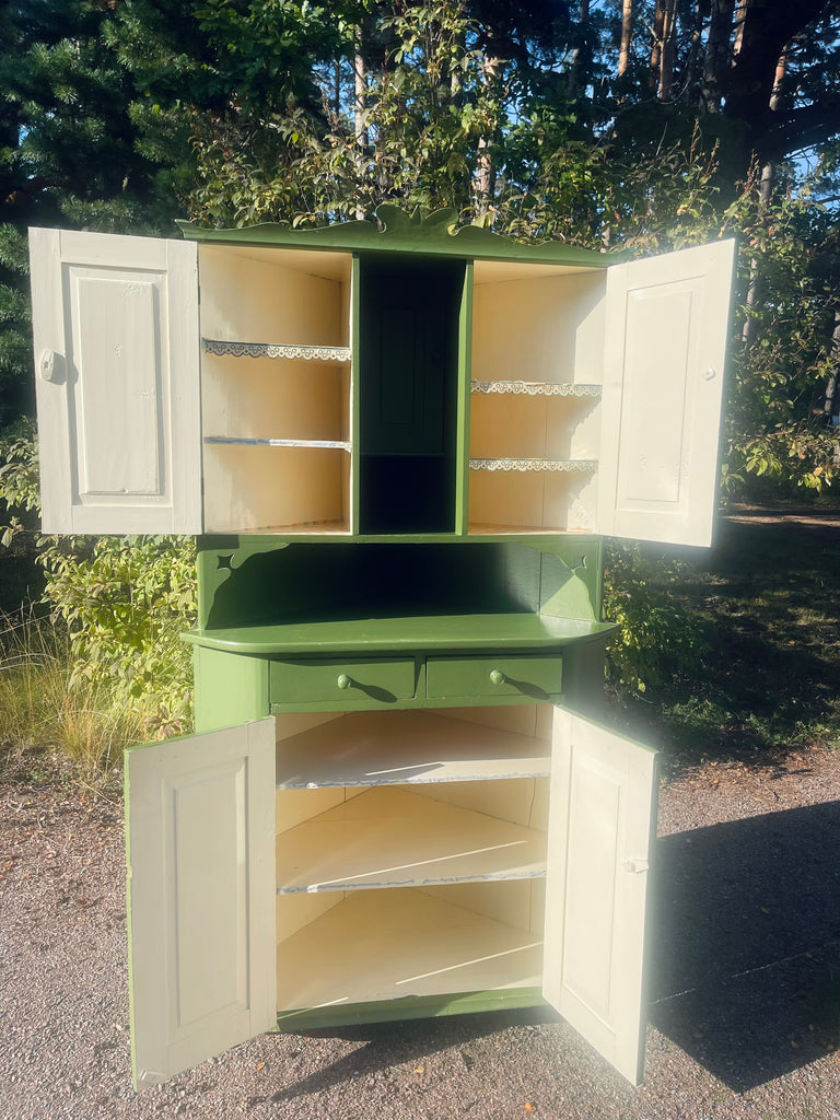Gammalt, lantligt hörnskåp från 1930-talet