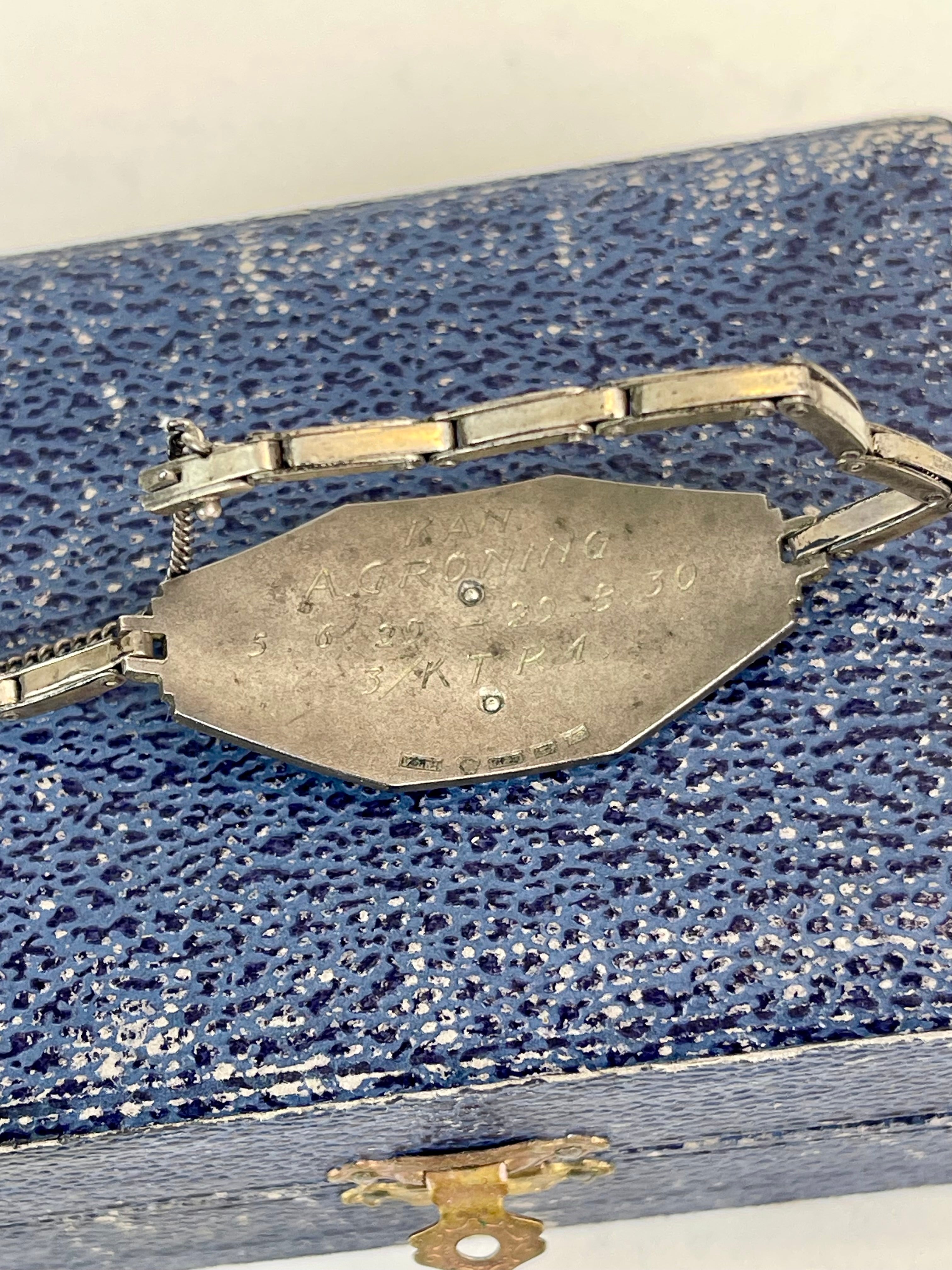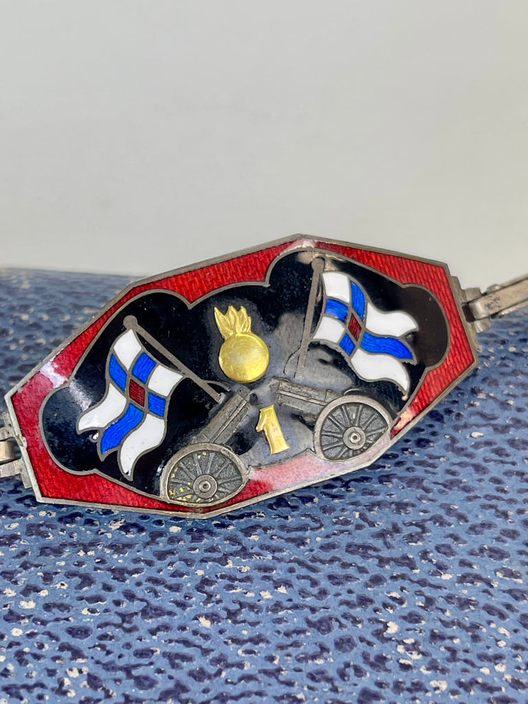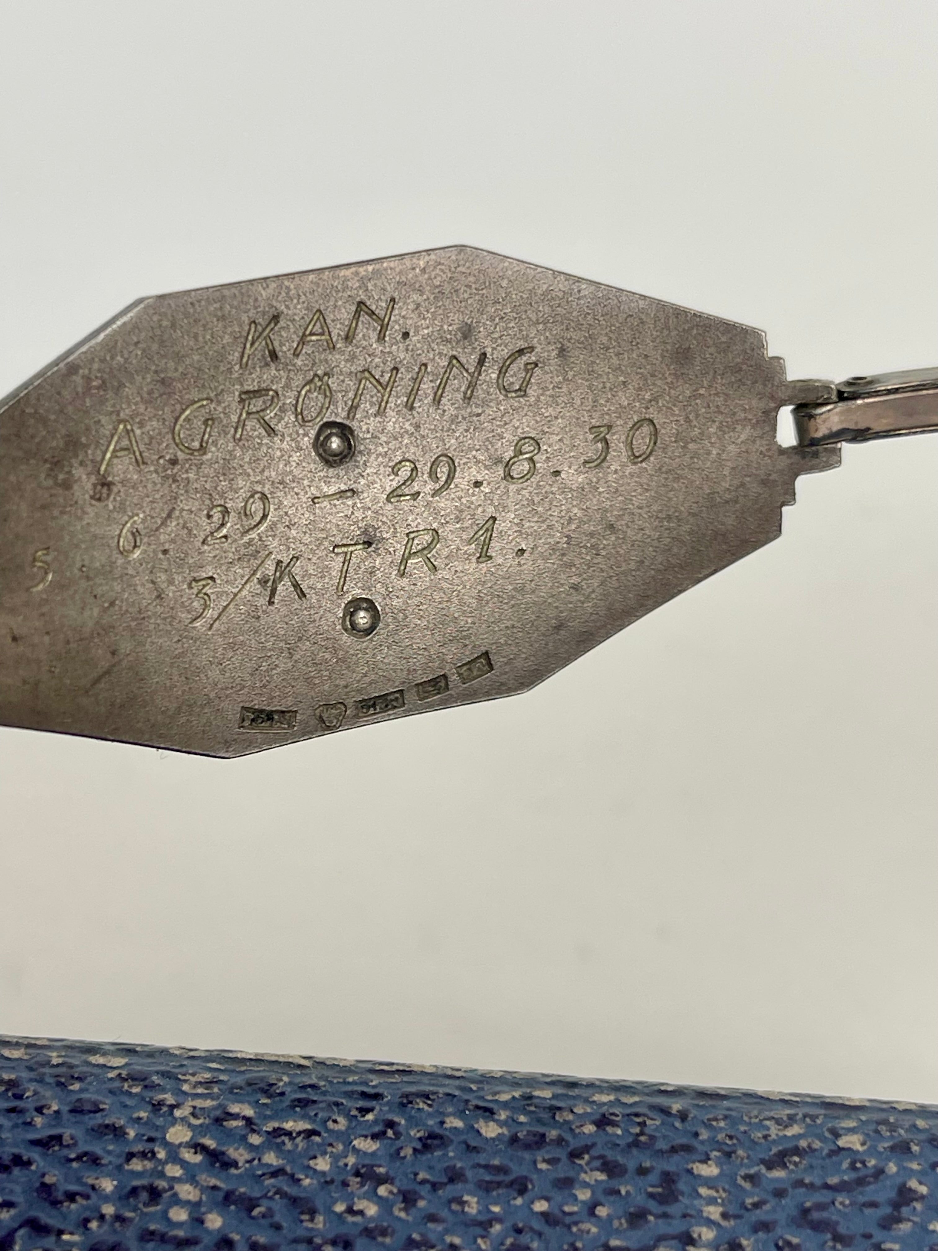 En järnring samt ett armband i emaljerat silver. Armbandet är daterat och graverat på insidan och vittnar om att det är från 1930. Järnringen ägdes av samma man, men ringen är odaterad.