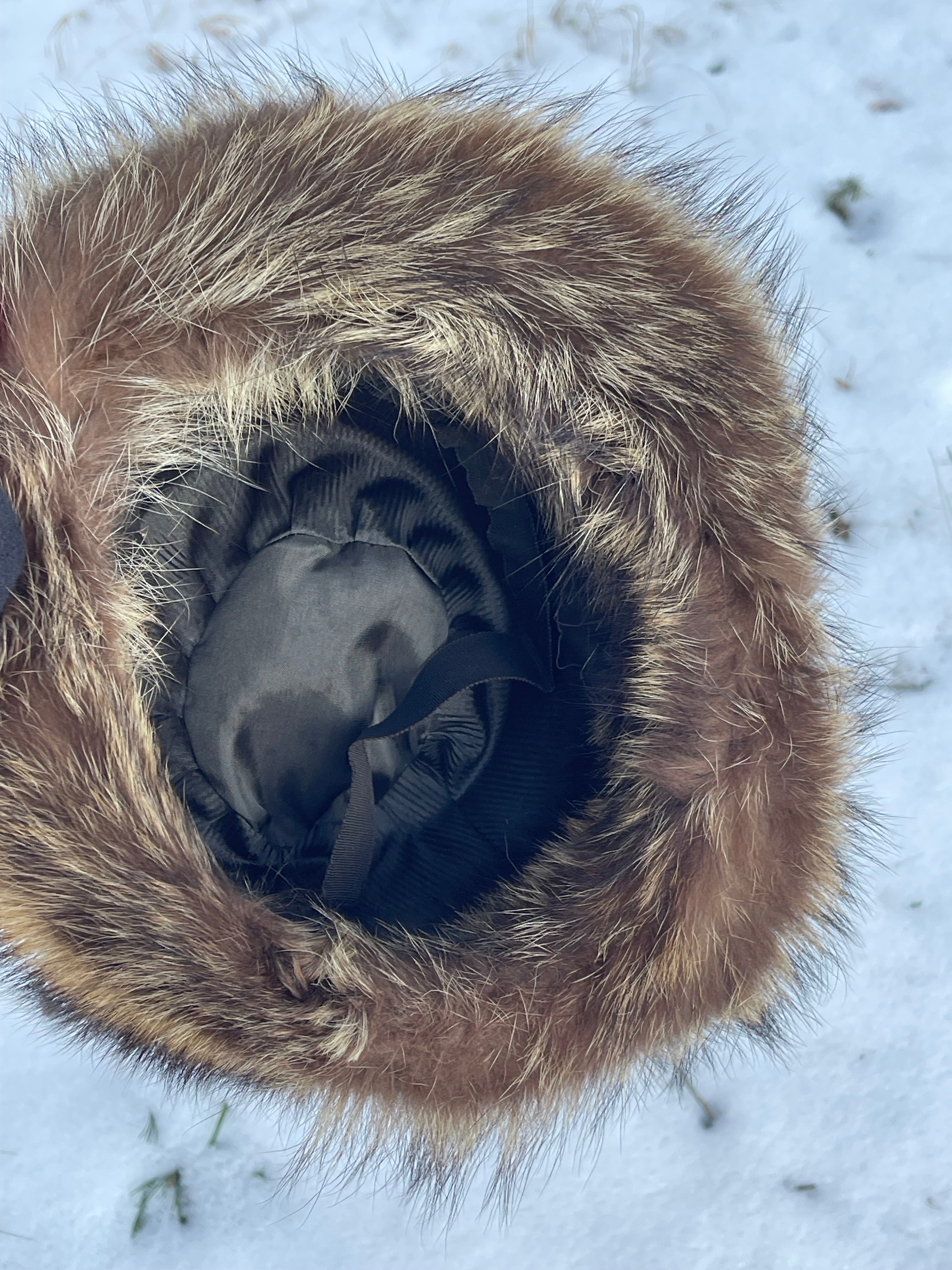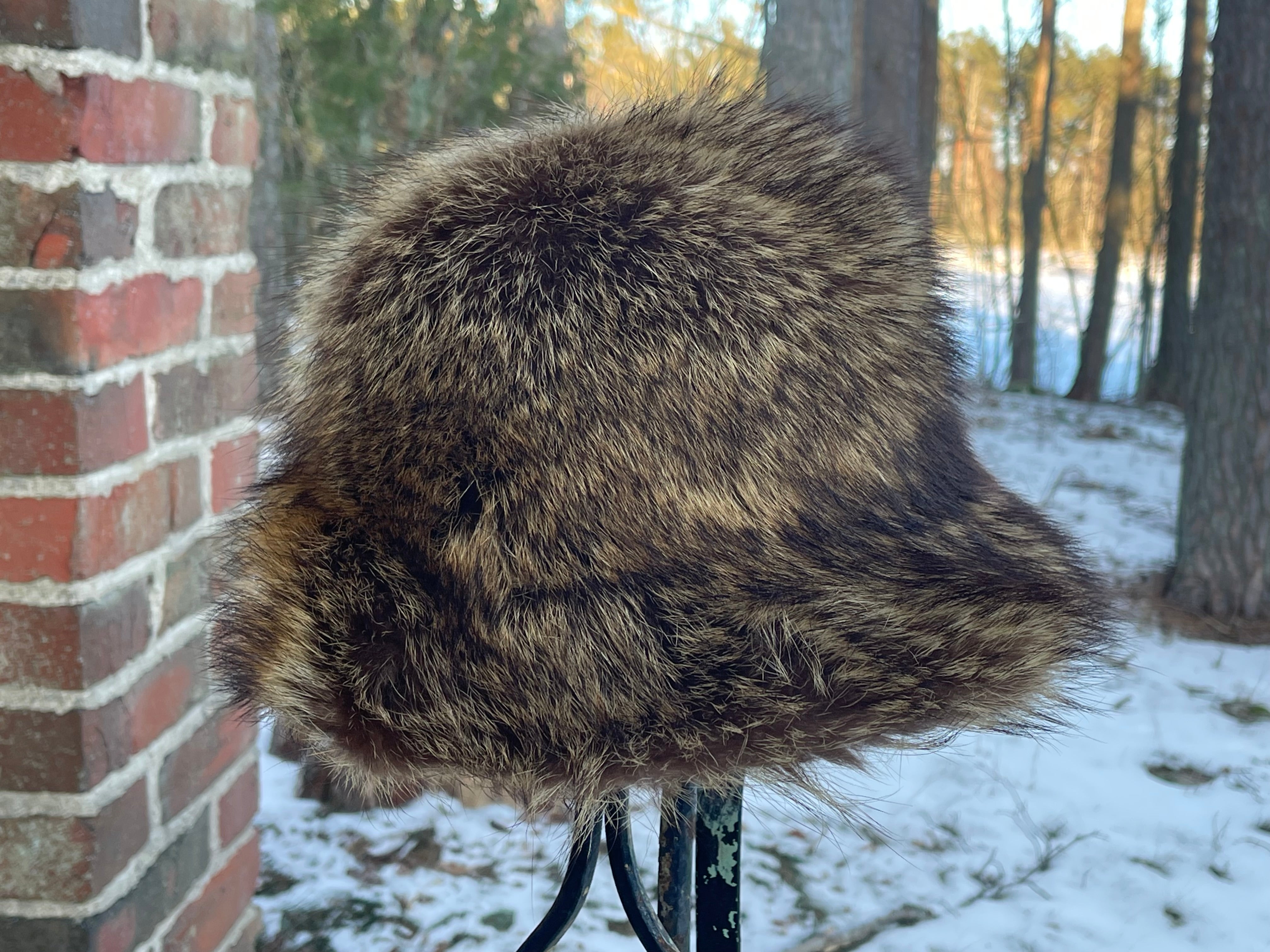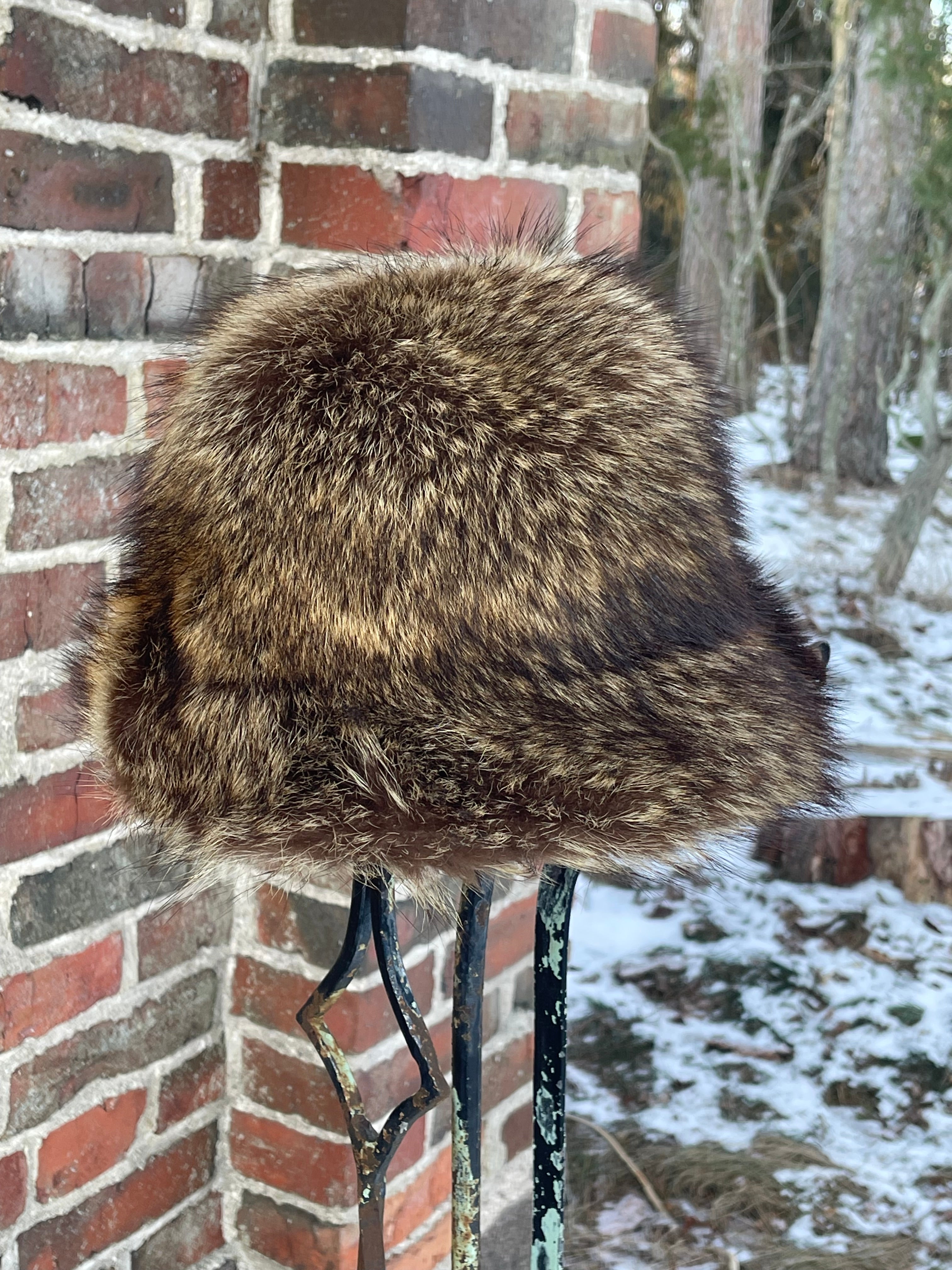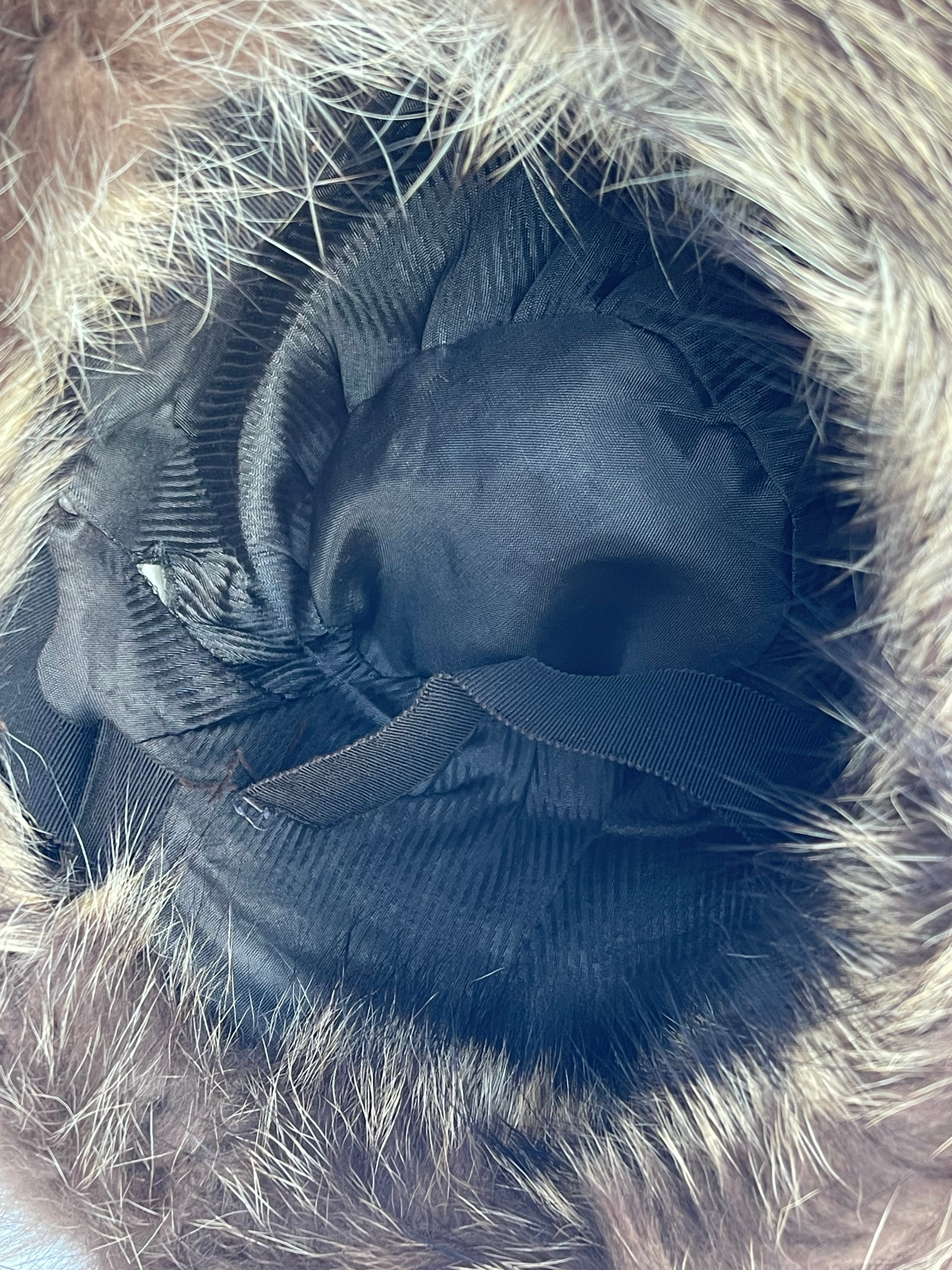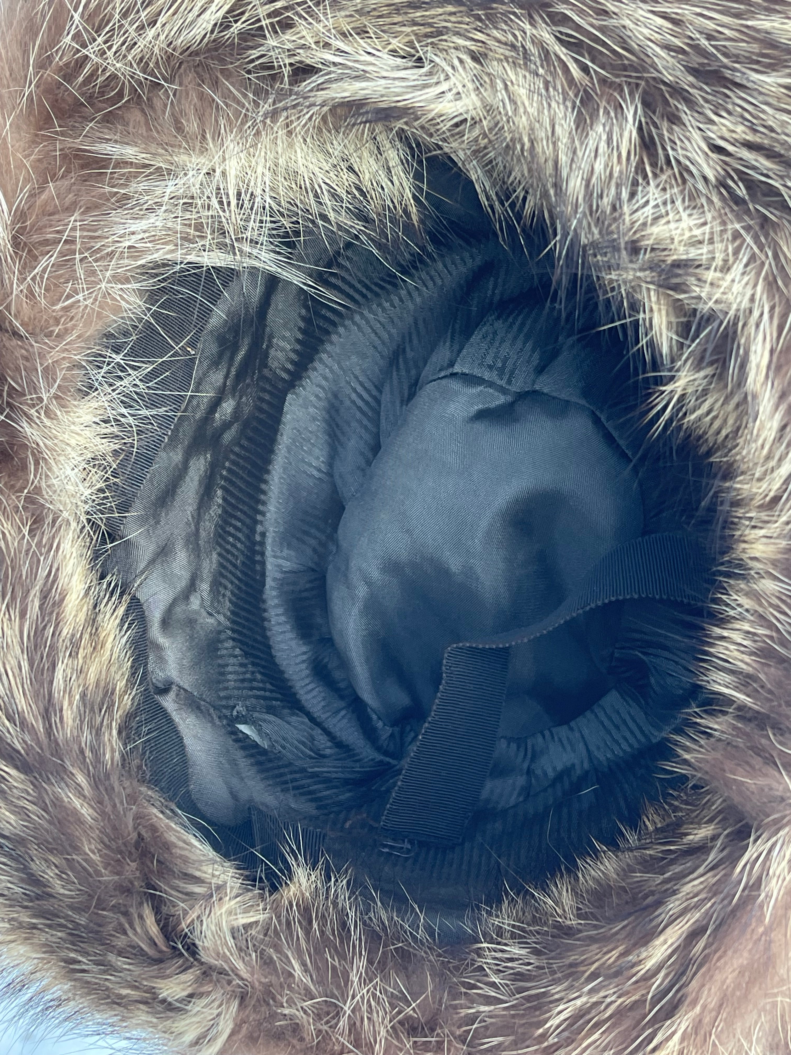Pälshatt, 60-tal, Fredrikssons OY. Pälsen i fint skick, innerfodrer lite slitet och ett kantband har lossnat lite.