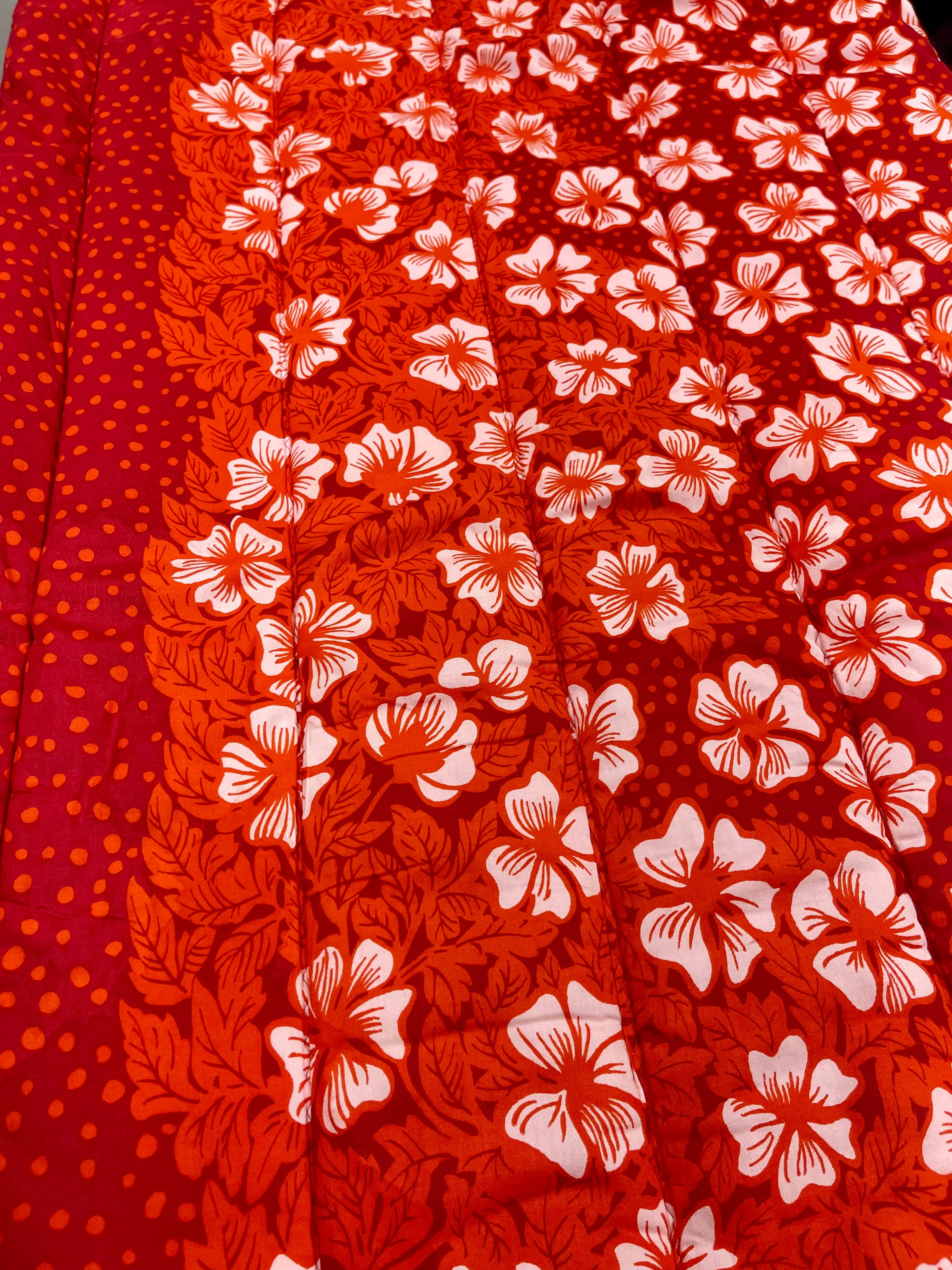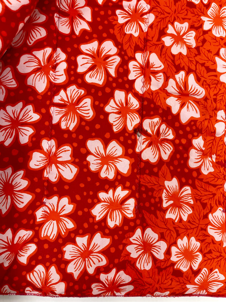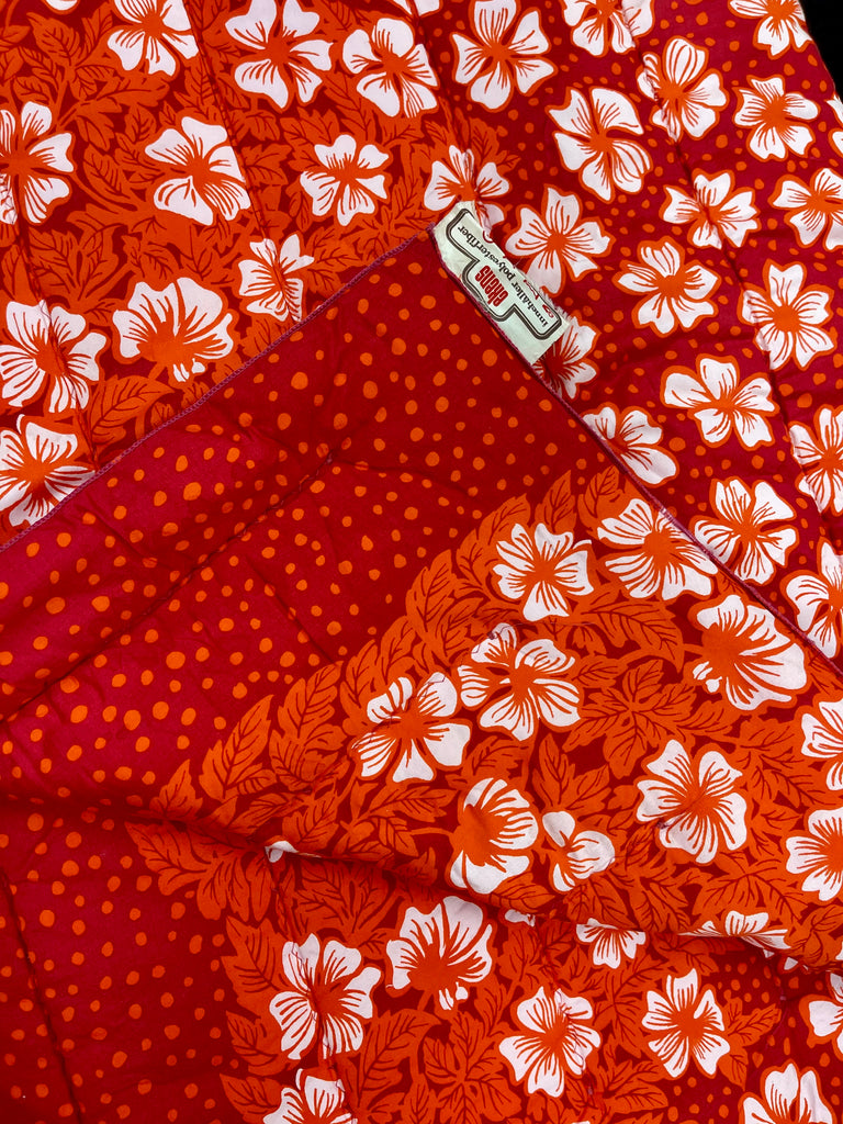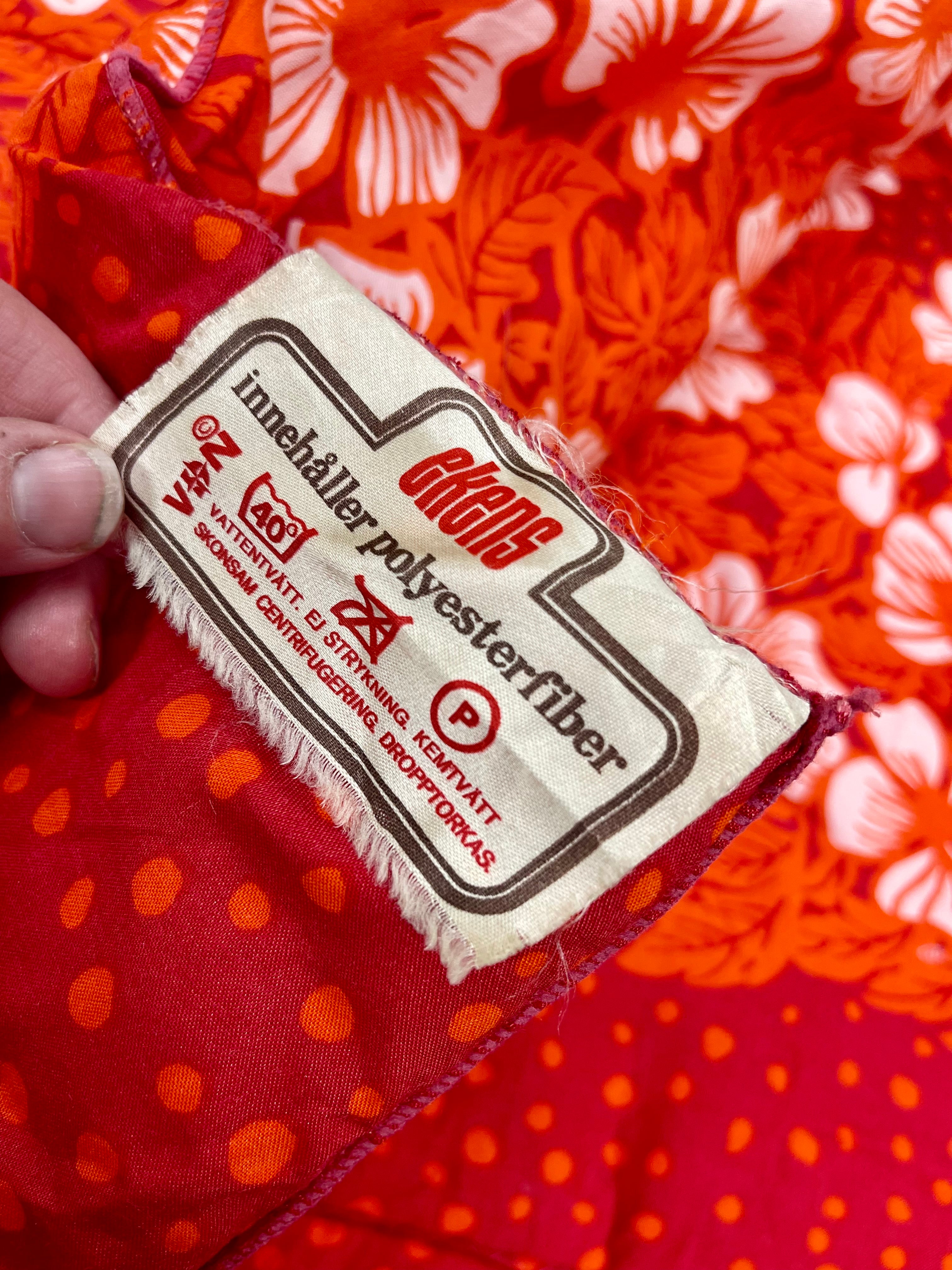 Vintage täcke i rött med blommigt mönster. Mycket gott skick och ingen lukt.