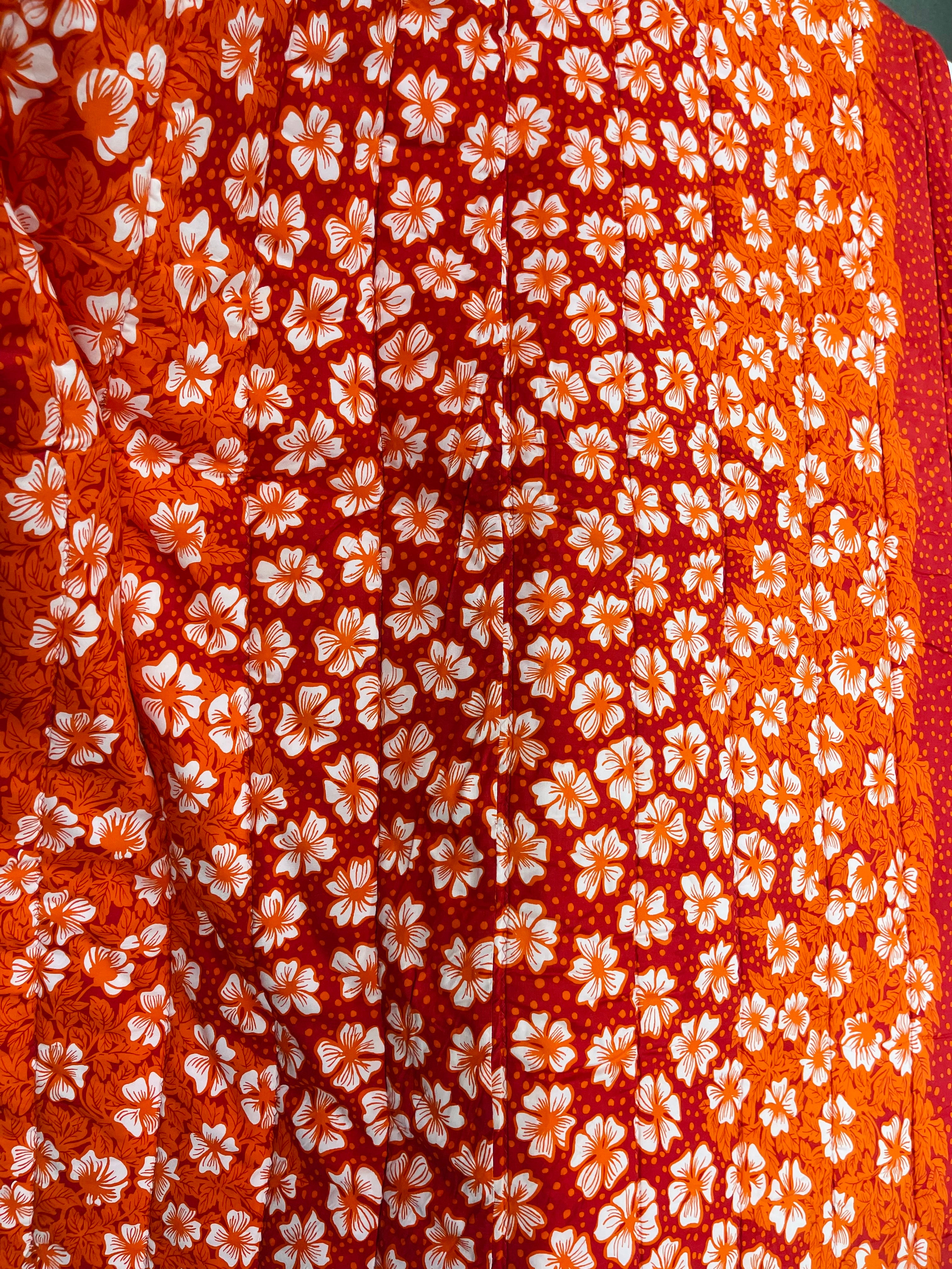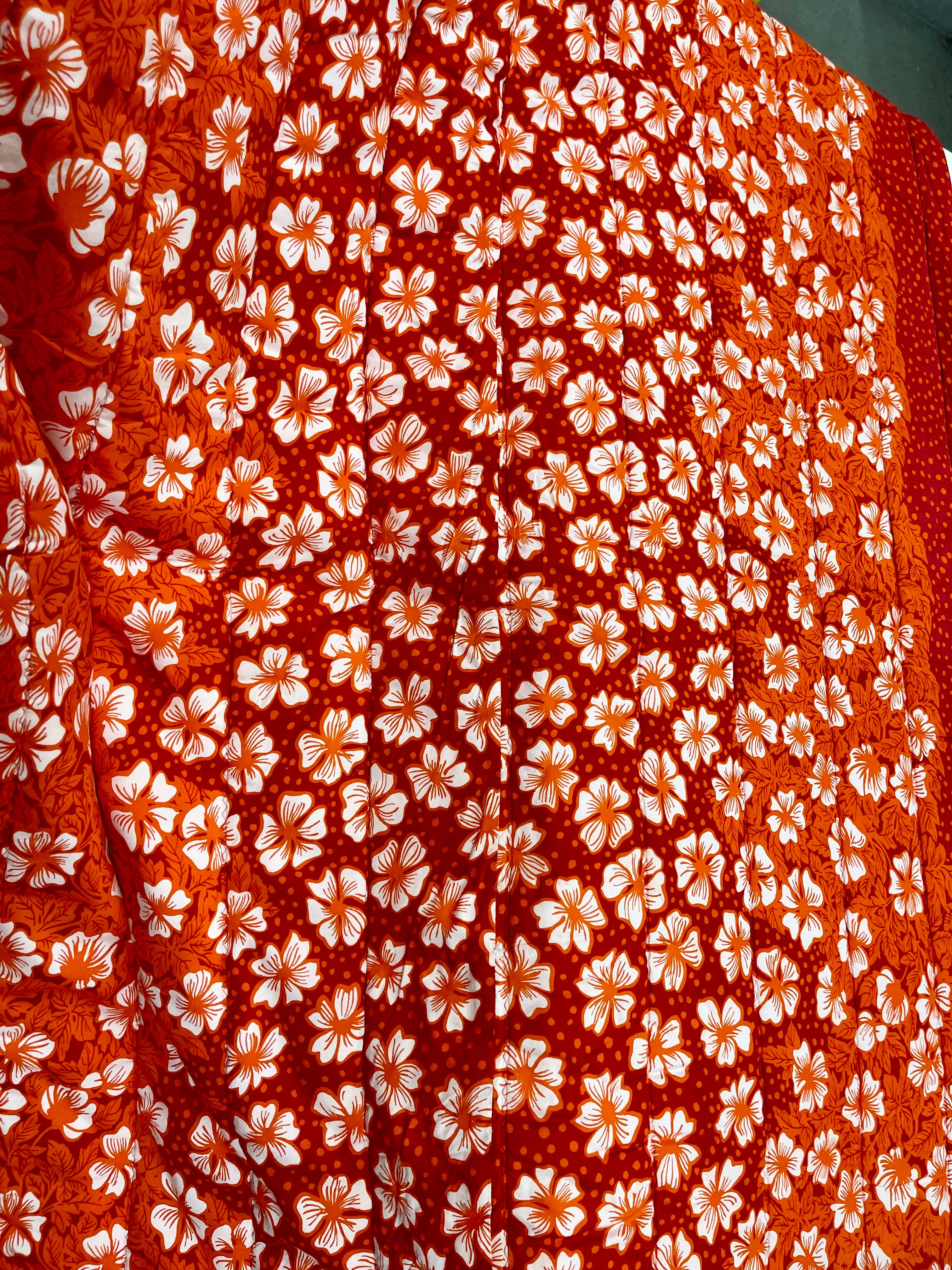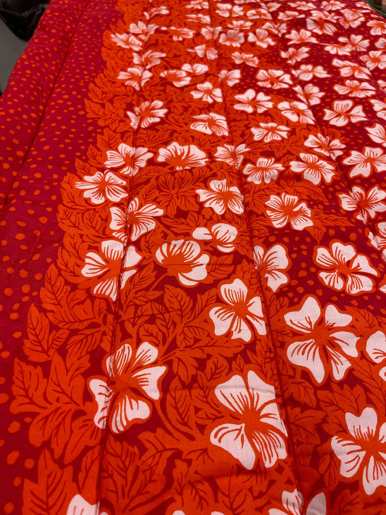Vintage täcke i rött med blommigt mönster. Mycket gott skick och ingen lukt.