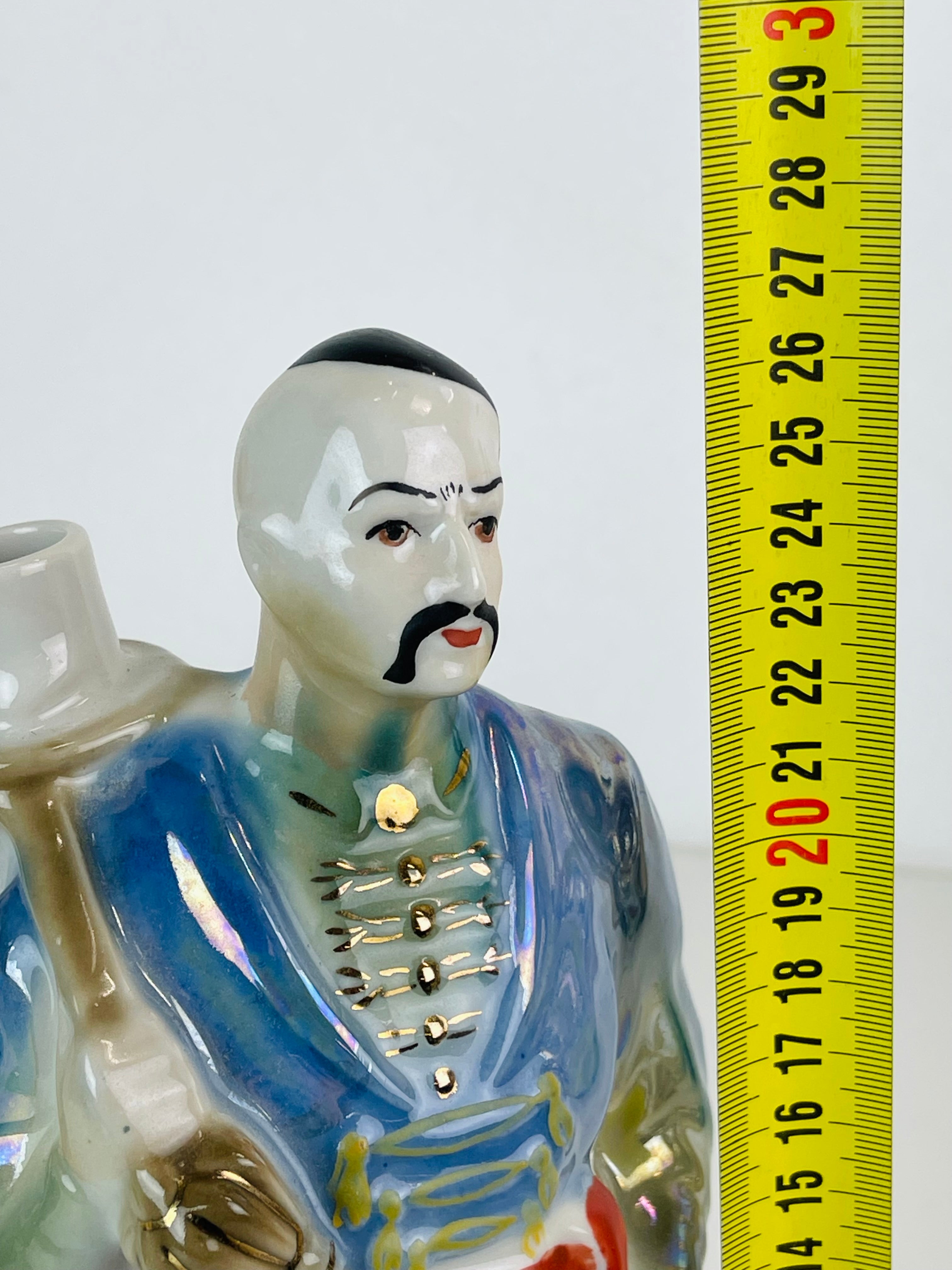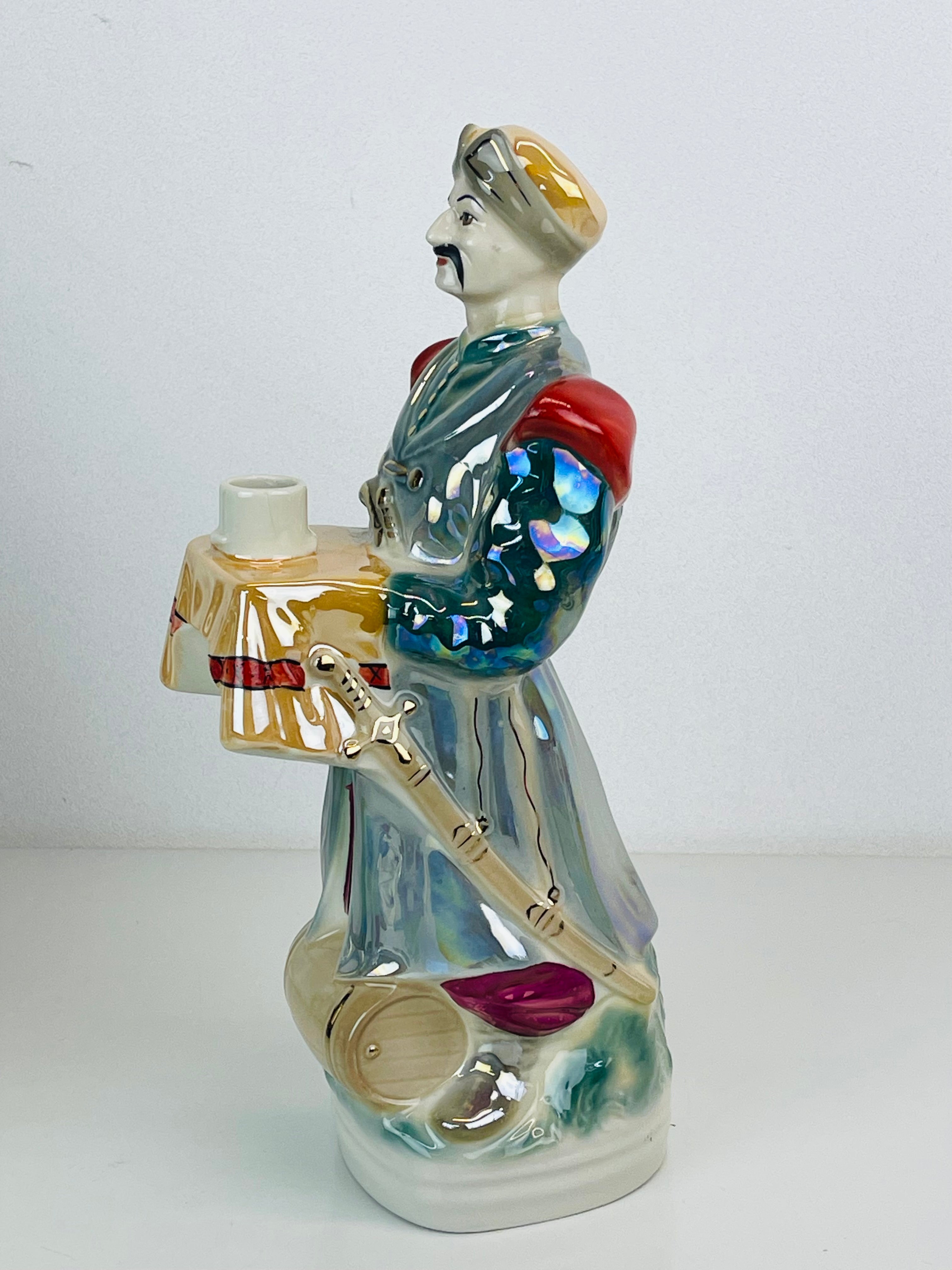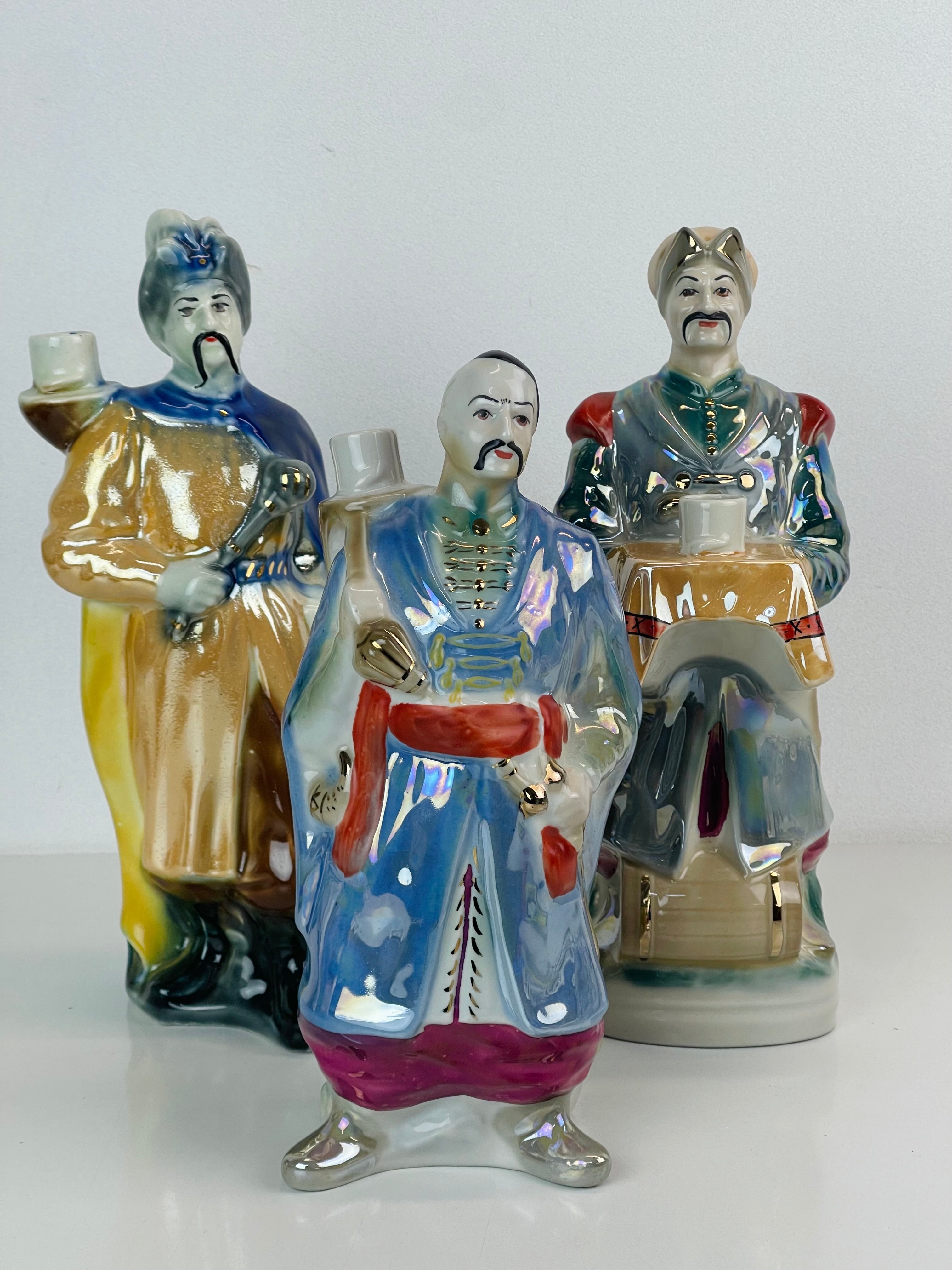 Tre sovjetiska flaskor i form av ukrainsk krigare/ kosacker och Ostap figur.Alla tre är i mycket fint skick, men alla saknar en kork. Således är de ofullständiga.