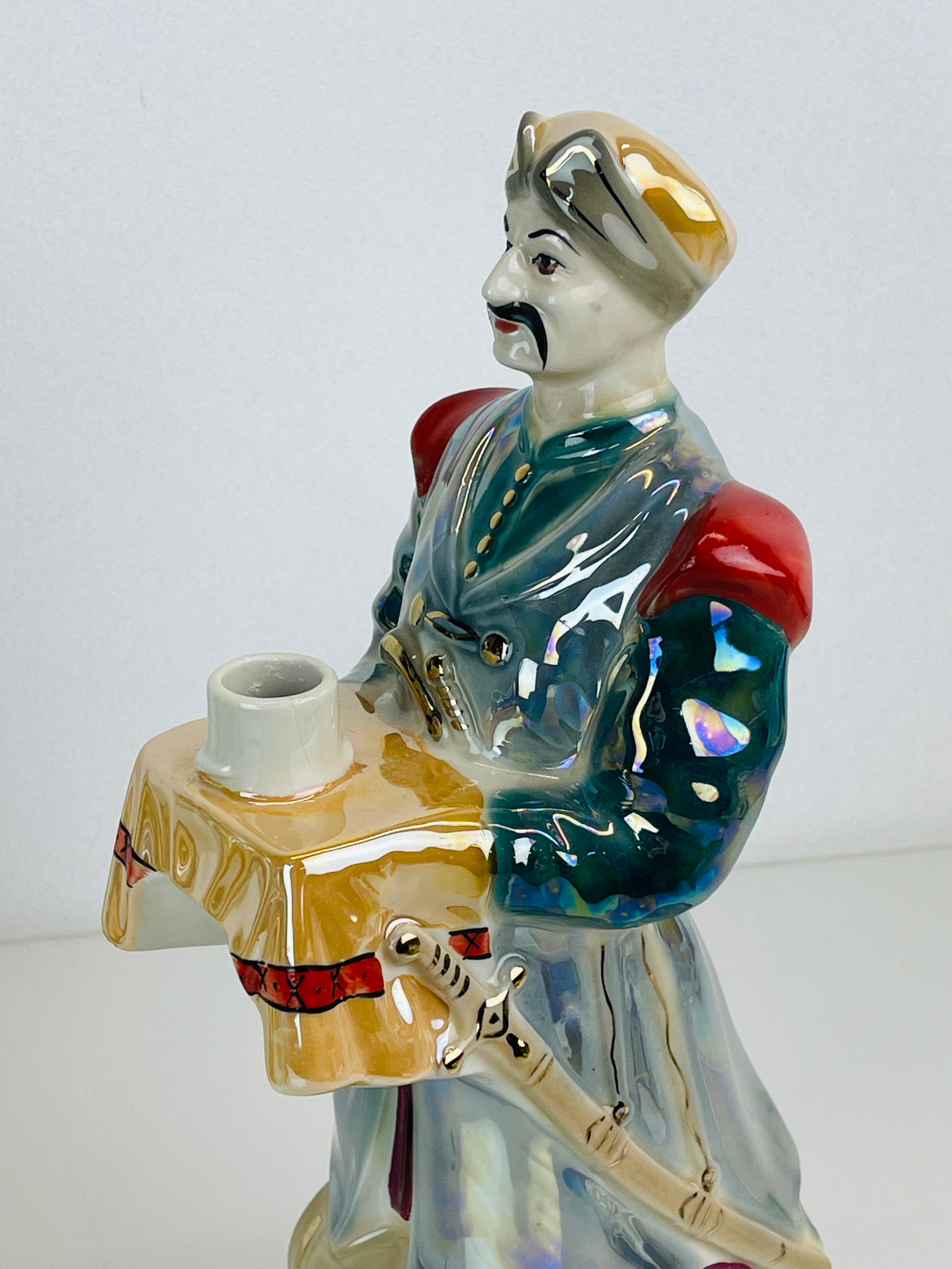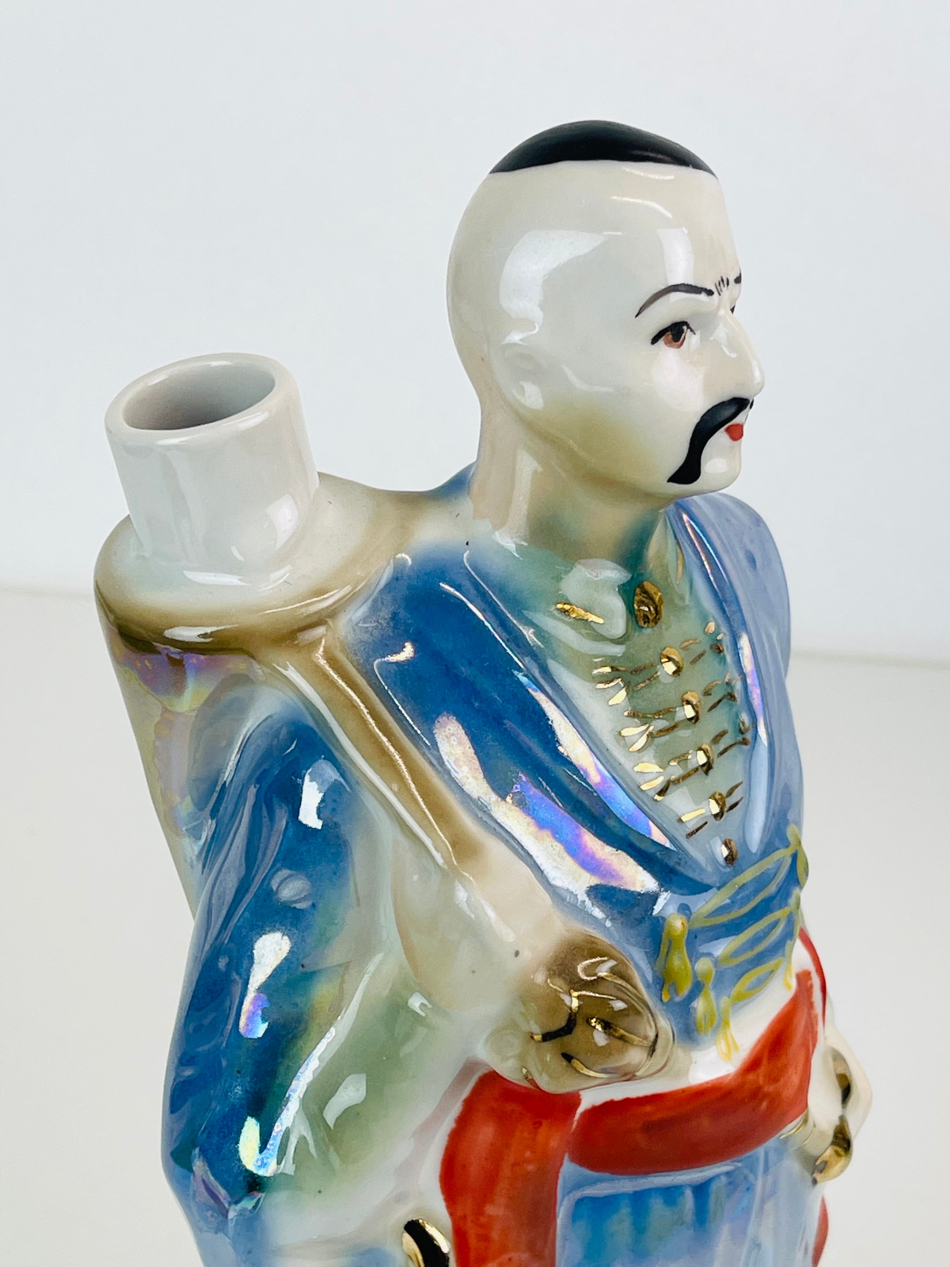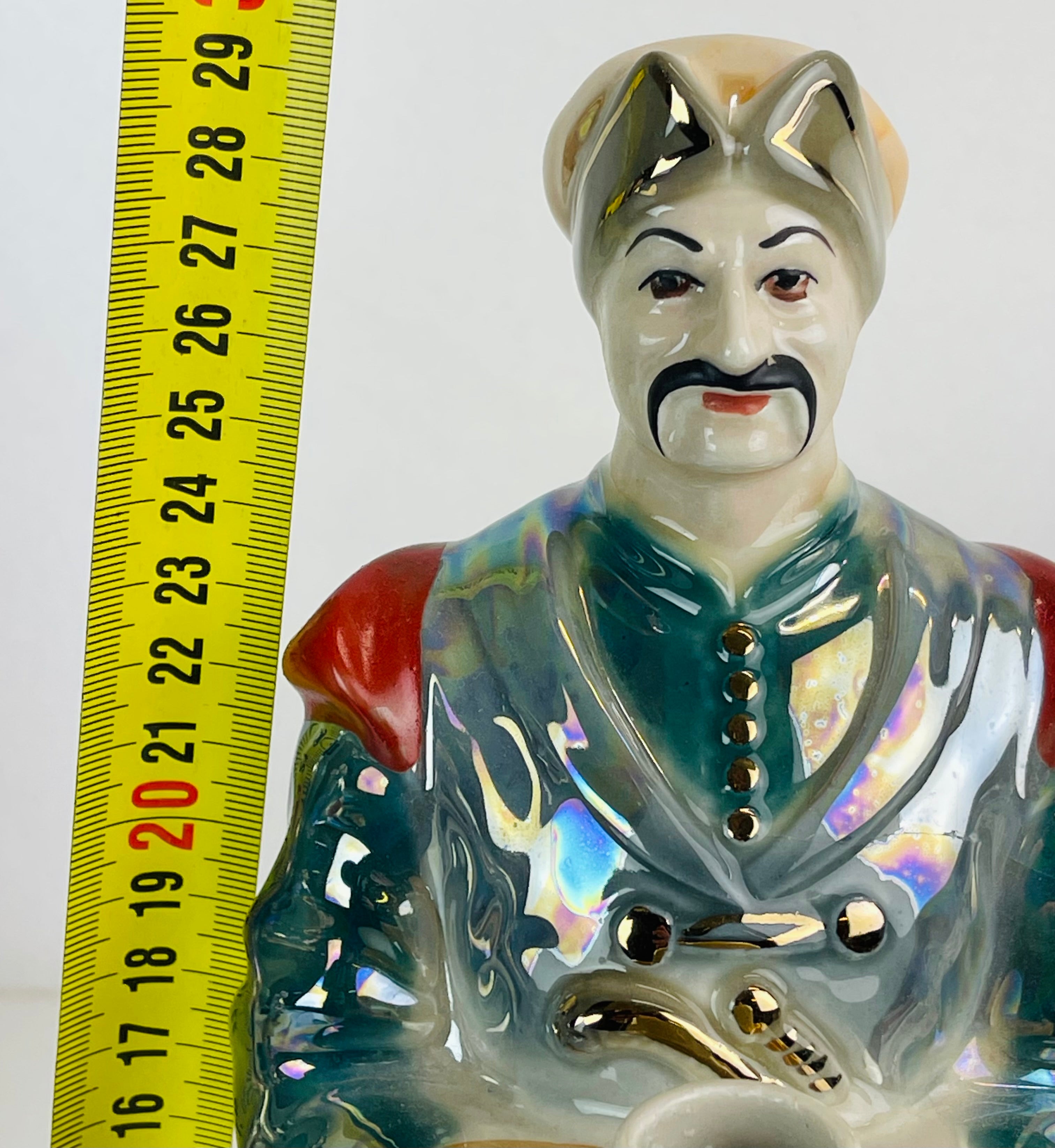 Tre sovjetiska flaskor i form av ukrainsk krigare/ kosacker och Ostap figur.Alla tre är i mycket fint skick, men alla saknar en kork. Således är de ofullständiga.