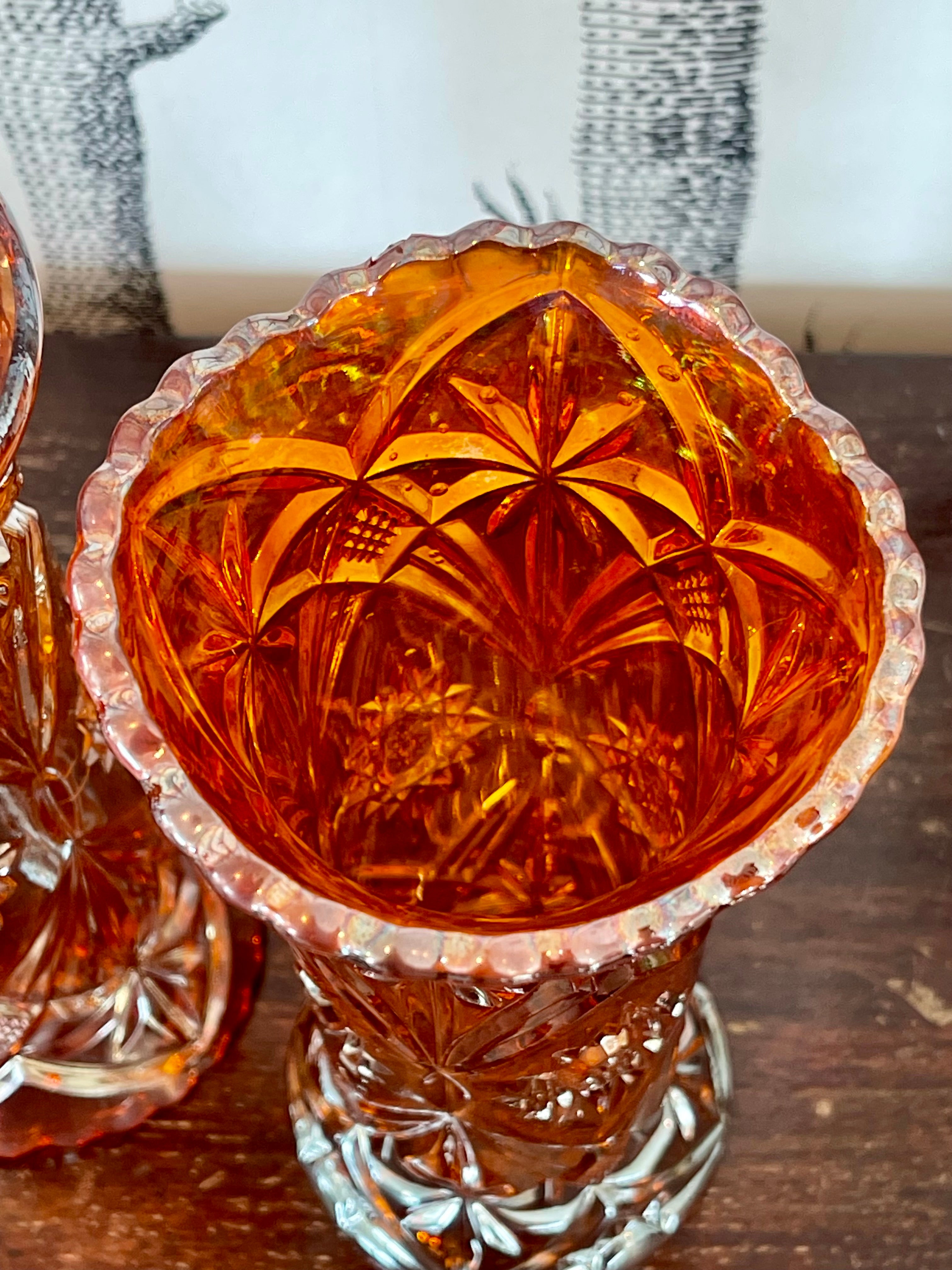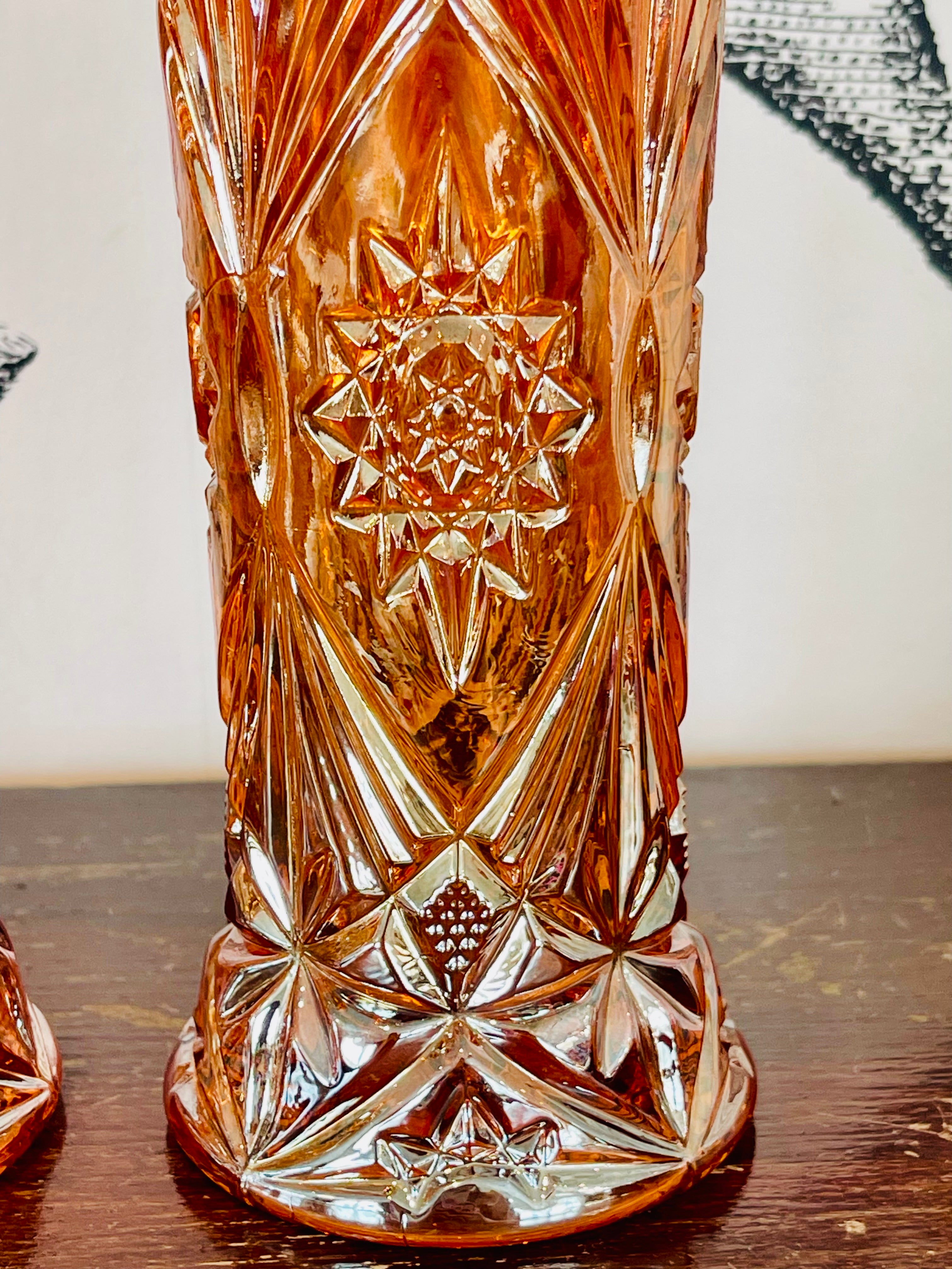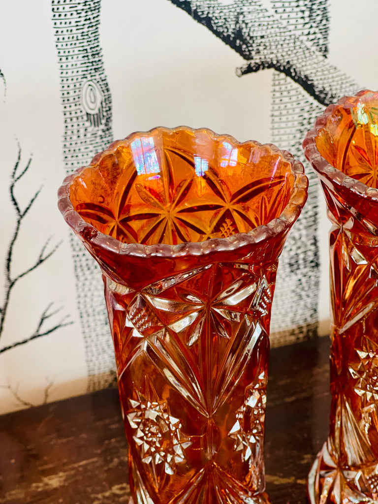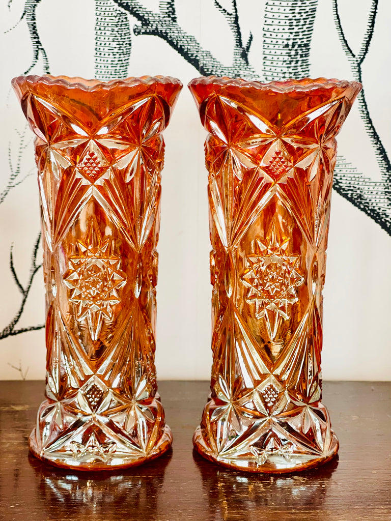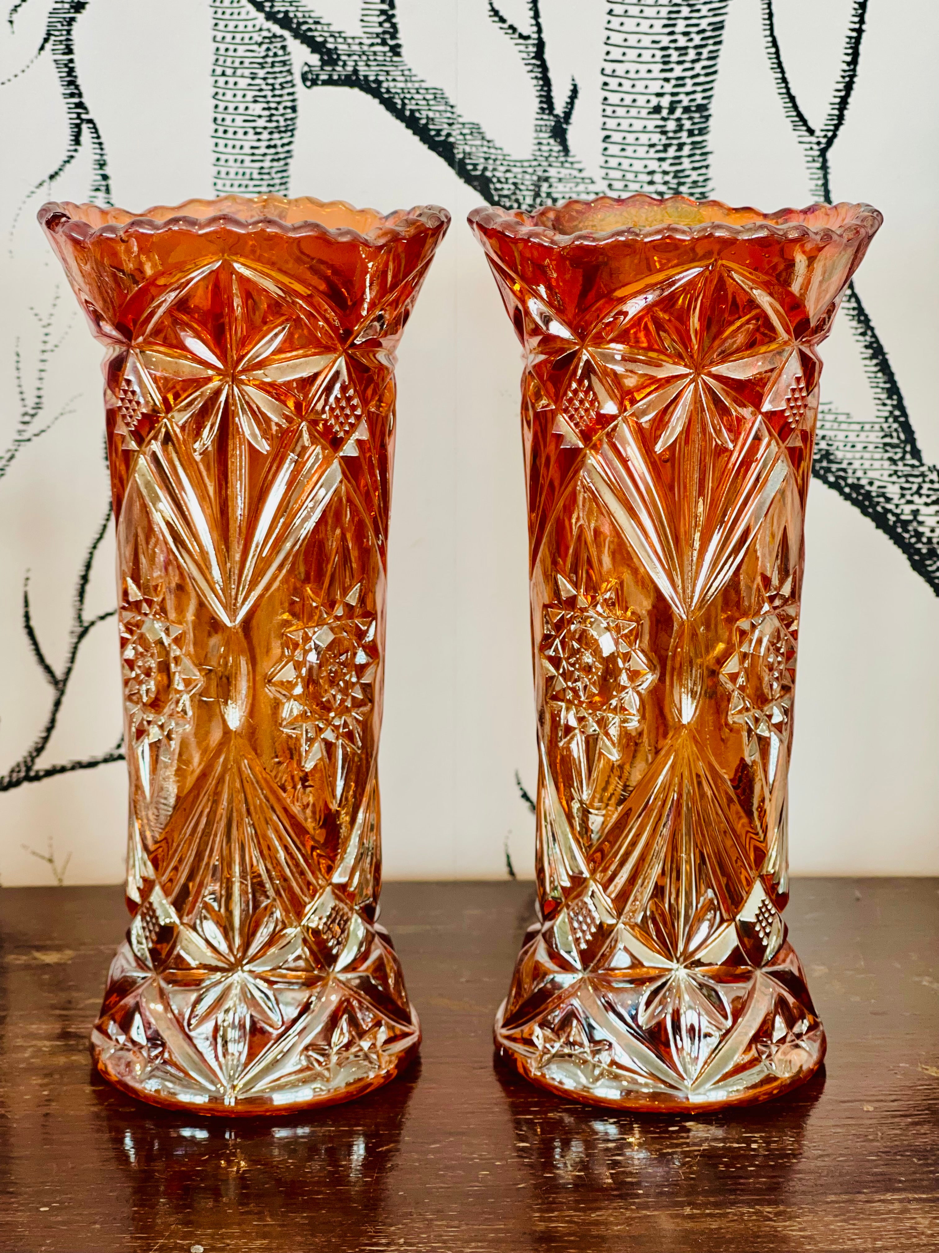 Två vaser i så kallat myrkkylasia. Den ena vasen har ett bagg i kanten, i övrigt i gott skick!