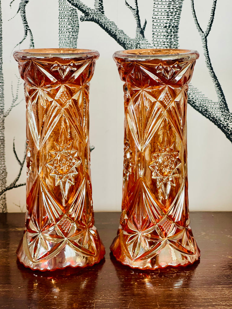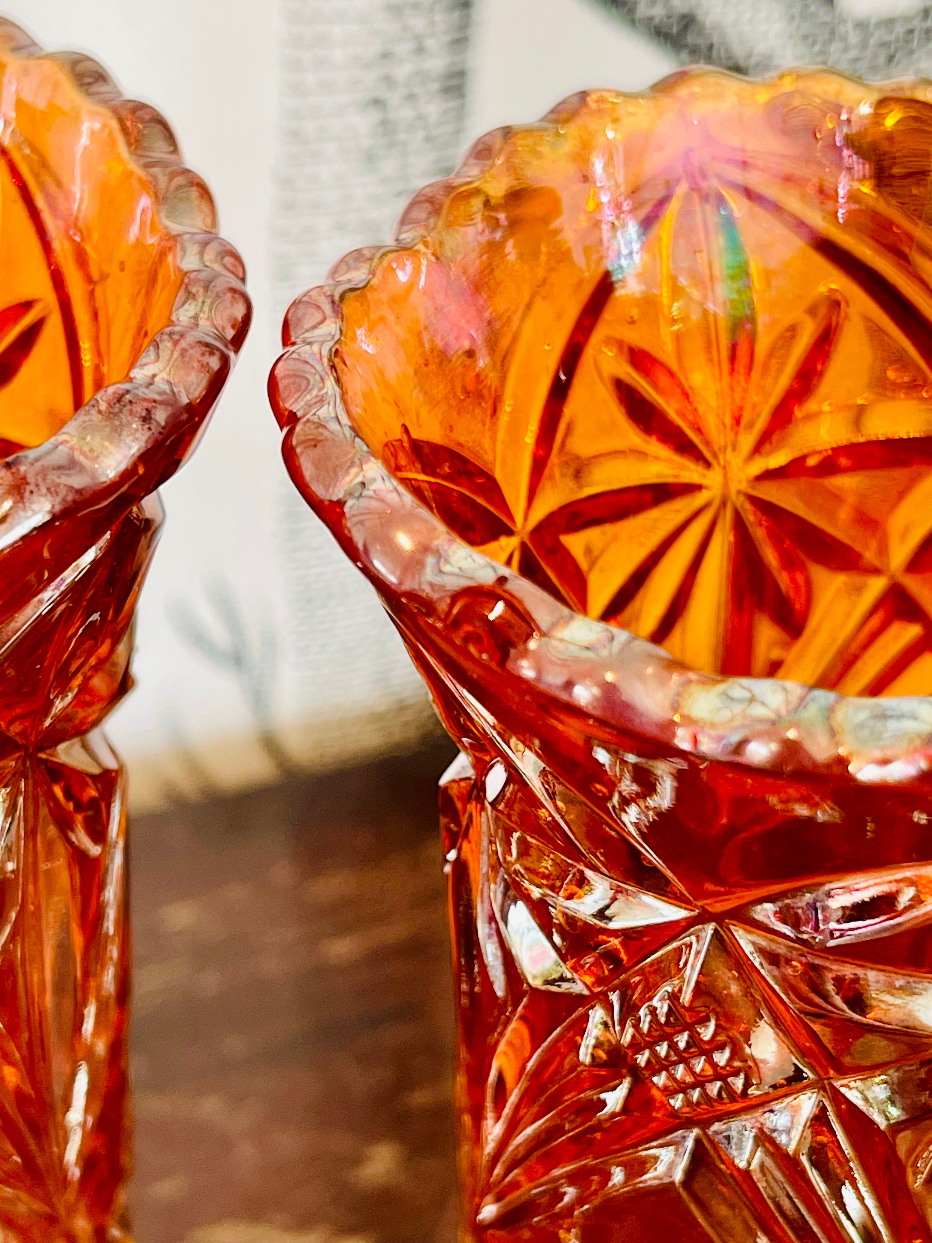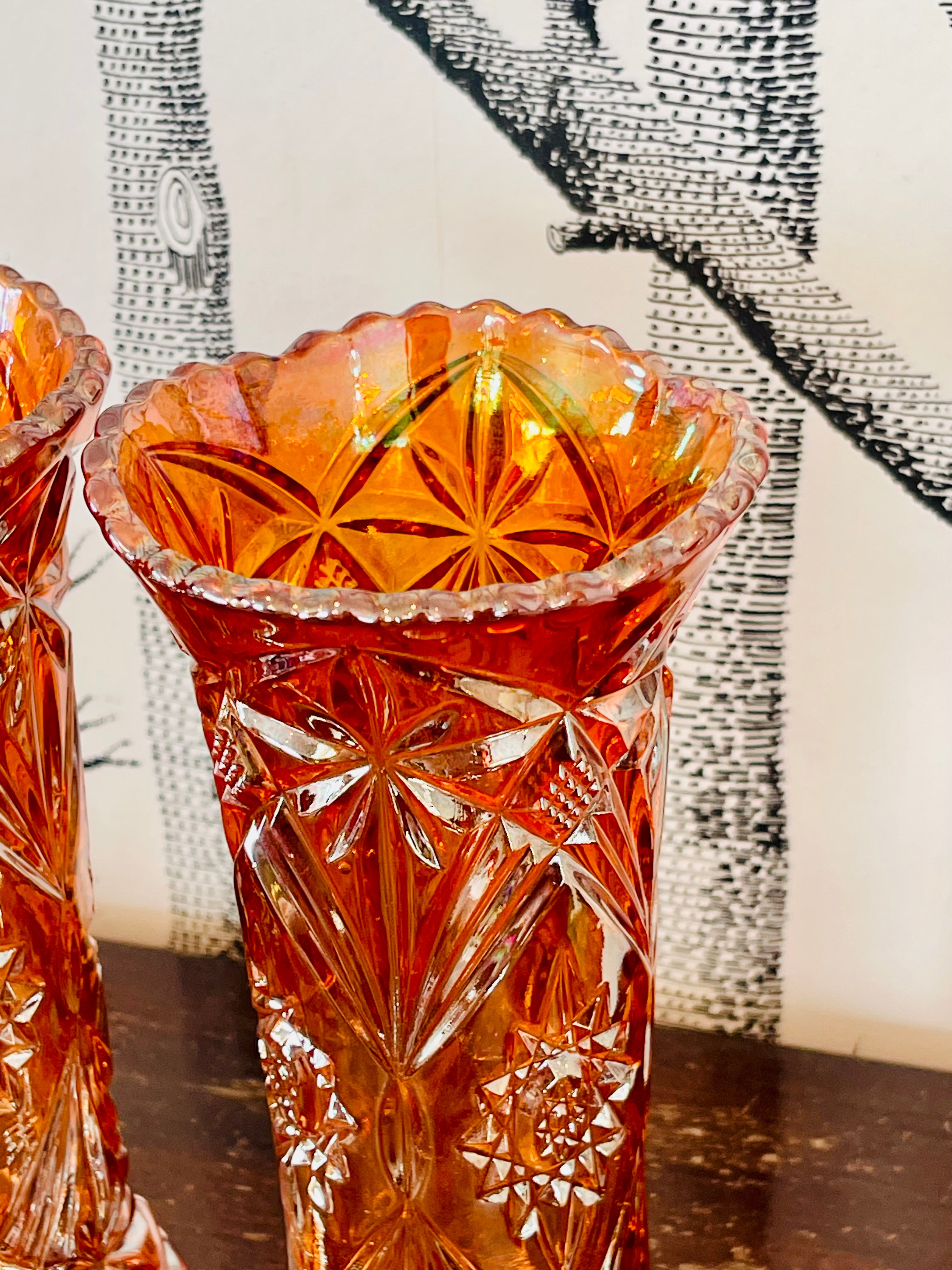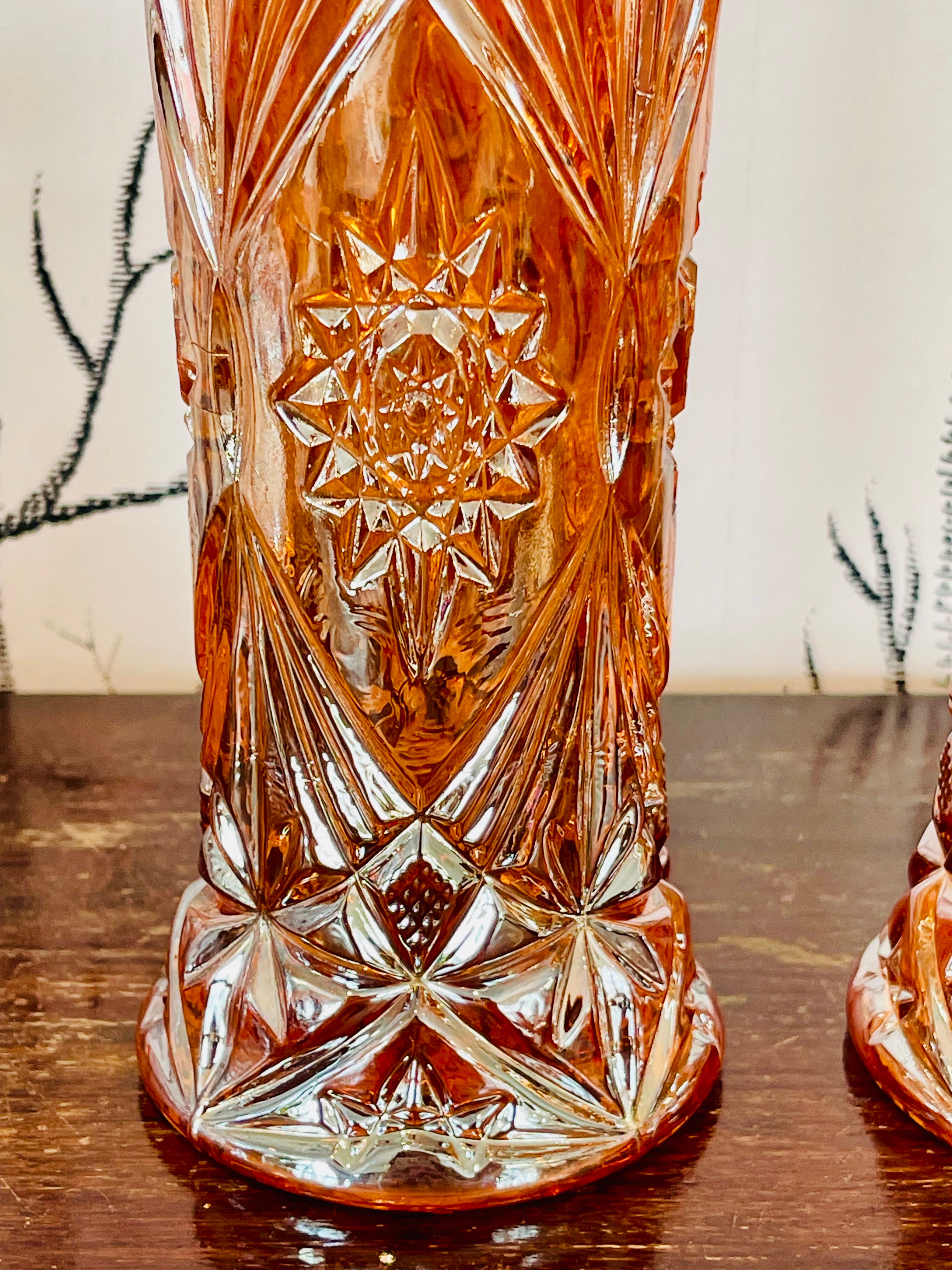 Två vaser i så kallat myrkkylasia. Den ena vasen har ett bagg i kanten, i övrigt i gott skick!
