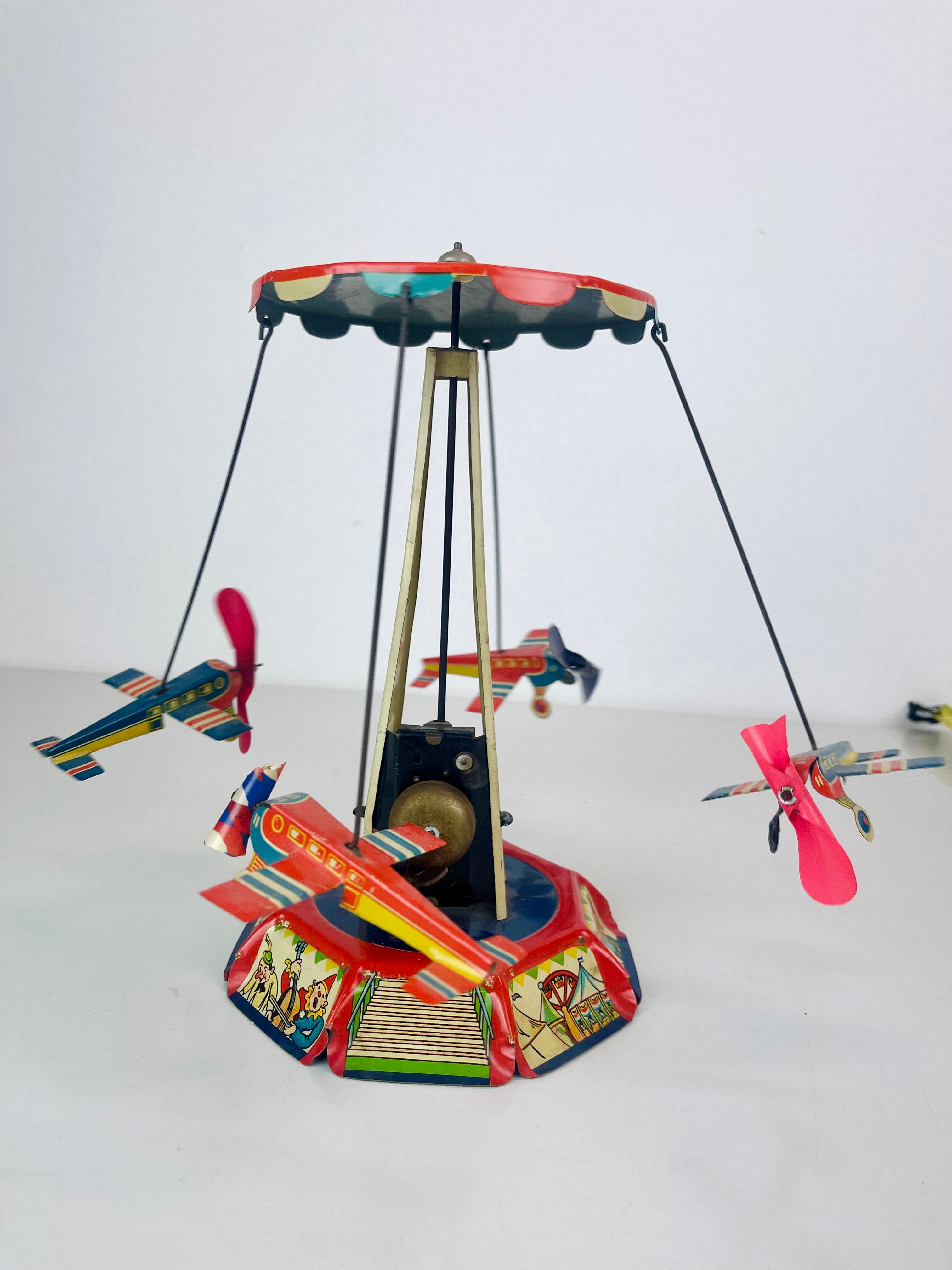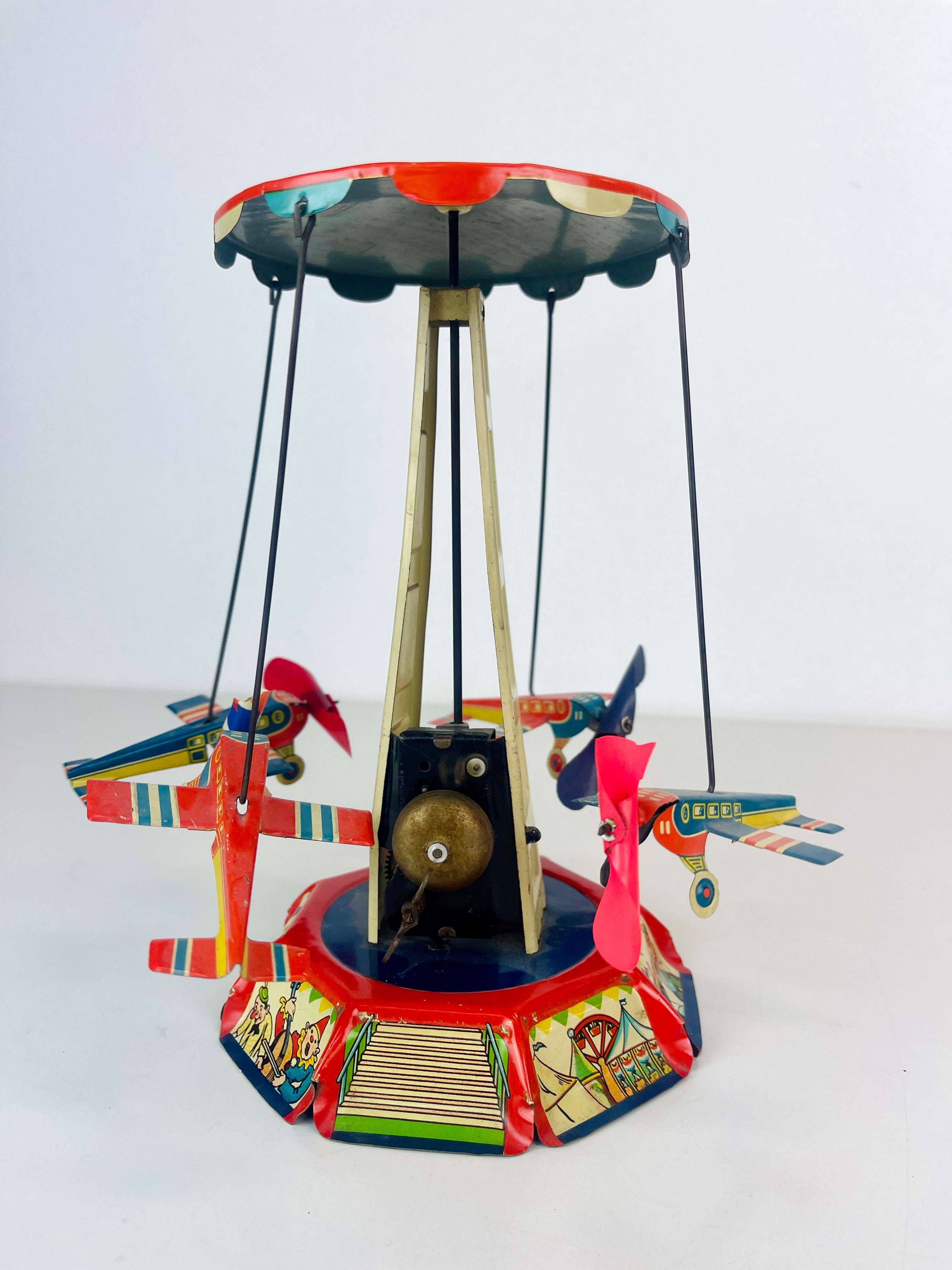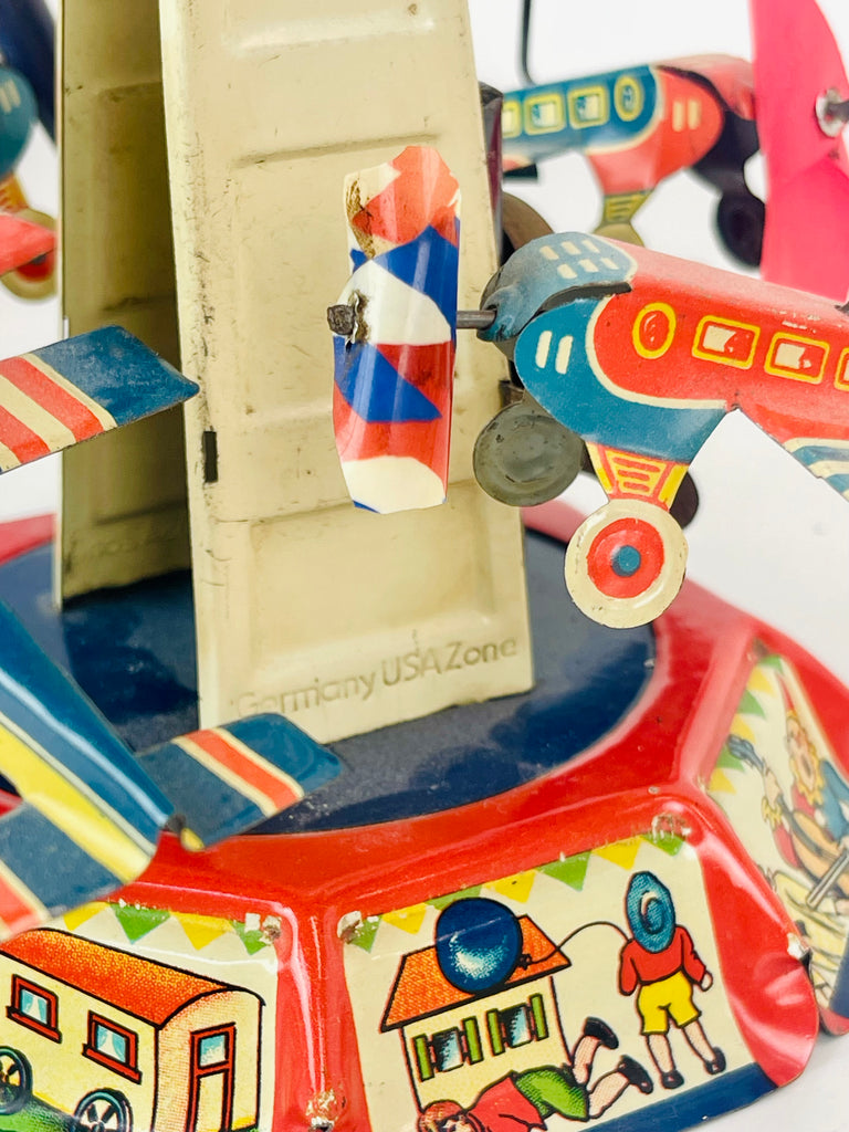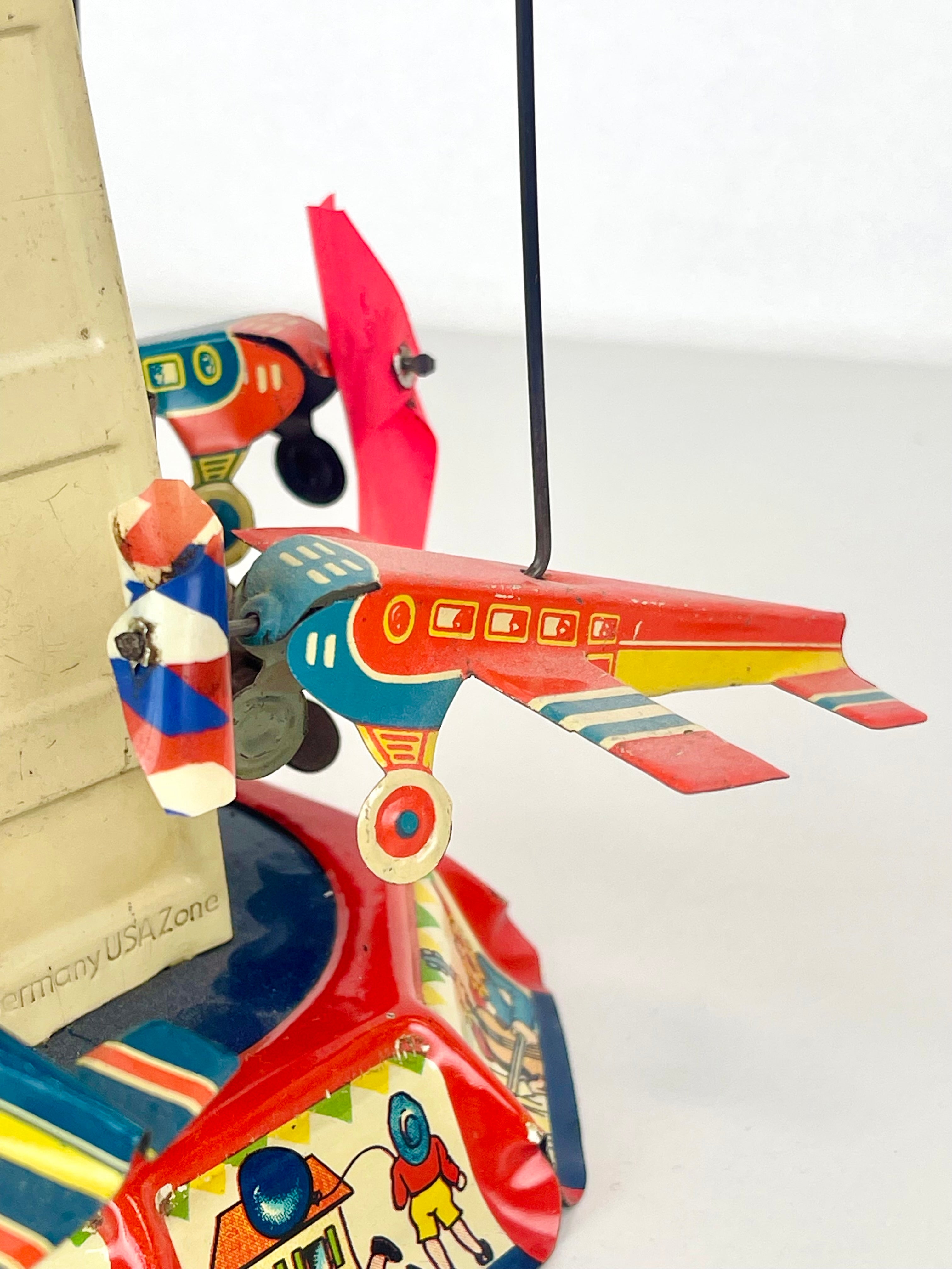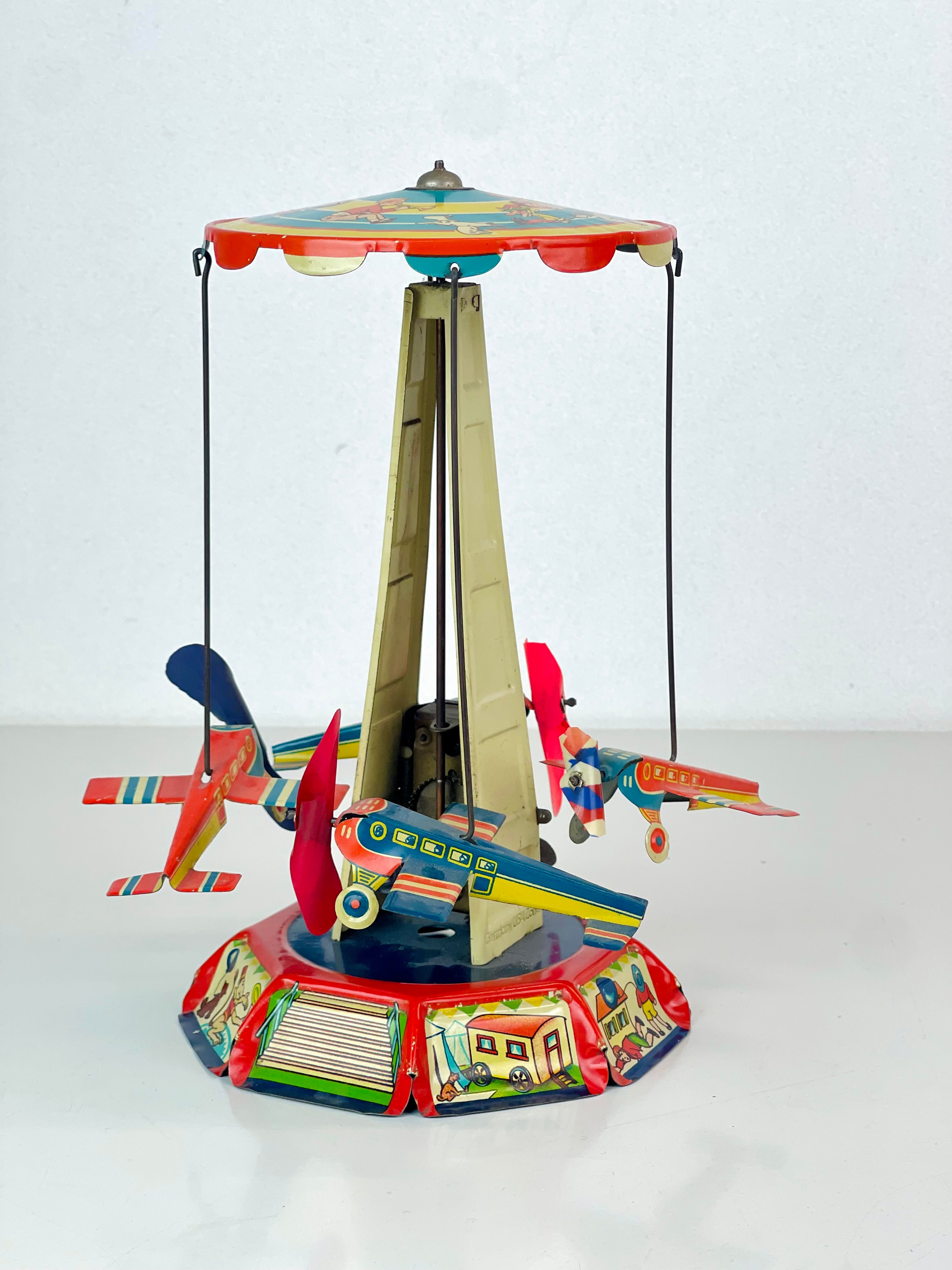 Plåtkarusell, litograferad plåt, märkt US Zone Germany, cirka 1950-tal.