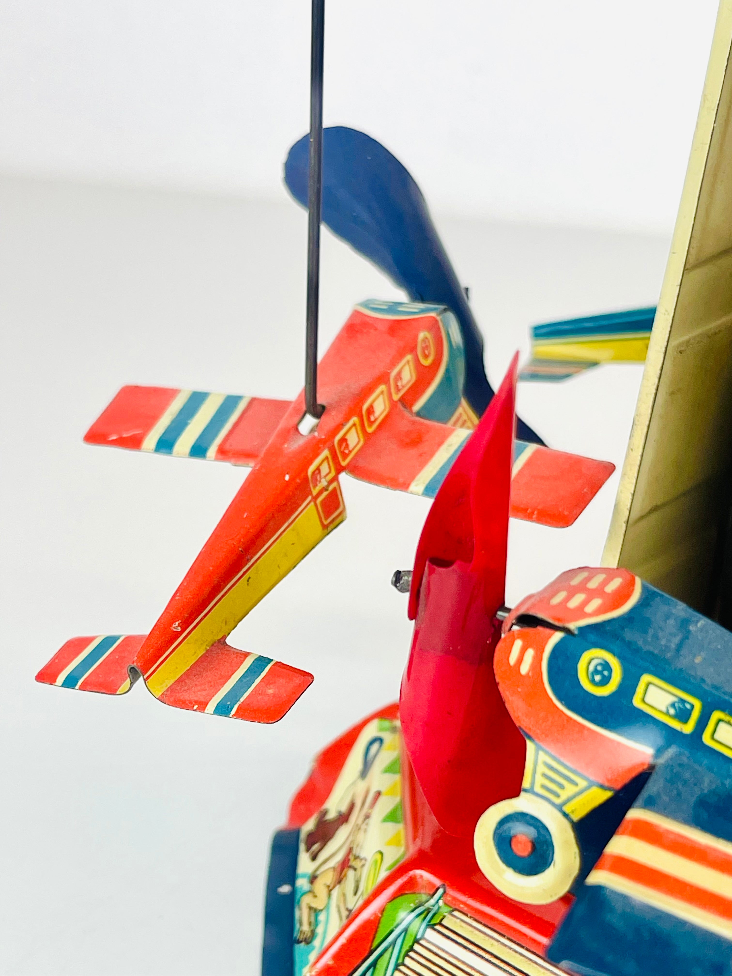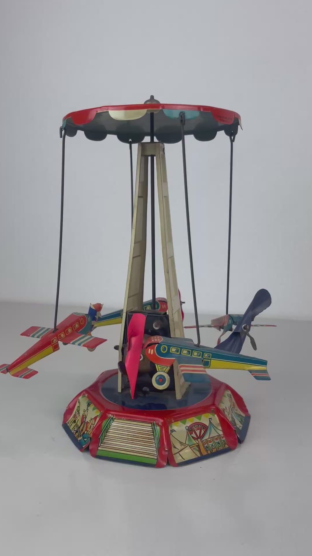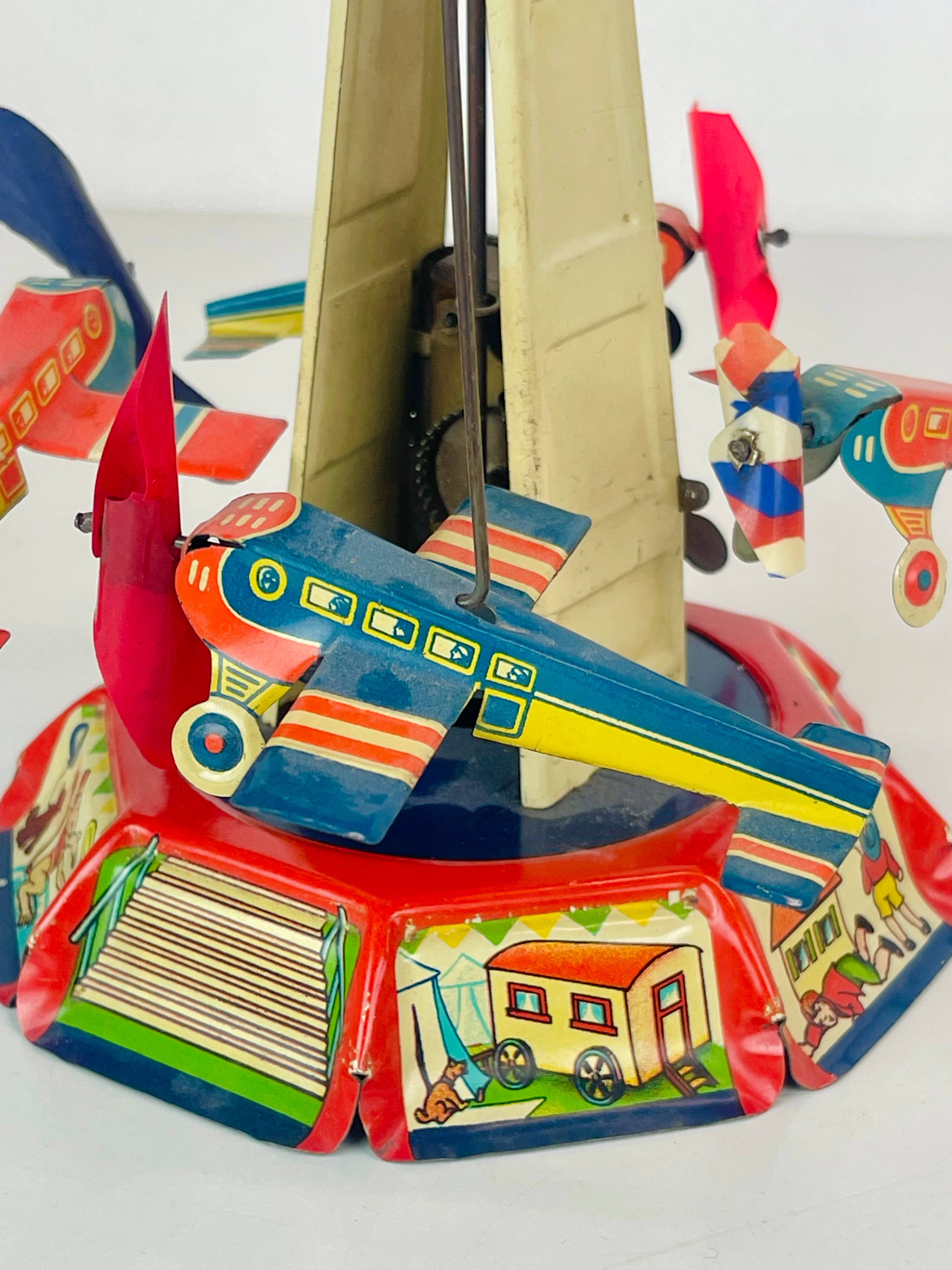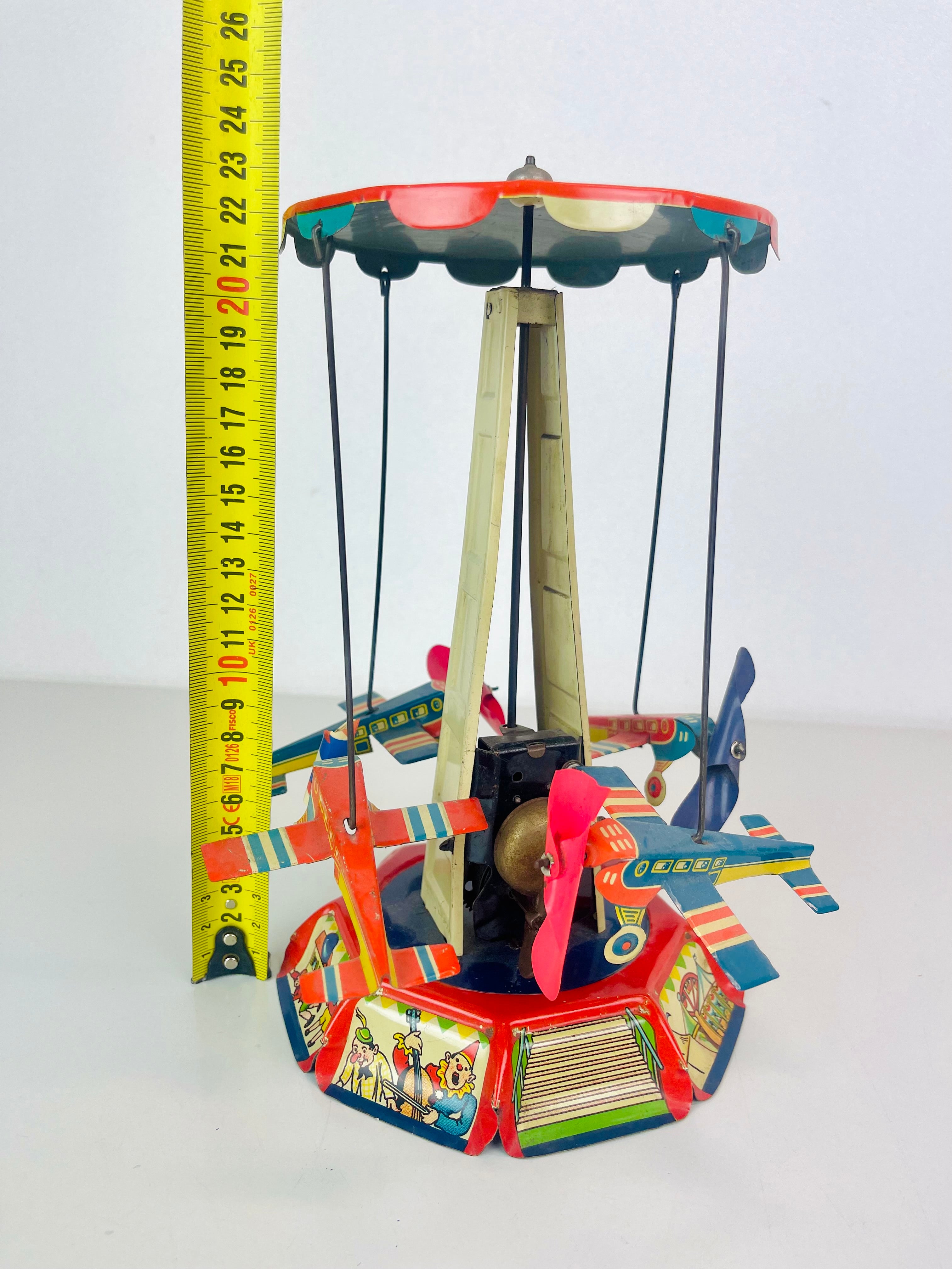 Plåtkarusell, litograferad plåt, märkt US Zone Germany, cirka 1950-tal.